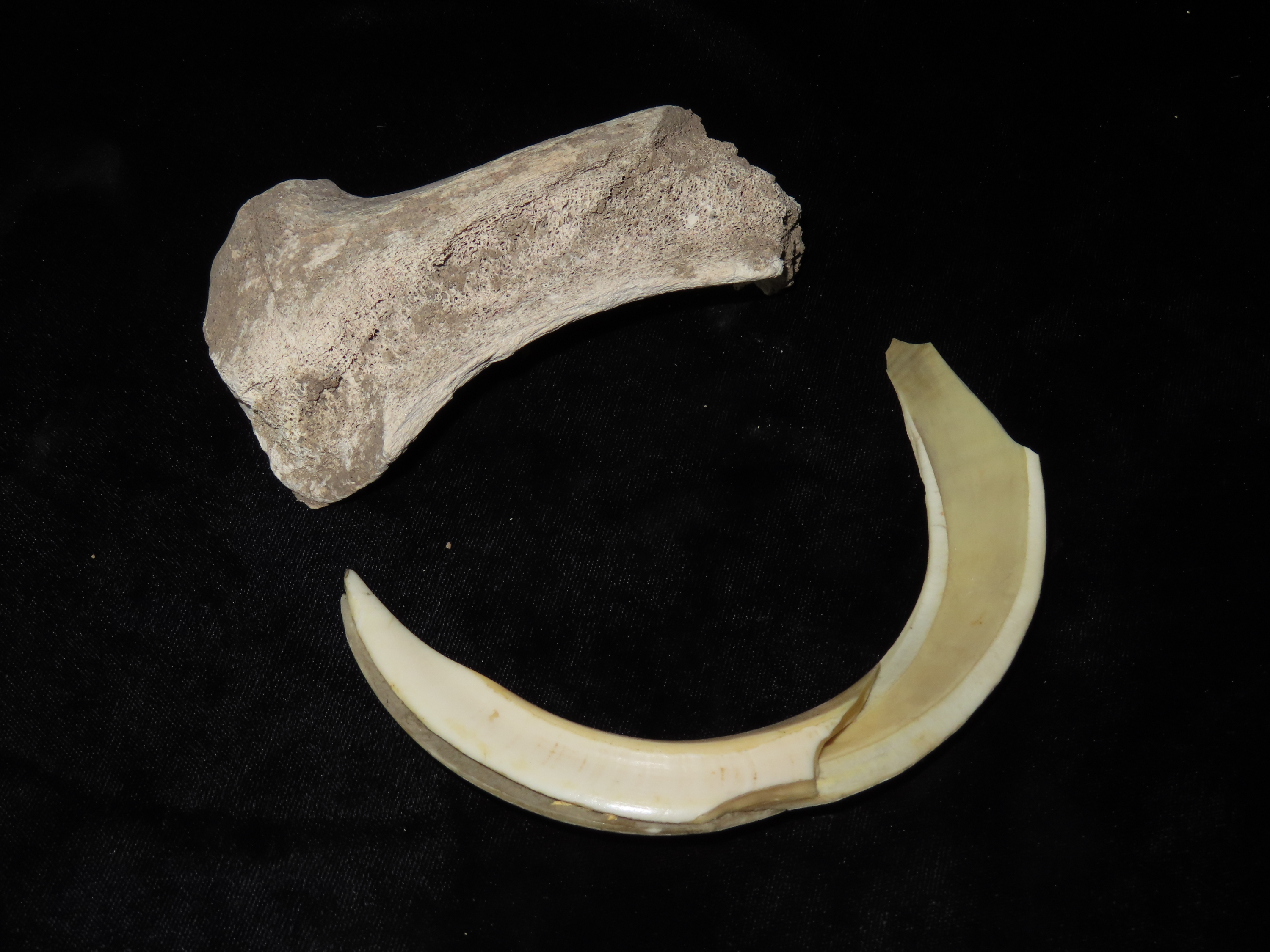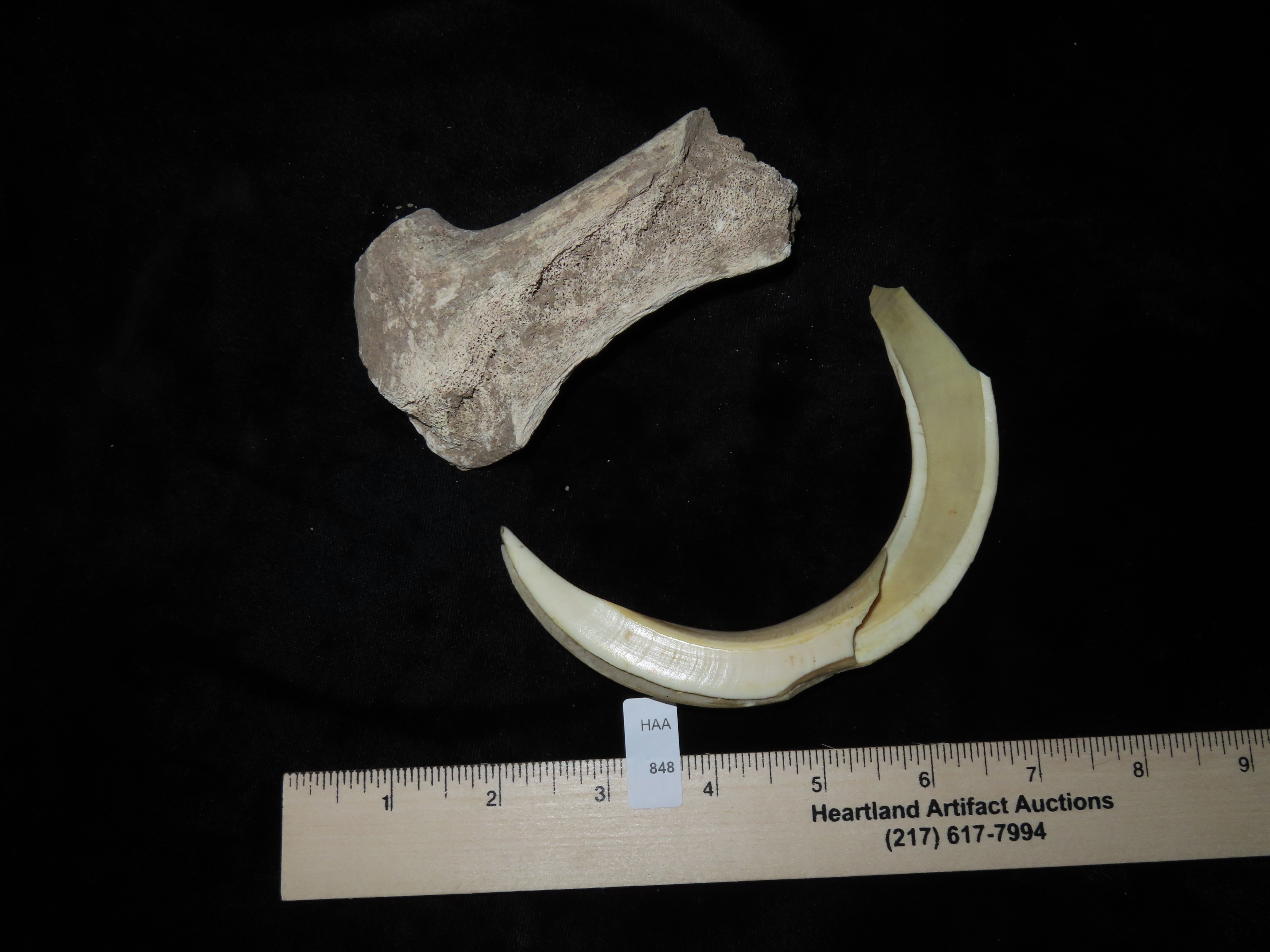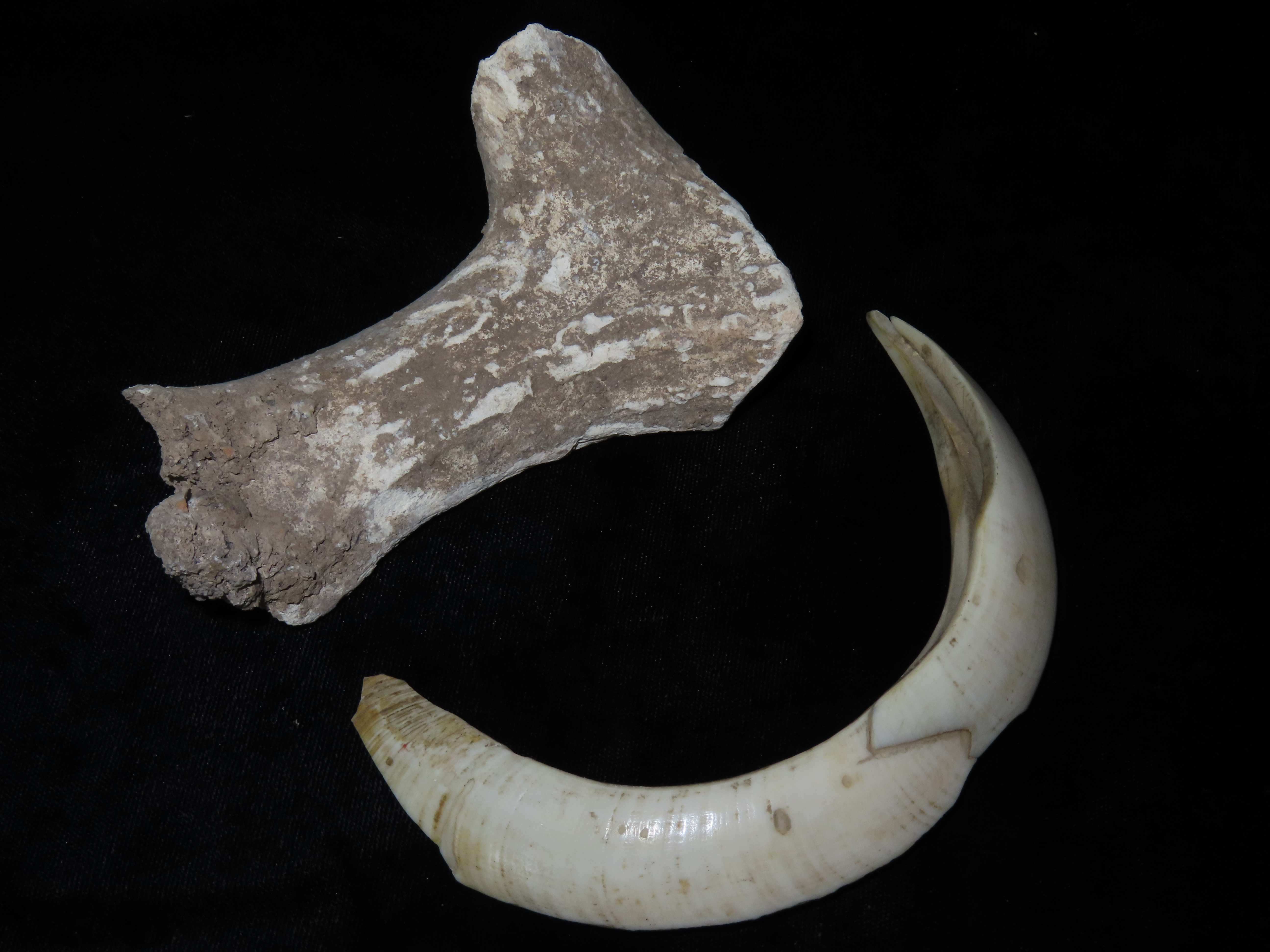 4 1/2″ Antler & 5 5/8″ Tusk, found in a rock shelter in Kentucky
