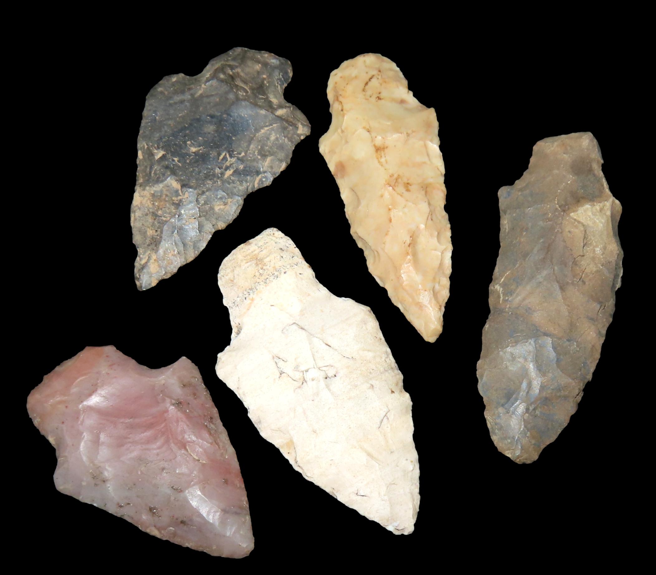 Group of 5 Nice Adena Woodland pts, found in Midwestern United States