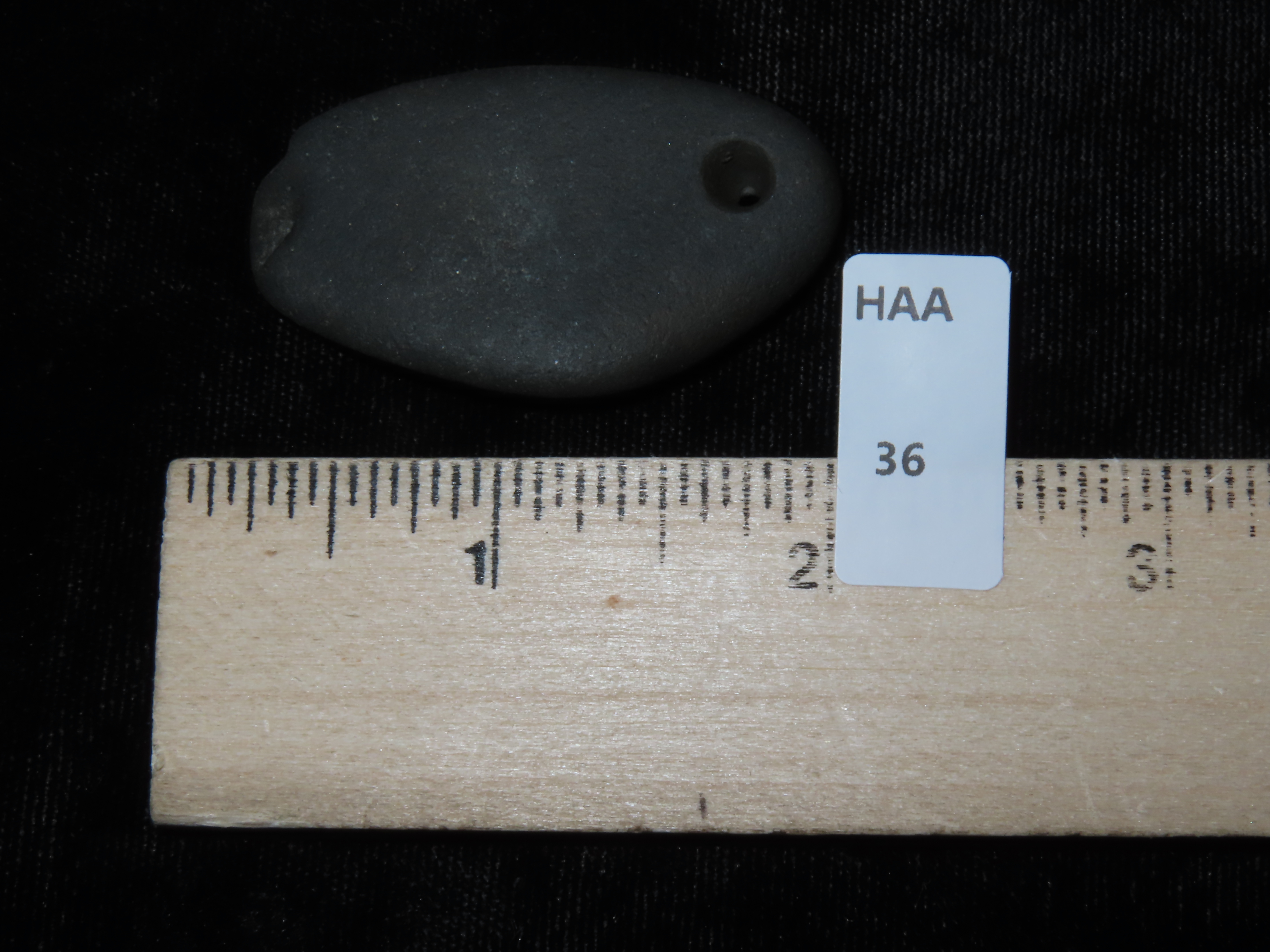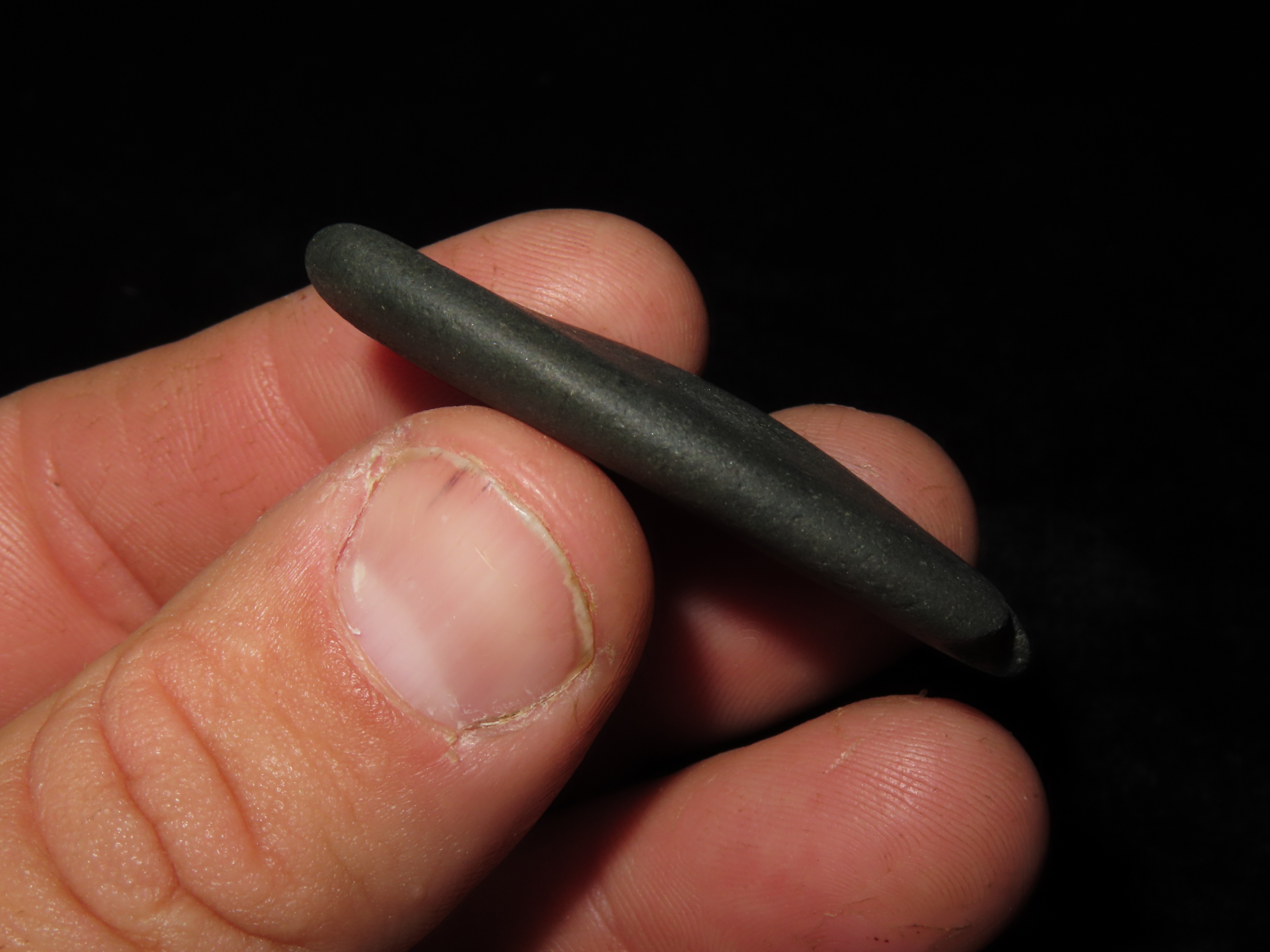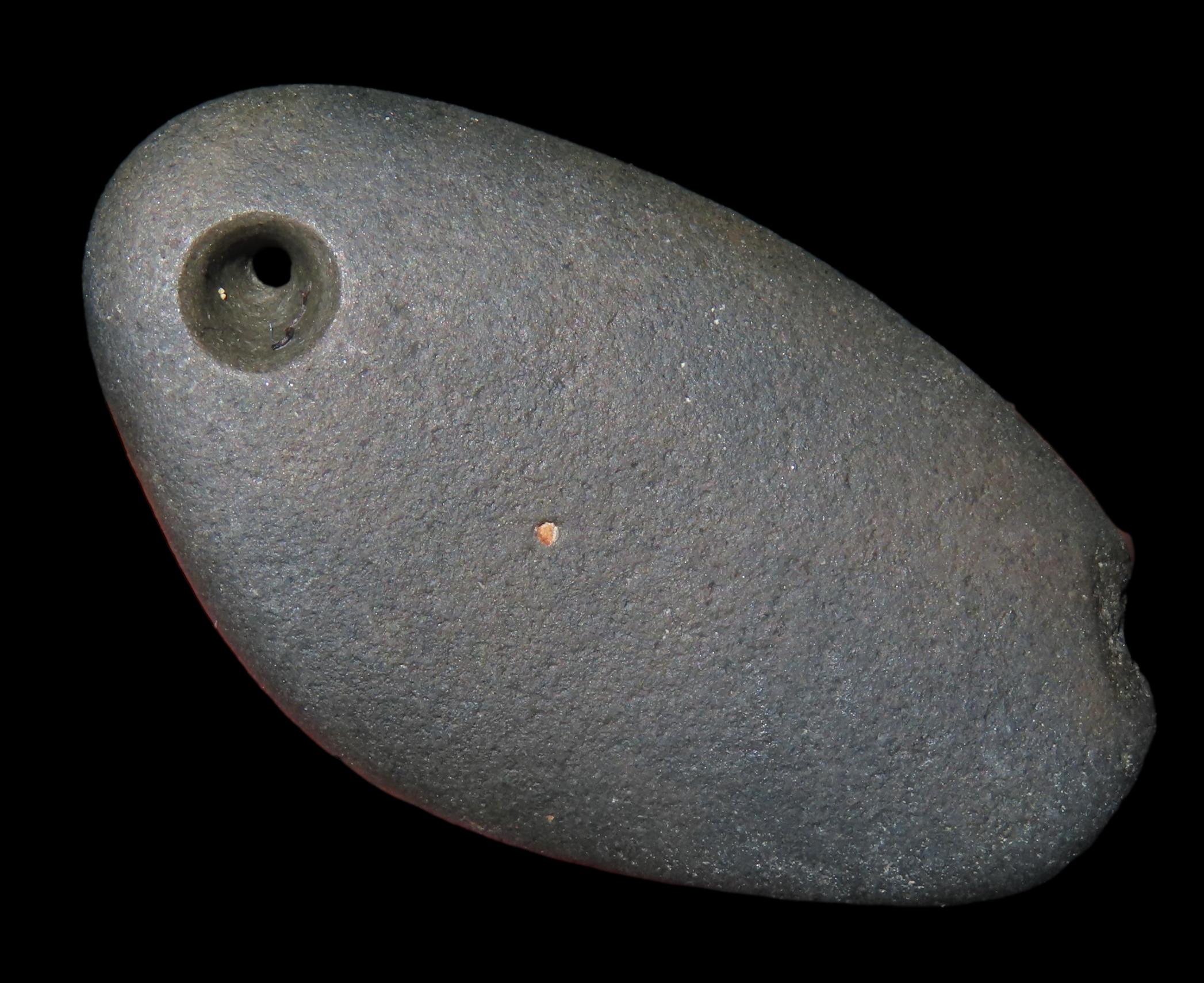 1 7/8″ Black Stone Pendant, found in front of the Koster Site in Greene Co., Illinois