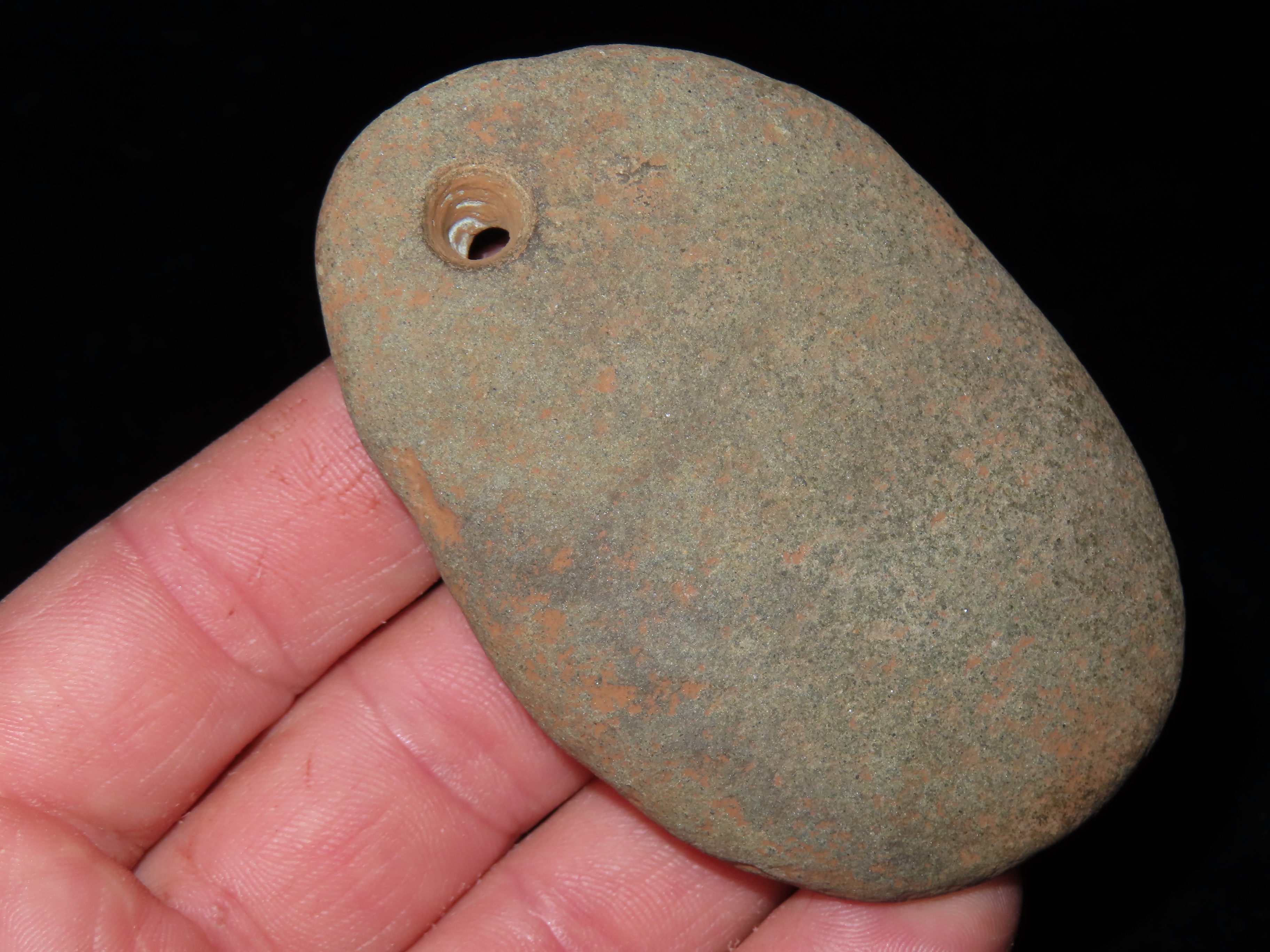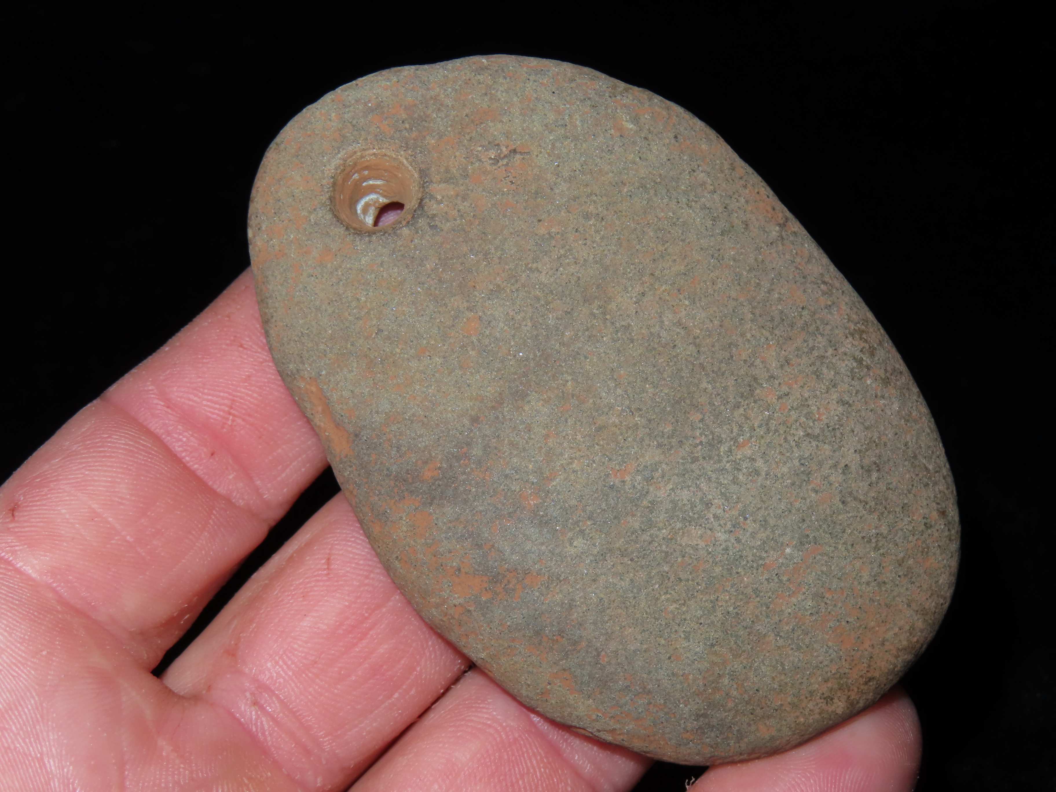 3 1/8″ Nice Large Stone Pendant, found in Brown Co., Illinois