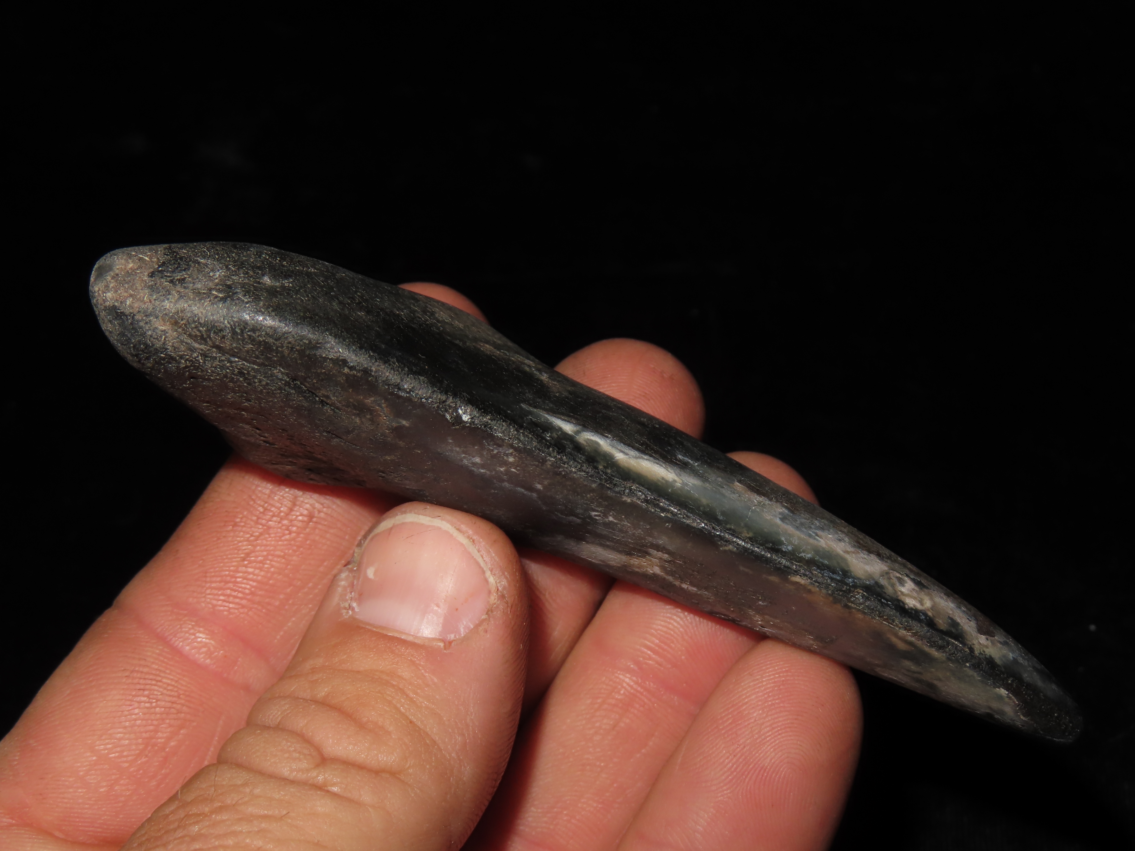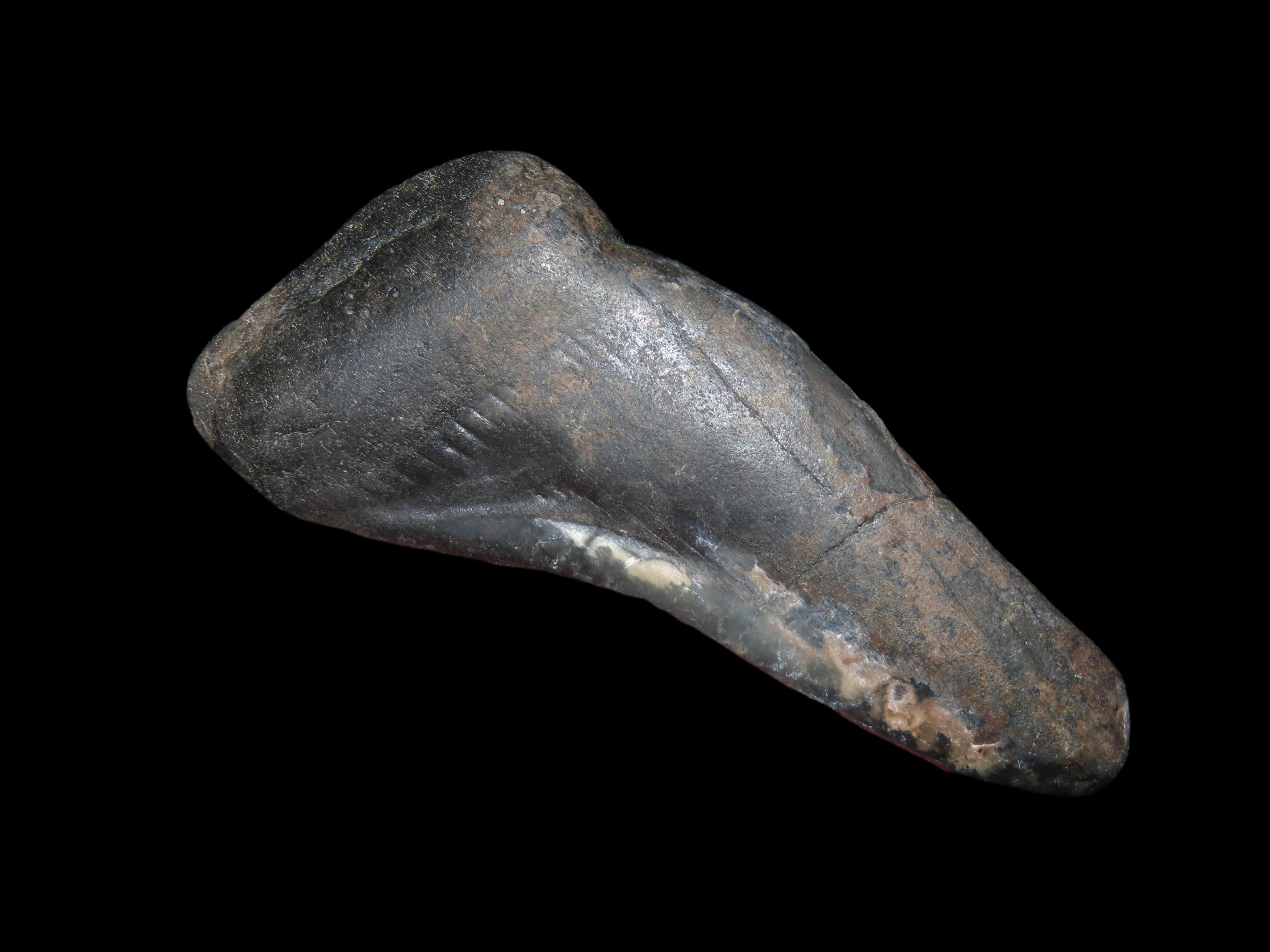 3 3/4″ VERY Tumbled Fossil Megalodon Tooth Segment, found in South Carolina