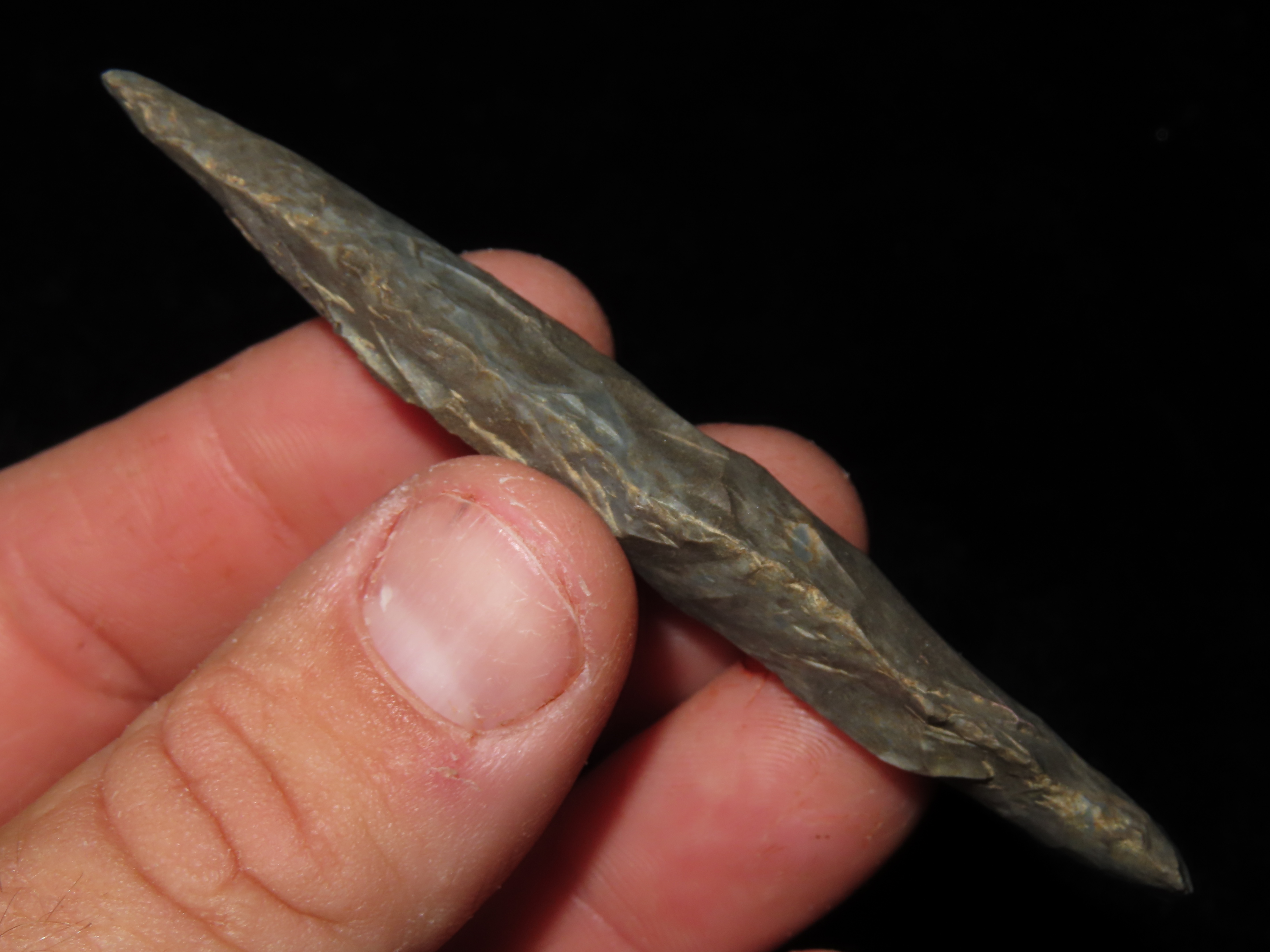 3 5/8″ Colorful Lehigh Pt, found at Lima Lake, Adams Co., Illinois