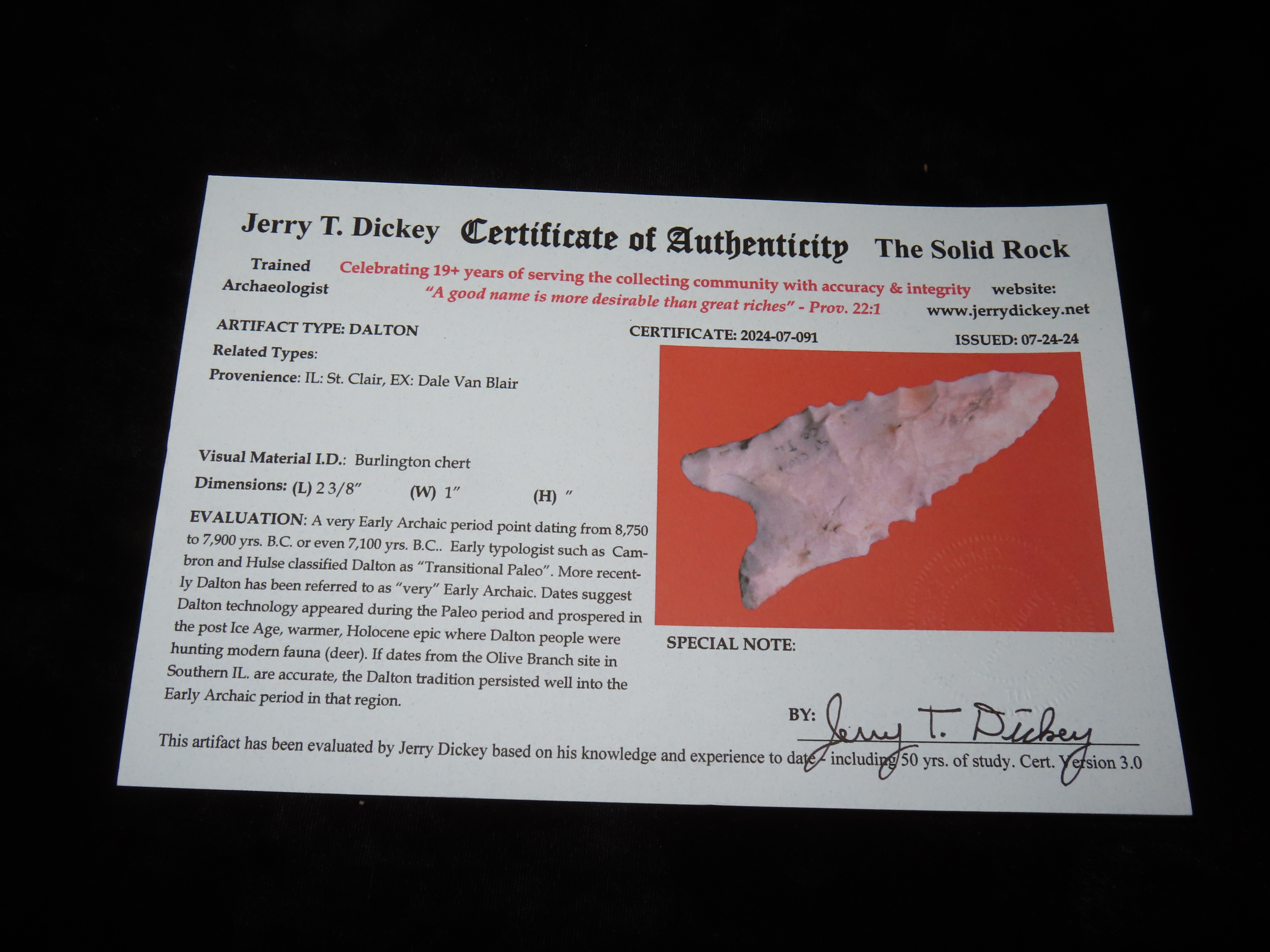 2 3/8″ Dalton, Dickey COA, found in St. Clair Co., Illinois, Ex Dale Van Blair, Ex Tommy Bryden Collection