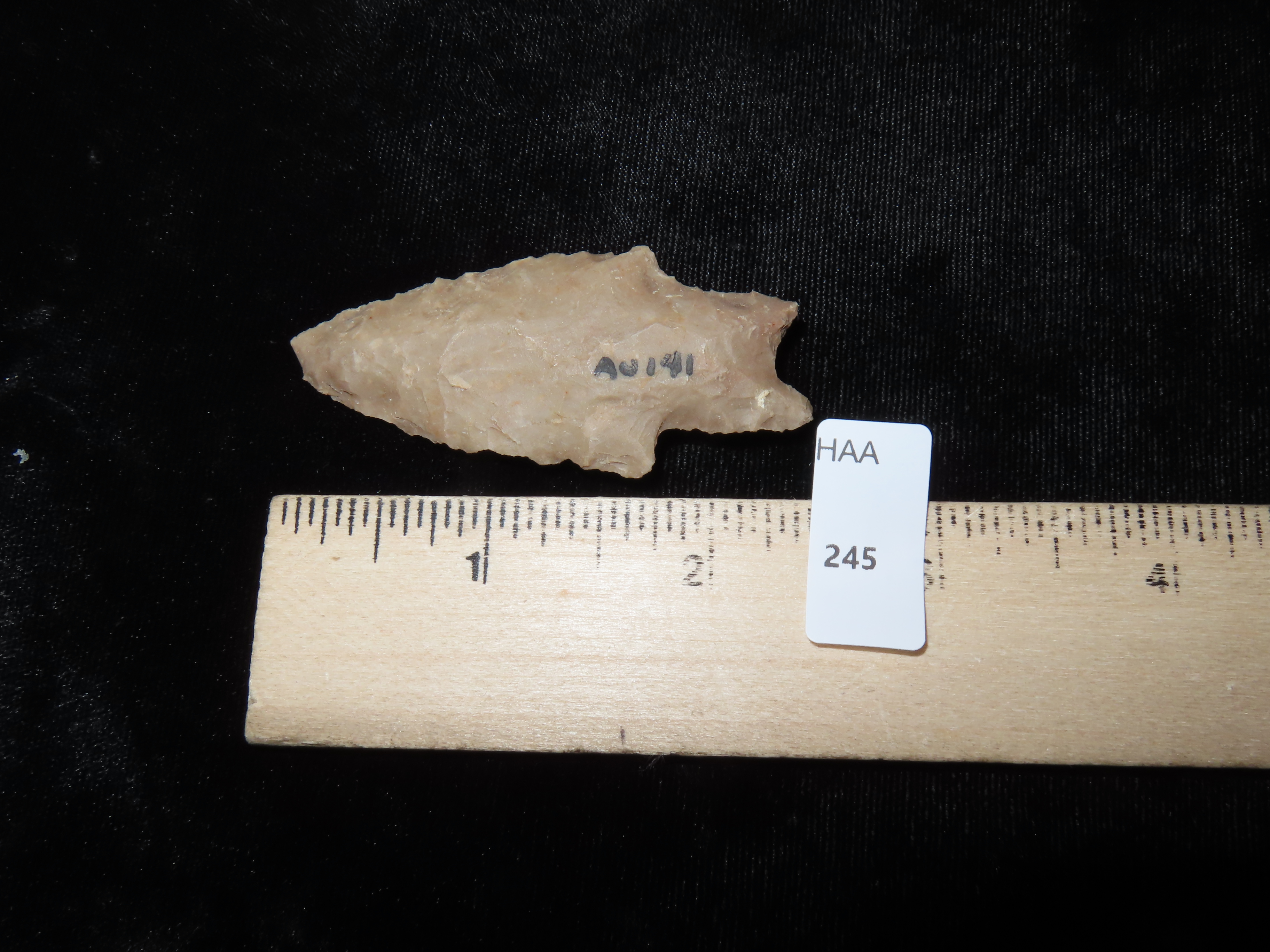 2 1/2″ Pedernales, found in Travis Co., Texas near Austin, Ex Worthington, Ex Lee Schexnaydre Collection