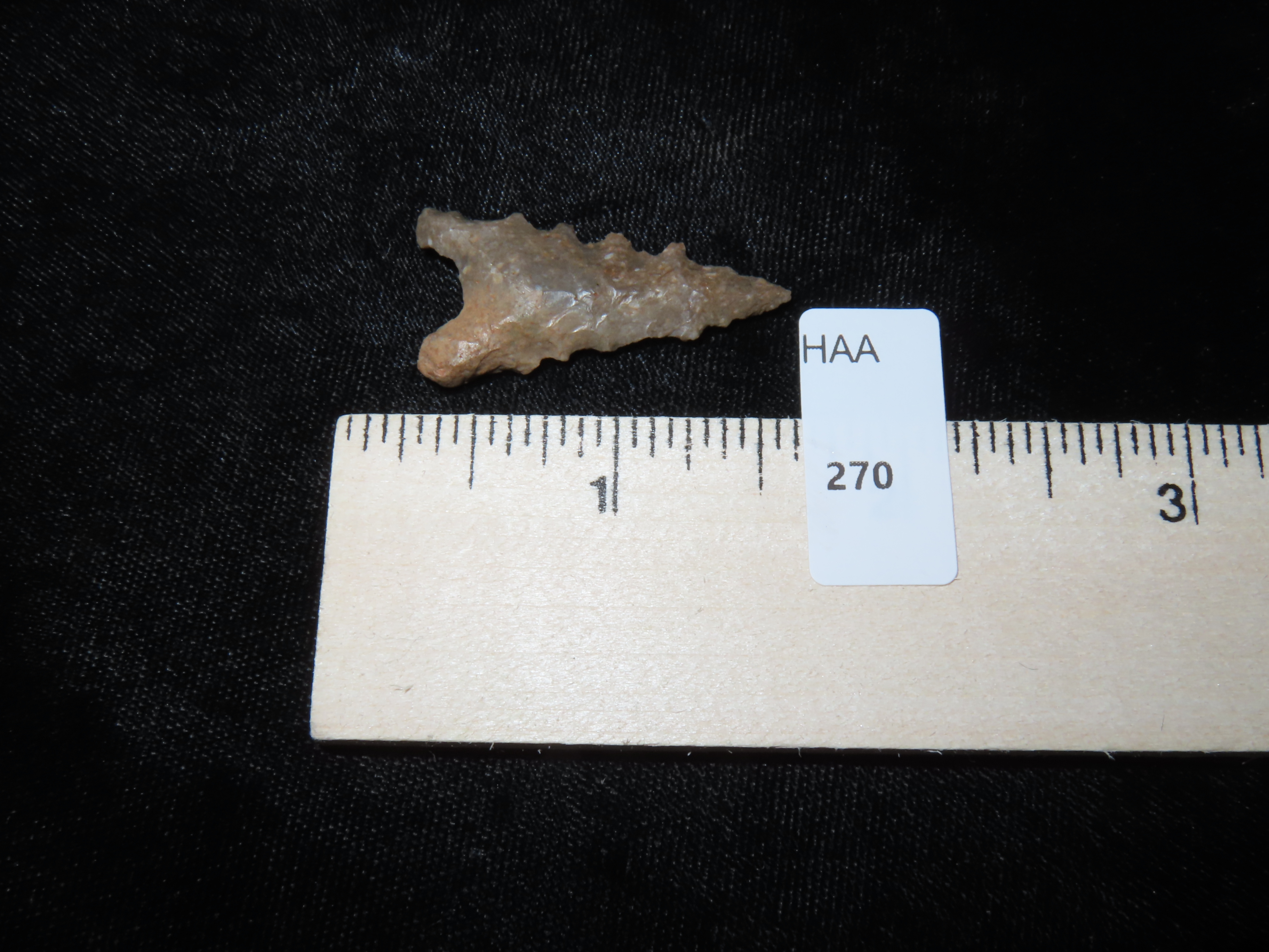 1 1/2″ Soto with great serrations, found in NE Texas, Ex Lee Schexnaydre Collection