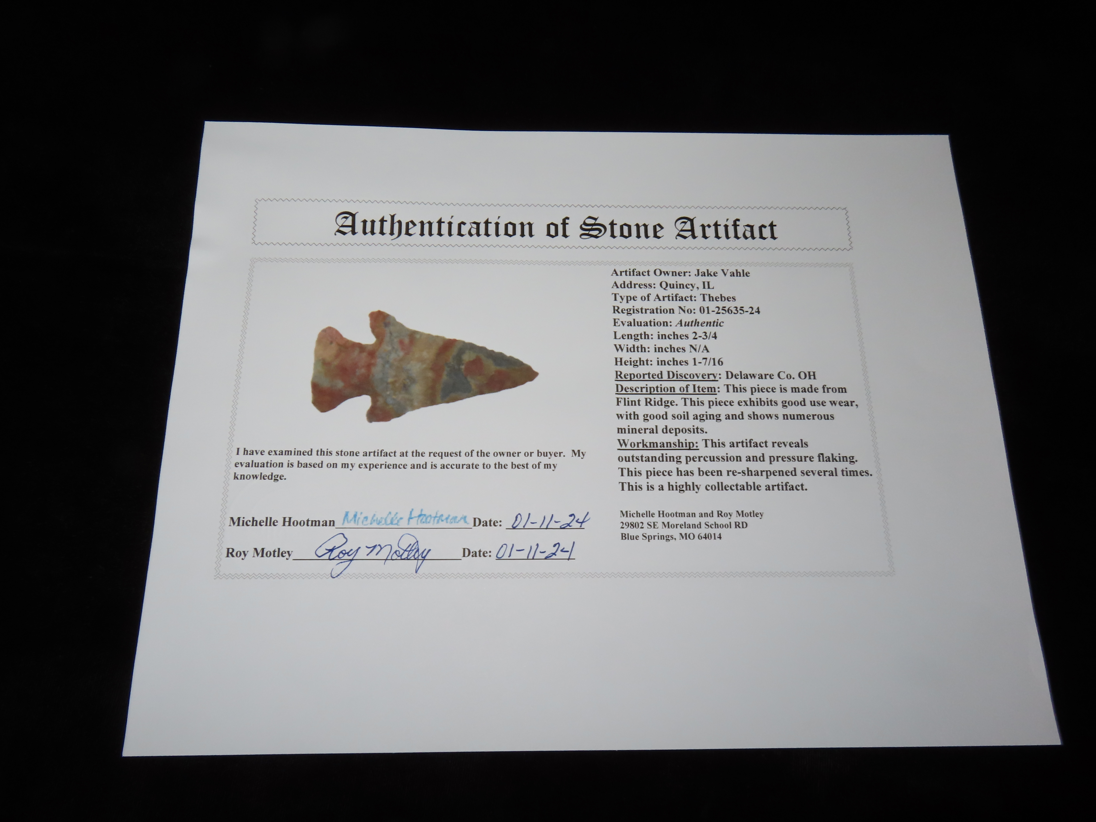 2 3/4" SUPER COLORFUL Flint Ridge Chert Thebes, Motley COA, found in Delaware Co., Ohio