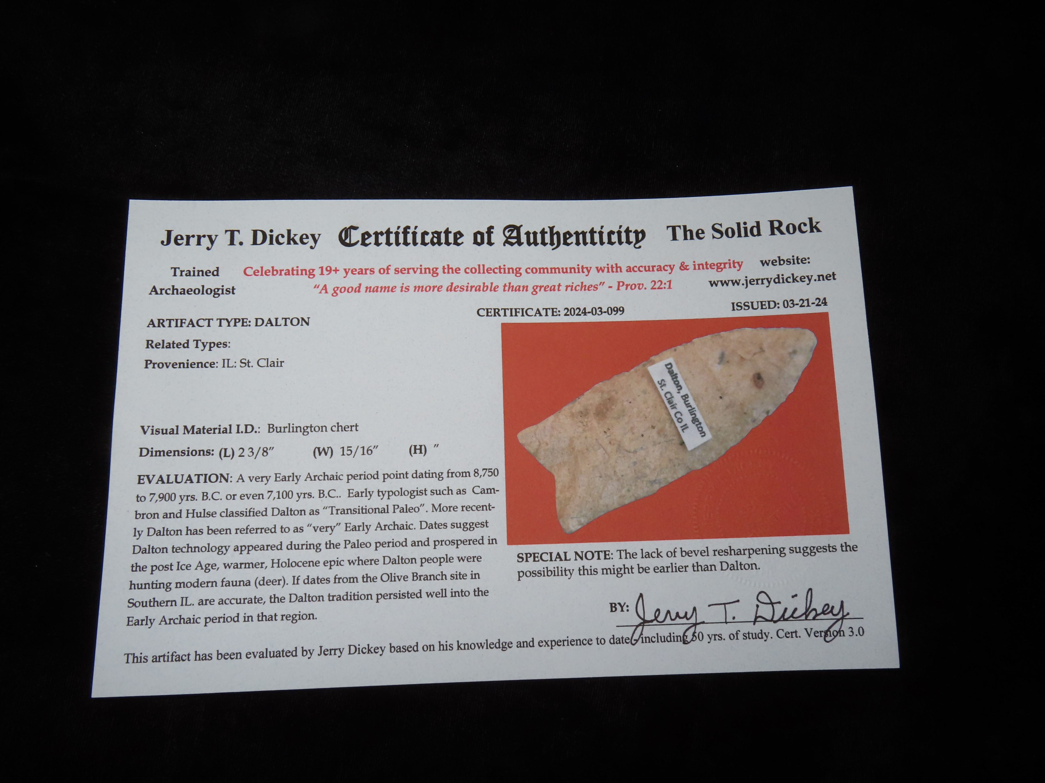 2 3/8″ Dalton, Dickey COA, found in St. Clair Co., Illinois,