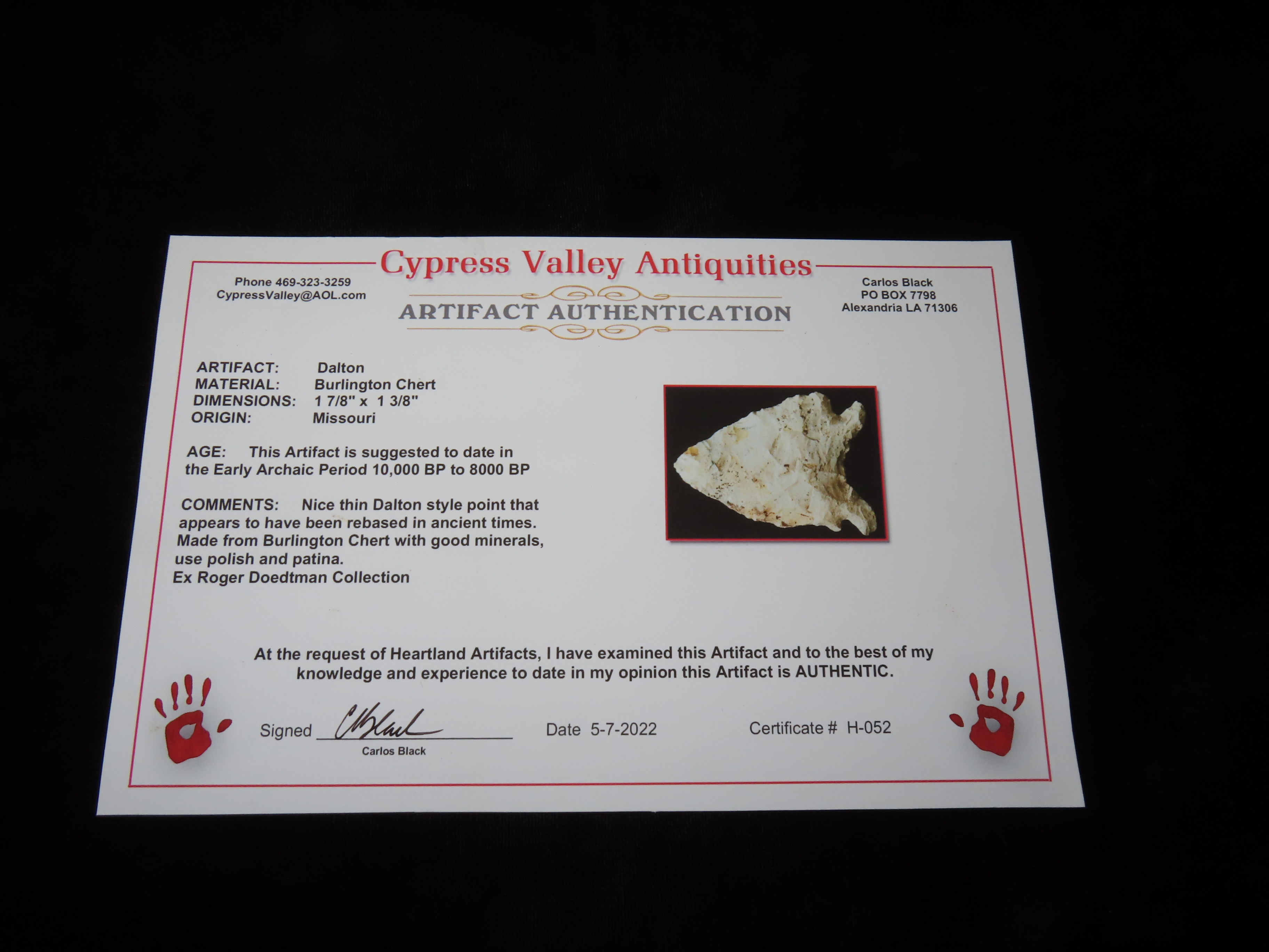 1 7/8″ Dalton, Black COA, found in Missouri, Ex Roger Doedtman Collection
