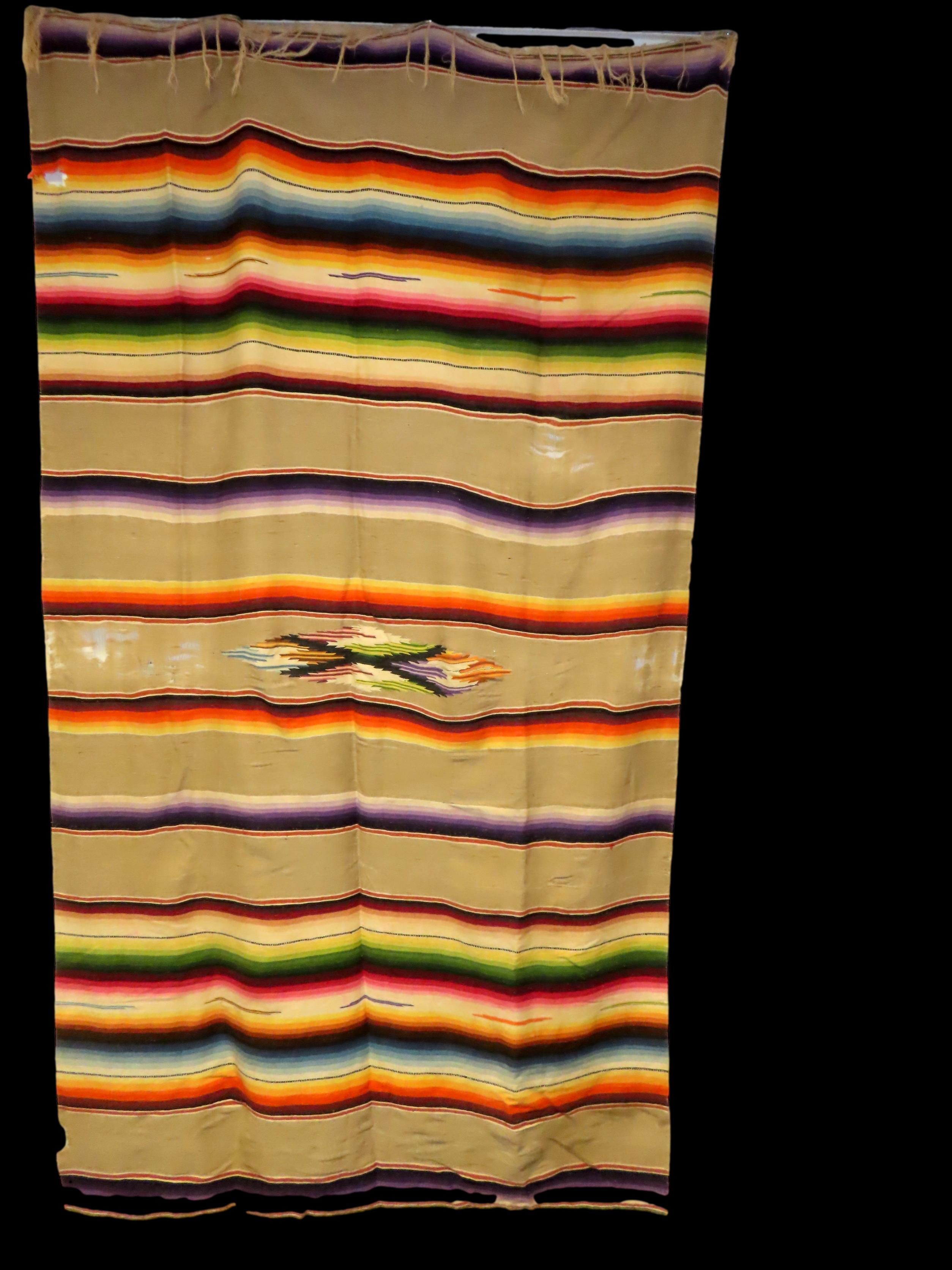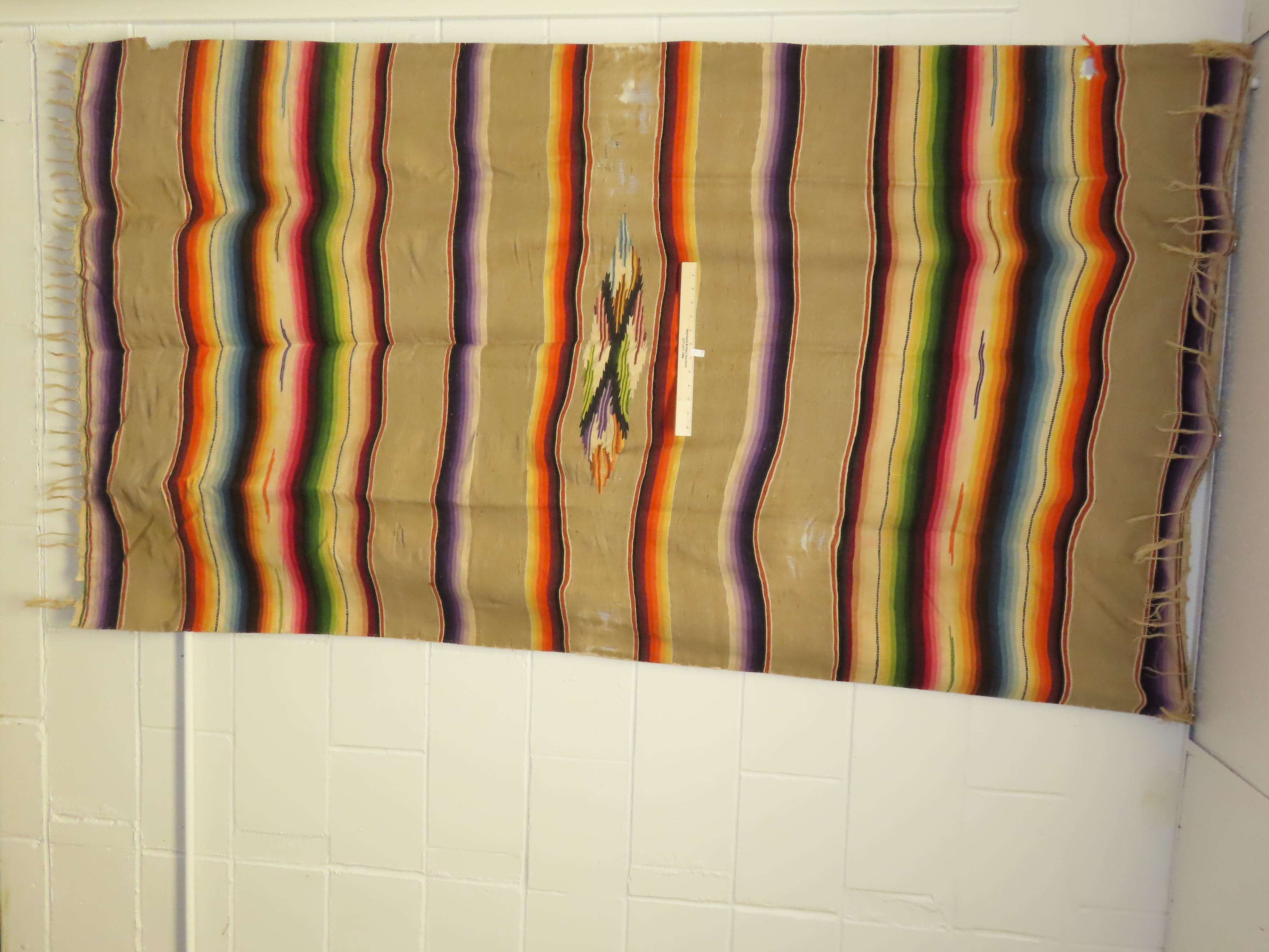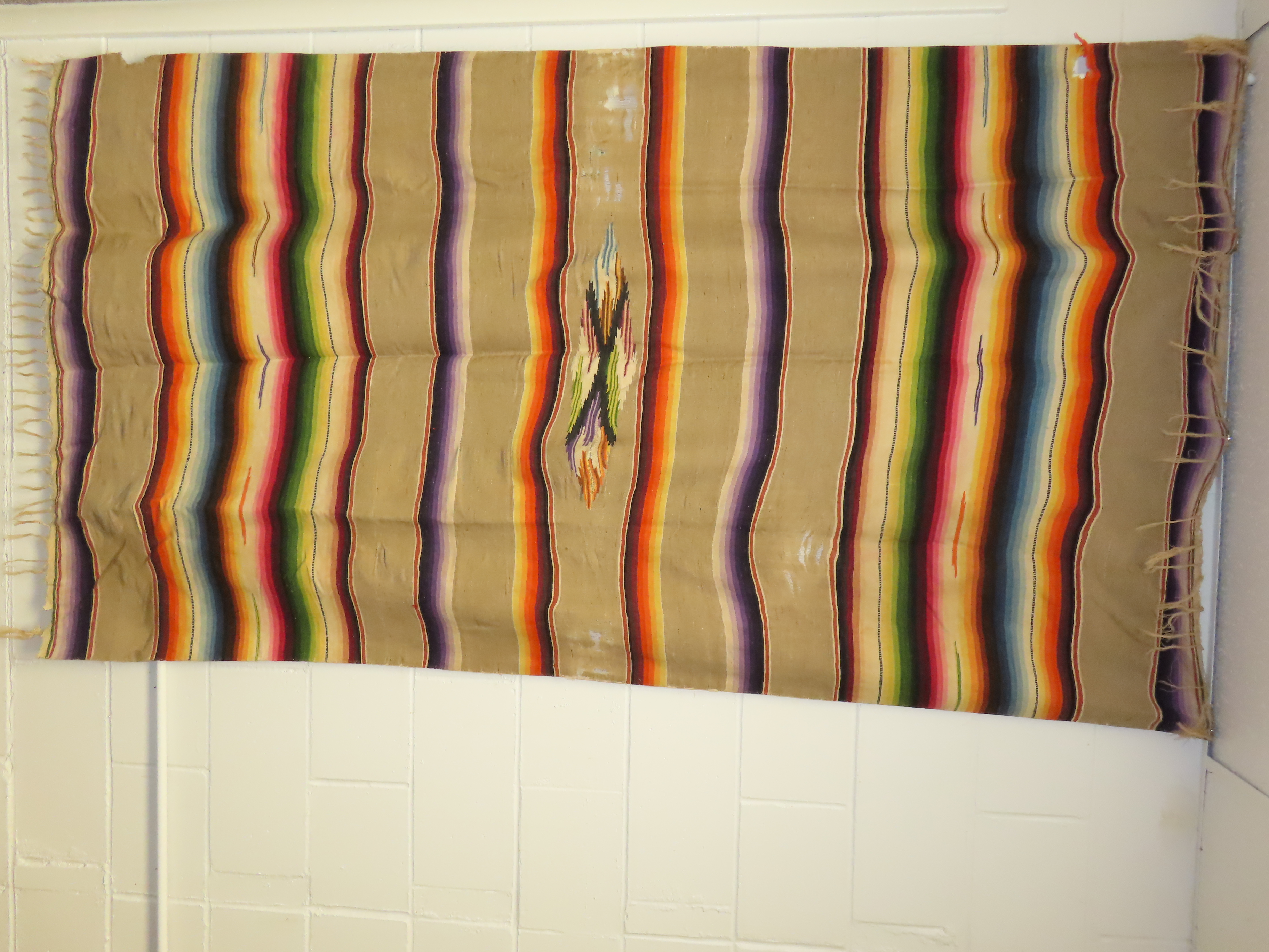 7′ x 45″ Southwestern-style Rug, displaying worn areas and small holes from use