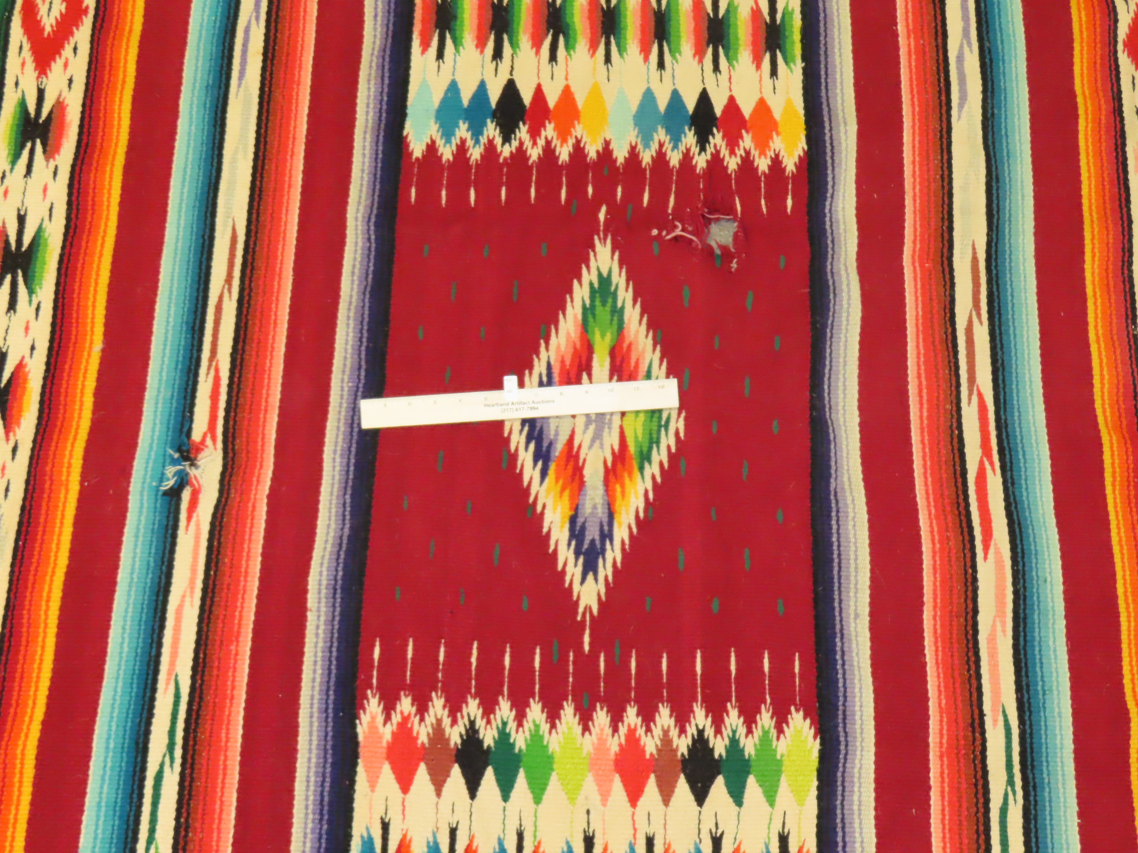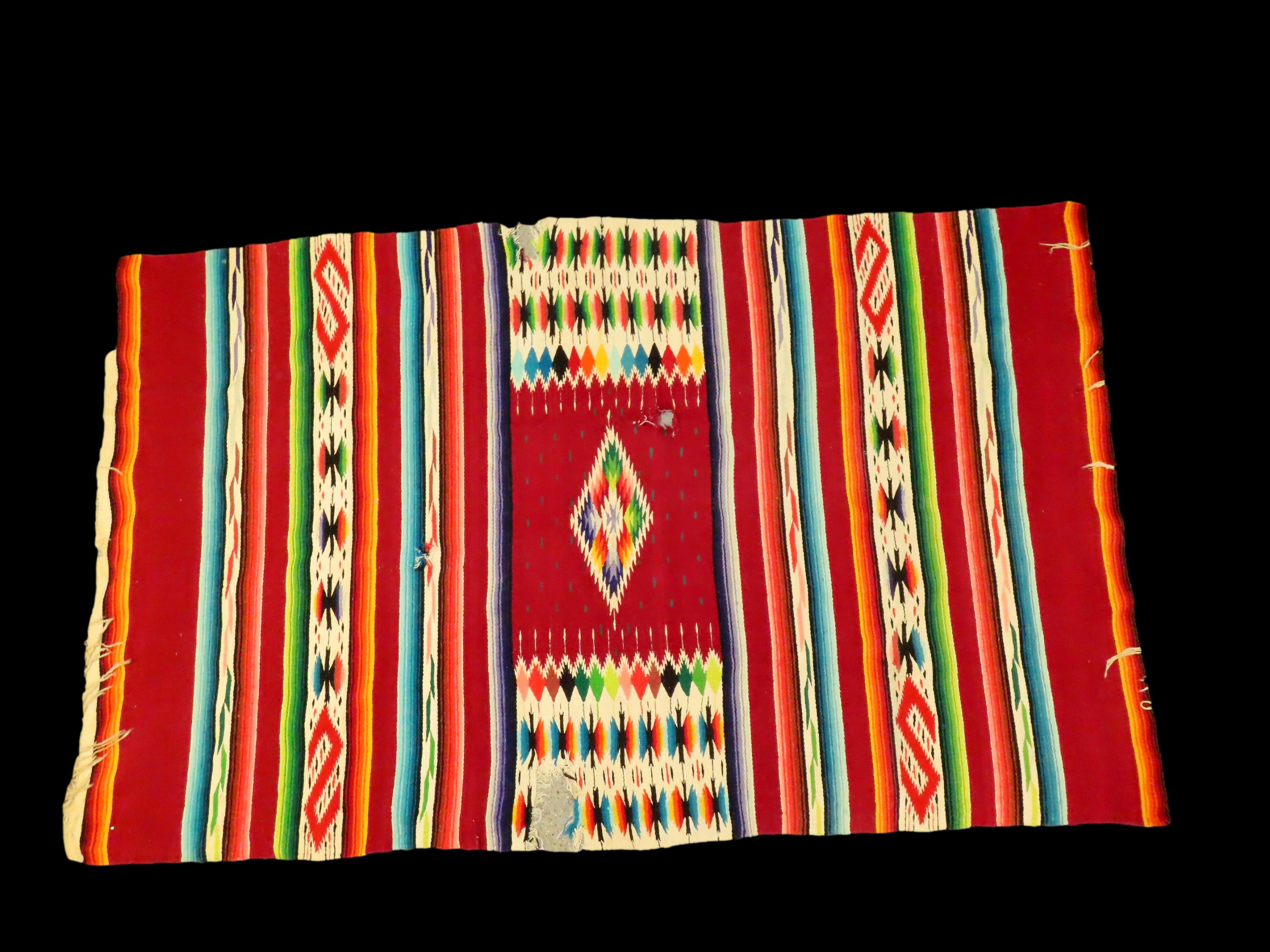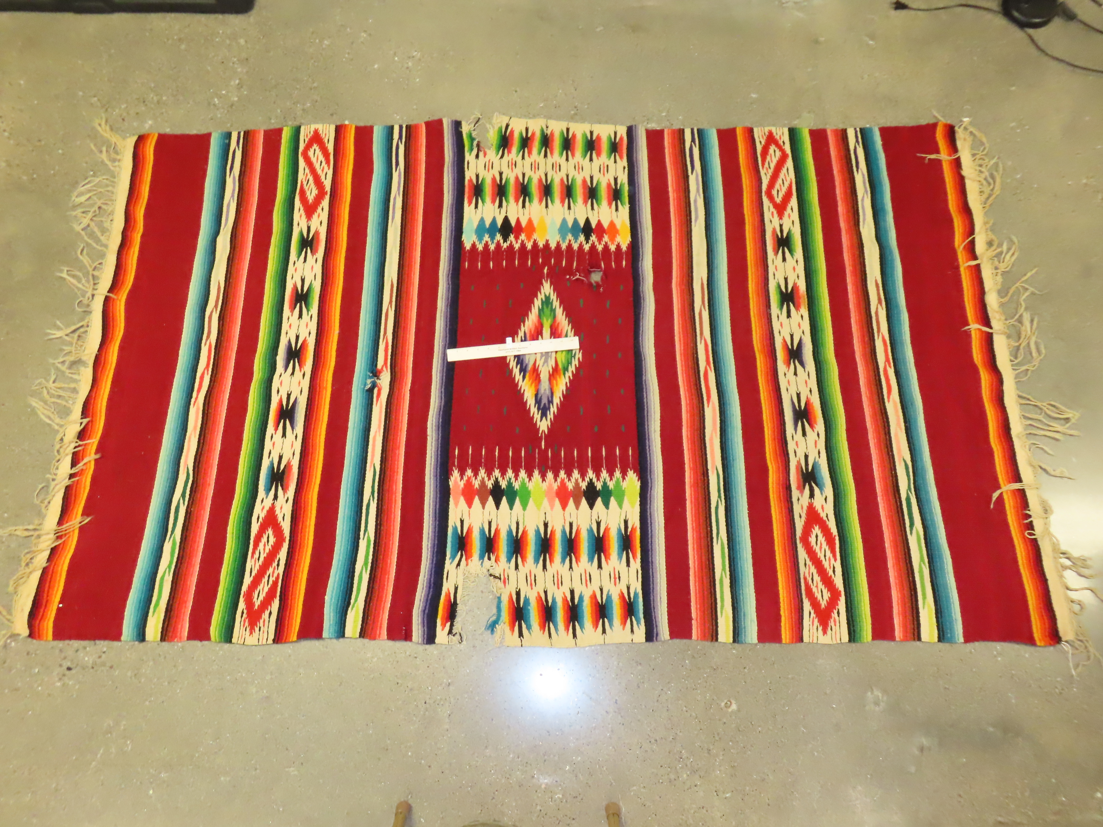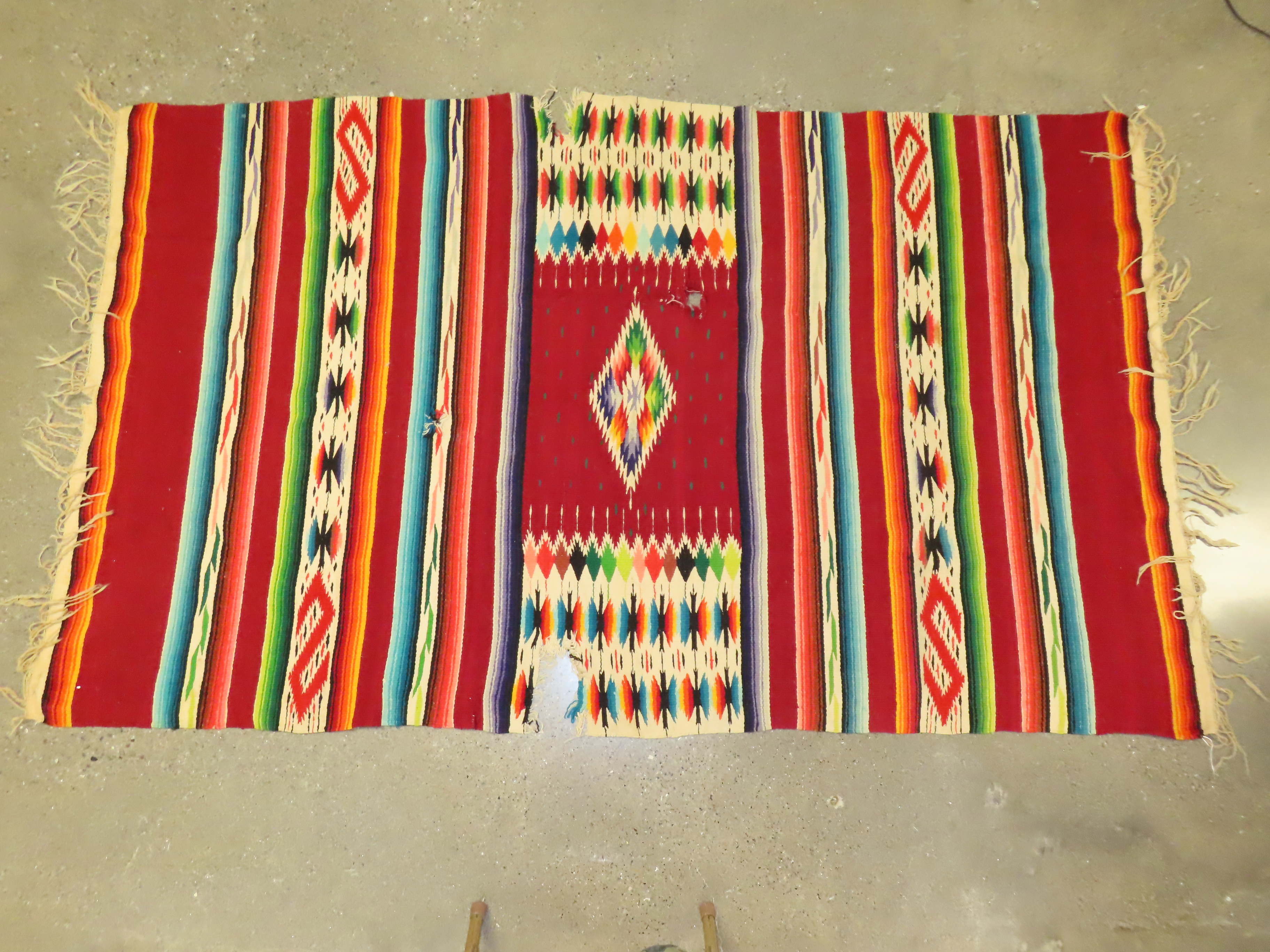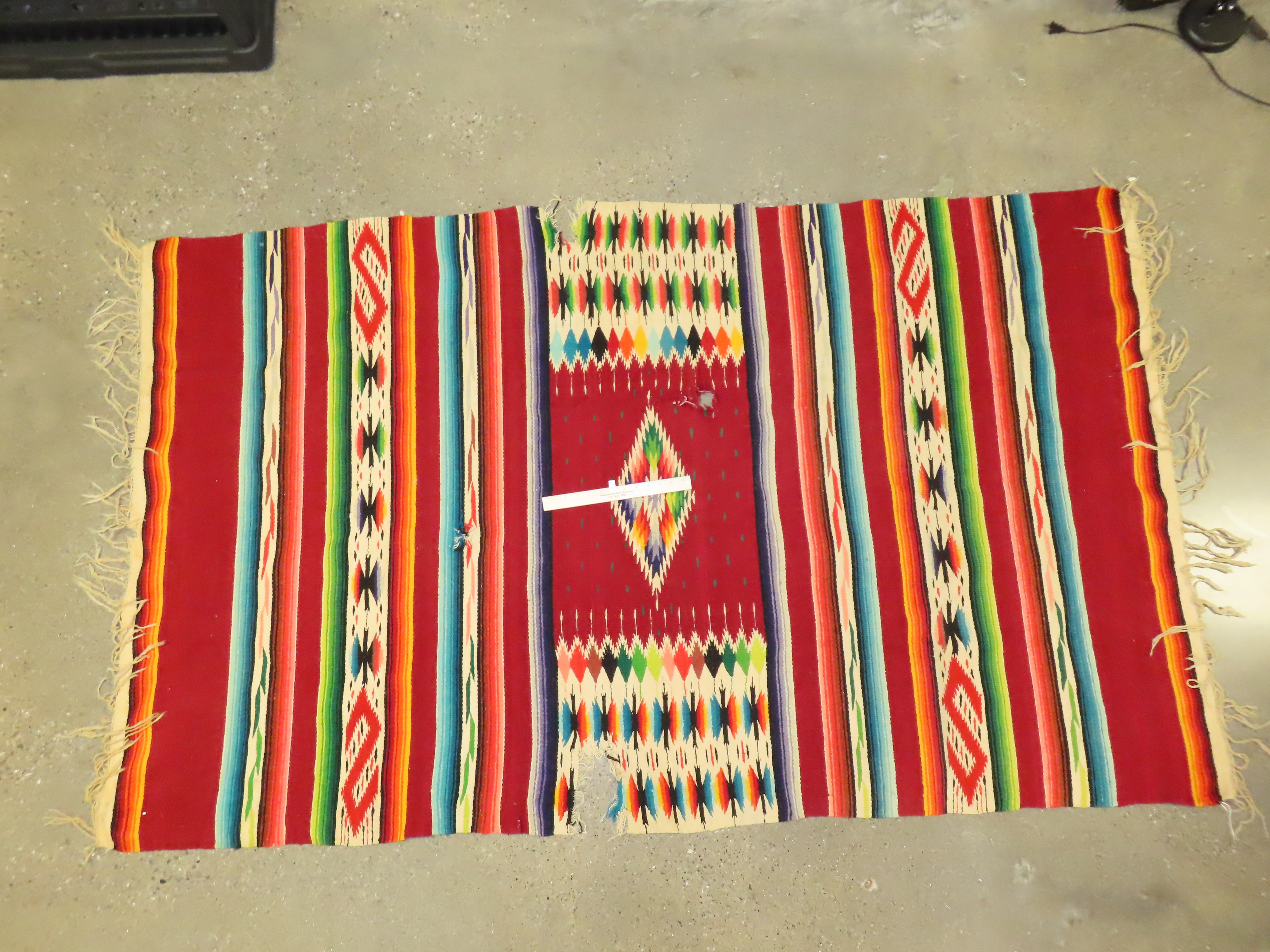 7′ x 54″ Southwestern-style Rug, displaying worn areas and small holes from use