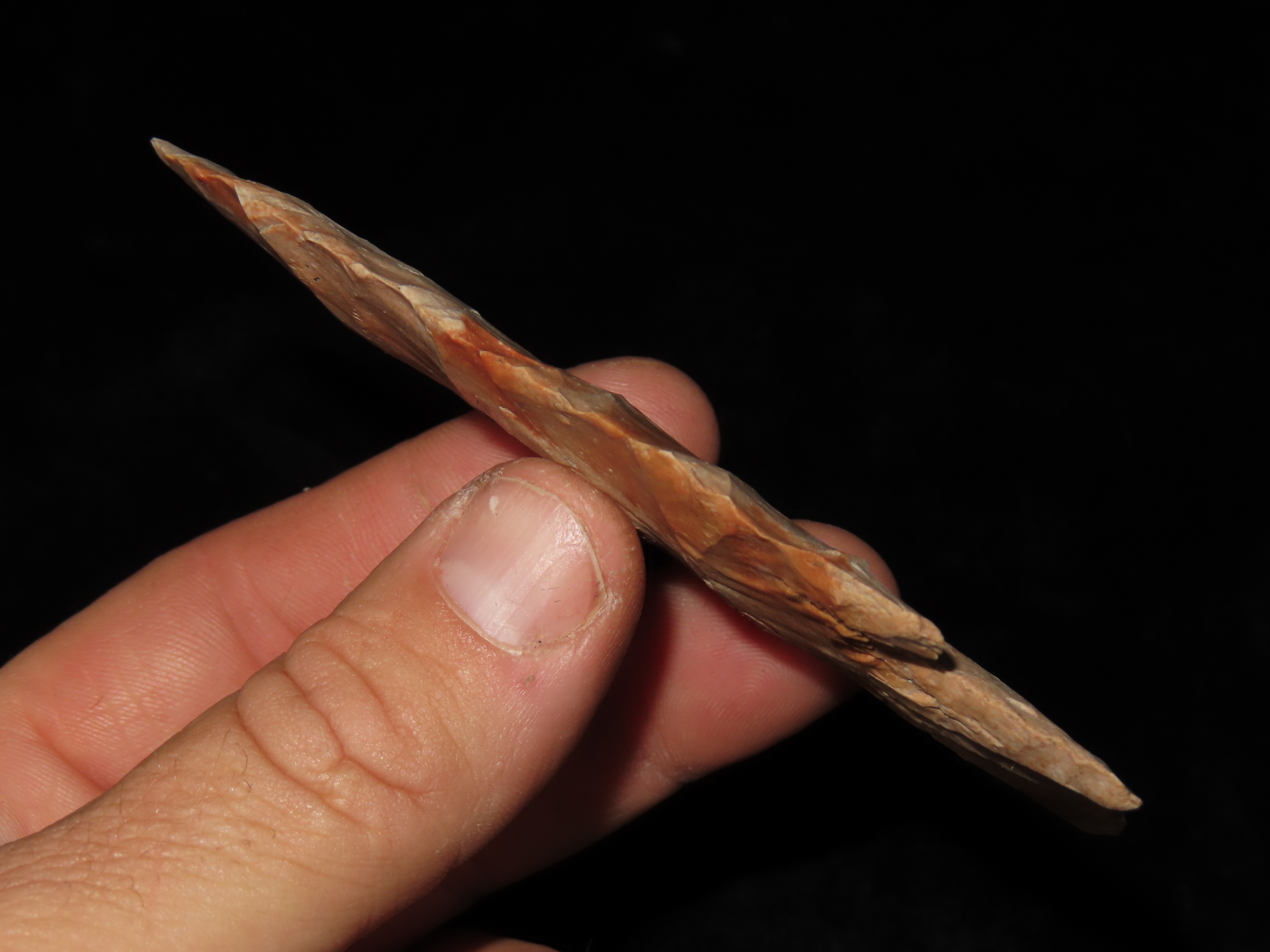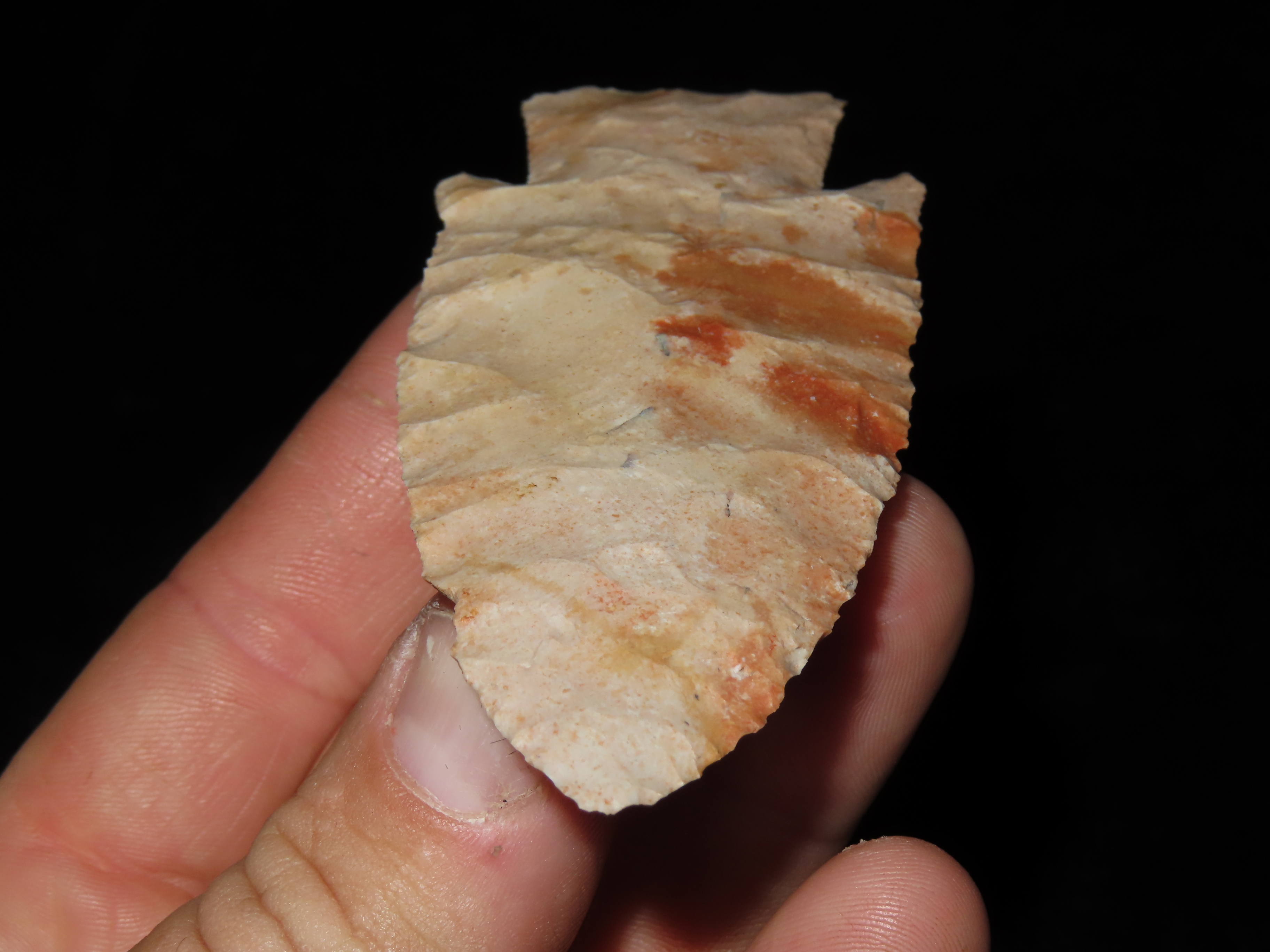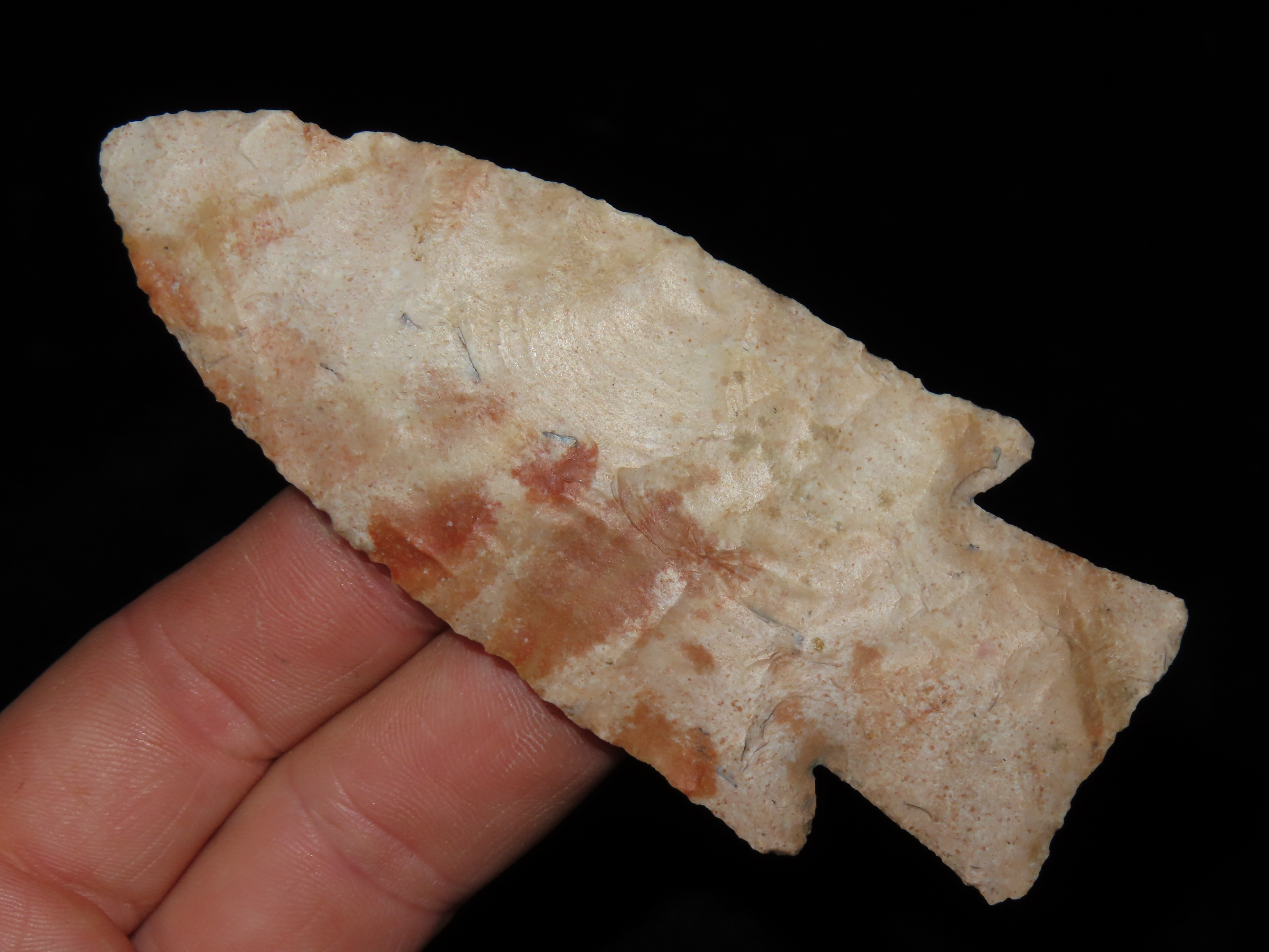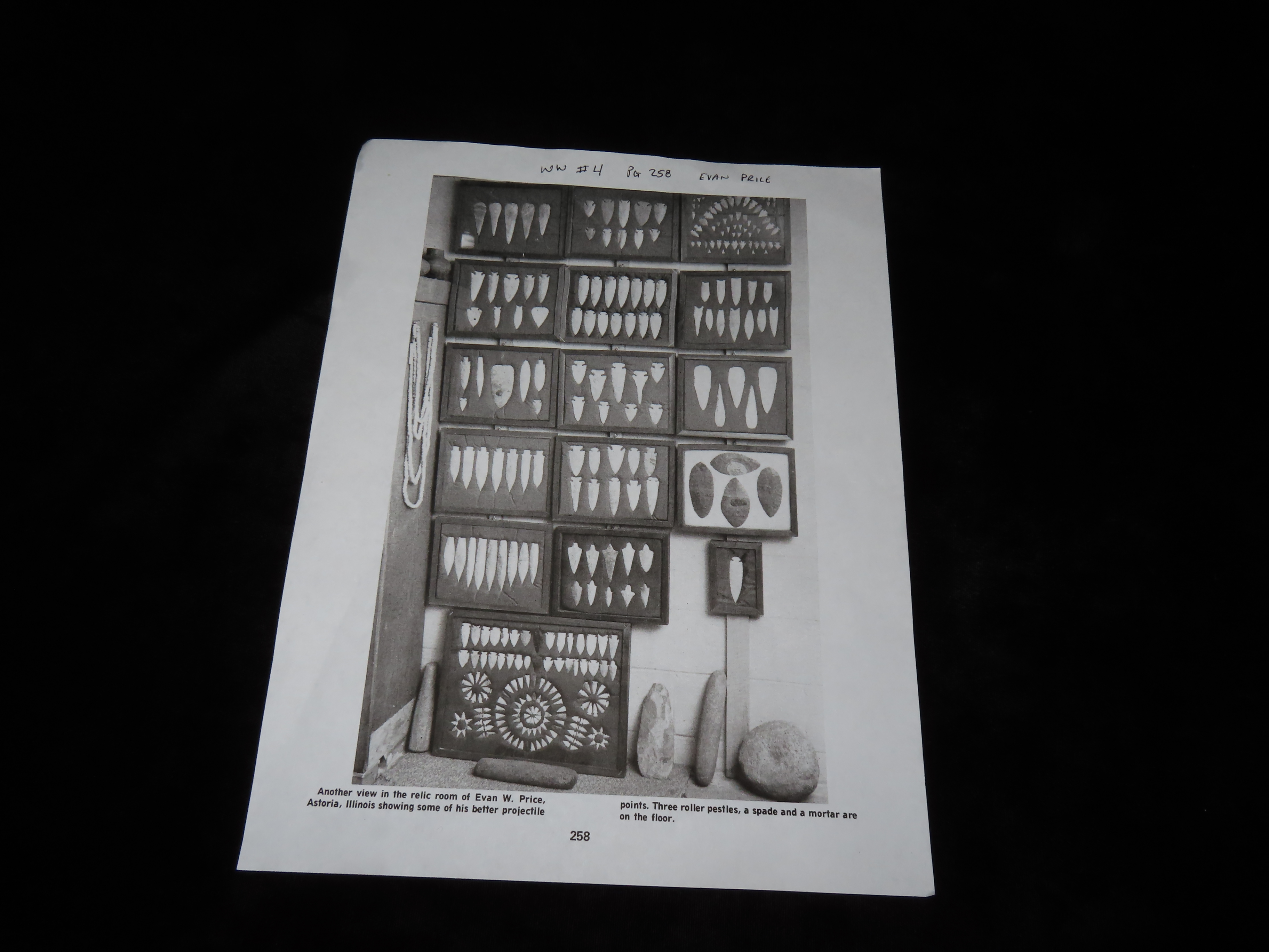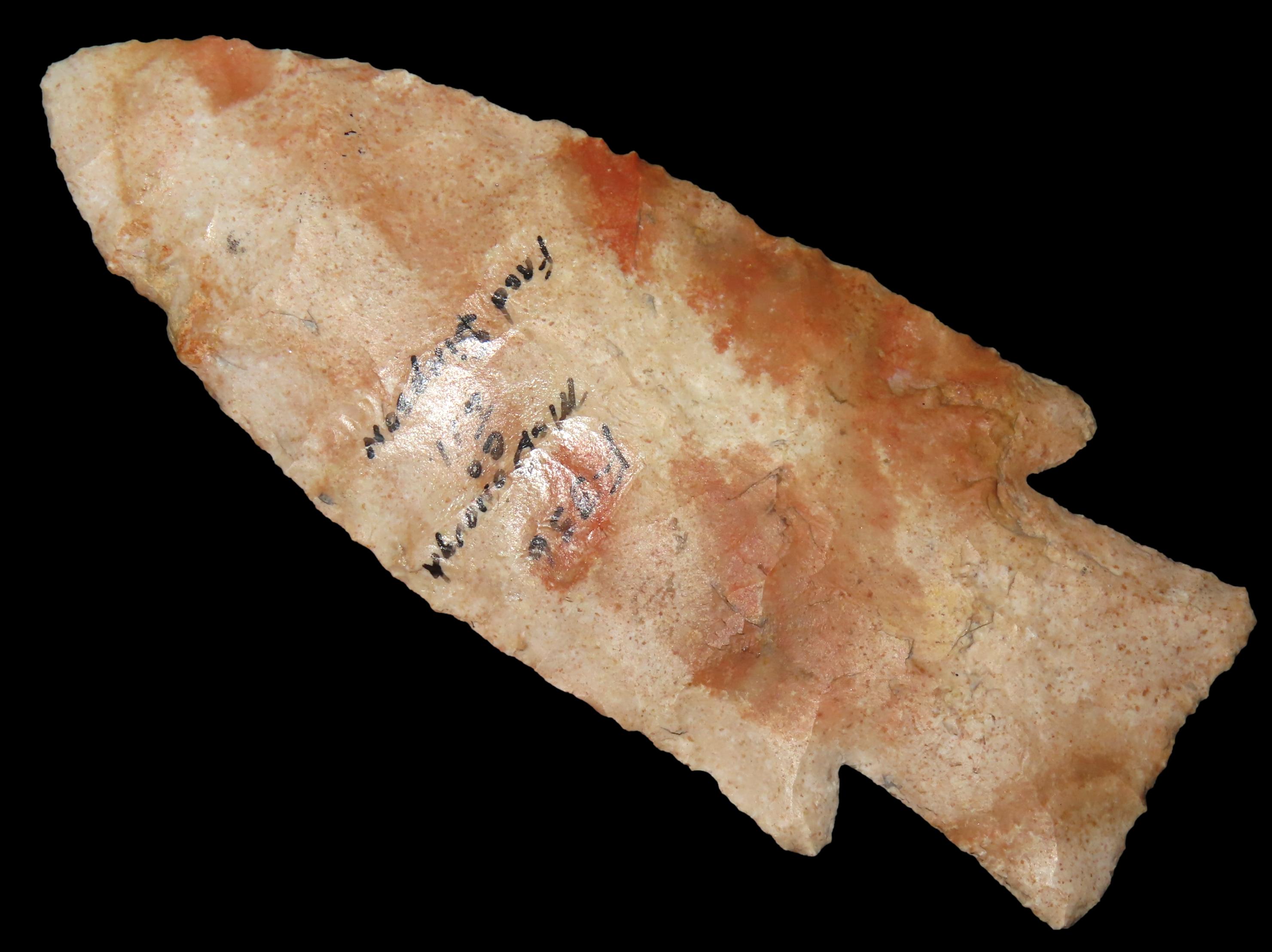 4 3/16″ Hardin, 3xCOA-Dickey/Bennett/Motley, found 8/25/1962 in McDonough Co., Illinois and made of colorful Payson Chert, this point is featured in Who’s Who #4, Pg 258 as part of the Evan W. Price Collection from Astoria Illinois, Ex Fred Simpson, Ex Rod Price Collections