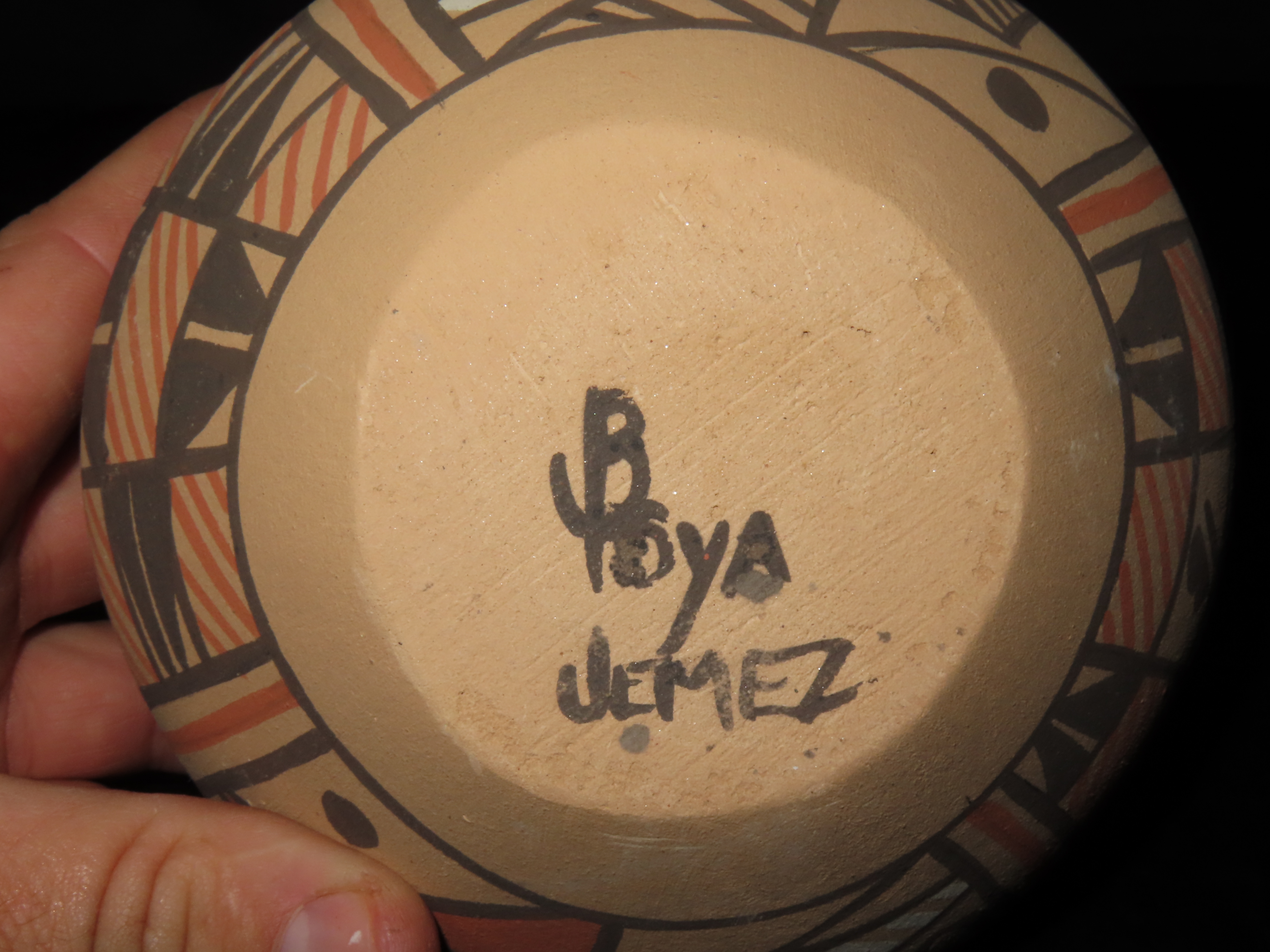 Authentic Native American Hand-crafted Pottery from the American Southwest, signed Boya? Jemez; see photos for artist signature(if available) and approx. sizes. Key words: Native American, Indian, Signed, Navajo, Southwest, Pottery, Kokopelli, Fetish, Animal, Effigy, Anthropomorphic, Horse Hair, Terra Cotta, Hand-crafted, Fired, Glazed, Painted, Vintage, Santa Clara, Redware, Hopi, Acoma, Wedding Vase, Bowl, Vessel, Signed, Clay, Bear, Turtle, Canoe, Totem Pole, Totem, Anasazi, Cliff Dwelling, Vase, Urn, Dish, Red Clay, Black-on-black ware, Mud Hut, Incense, Lidded Box, Lidded bowl, University, Art, Project, Souvenir, Trade, Tourist, Tourism, Reservation, Hand made, New Mexico, Arizona, Red, Green, Blue, Yellow, Orange, Purple,Black
