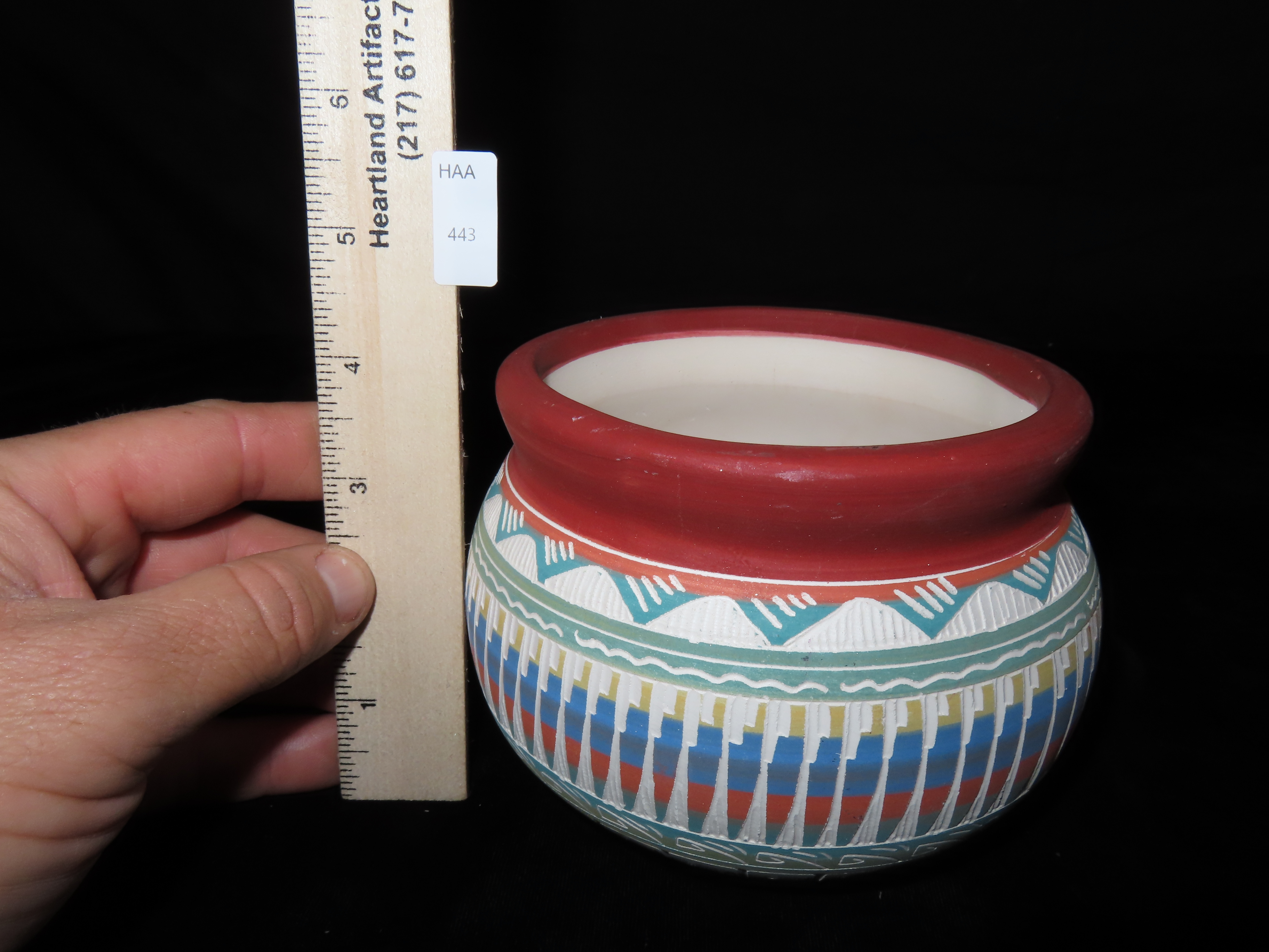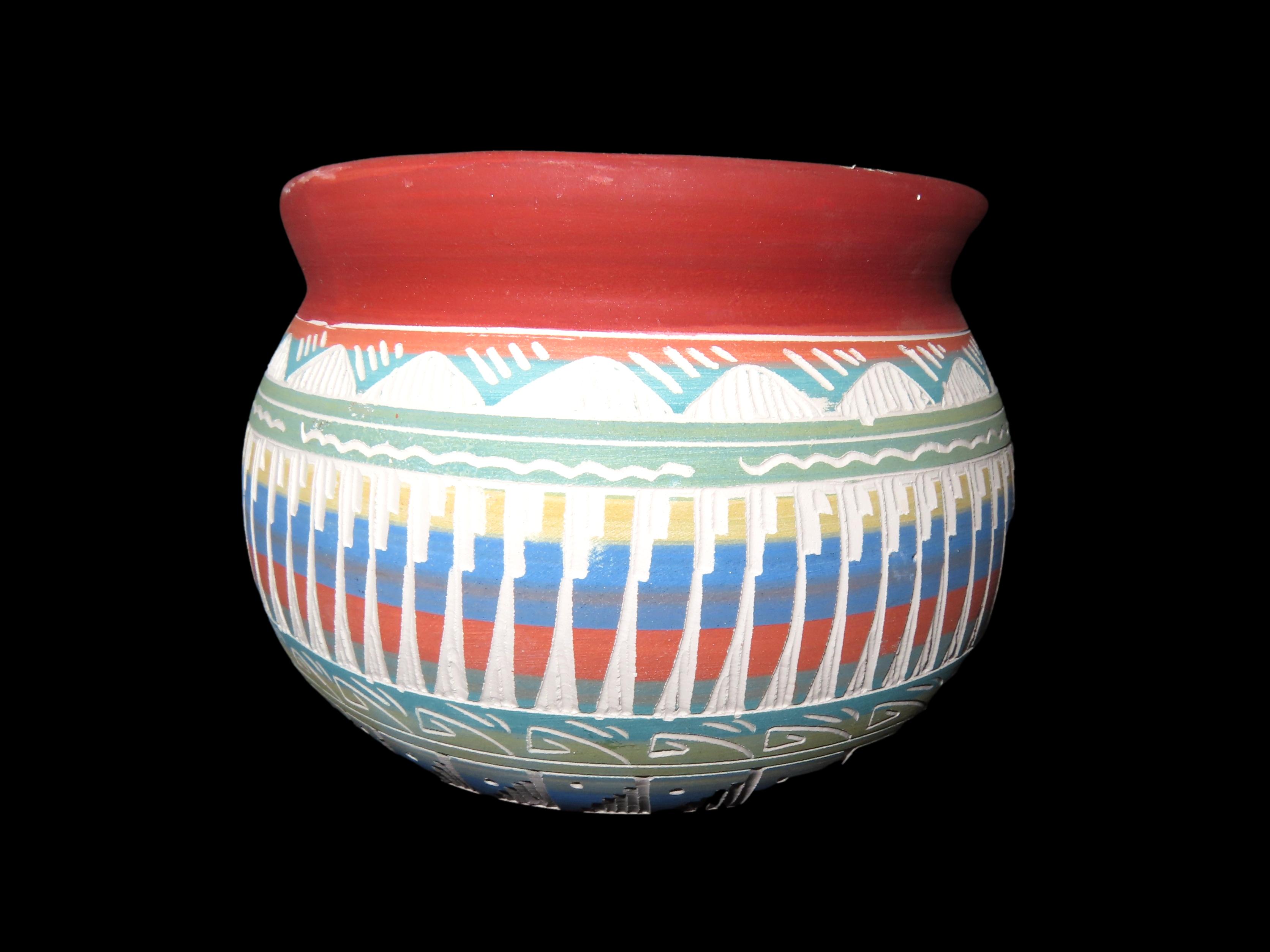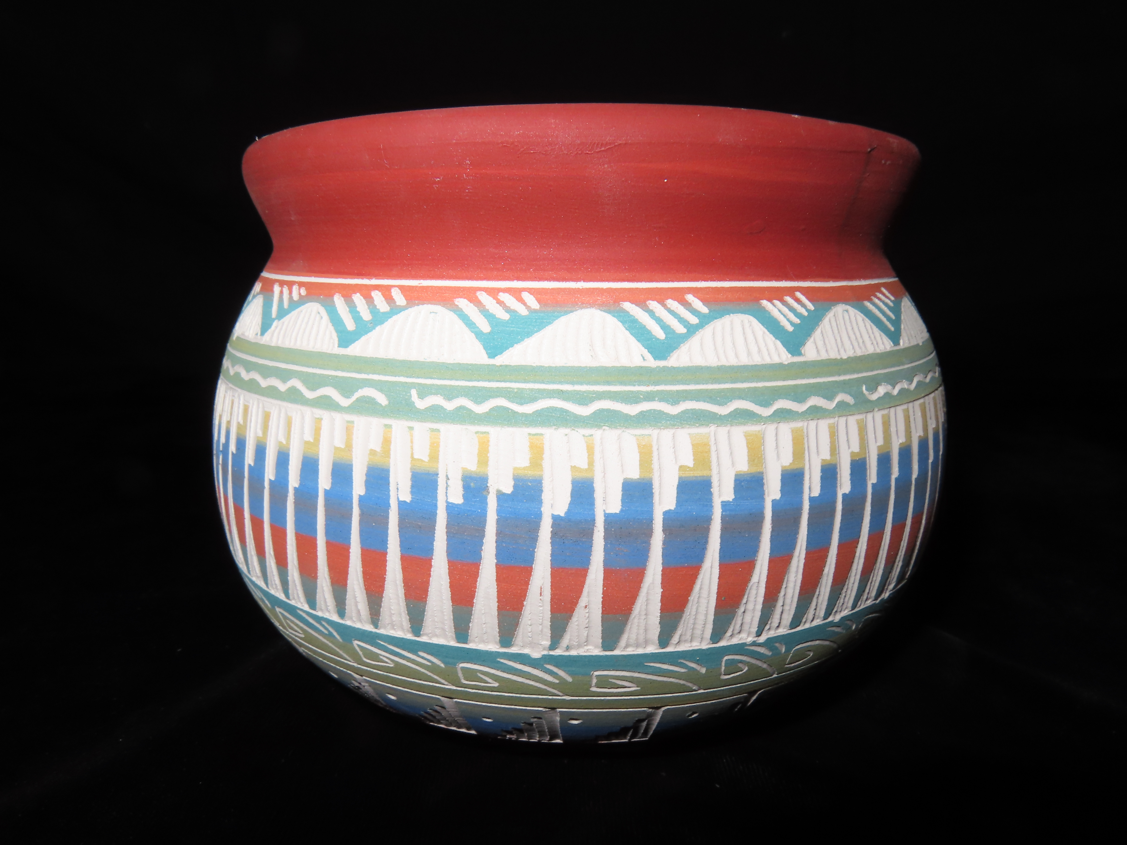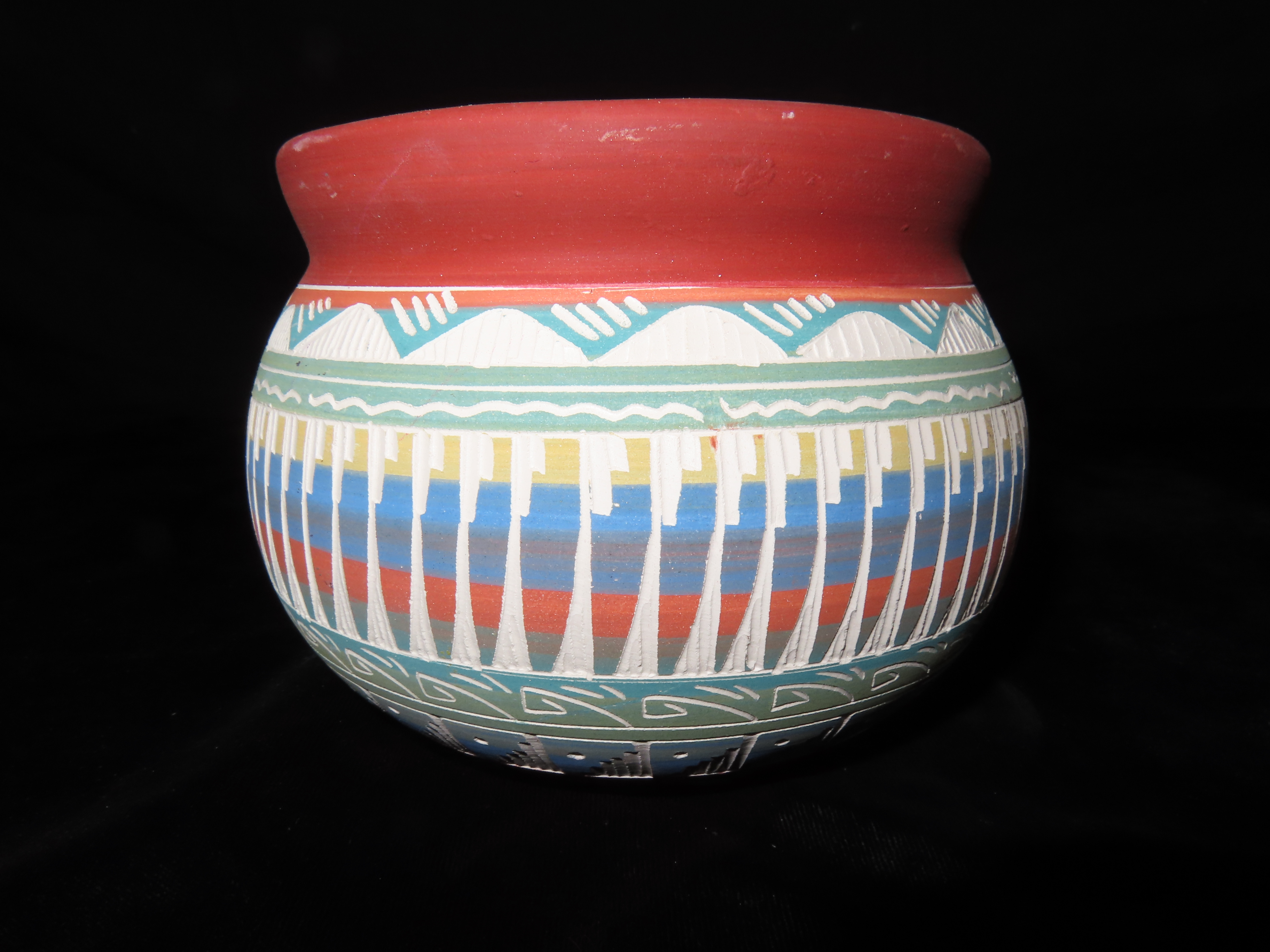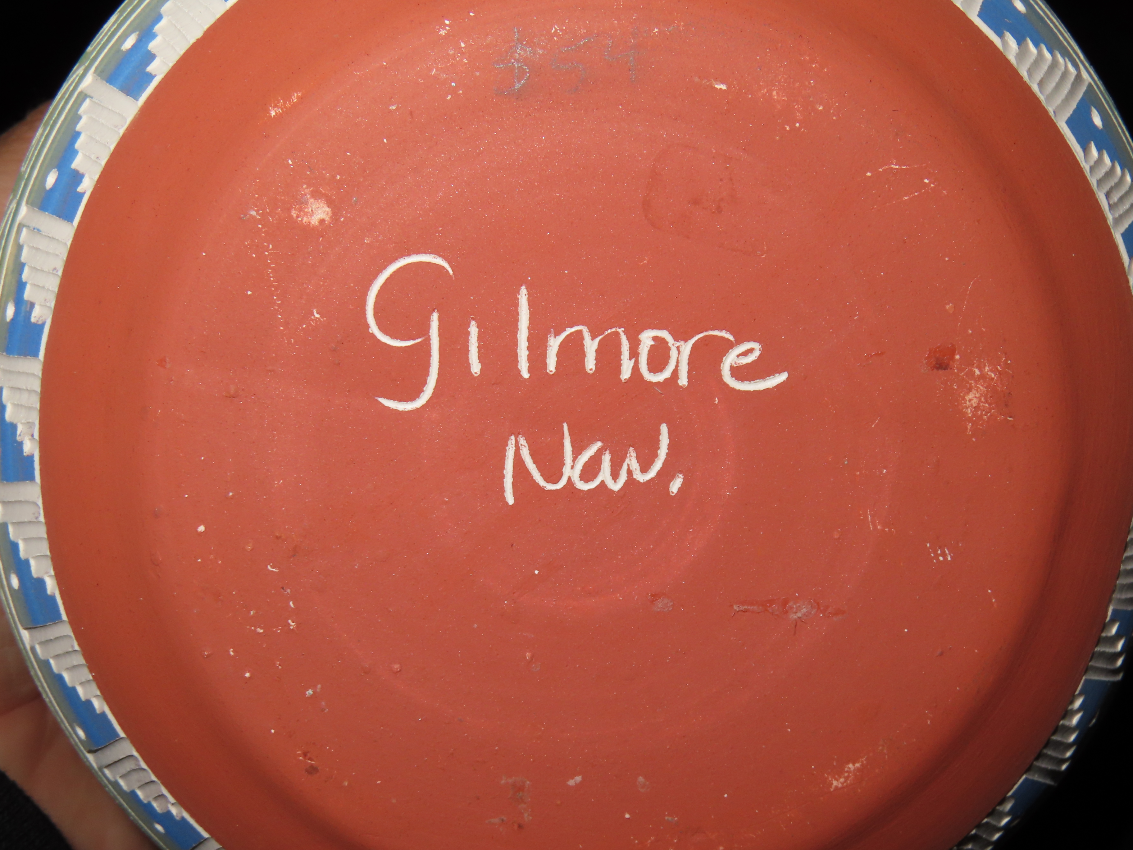 Authentic Native American Hand-crafted Pottery from the American Southwest, signed Gilmore Nav.; see photos for artist signature(if available) and approx. sizes. Key words: Native American, Indian, Signed, Navajo, Southwest, Pottery, Kokopelli, Fetish, Animal, Effigy, Anthropomorphic, Horse Hair, Terra Cotta, Hand-crafted, Fired, Glazed, Painted, Vintage, Santa Clara, Redware, Hopi, Acoma, Wedding Vase, Bowl, Vessel, Signed, Clay, Bear, Turtle, Canoe, Totem Pole, Totem, Anasazi, Cliff Dwelling, Vase, Urn, Dish, Red Clay, Black-on-black ware, Mud Hut, Incense, Lidded Box, Lidded bowl, University, Art, Project, Souvenir, Trade, Tourist, Tourism, Reservation, Hand made, New Mexico, Arizona, Red, Green, Blue, Yellow, Orange, Purple,Black