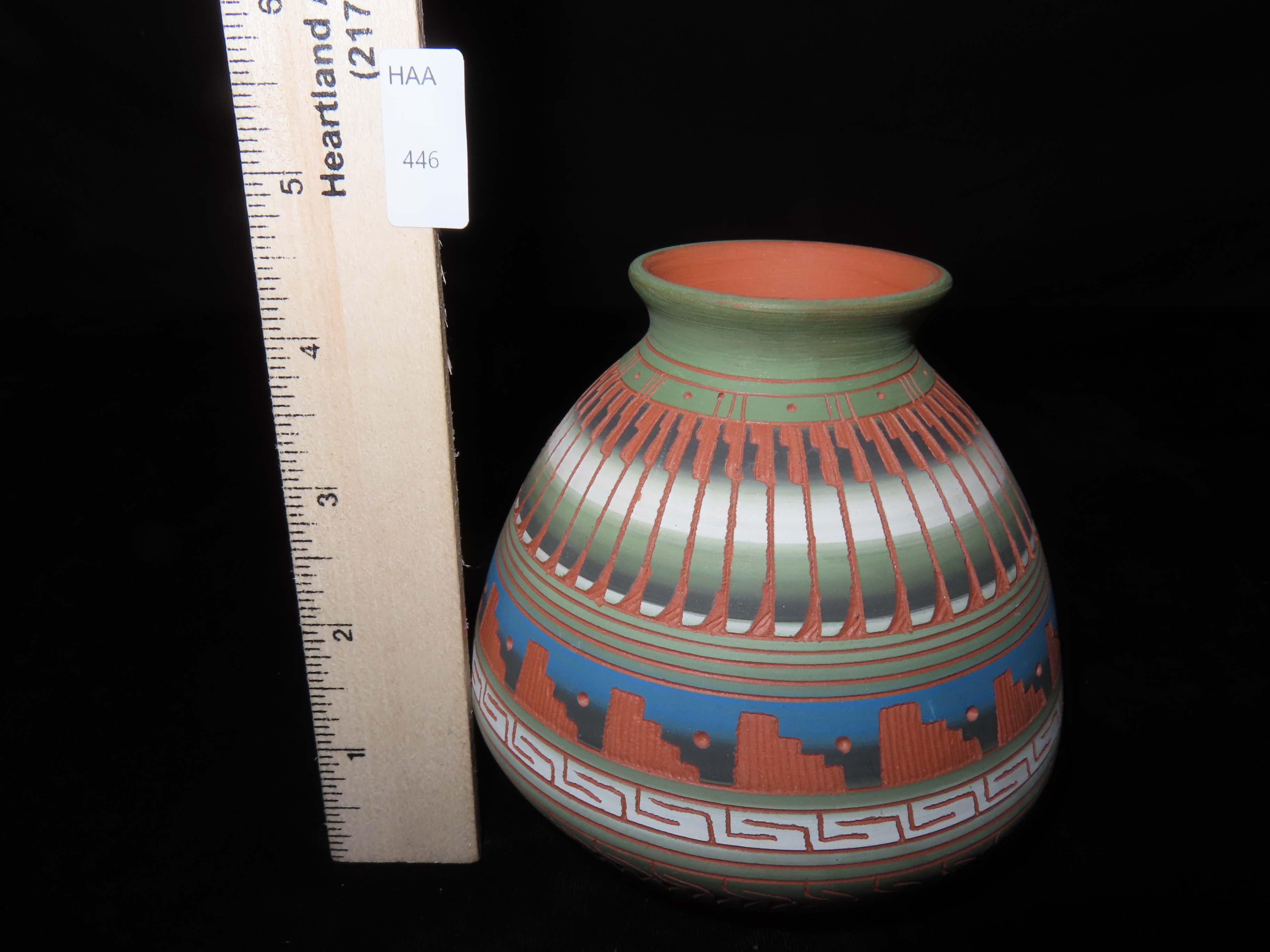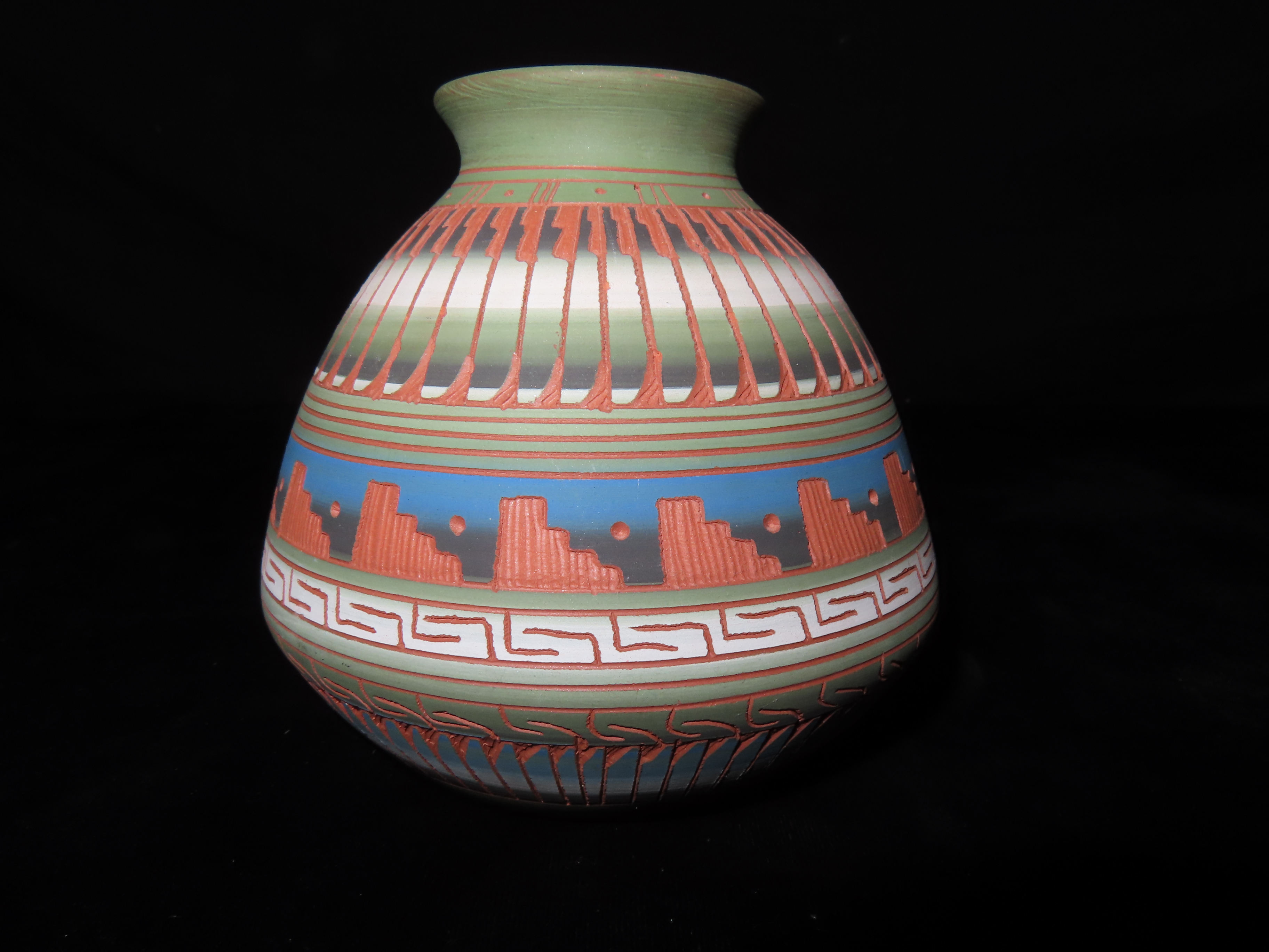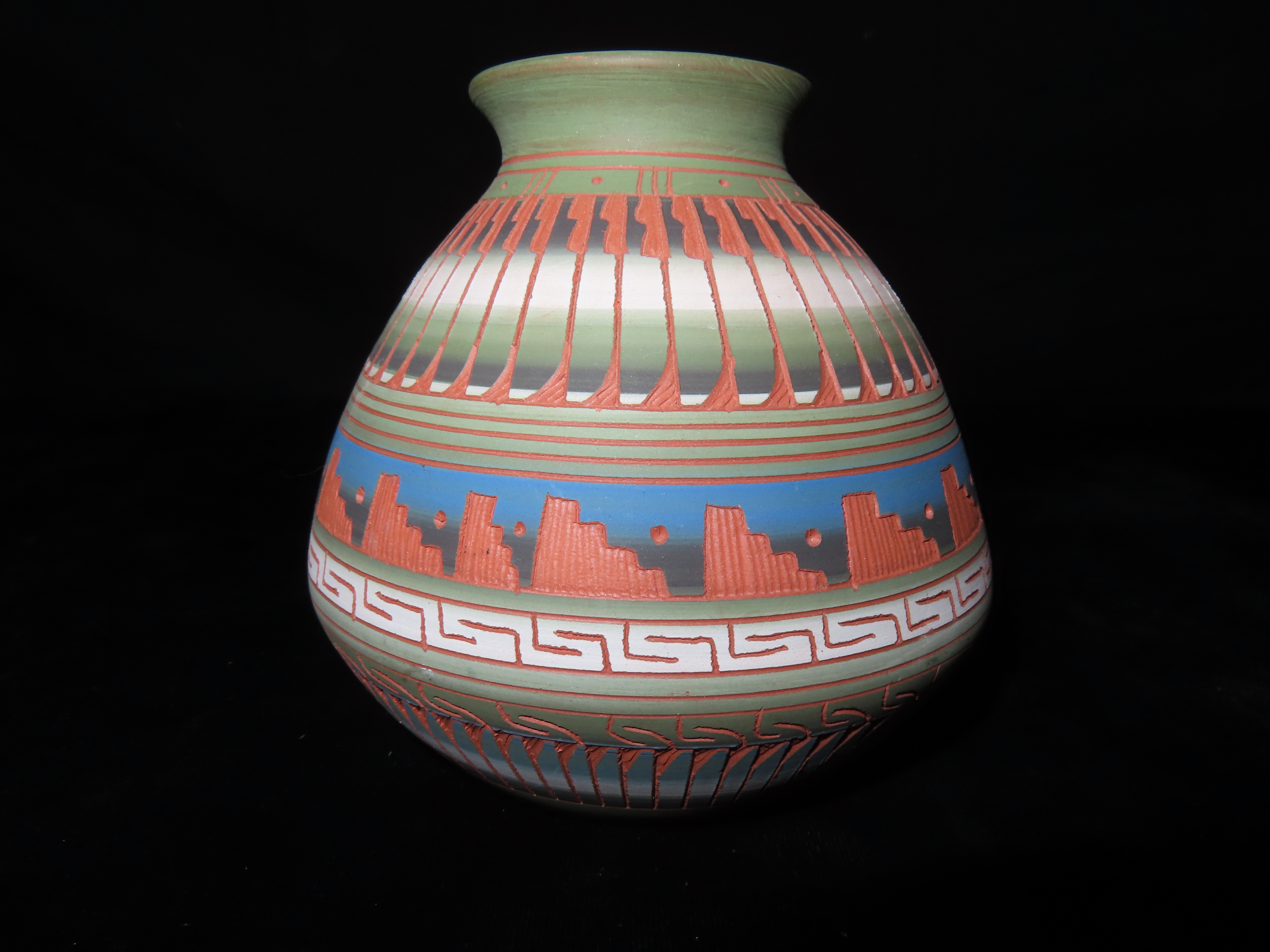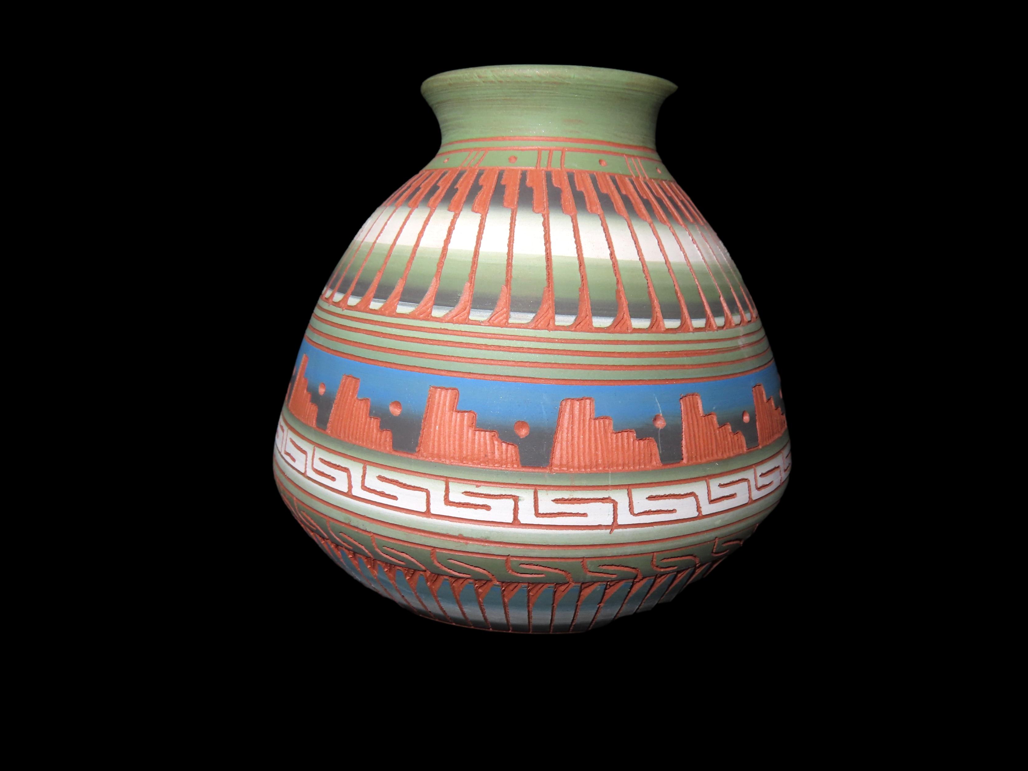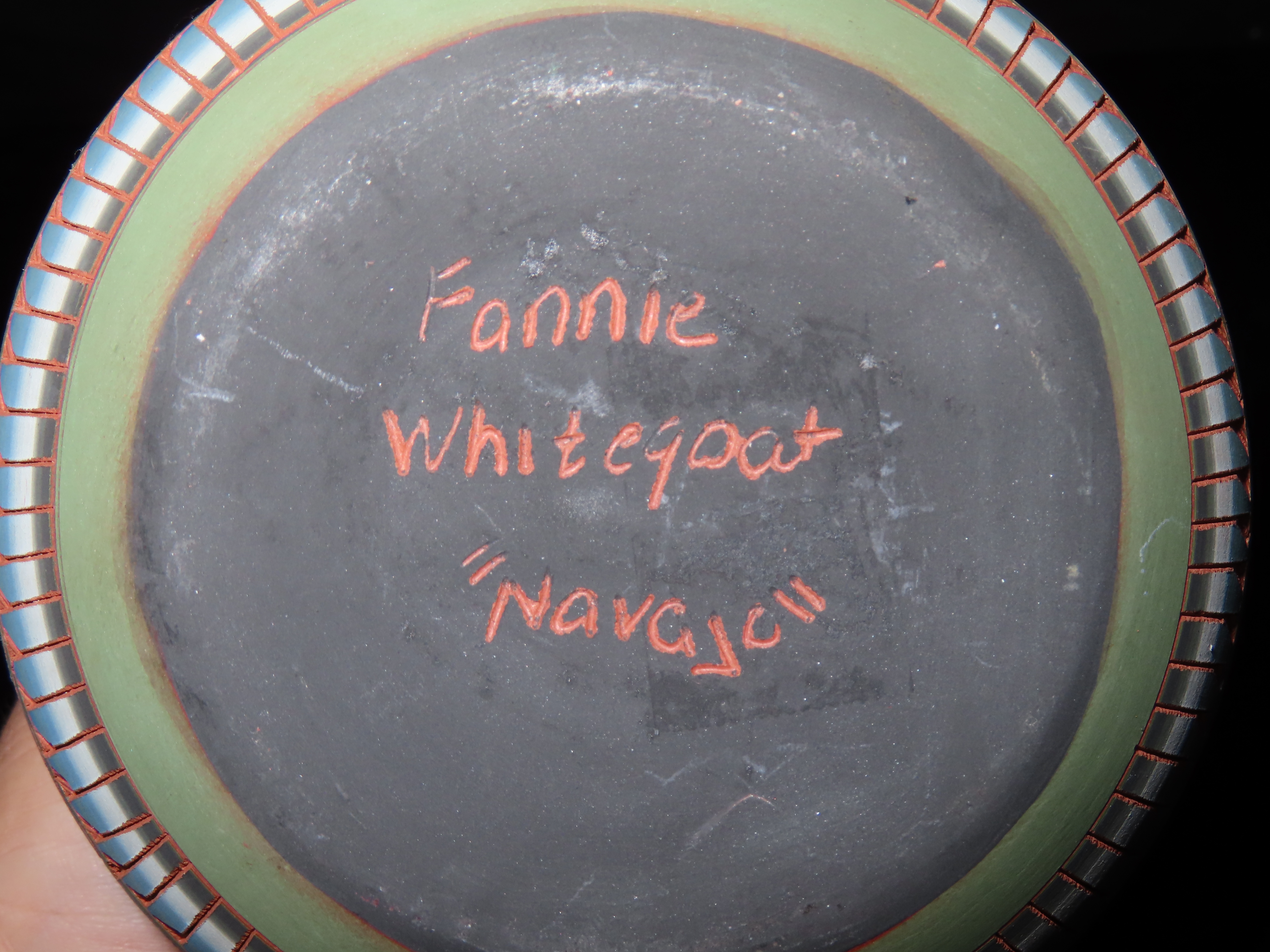 Authentic Native American Hand-crafted Pottery from the American Southwest, signed Fannie Smith Navajo; see photos for artist signature(if available) and approx. sizes. Key words: Native American, Indian, Signed, Navajo, Southwest, Pottery, Kokopelli, Fetish, Animal, Effigy, Anthropomorphic, Horse Hair, Terra Cotta, Hand-crafted, Fired, Glazed, Painted, Vintage, Santa Clara, Redware, Hopi, Acoma, Wedding Vase, Bowl, Vessel, Signed, Clay, Bear, Turtle, Canoe, Totem Pole, Totem, Anasazi, Cliff Dwelling, Vase, Urn, Dish, Red Clay, Black-on-black ware, Mud Hut, Incense, Lidded Box, Lidded bowl, University, Art, Project, Souvenir, Trade, Tourist, Tourism, Reservation, Hand made, New Mexico, Arizona, Red, Green, Blue, Yellow, Orange, Purple,Black