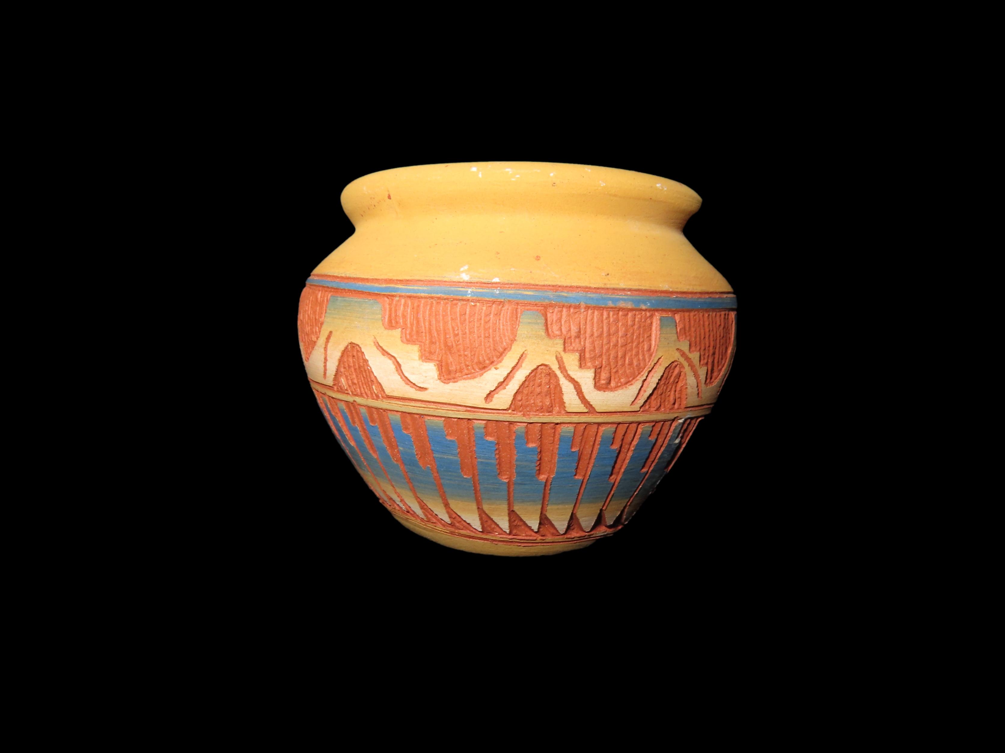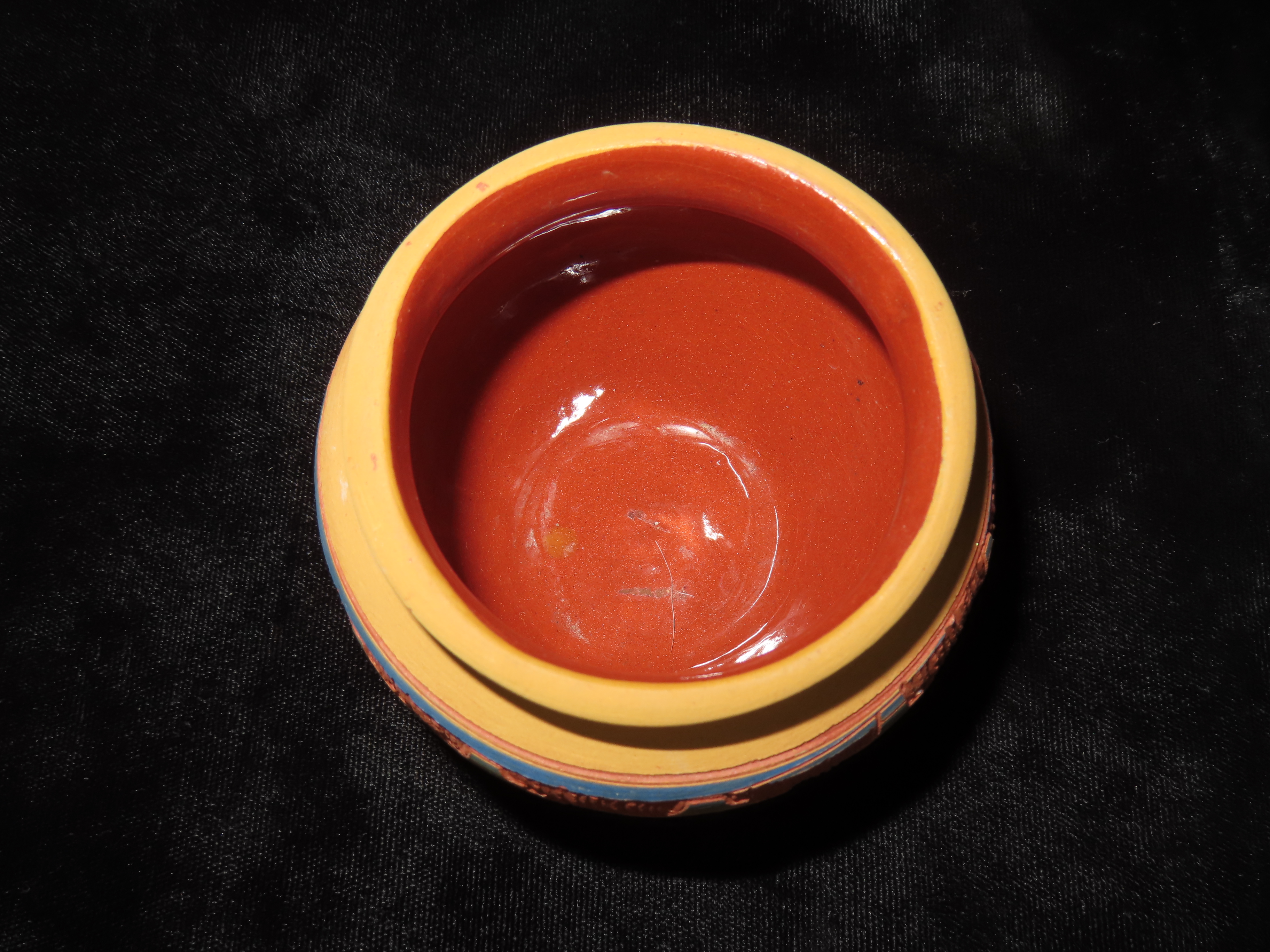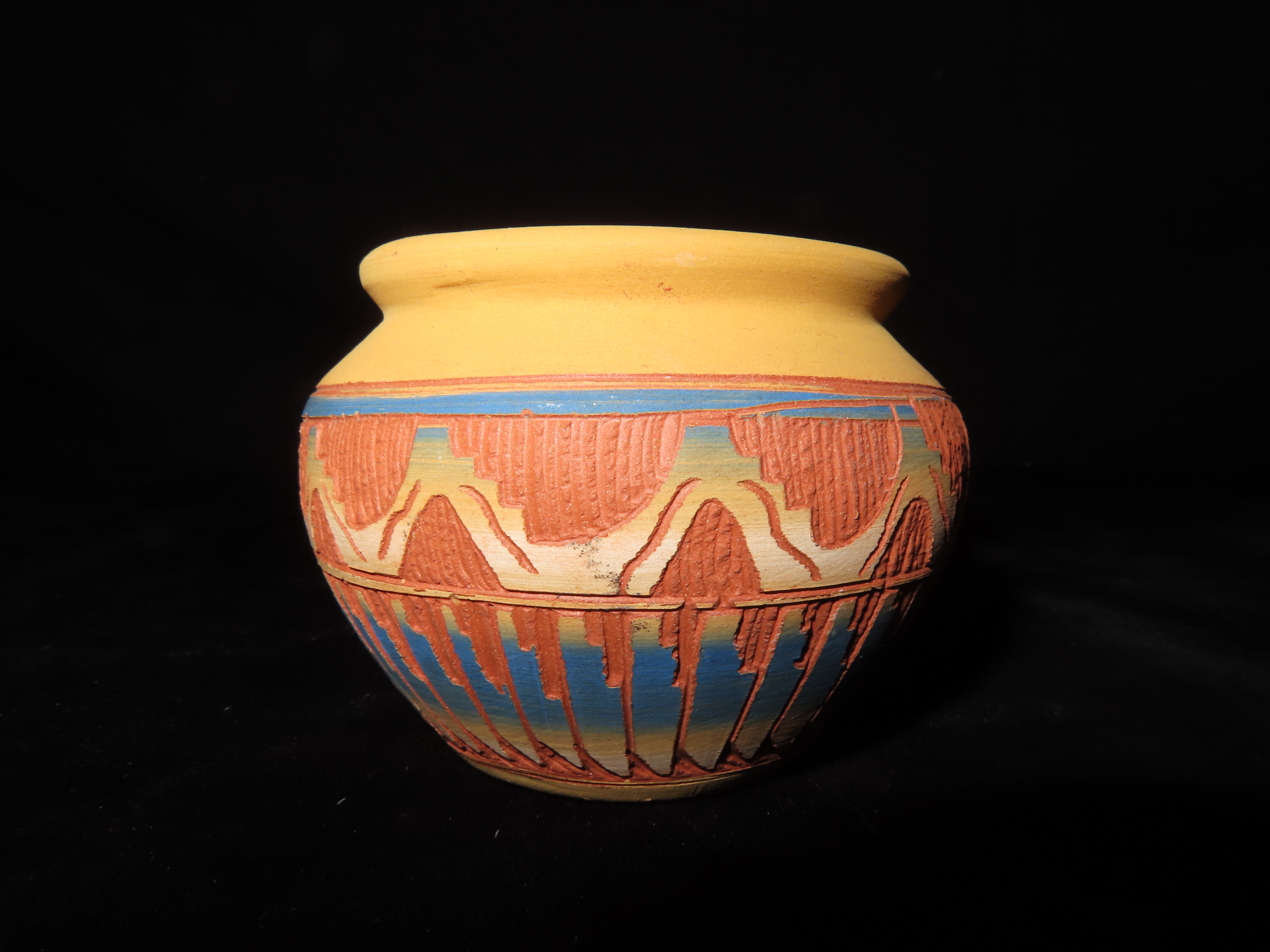 Authentic Native American Hand-crafted Pottery from the American Southwest, signed LK Navajo ’05; see photos for artist signature(if available) and approx. sizes. Key words: Native American, Indian, Signed, Navajo, Southwest, Pottery, Kokopelli, Fetish, Animal, Effigy, Anthropomorphic, Horse Hair, Terra Cotta, Hand-crafted, Fired, Glazed, Painted, Vintage, Santa Clara, Redware, Hopi, Acoma, Wedding Vase, Bowl, Vessel, Signed, Clay, Bear, Turtle, Canoe, Totem Pole, Totem, Anasazi, Cliff Dwelling, Vase, Urn, Dish, Red Clay, Black-on-black ware, Mud Hut, Incense, Lidded Box, Lidded bowl, University, Art, Project, Souvenir, Trade, Tourist, Tourism, Reservation, Hand made, New Mexico, Arizona, Red, Green, Blue, Yellow, Orange, Purple,Black
