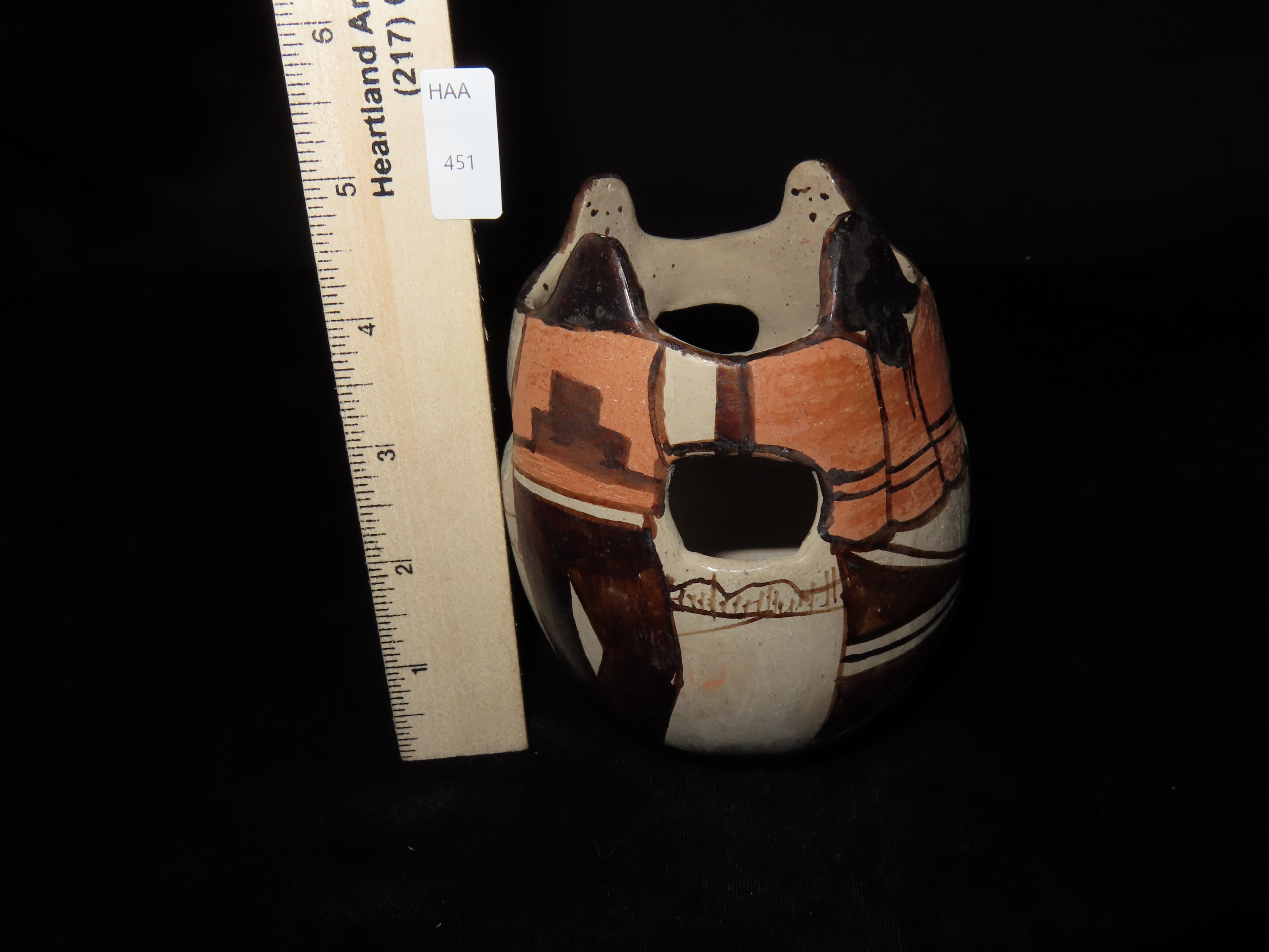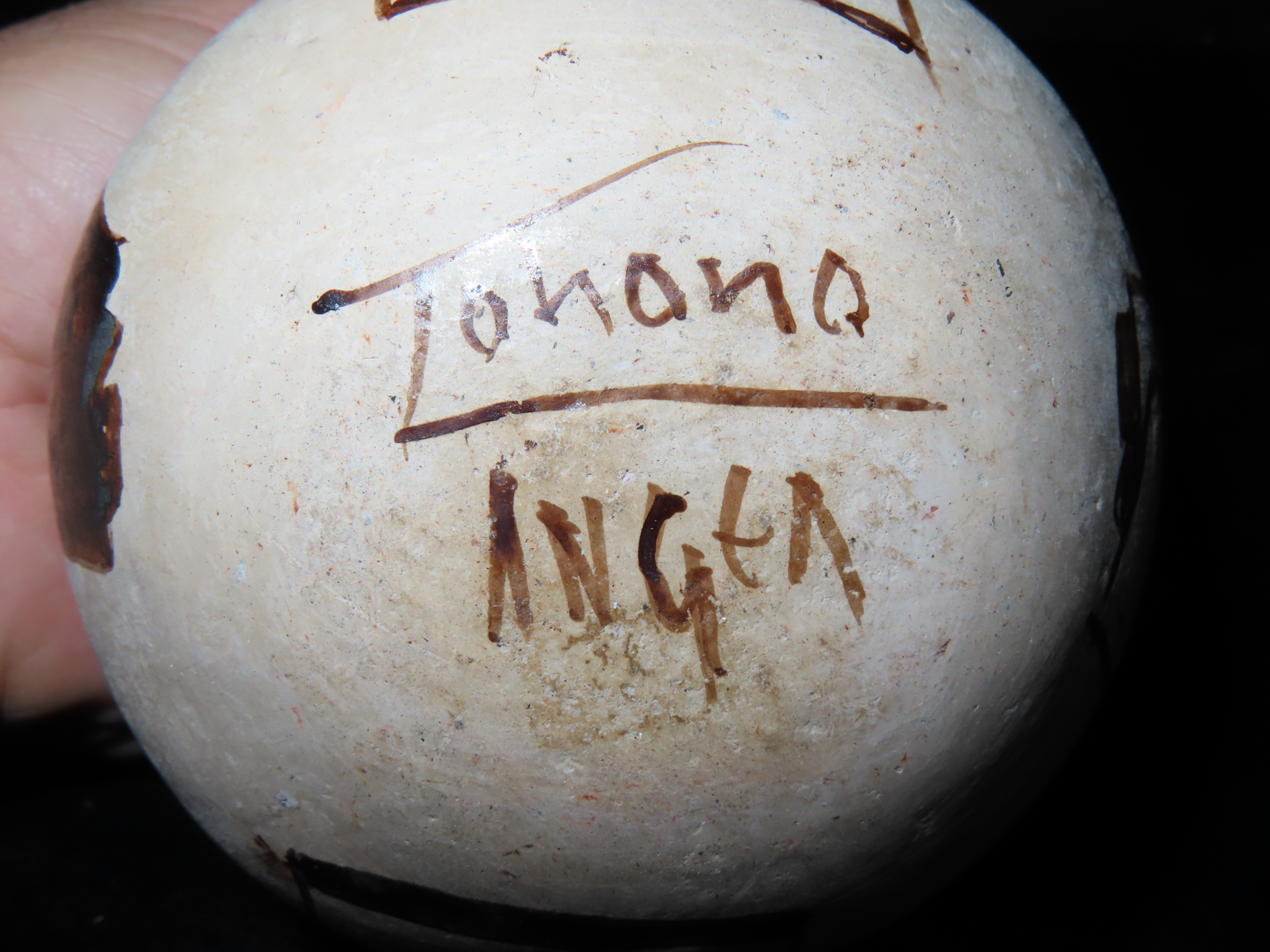 Authentic Native American Hand-crafted Pottery from the American Southwest, signed Tonono Angeasee photos for artist signature(if available) and approx. sizes. Key words: Native American, Indian, Signed, Navajo, Southwest, Pottery, Kokopelli, Fetish, Anim
