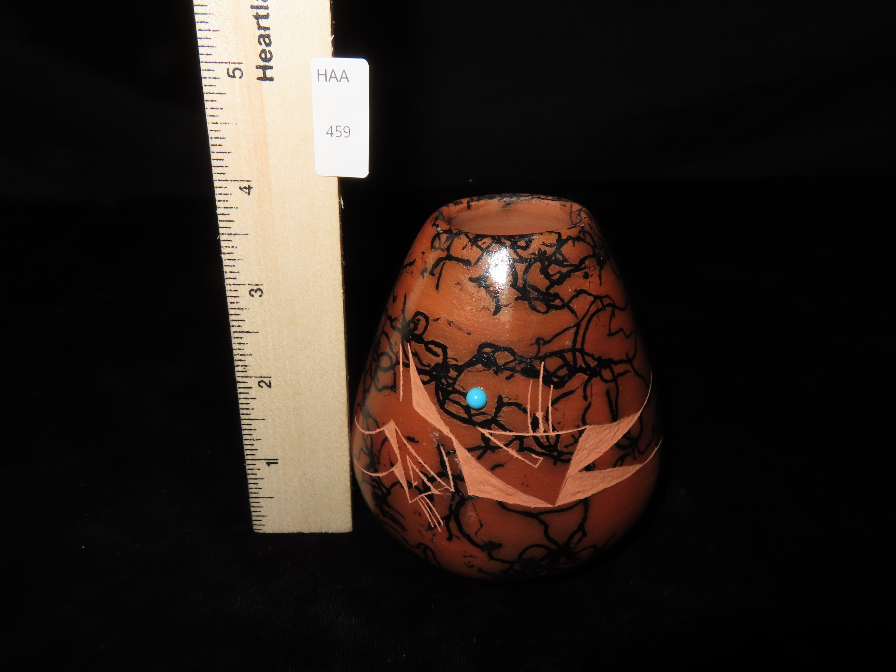 Authentic Native American Hand-crafted Pottery from the American Southwest, signed P Zahre? Navajo; see photos for artist signature(if available) and approx. sizes. Key words: Native American, Indian, Signed, Navajo, Southwest, Pottery, Kokopelli, Fetish, Animal, Effigy, Anthropomorphic, Horse Hair, Terra Cotta, Hand-crafted, Fired, Glazed, Painted, Vintage, Santa Clara, Redware, Hopi, Acoma, Wedding Vase, Bowl, Vessel, Signed, Clay, Bear, Turtle, Canoe, Totem Pole, Totem, Anasazi, Cliff Dwelling, Vase, Urn, Dish, Red Clay, Black-on-black ware, Mud Hut, Incense, Lidded Box, Lidded bowl, University, Art, Project, Souvenir, Trade, Tourist, Tourism, Reservation, Hand made, New Mexico, Arizona, Red, Green, Blue, Yellow, Orange, Purple,Black