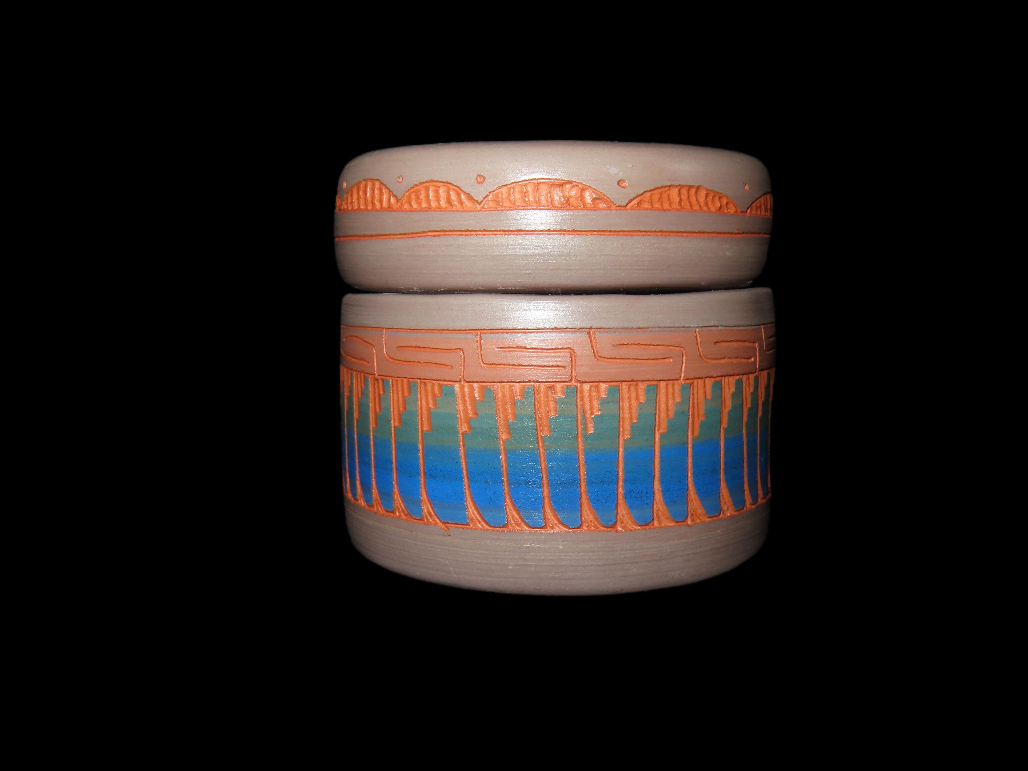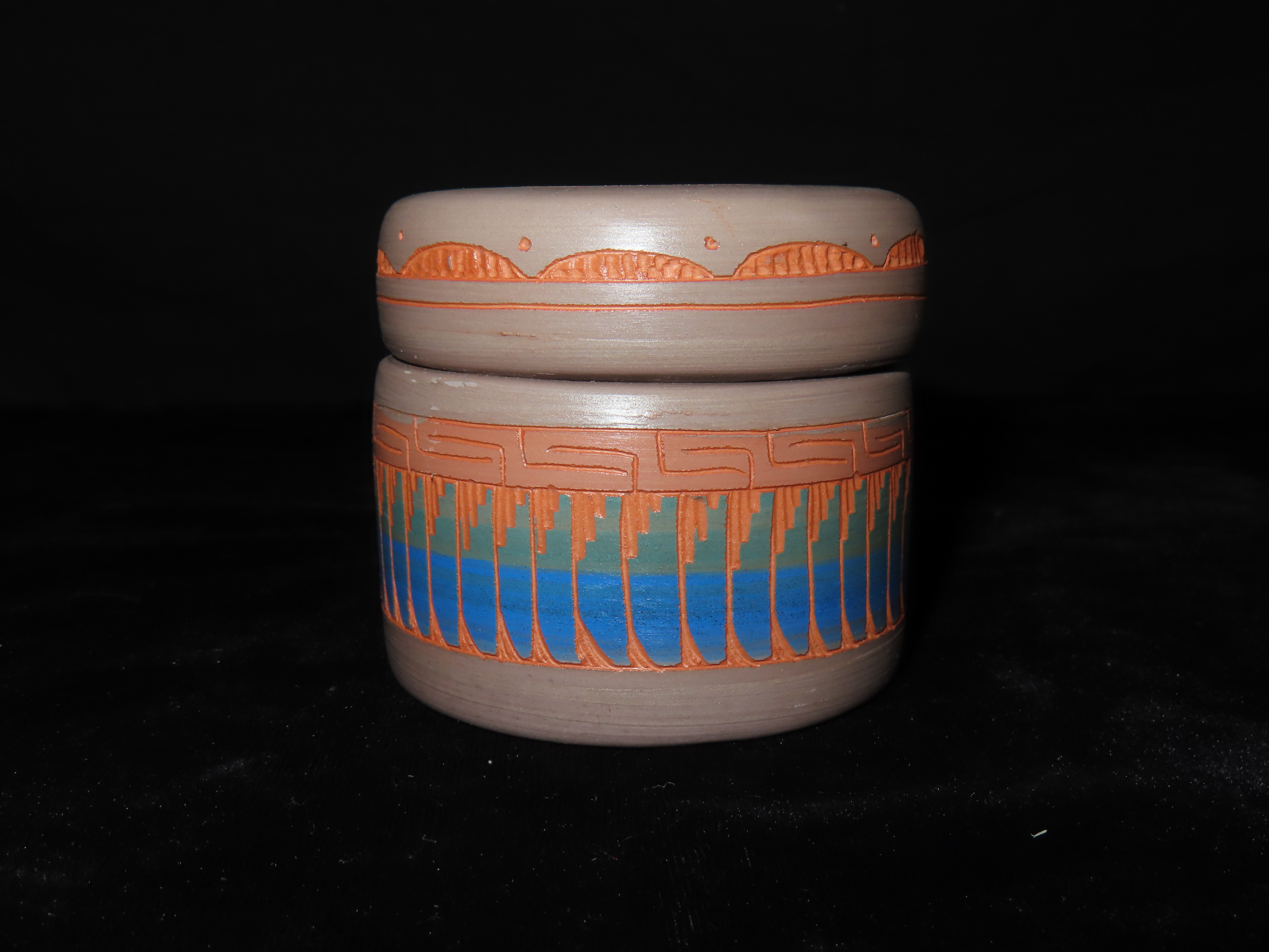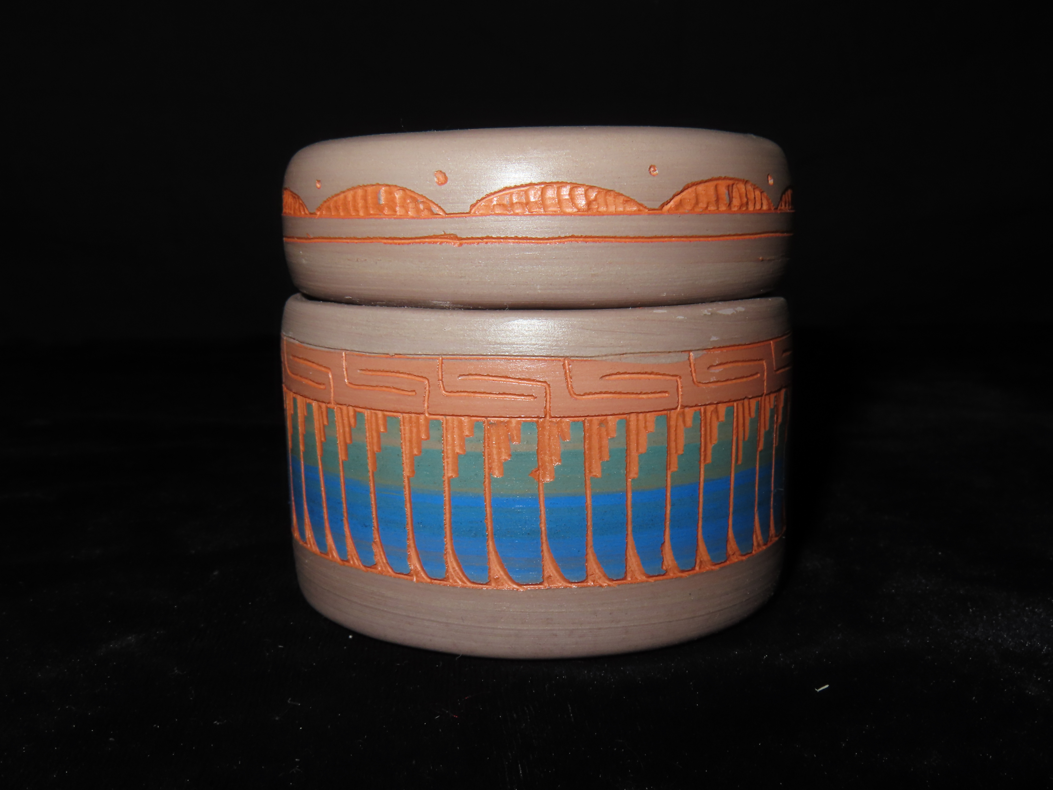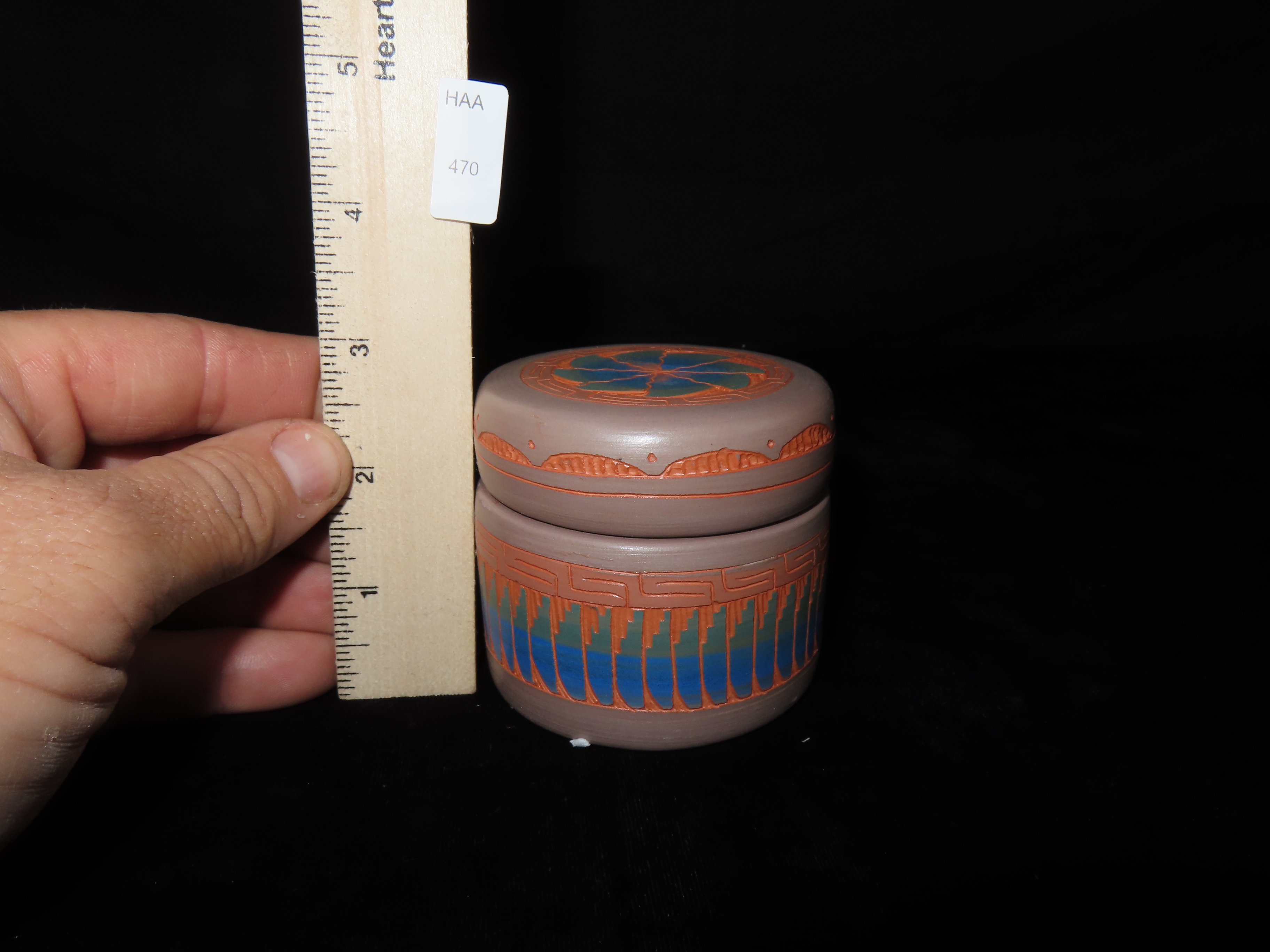 Authentic Native American Hand-crafted Pottery from the American Southwest, see photos for artist signature(if available) and approx. sizes. Key words: Native American, Indian, Signed, Navajo, Southwest, Pottery, Kokopelli, Fetish, Animal, Effigy, Anthropomorphic, Horse Hair, Terra Cotta, Hand-crafted, Fired, Glazed, Painted, Vintage, Santa Clara, Redware, Hopi, Acoma, Wedding Vase, Bowl, Vessel, Signed, Clay, Bear, Turtle, Canoe, Totem Pole, Totem, Anasazi, Cliff Dwelling, Vase, Urn, Dish, Red Clay, Black-on-black ware, Mud Hut, Incense, Lidded Box, Lidded bowl, University, Art, Project, Souvenir, Trade, Tourist, Tourism, Reservation, Hand made, New Mexico, Arizona, Red, Green, Blue, Yellow, Orange, Purple,Black