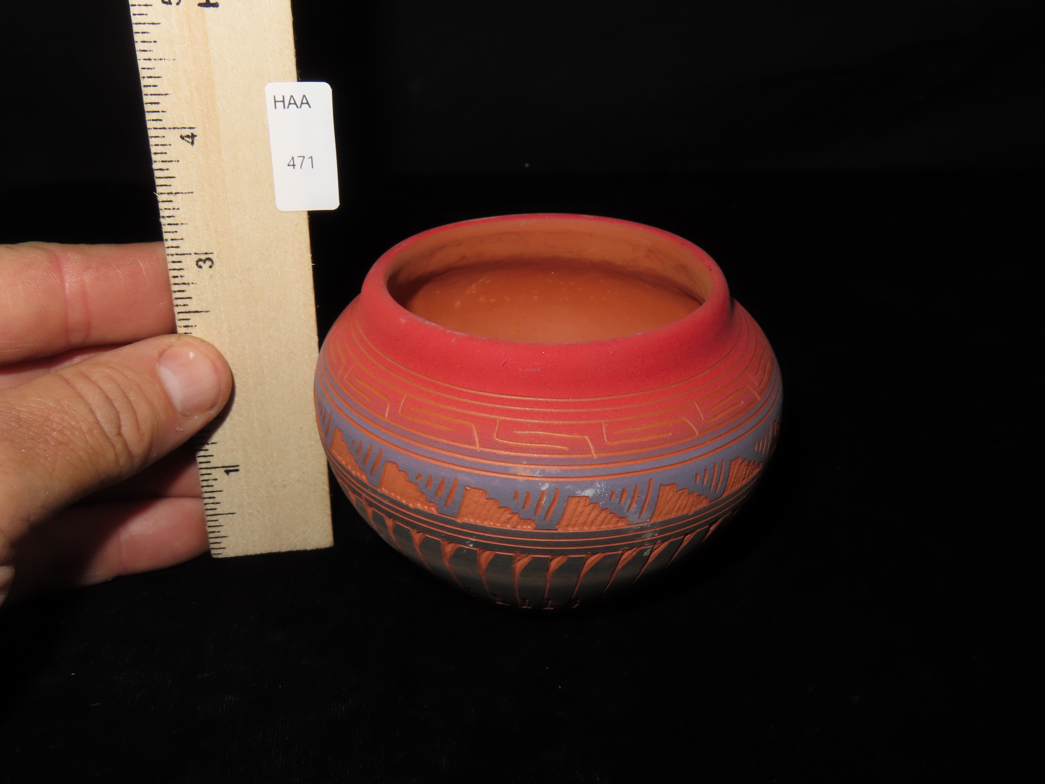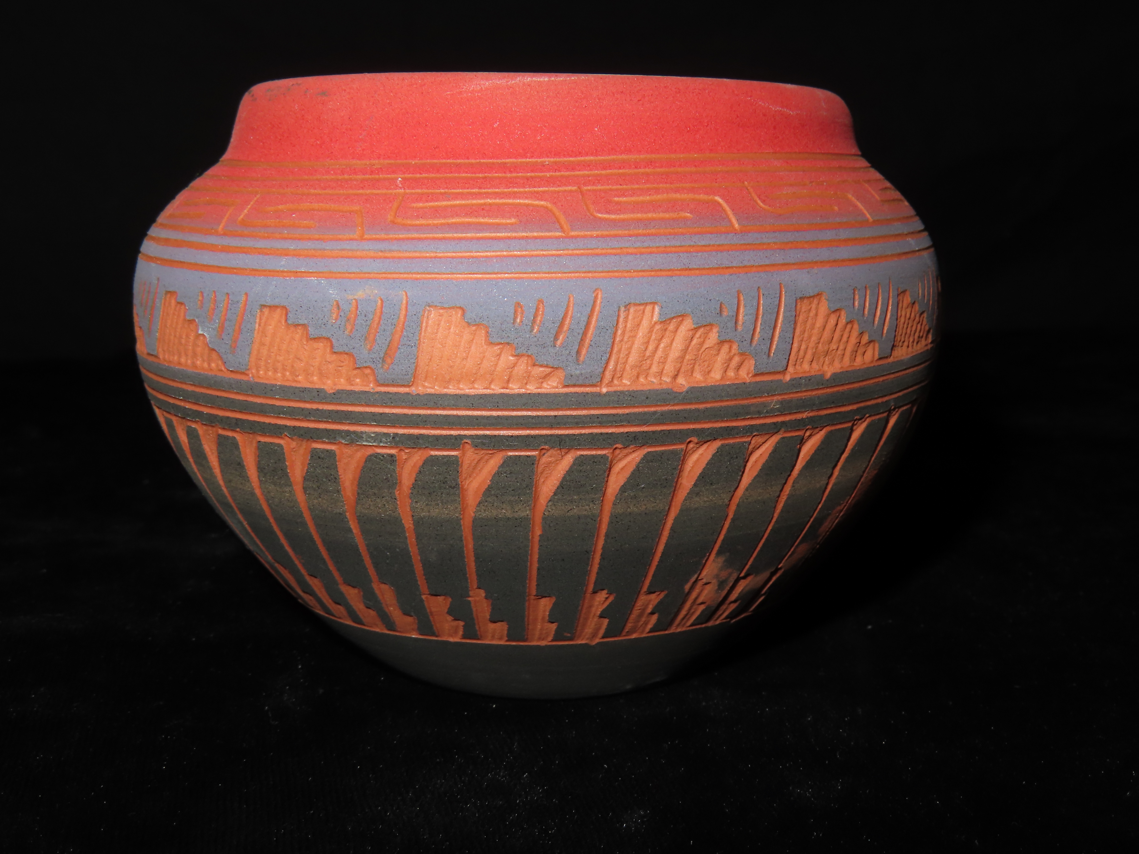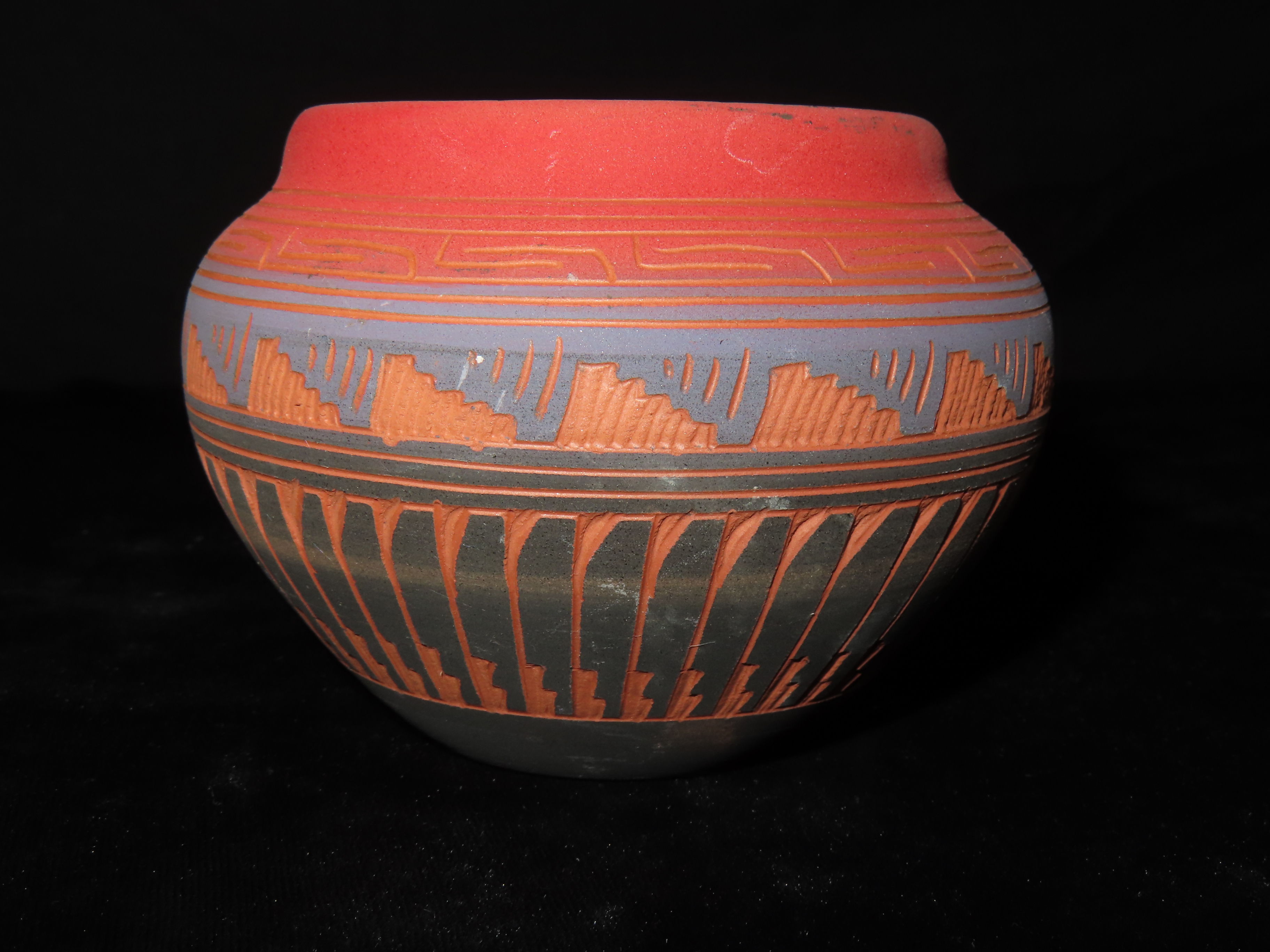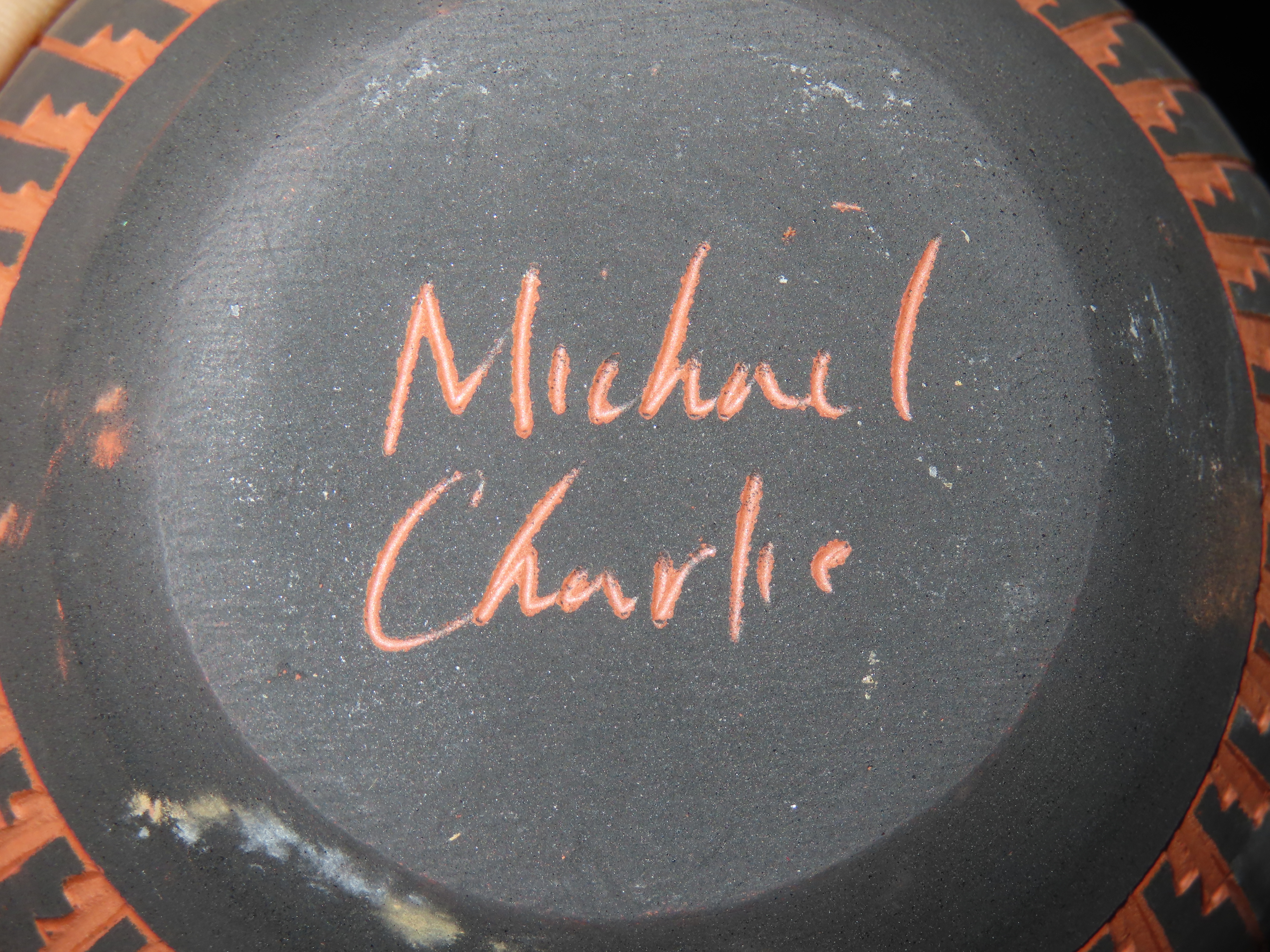 Authentic Native American Hand-crafted Pottery from the American Southwest, signed Michael Charlie; see photos for artist signature(if available) and approx. sizes. Key words: Native American, Indian, Signed, Navajo, Southwest, Pottery, Kokopelli, Fetish, Animal, Effigy, Anthropomorphic, Horse Hair, Terra Cotta, Hand-crafted, Fired, Glazed, Painted, Vintage, Santa Clara, Redware, Hopi, Acoma, Wedding Vase, Bowl, Vessel, Signed, Clay, Bear, Turtle, Canoe, Totem Pole, Totem, Anasazi, Cliff Dwelling, Vase, Urn, Dish, Red Clay, Black-on-black ware, Mud Hut, Incense, Lidded Box, Lidded bowl, University, Art, Project, Souvenir, Trade, Tourist, Tourism, Reservation, Hand made, New Mexico, Arizona, Red, Green, Blue, Yellow, Orange, Purple,Black