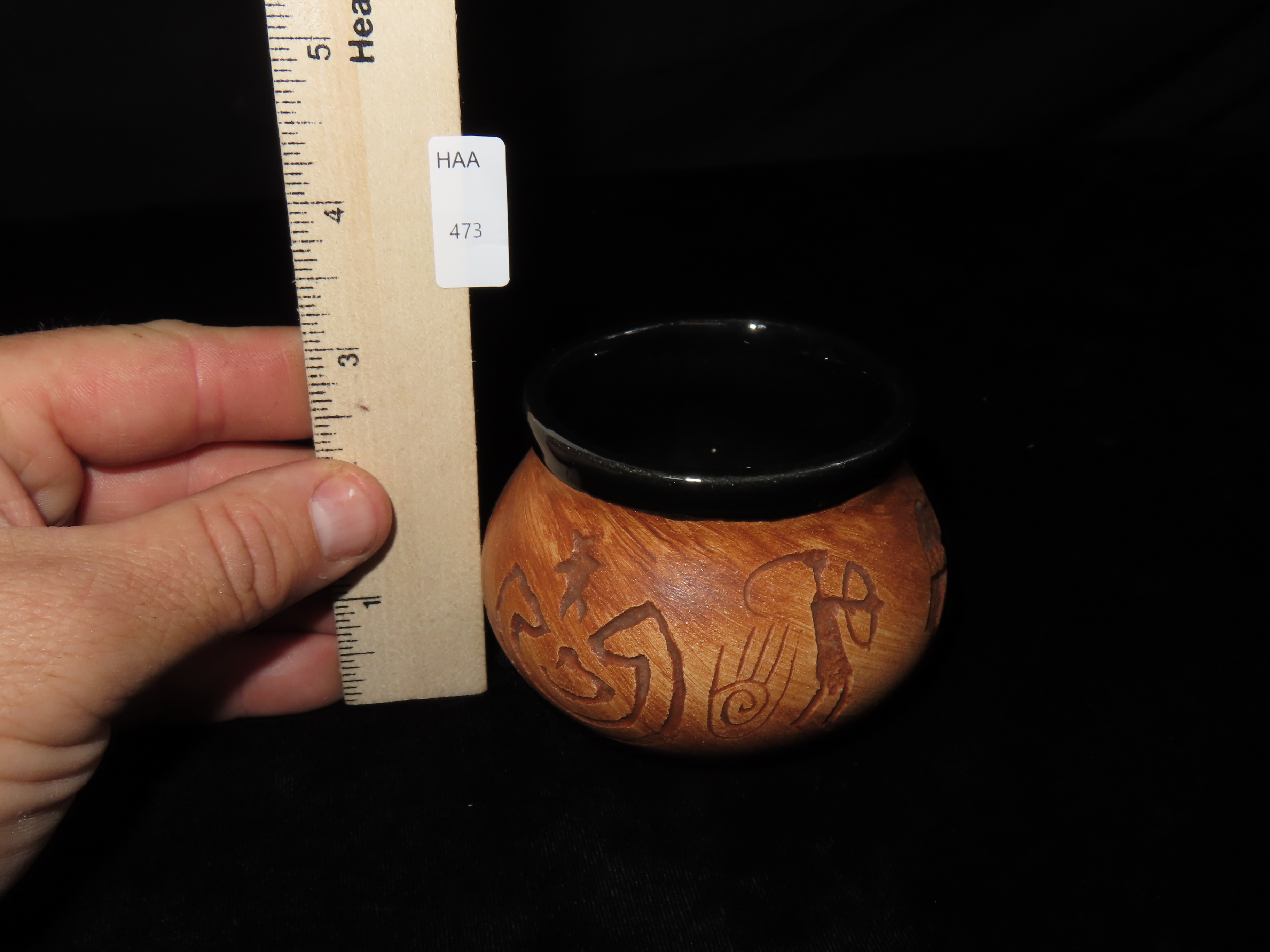 Authentic Native American Hand-crafted Pottery from the American Southwest, signed Binishtlaa? Navajo; see photos for artist signature(if available) and approx. sizes. Key words: Native American, Indian, Signed, Navajo, Southwest, Pottery, Kokopelli, Fetish, Animal, Effigy, Anthropomorphic, Horse Hair, Terra Cotta, Hand-crafted, Fired, Glazed, Painted, Vintage, Santa Clara, Redware, Hopi, Acoma, Wedding Vase, Bowl, Vessel, Signed, Clay, Bear, Turtle, Canoe, Totem Pole, Totem, Anasazi, Cliff Dwelling, Vase, Urn, Dish, Red Clay, Black-on-black ware, Mud Hut, Incense, Lidded Box, Lidded bowl, University, Art, Project, Souvenir, Trade, Tourist, Tourism, Reservation, Hand made, New Mexico, Arizona, Red, Green, Blue, Yellow, Orange, Purple,Black