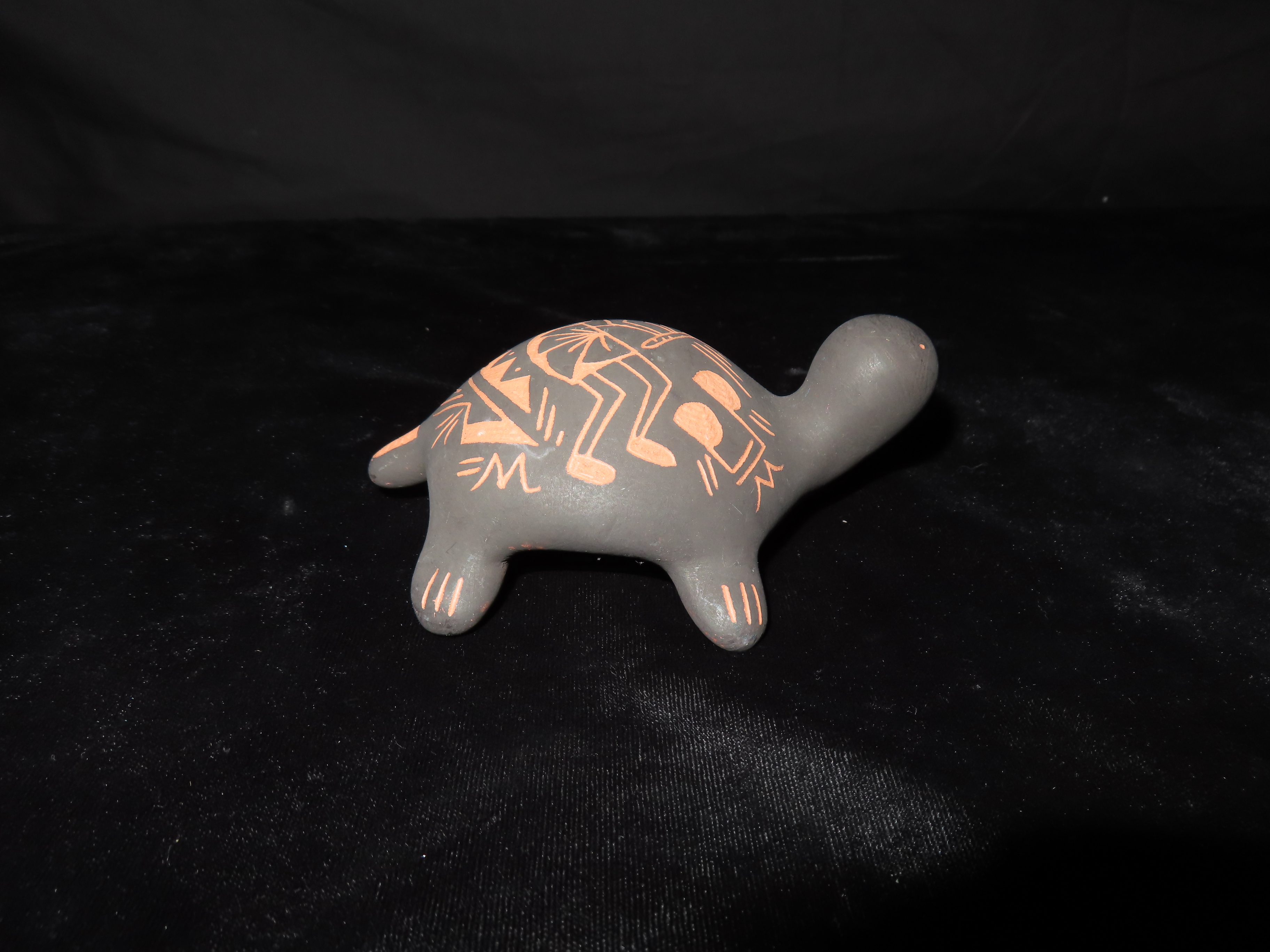 Authentic Native American Hand-crafted Pottery from the American Southwest, signed AB Navajo; see photos for artist signature(if available) and approx. sizes. Key words: Native American, Indian, Signed, Navajo, Southwest, Pottery, Kokopelli, Fetish, Anima
