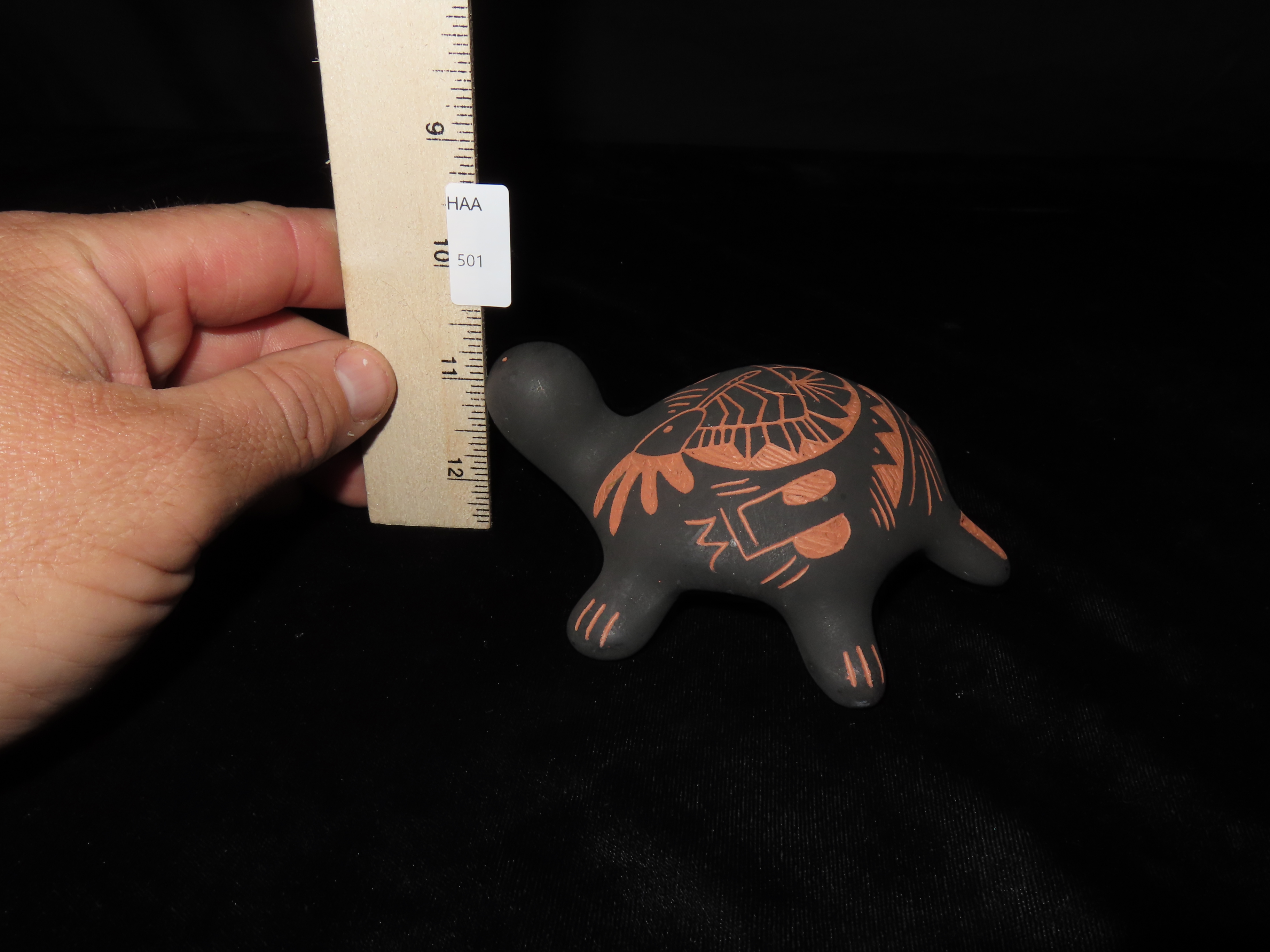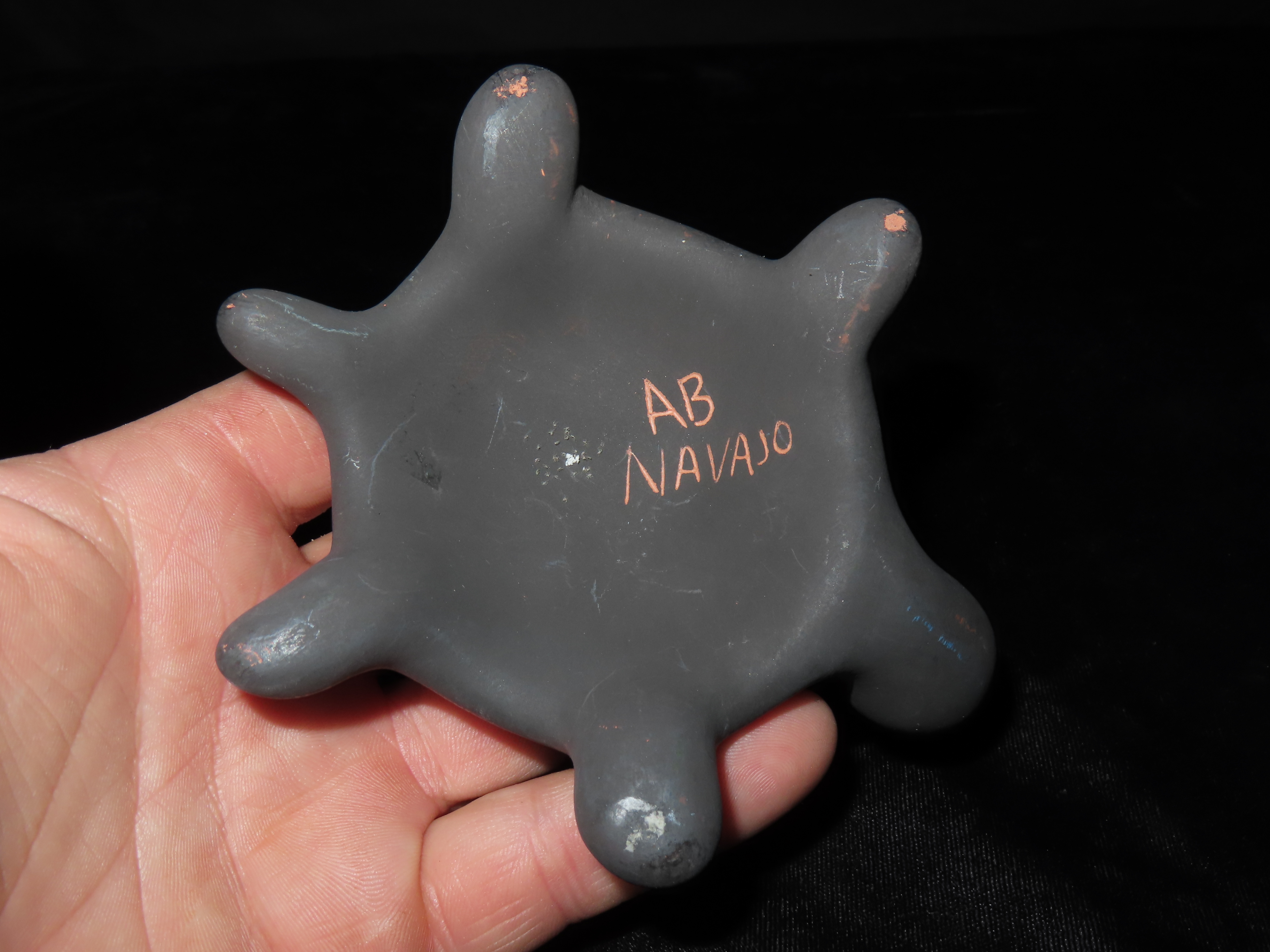 Authentic Native American Hand-crafted Pottery from the American Southwest, signed AB Navajo; see photos for artist signature(if available) and approx. sizes. Key words: Native American, Indian, Signed, Navajo, Southwest, Pottery, Kokopelli, Fetish, Animal, Effigy, Anthropomorphic, Horse Hair, Terra Cotta, Hand-crafted, Fired, Glazed, Painted, Vintage, Santa Clara, Redware, Hopi, Acoma, Wedding Vase, Bowl, Vessel, Signed, Clay, Bear, Turtle, Canoe, Totem Pole, Totem, Anasazi, Cliff Dwelling, Vase, Urn, Dish, Red Clay, Black-on-black ware, Mud Hut, Incense, Lidded Box, Lidded bowl, University, Art, Project, Souvenir, Trade, Tourist, Tourism, Reservation, Hand made, New Mexico, Arizona, Red, Green, Blue, Yellow, Orange, Purple,Black