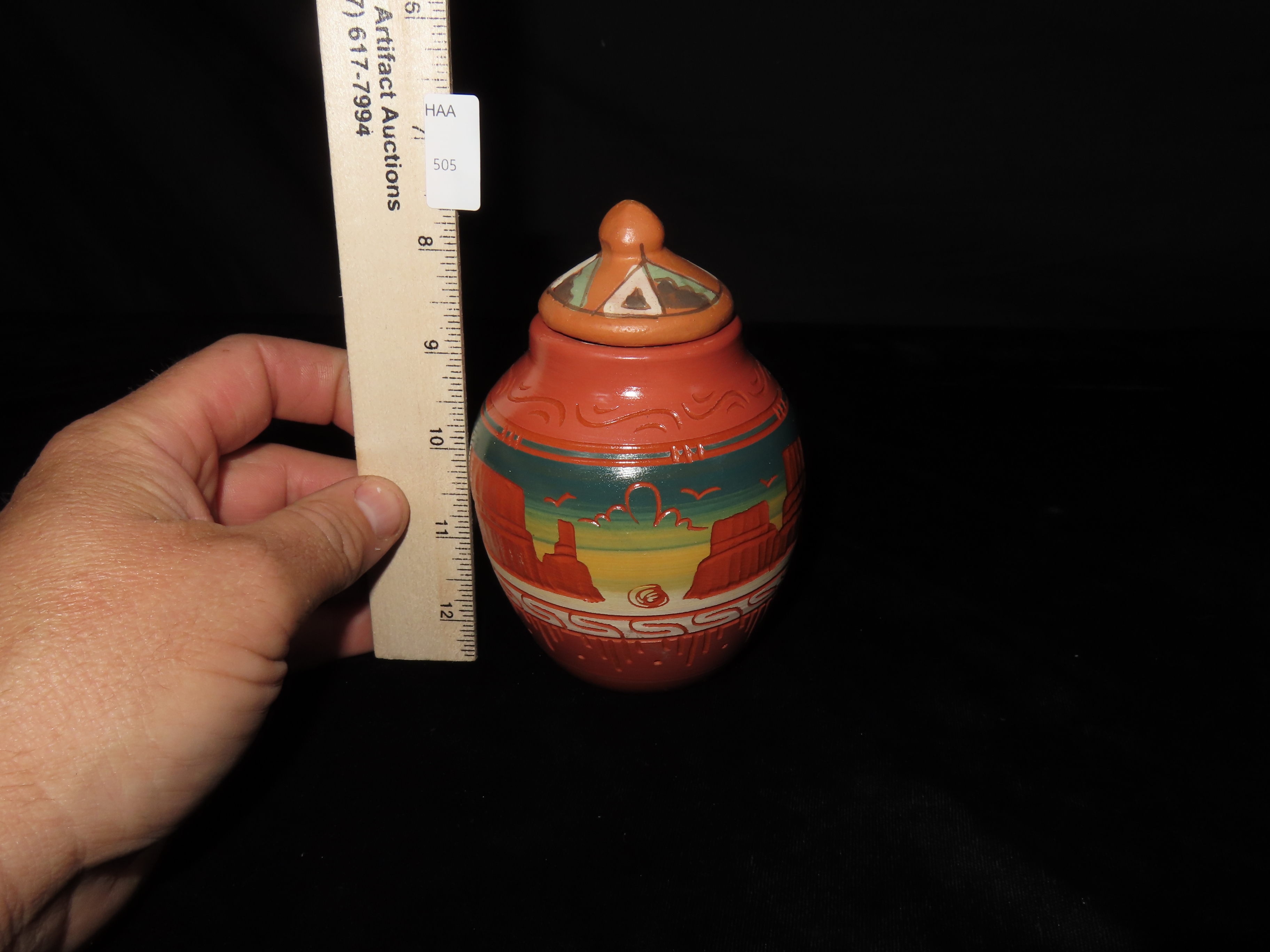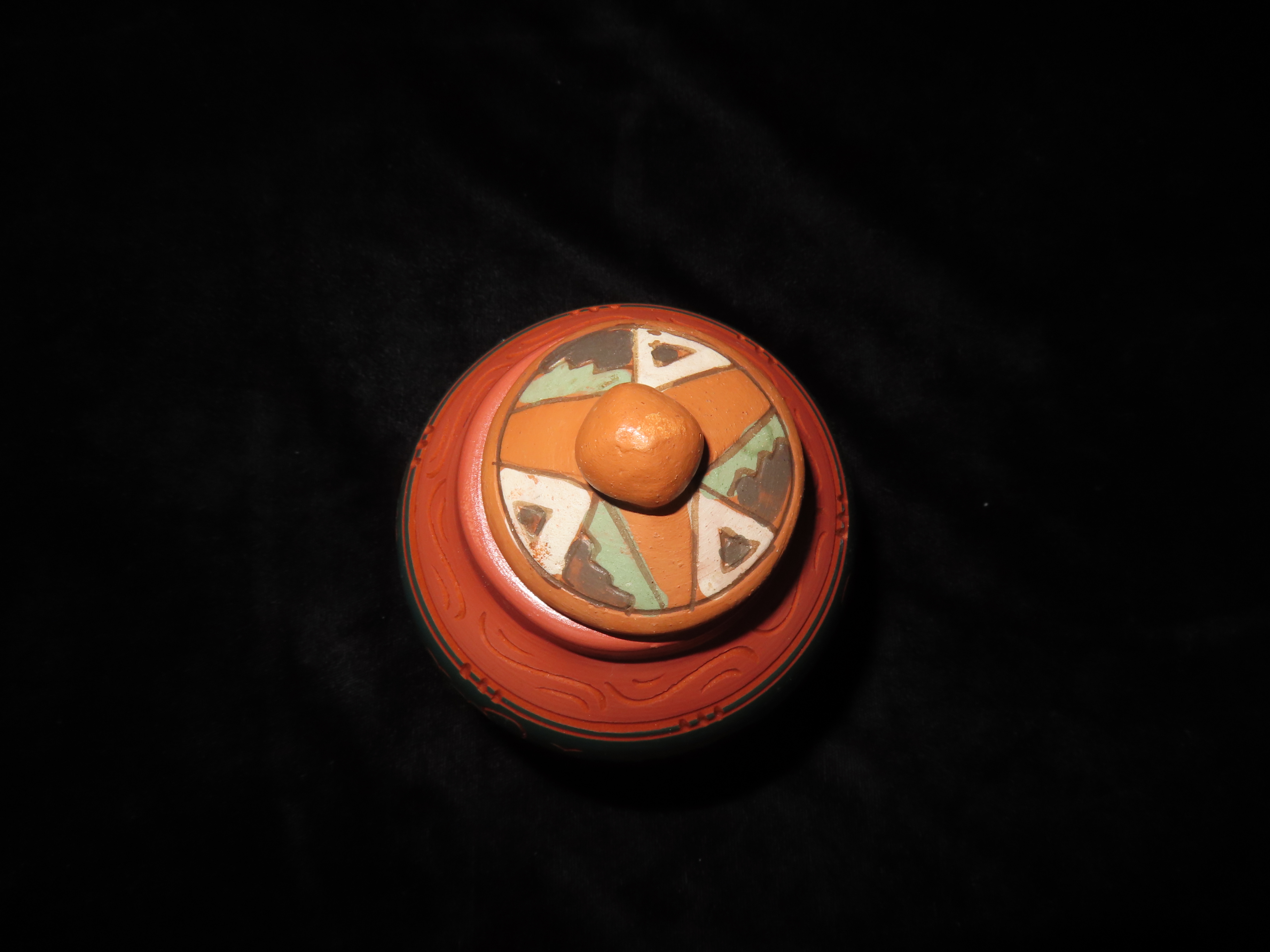 Authentic Native American Hand-crafted Pottery from the American Southwest, signed V.T.; see photos for artist signature(if available) and approx. sizes. Key words: Native American, Indian, Signed, Navajo, Southwest, Pottery, Kokopelli, Fetish, Animal, Effigy, Anthropomorphic, Horse Hair, Terra Cotta, Hand-crafted, Fired, Glazed, Painted, Vintage, Santa Clara, Redware, Hopi, Acoma, Wedding Vase, Bowl, Vessel, Signed, Clay, Bear, Turtle, Canoe, Totem Pole, Totem, Anasazi, Cliff Dwelling, Vase, Urn, Dish, Red Clay, Black-on-black ware, Mud Hut, Incense, Lidded Box, Lidded bowl, University, Art, Project, Souvenir, Trade, Tourist, Tourism, Reservation, Hand made, New Mexico, Arizona, Red, Green, Blue, Yellow, Orange, Purple,Black