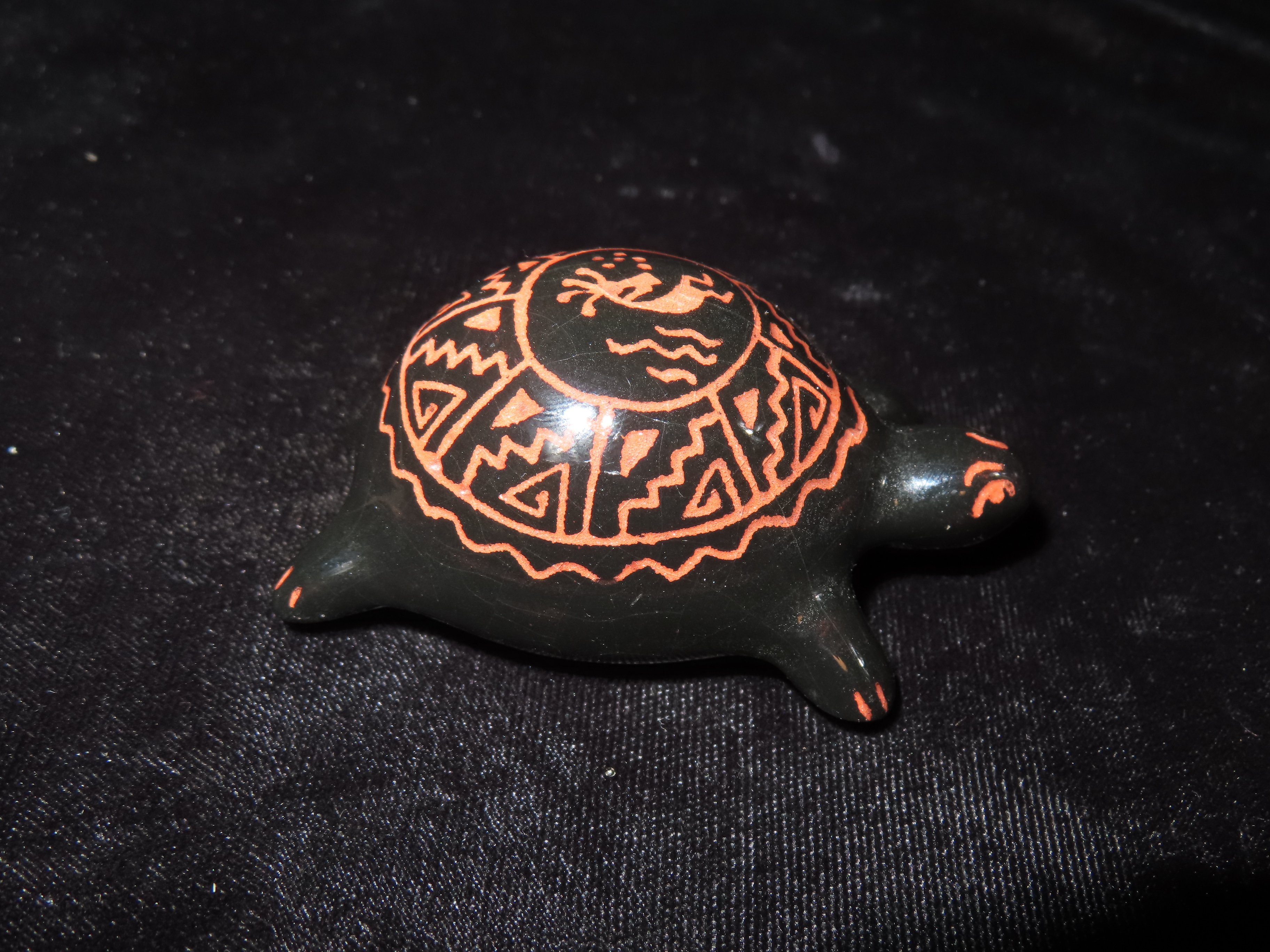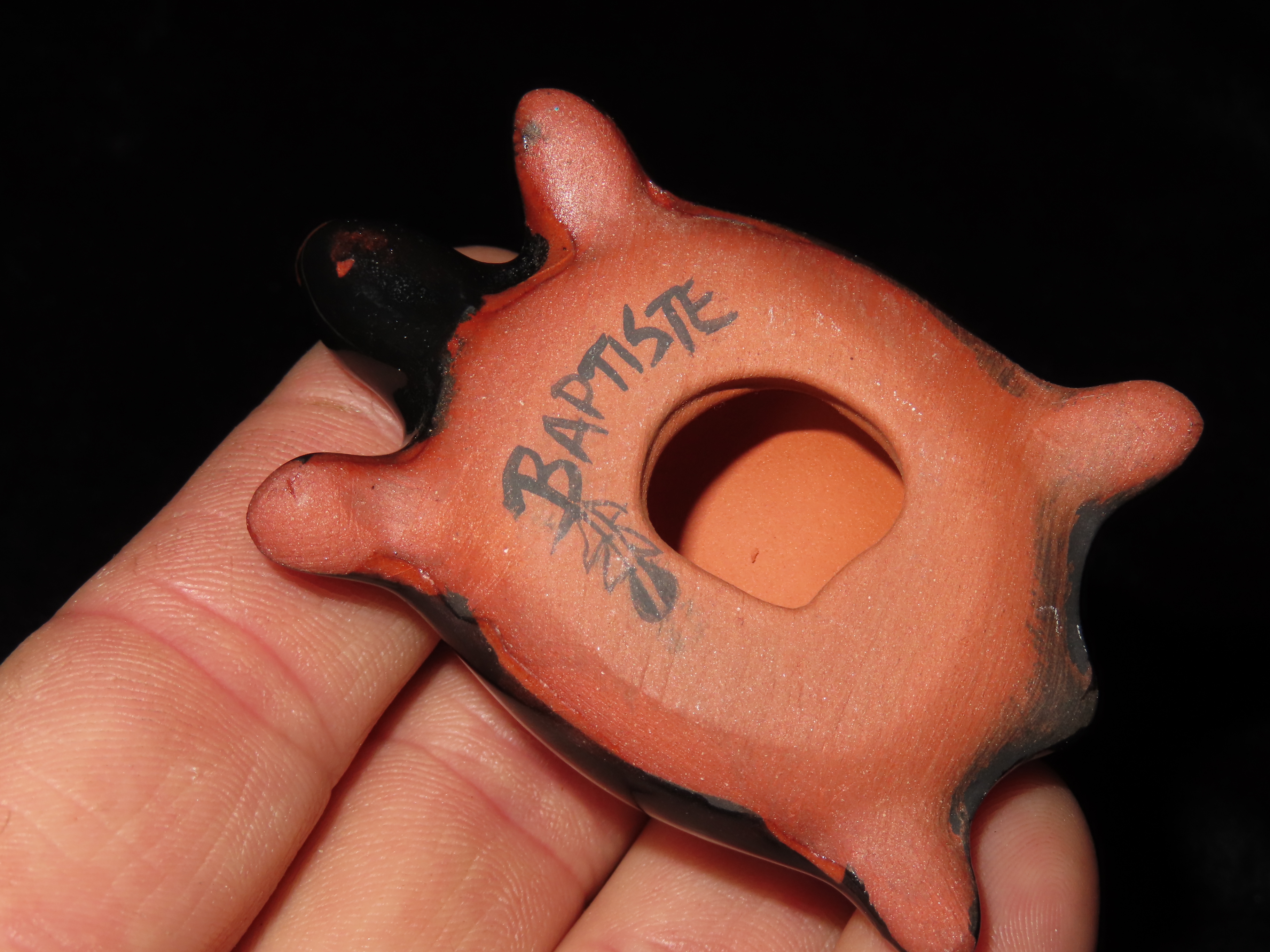 Authentic Native American Hand-crafted Pottery from the American Southwest, signed Baptiste; see photos for artist signature(if available) and approx. sizes. Key words: Native American, Indian, Signed, Navajo, Southwest, Pottery, Kokopelli, Fetish, Animal, Effigy, Anthropomorphic, Horse Hair, Terra Cotta, Hand-crafted, Fired, Glazed, Painted, Vintage, Santa Clara, Redware, Hopi, Acoma, Wedding Vase, Bowl, Vessel, Signed, Clay, Bear, Turtle, Canoe, Totem Pole, Totem, Anasazi, Cliff Dwelling, Vase, Urn, Dish, Red Clay, Black-on-black ware, Mud Hut, Incense, Lidded Box, Lidded bowl, University, Art, Project, Souvenir, Trade, Tourist, Tourism, Reservation, Hand made, New Mexico, Arizona, Red, Green, Blue, Yellow, Orange, Purple,Black