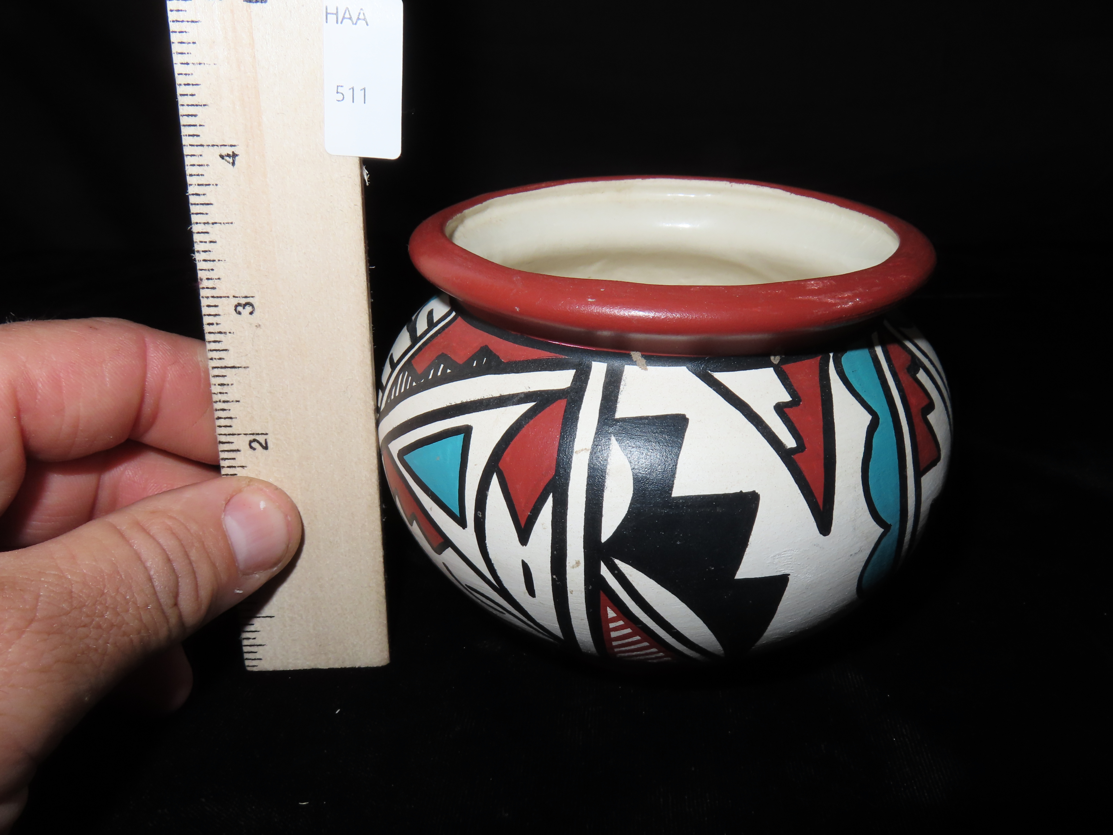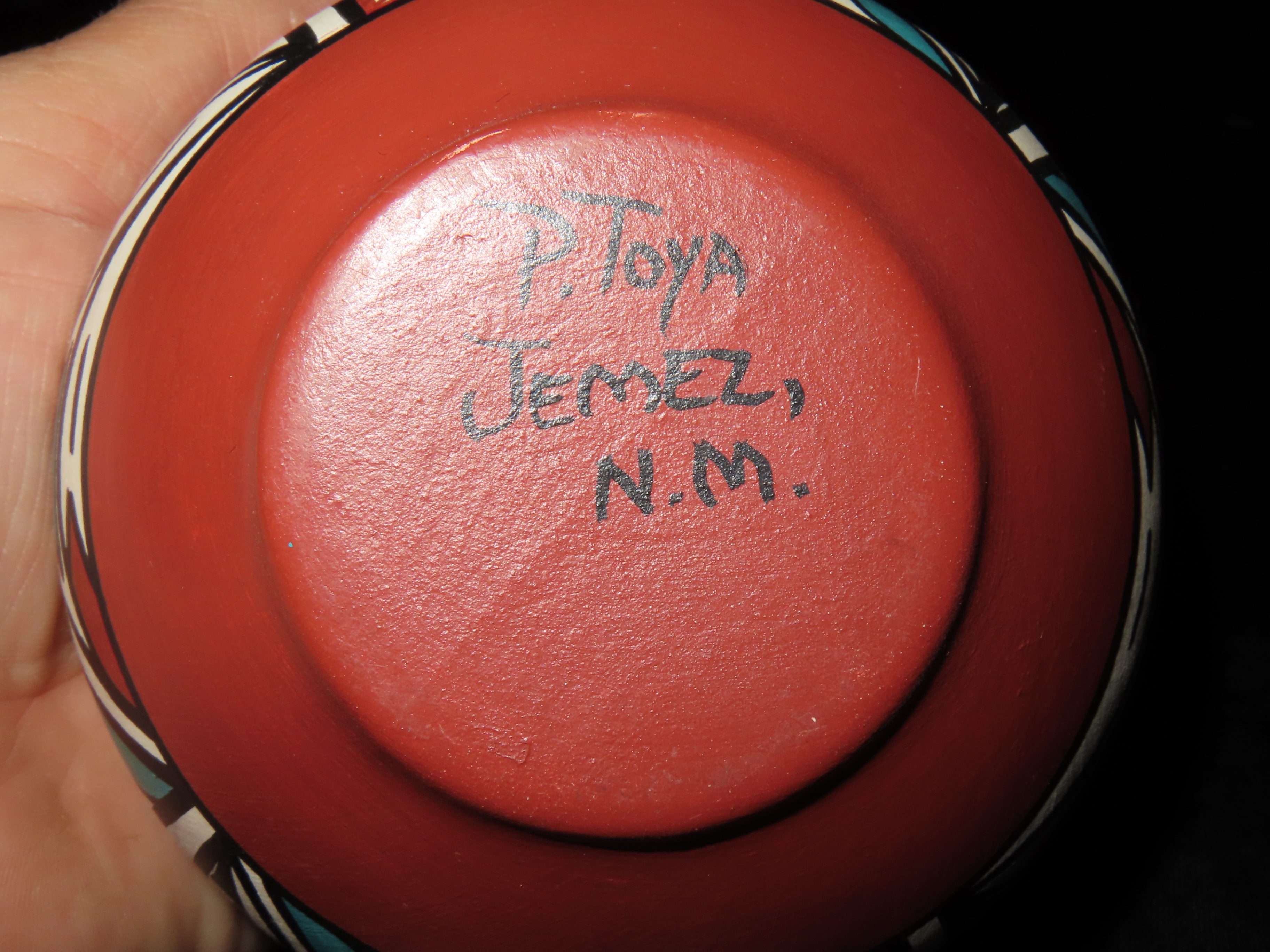 Authentic Native American Hand-crafted Pottery from the American Southwest, signed P. Toya Jemez N.M.; see photos for artist signature(if available) and approx. sizes. Key words: Native American, Indian, Signed, Navajo, Southwest, Pottery, Kokopelli, Fetish, Animal, Effigy, Anthropomorphic, Horse Hair, Terra Cotta, Hand-crafted, Fired, Glazed, Painted, Vintage, Santa Clara, Redware, Hopi, Acoma, Wedding Vase, Bowl, Vessel, Signed, Clay, Bear, Turtle, Canoe, Totem Pole, Totem, Anasazi, Cliff Dwelling, Vase, Urn, Dish, Red Clay, Black-on-black ware, Mud Hut, Incense, Lidded Box, Lidded bowl, University, Art, Project, Souvenir, Trade, Tourist, Tourism, Reservation, Hand made, New Mexico, Arizona, Red, Green, Blue, Yellow, Orange, Purple,Black