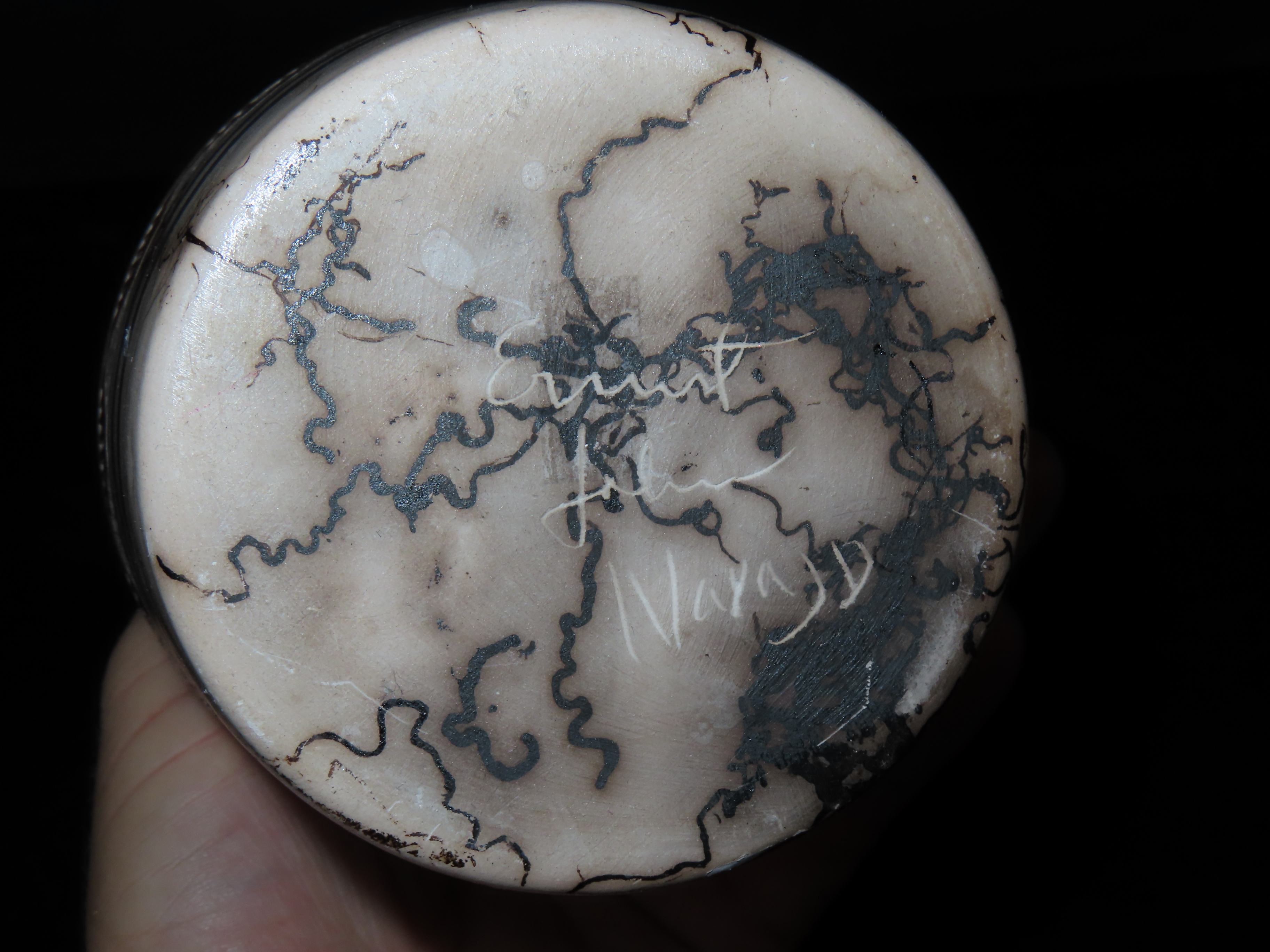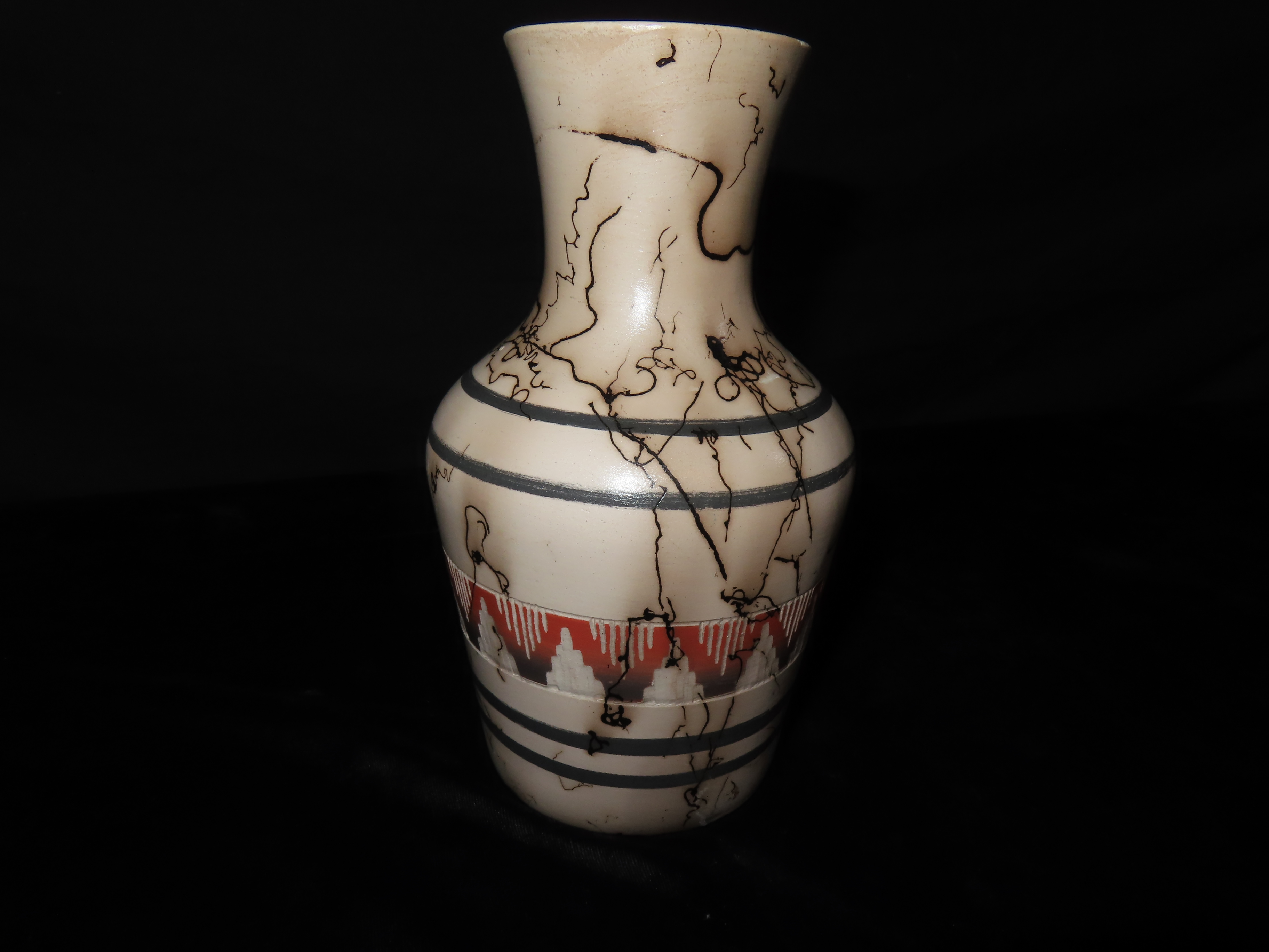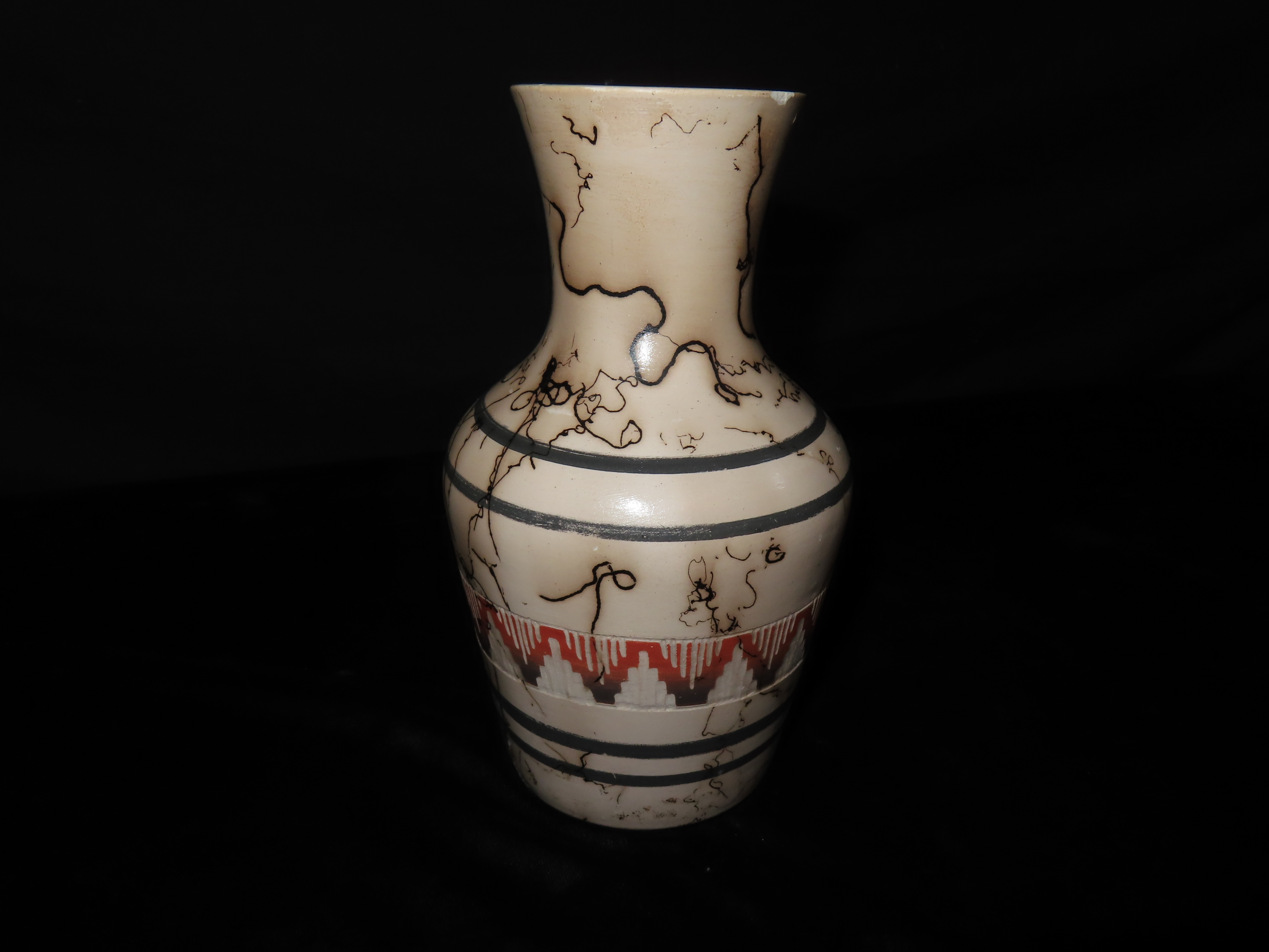 Authentic Native American Hand-crafted Pottery from the American Southwest, signed Ernest John Navajo; see photos for artist signature(if available) and approx. sizes. Key words: Native American, Indian, Signed, Navajo, Southwest, Pottery, Kokopelli, Fetish, Animal, Effigy, Anthropomorphic, Horse Hair, Terra Cotta, Hand-crafted, Fired, Glazed, Painted, Vintage, Santa Clara, Redware, Hopi, Acoma, Wedding Vase, Bowl, Vessel, Signed, Clay, Bear, Turtle, Canoe, Totem Pole, Totem, Anasazi, Cliff Dwelling, Vase, Urn, Dish, Red Clay, Black-on-black ware, Mud Hut, Incense, Lidded Box, Lidded bowl, University, Art, Project, Souvenir, Trade, Tourist, Tourism, Reservation, Hand made, New Mexico, Arizona, Red, Green, Blue, Yellow, Orange, Purple,Black