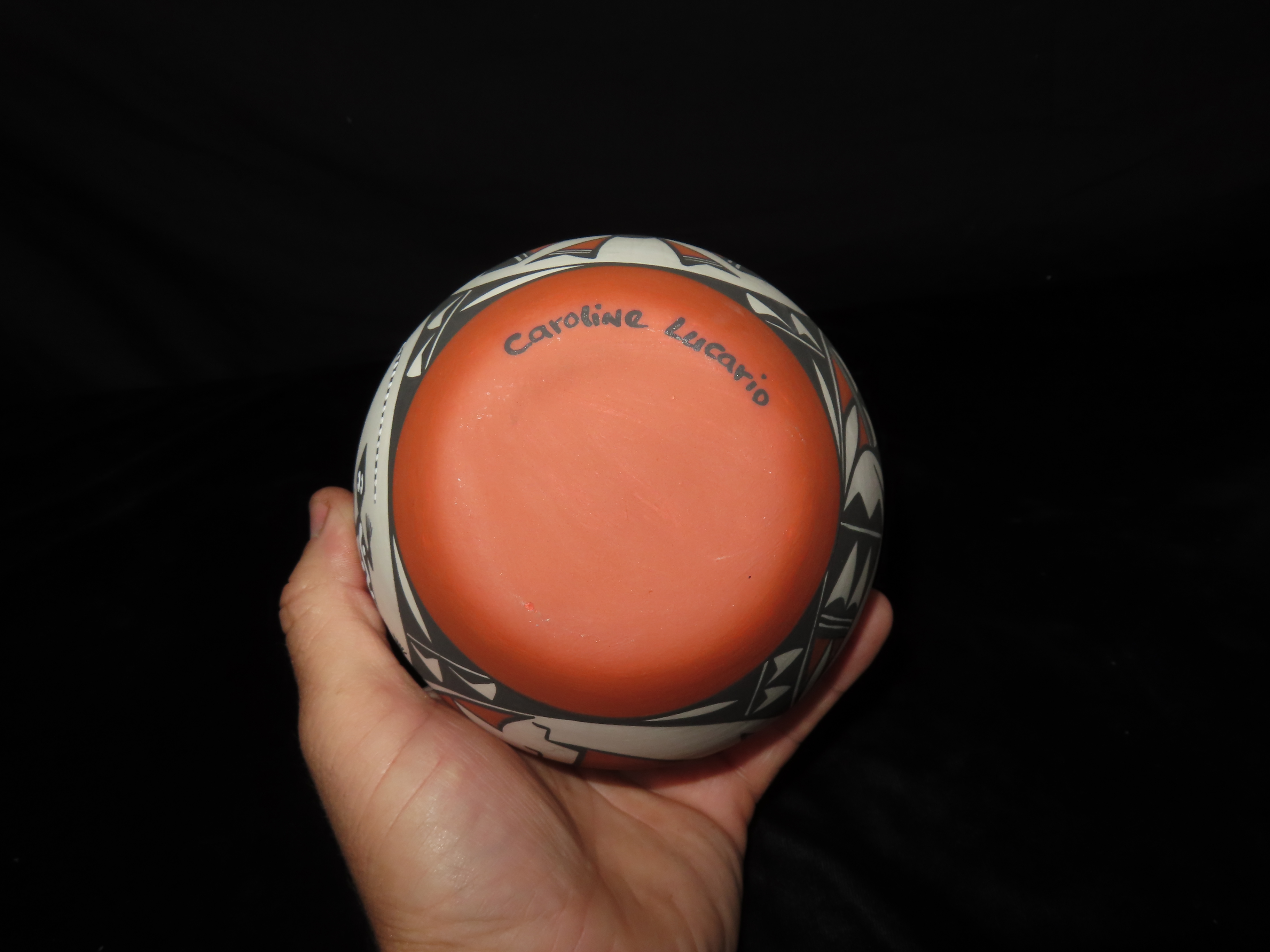 Authentic Native American Hand-crafted Pottery from the American Southwest, signed Caroline Lucario; see photos for artist signature(if available) and approx. sizes. Key words: Native American, Indian, Signed, Navajo, Southwest, Pottery, Kokopelli, Fetish, Animal, Effigy, Anthropomorphic, Horse Hair, Terra Cotta, Hand-crafted, Fired, Glazed, Painted, Vintage, Santa Clara, Redware, Hopi, Acoma, Wedding Vase, Bowl, Vessel, Signed, Clay, Bear, Turtle, Canoe, Totem Pole, Totem, Anasazi, Cliff Dwelling, Vase, Urn, Dish, Red Clay, Black-on-black ware, Mud Hut, Incense, Lidded Box, Lidded bowl, University, Art, Project, Souvenir, Trade, Tourist, Tourism, Reservation, Hand made, New Mexico, Arizona, Red, Green, Blue, Yellow, Orange, Purple,Black