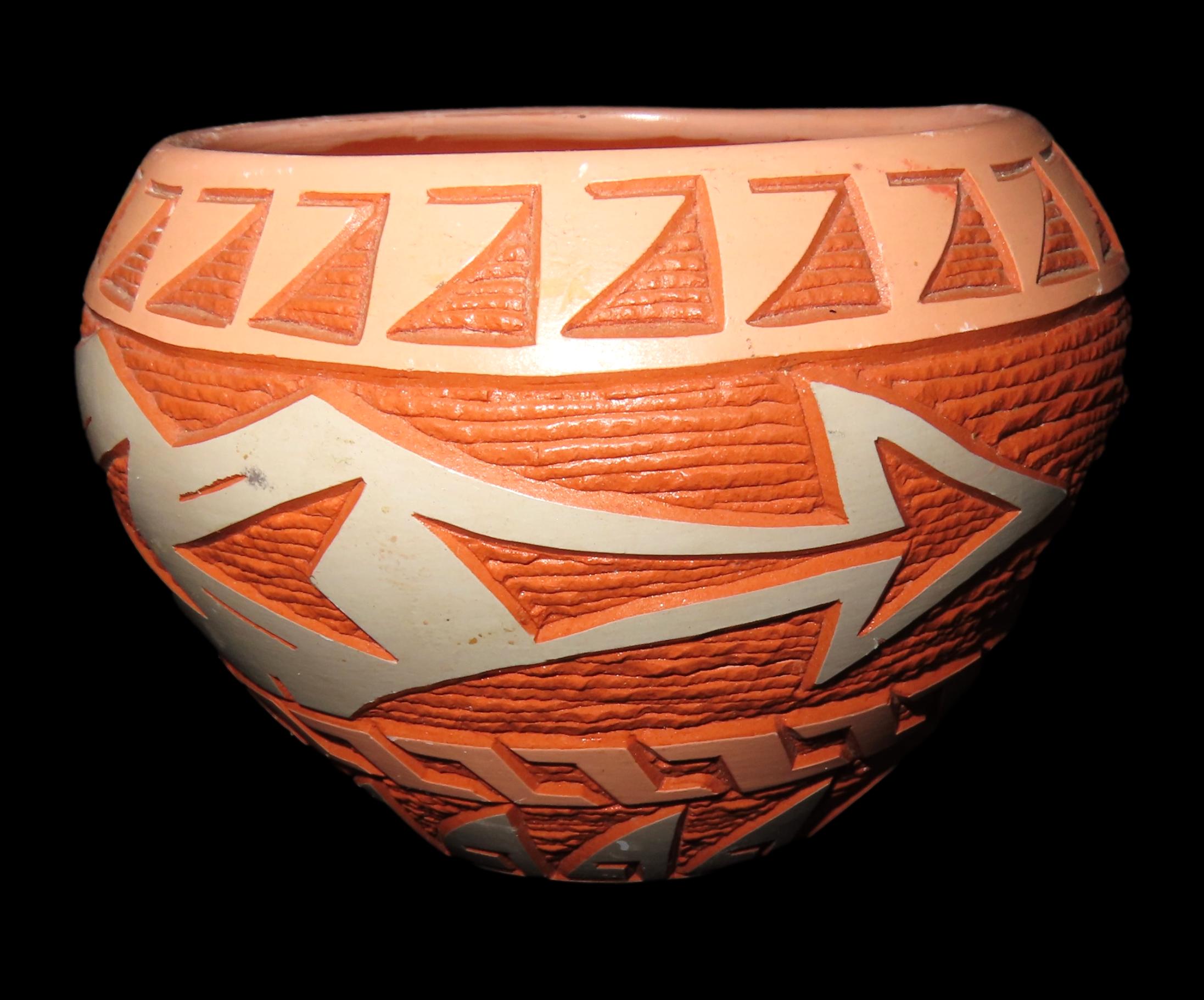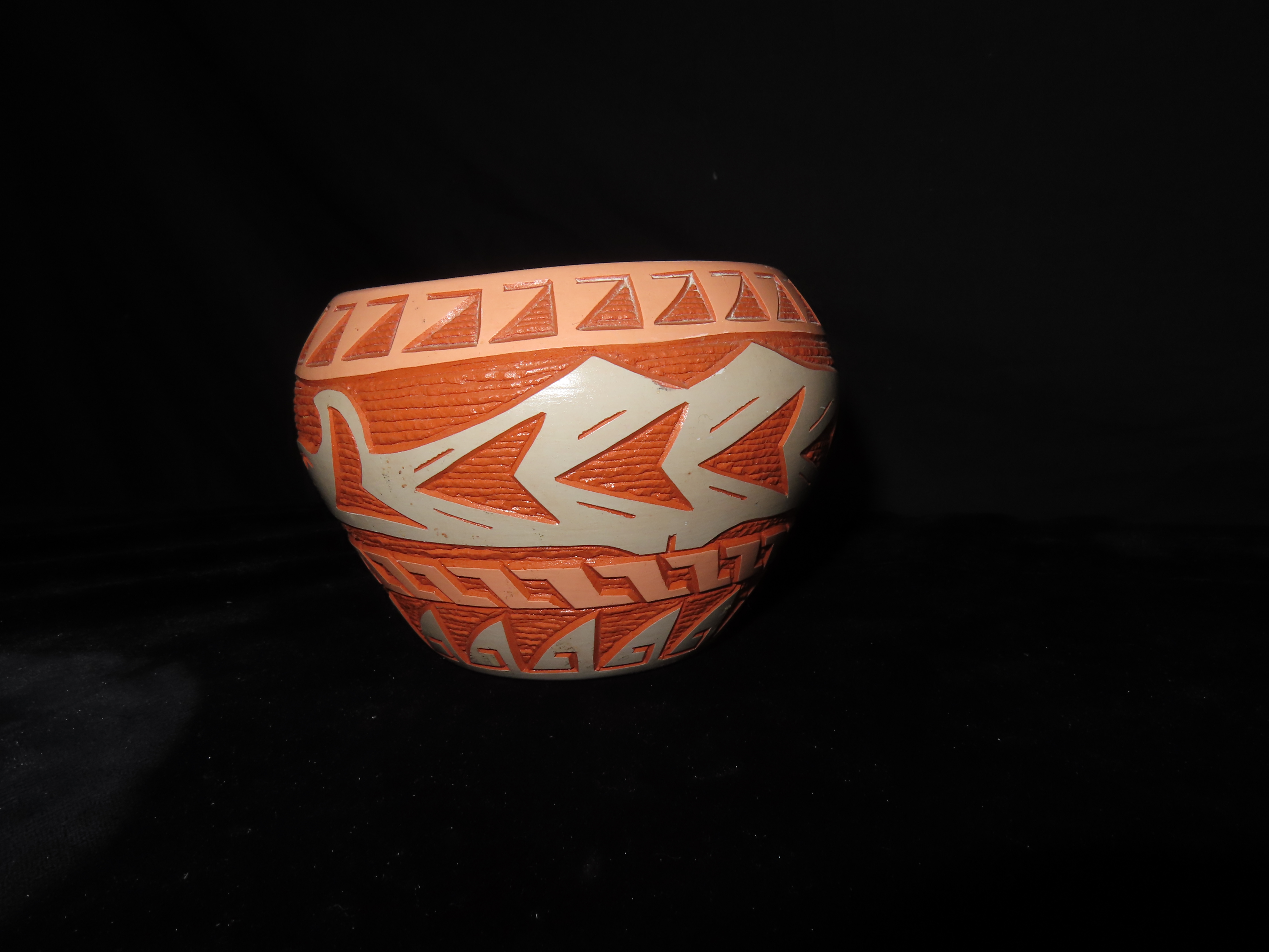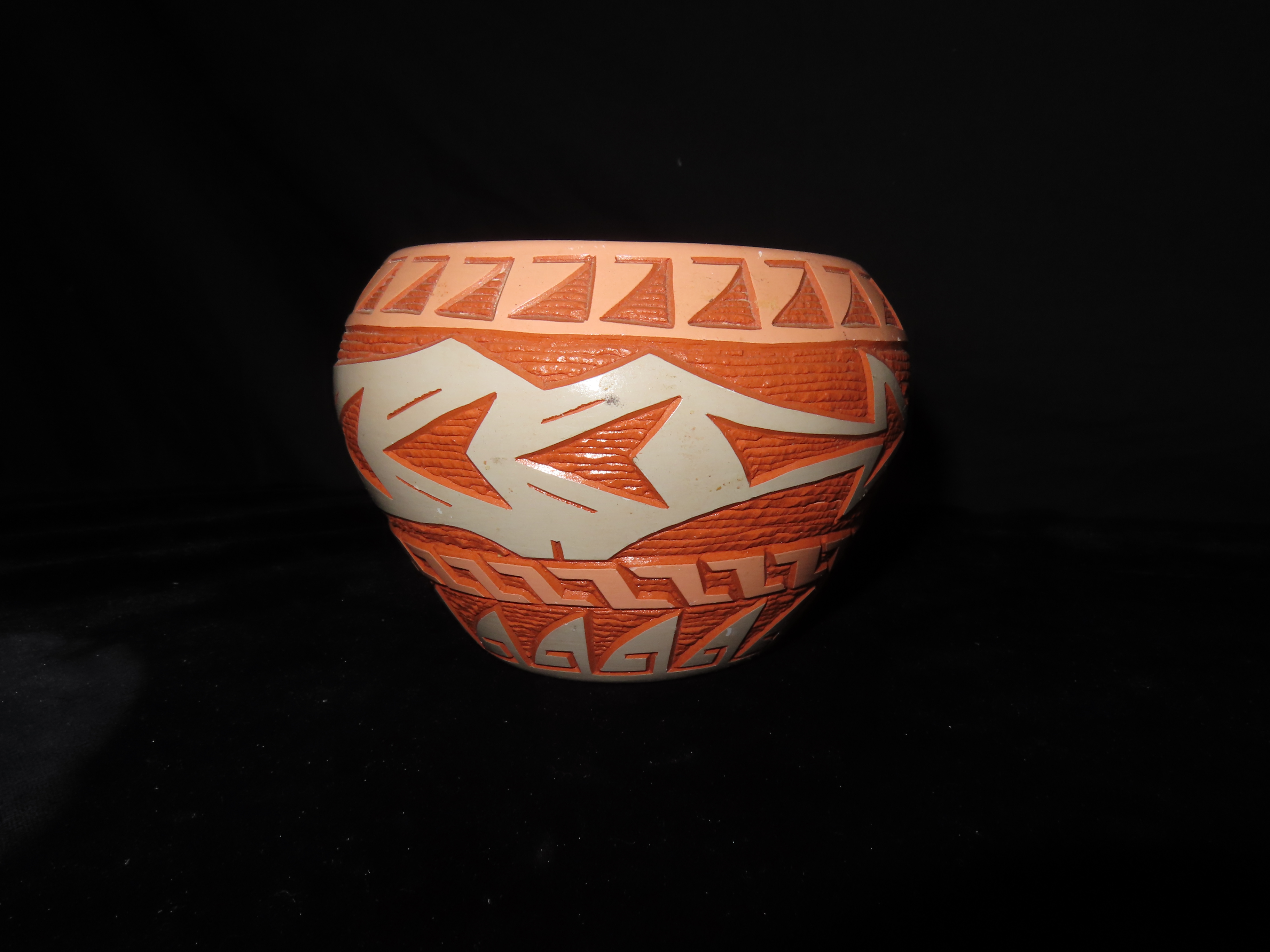 Authentic Native American Hand-crafted Pottery from the American Southwest, signed P.K. Lucario Laguna NM ’93; see photos for artist signature(if available) and approx. sizes. Key words: Native American, Indian, Signed, Navajo, Southwest, Pottery, Kokopelli, Fetish, Animal, Effigy, Anthropomorphic, Horse Hair, Terra Cotta, Hand-crafted, Fired, Glazed, Painted, Vintage, Santa Clara, Redware, Hopi, Acoma, Wedding Vase, Bowl, Vessel, Signed, Clay, Bear, Turtle, Canoe, Totem Pole, Totem, Anasazi, Cliff Dwelling, Vase, Urn, Dish, Red Clay, Black-on-black ware, Mud Hut, Incense, Lidded Box, Lidded bowl, University, Art, Project, Souvenir, Trade, Tourist, Tourism, Reservation, Hand made, New Mexico, Arizona, Red, Green, Blue, Yellow, Orange, Purple,Black
