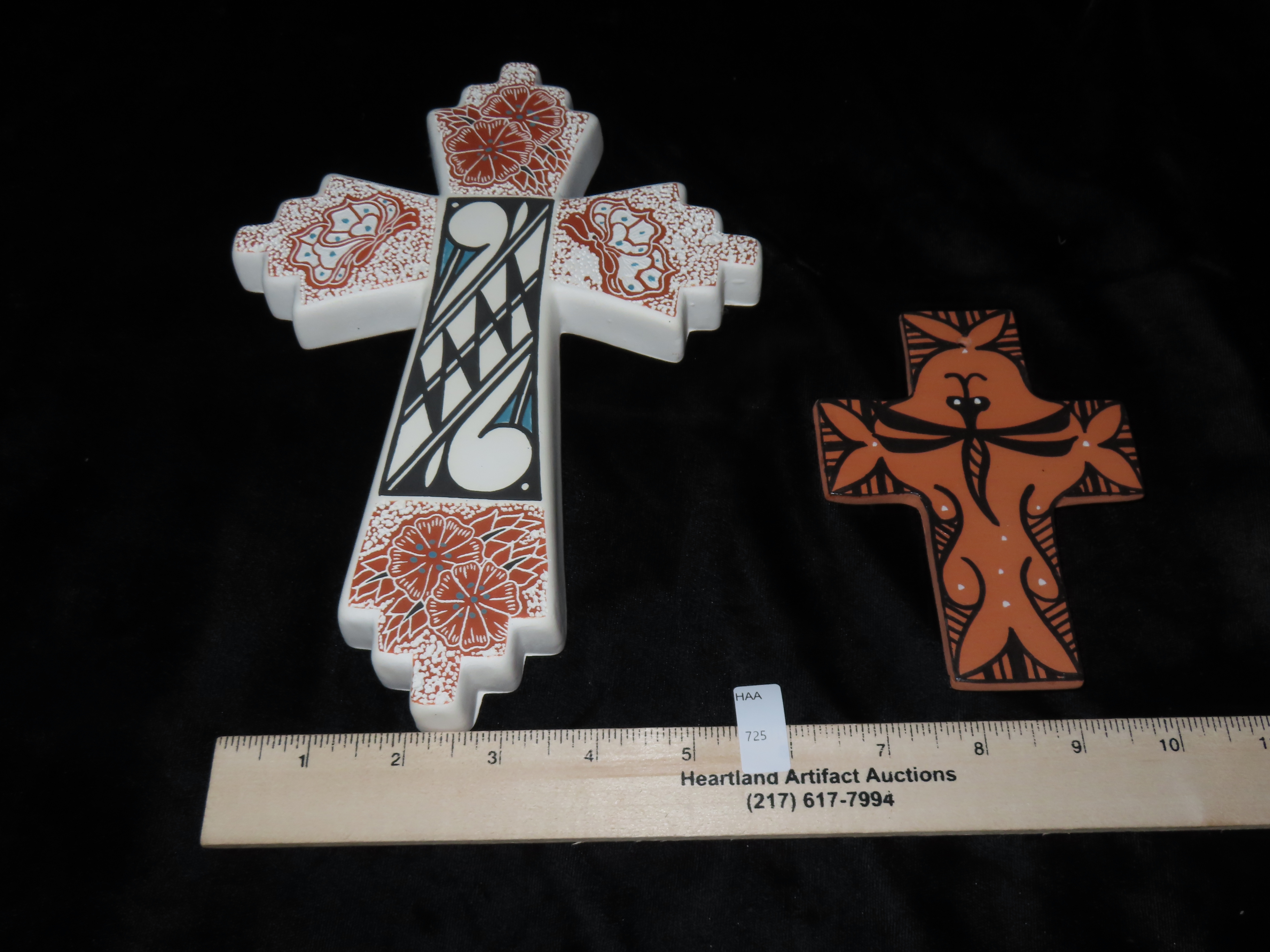 Authentic Native American Hand-crafted Pottery from the American Southwest, see photos for artist signature(if available) and approx. sizes. Key words: Native American, Indian, Signed, Navajo, Southwest, Pottery, Kokopelli, Fetish, Animal, Effigy, Anthropomorphic, Horse Hair, Terra Cotta, Hand-crafted, Fired, Glazed, Painted, Vintage, Santa Clara, Redware, Hopi, Acoma, Wedding Vase, Bowl, Vessel, Signed, Clay, Bear, Turtle, Canoe, Totem Pole, Totem, Anasazi, Cliff Dwelling, Vase, Urn, Dish, Red Clay, Black-on-black ware, Mud Hut, Incense, Lidded Box, Lidded bowl, University, Art, Project, Souvenir, Trade, Tourist, Tourism, Reservation, Hand made, New Mexico, Arizona, Red, Green, Blue, Yellow, Orange, Purple,Black