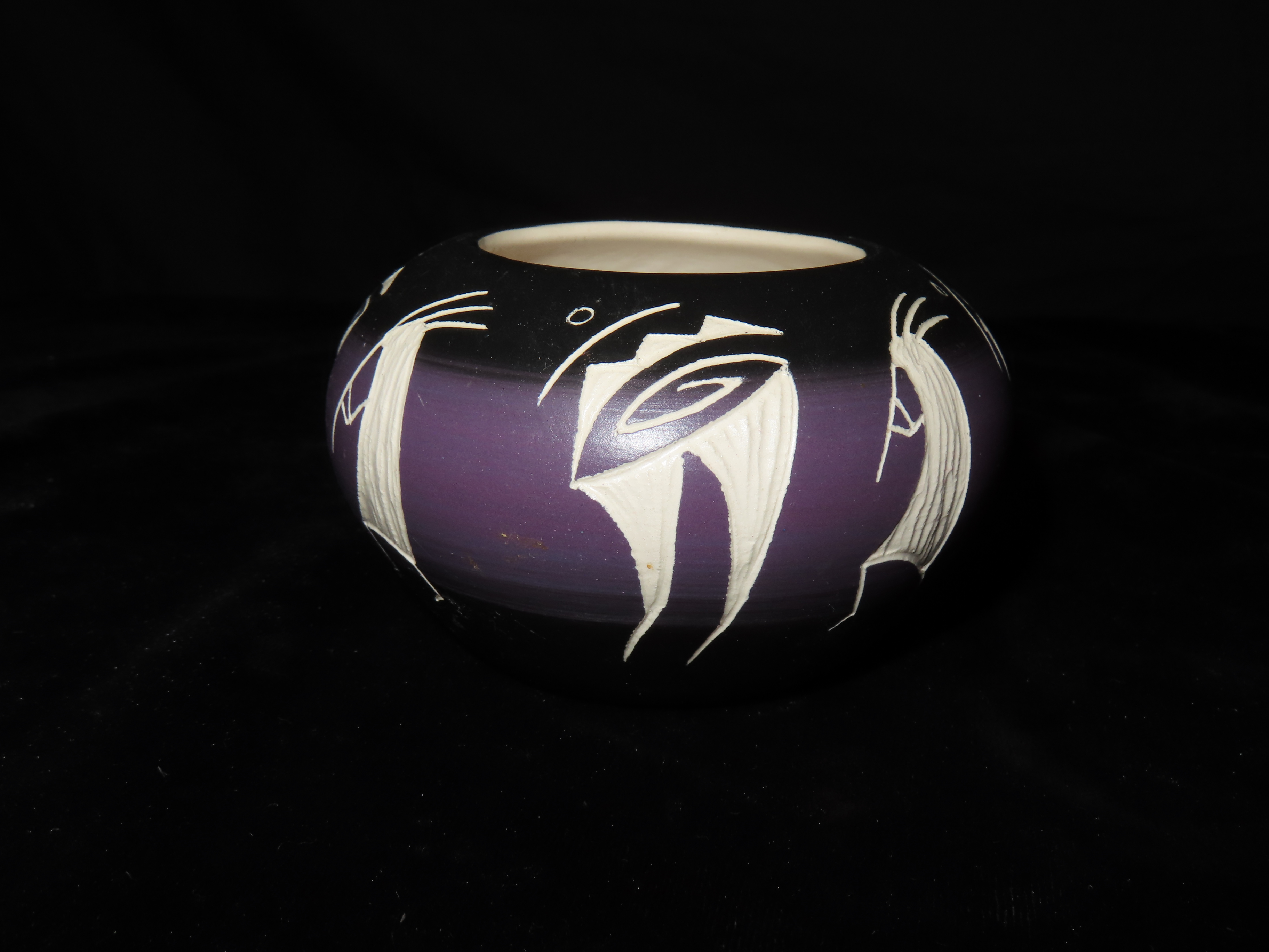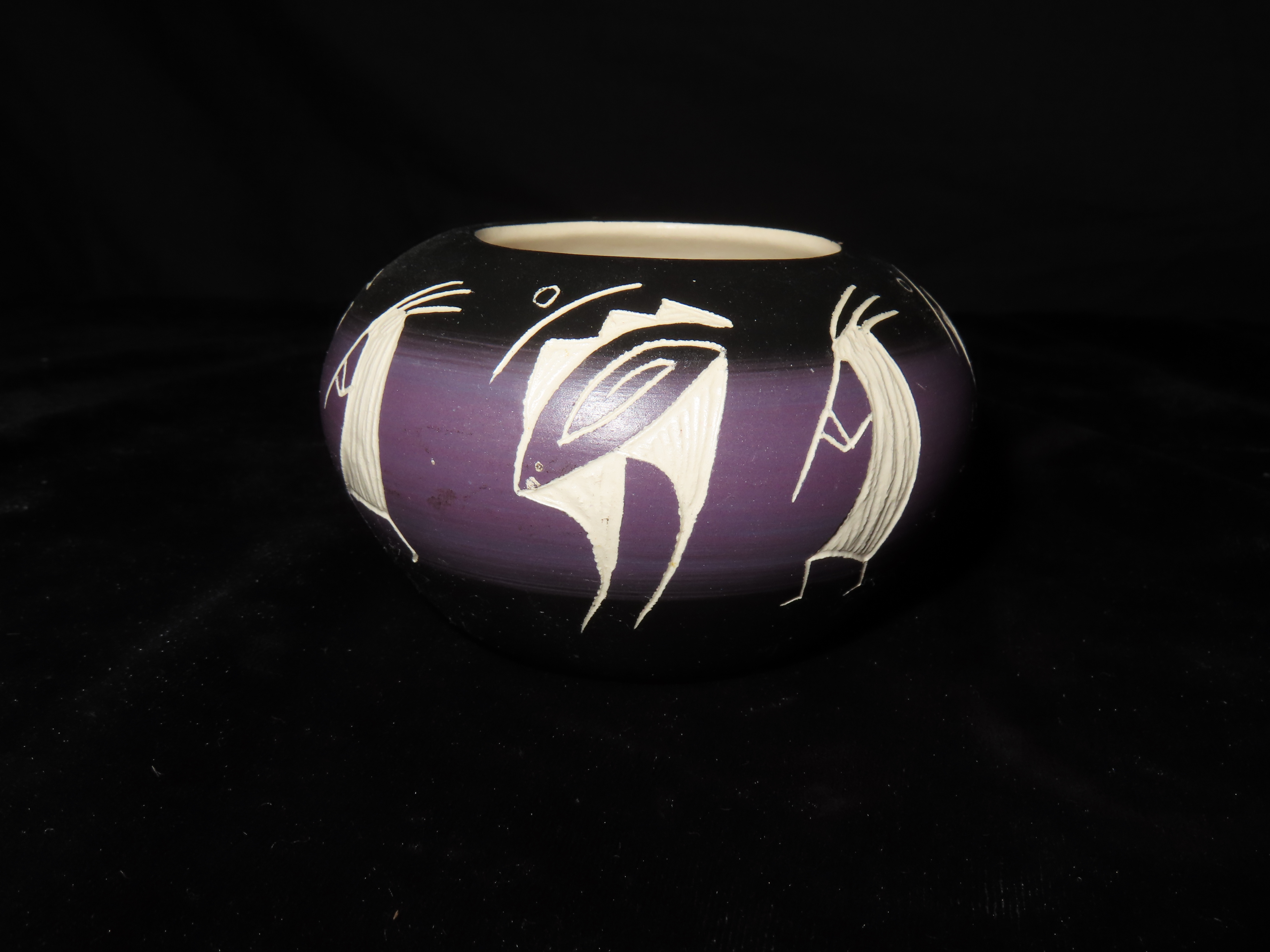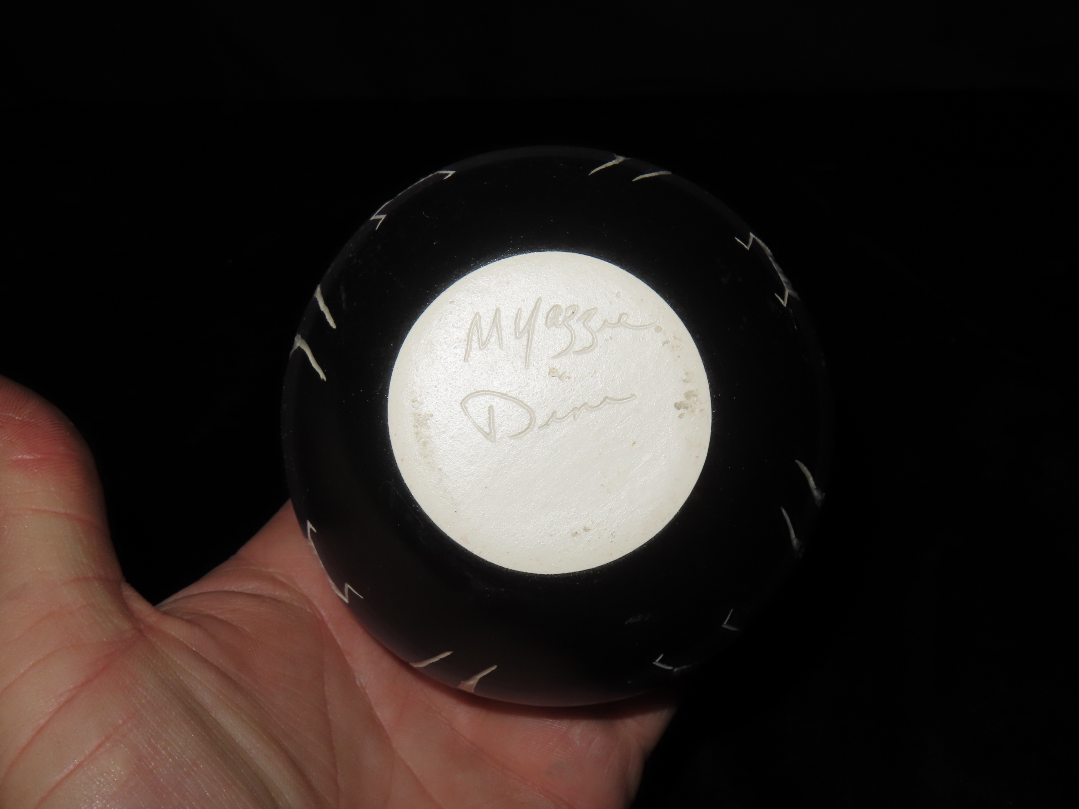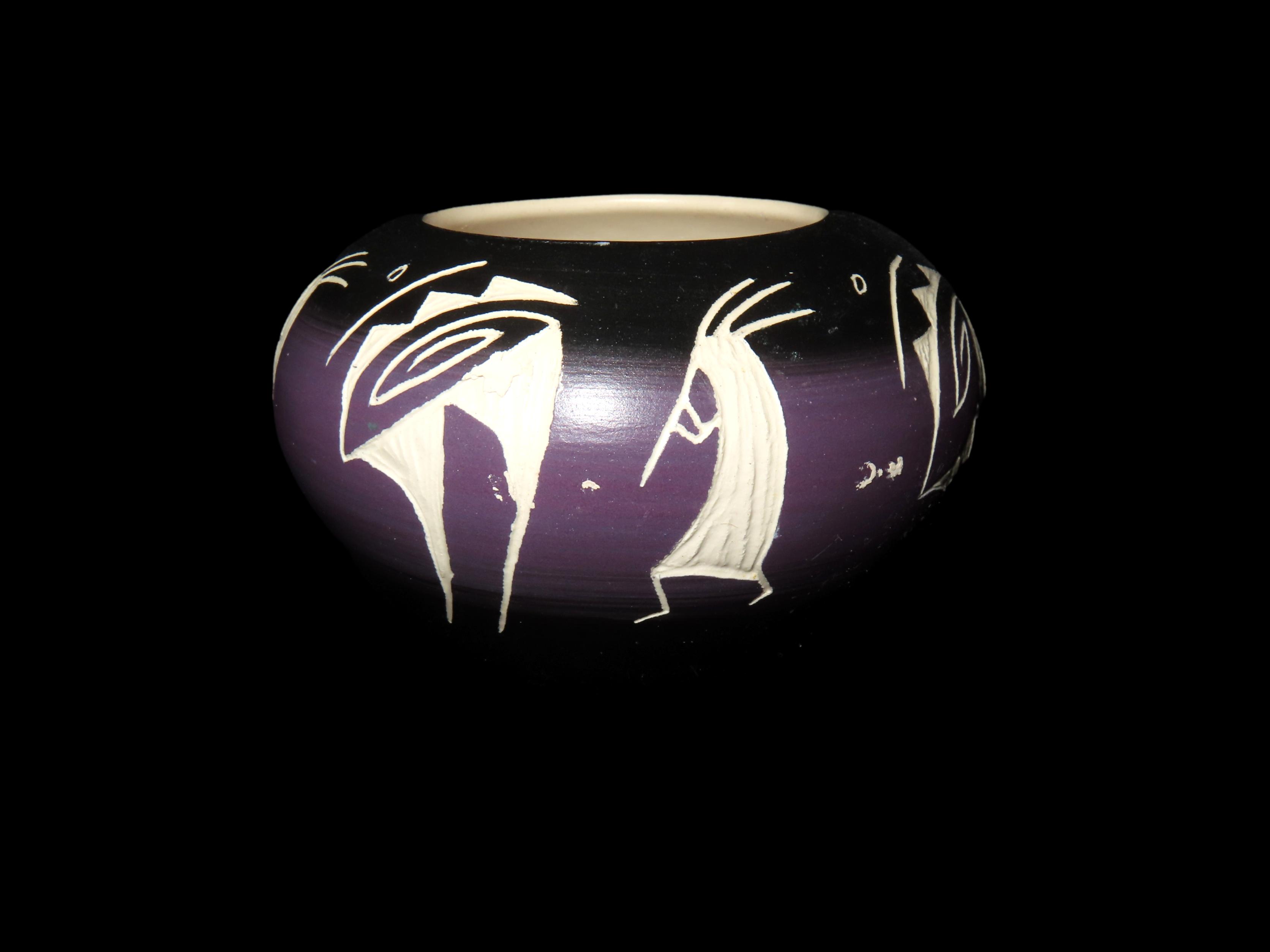 Authentic Native American Hand-crafted Pottery from the American Southwest, signed M Yazzi Dine; see photos for artist signature(if available) and approx. sizes. Key words: Native American, Indian, Signed, Navajo, Southwest, Pottery, Kokopelli, Fetish, Animal, Effigy, Anthropomorphic, Horse Hair, Terra Cotta, Hand-crafted, Fired, Glazed, Painted, Vintage, Santa Clara, Redware, Hopi, Acoma, Wedding Vase, Bowl, Vessel, Signed, Clay, Bear, Turtle, Canoe, Totem Pole, Totem, Anasazi, Cliff Dwelling, Vase, Urn, Dish, Red Clay, Black-on-black ware, Mud Hut, Incense, Lidded Box, Lidded bowl, University, Art, Project, Souvenir, Trade, Tourist, Tourism, Reservation, Hand made, New Mexico, Arizona, Red, Green, Blue, Yellow, Orange, Purple,Black