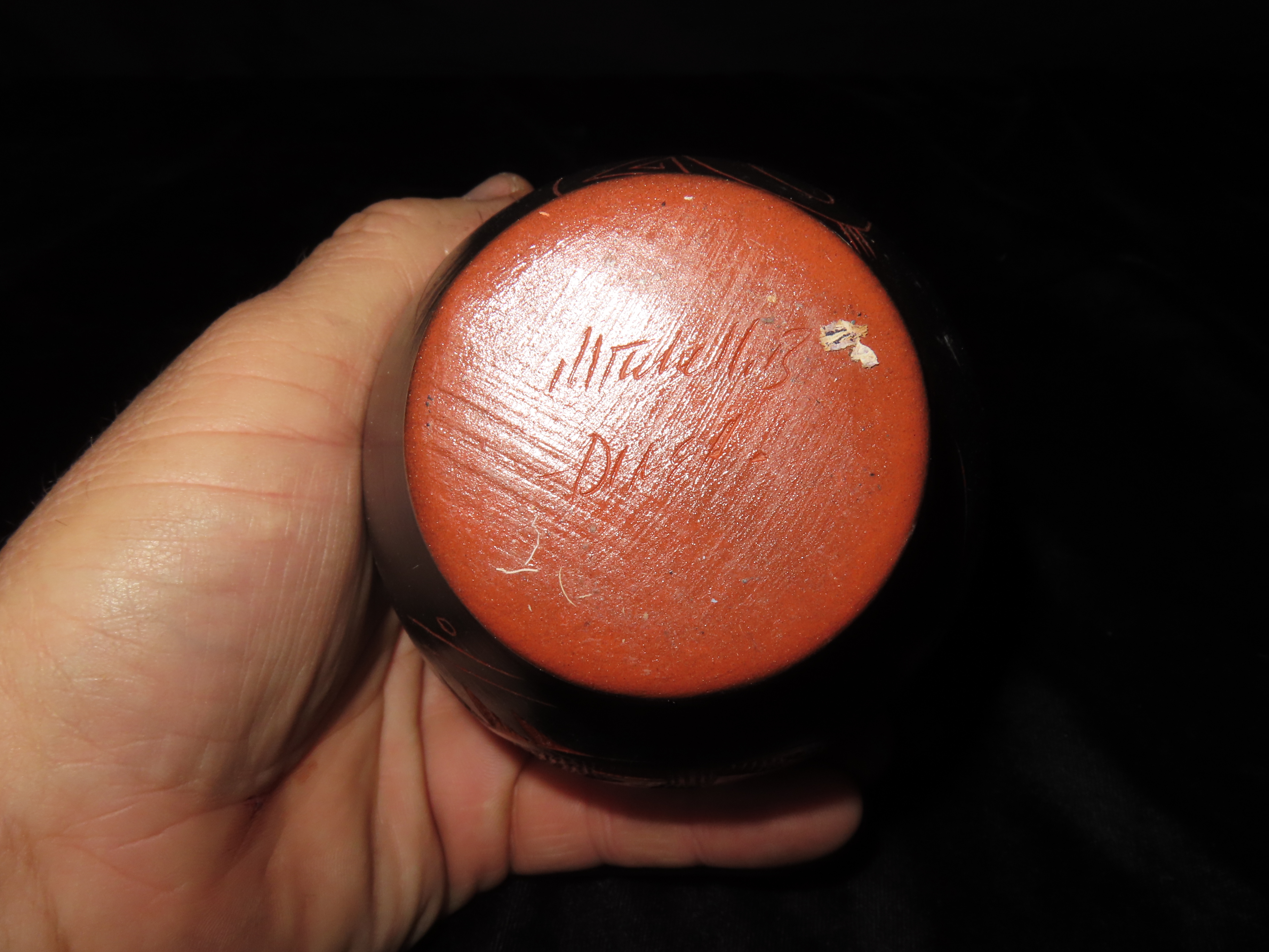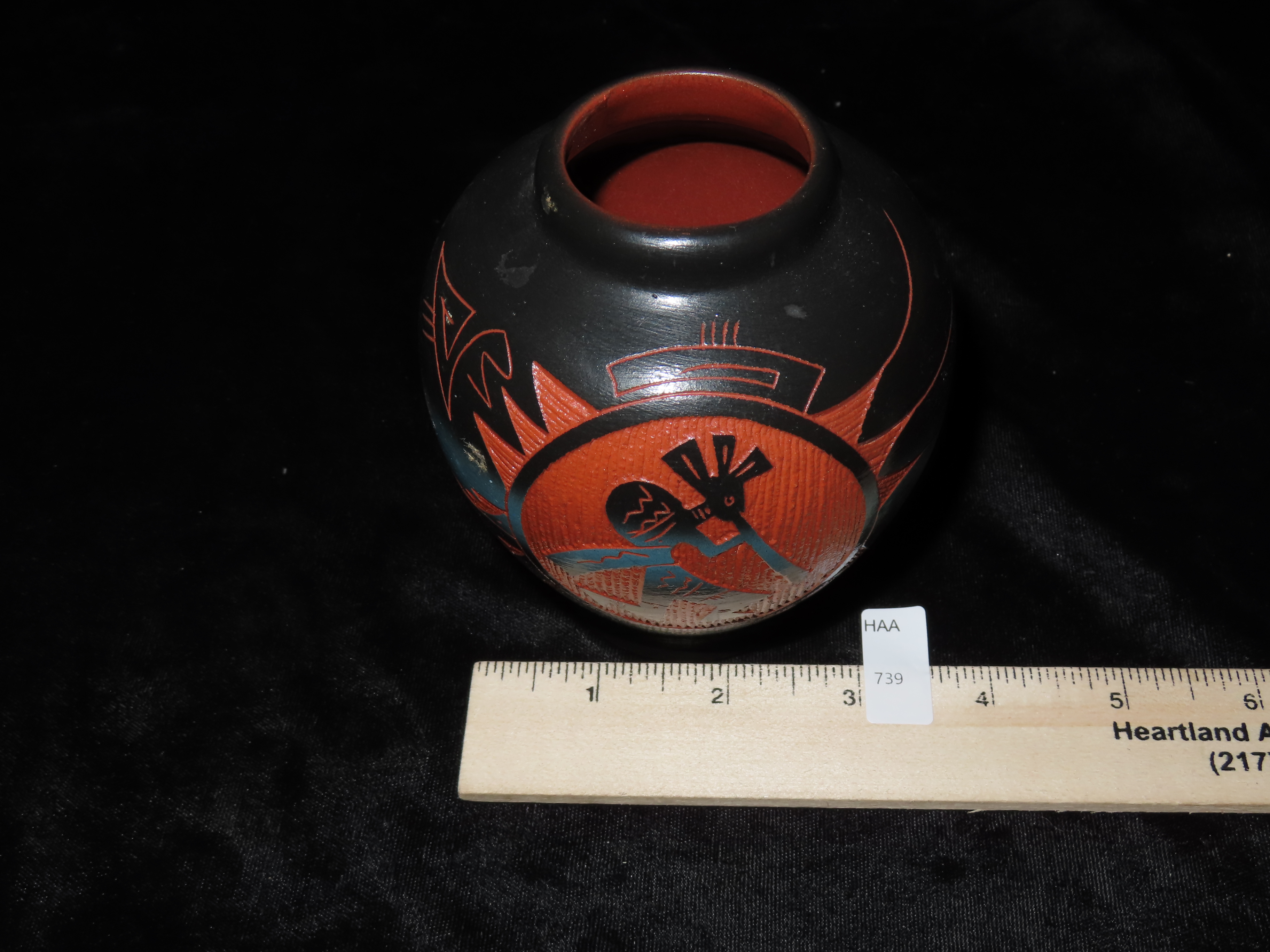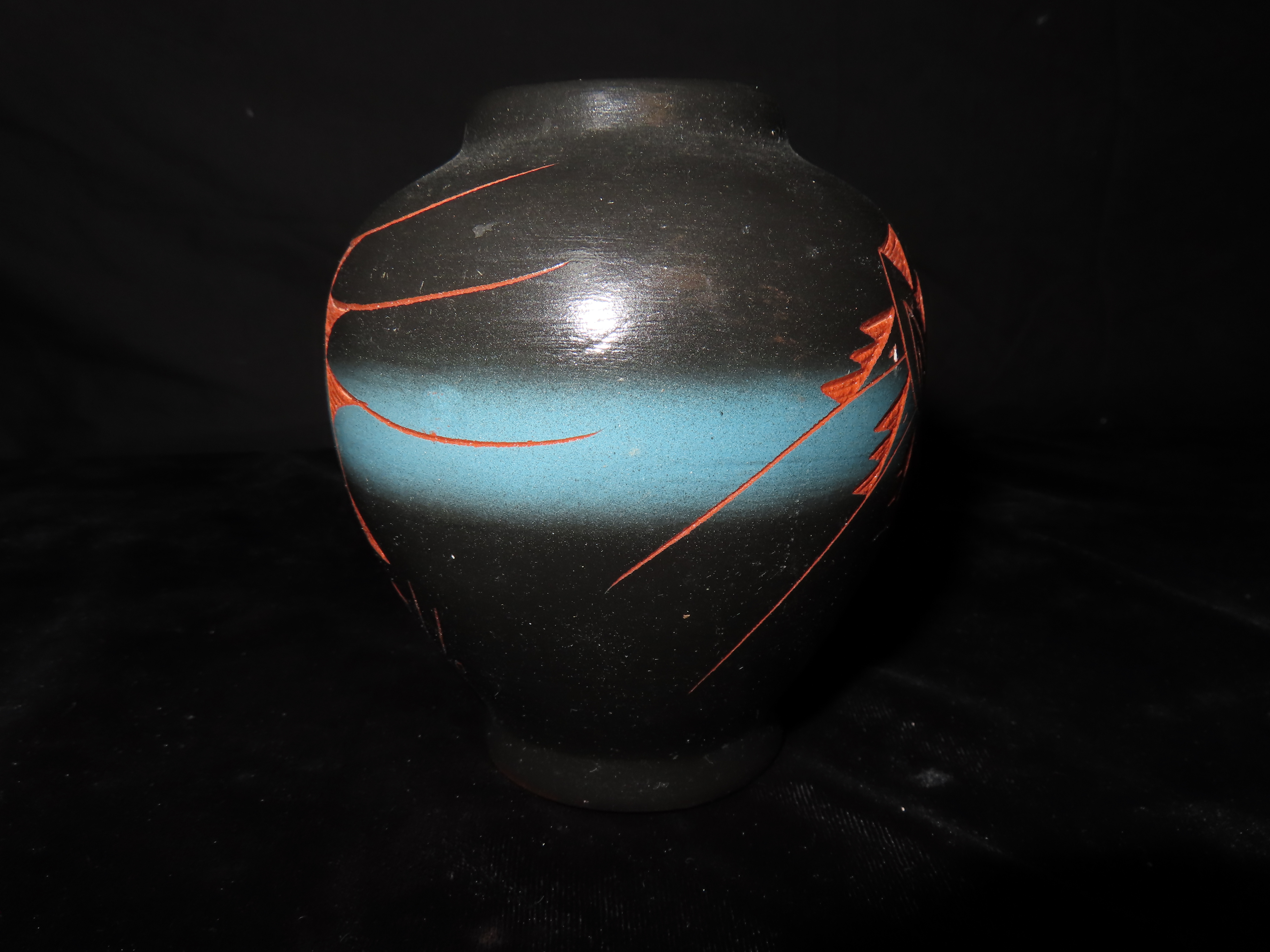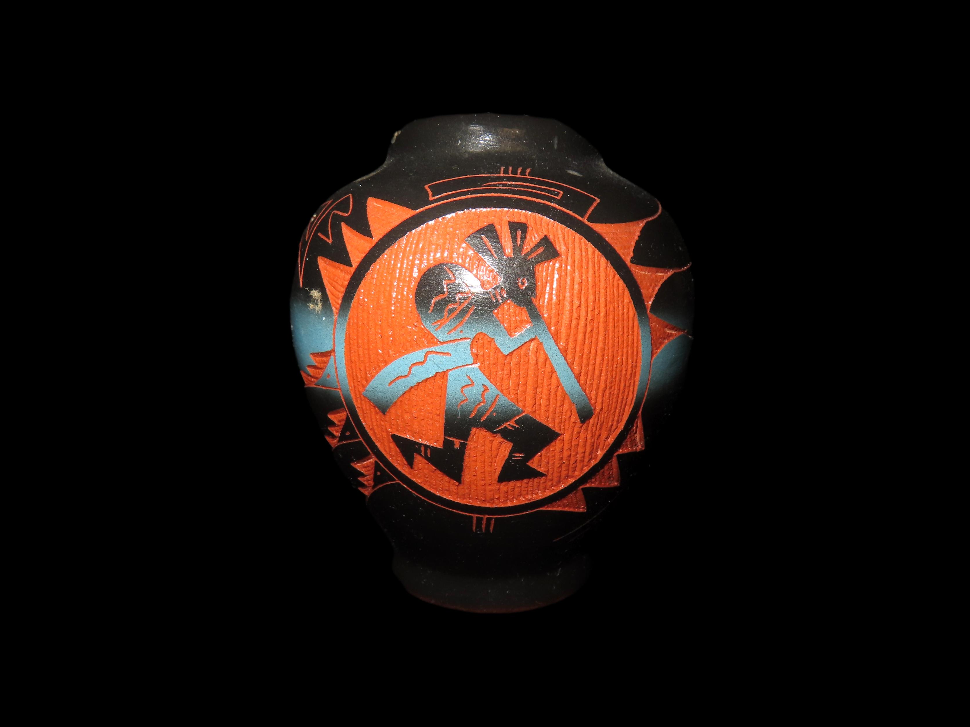 Authentic Native American Hand-crafted Pottery from the American Southwest, signed Mitchell Blackhorse Dineh;see photos for artist signature(if available) and approx. sizes. Key words: Native American, Indian, Signed, Navajo, Southwest, Pottery, Kokopelli, Fetish, Animal, Effigy, Anthropomorphic, Horse Hair, Terra Cotta, Hand-crafted, Fired, Glazed, Painted, Vintage, Santa Clara, Redware, Hopi, Acoma, Wedding Vase, Bowl, Vessel, Signed, Clay, Bear, Turtle, Canoe, Totem Pole, Totem, Anasazi, Cliff Dwelling, Vase, Urn, Dish, Red Clay, Black-on-black ware, Mud Hut, Incense, Lidded Box, Lidded bowl, University, Art, Project, Souvenir, Trade, Tourist, Tourism, Reservation, Hand made, New Mexico, Arizona, Red, Green, Blue, Yellow, Orange, Purple,Black