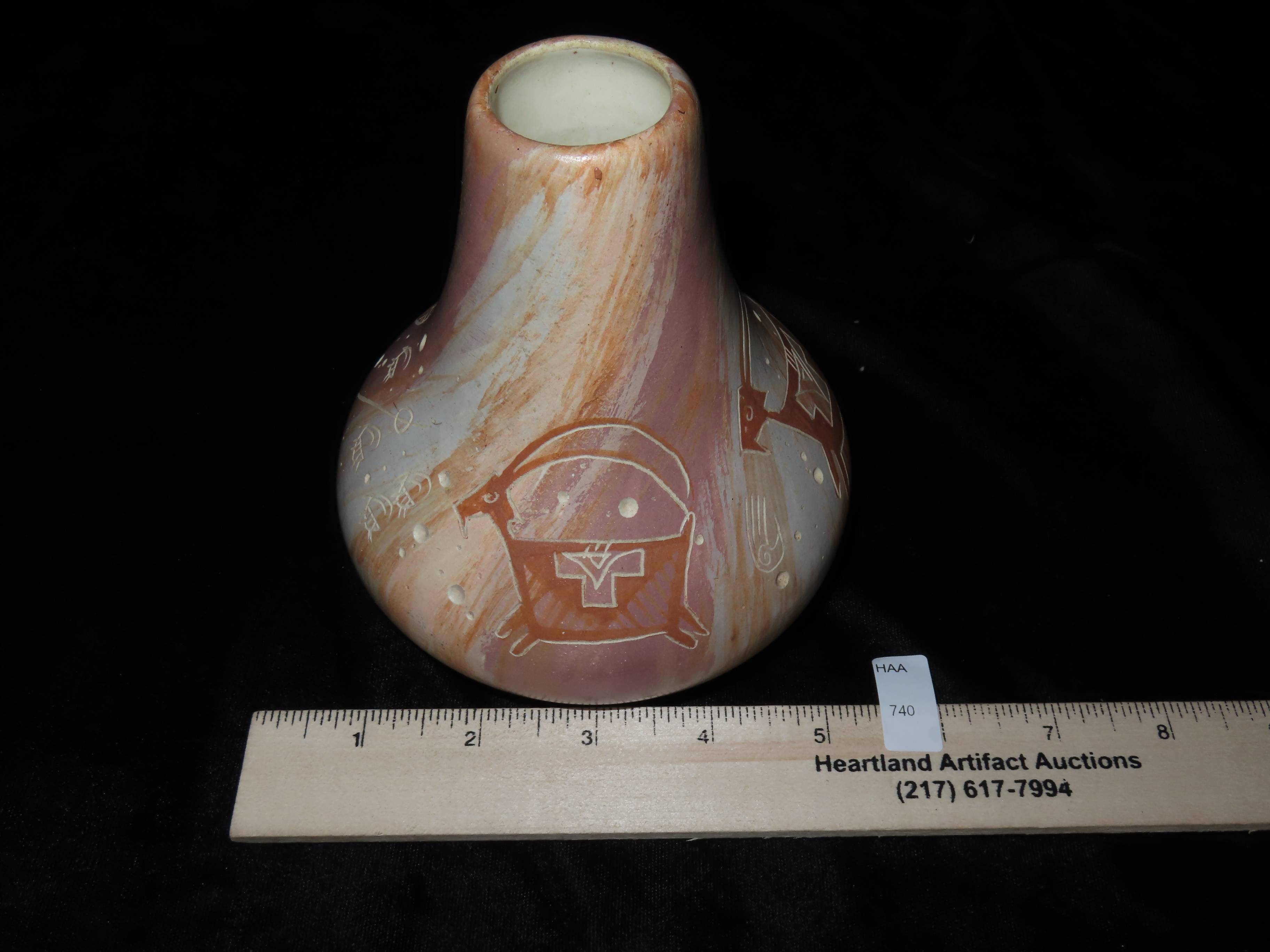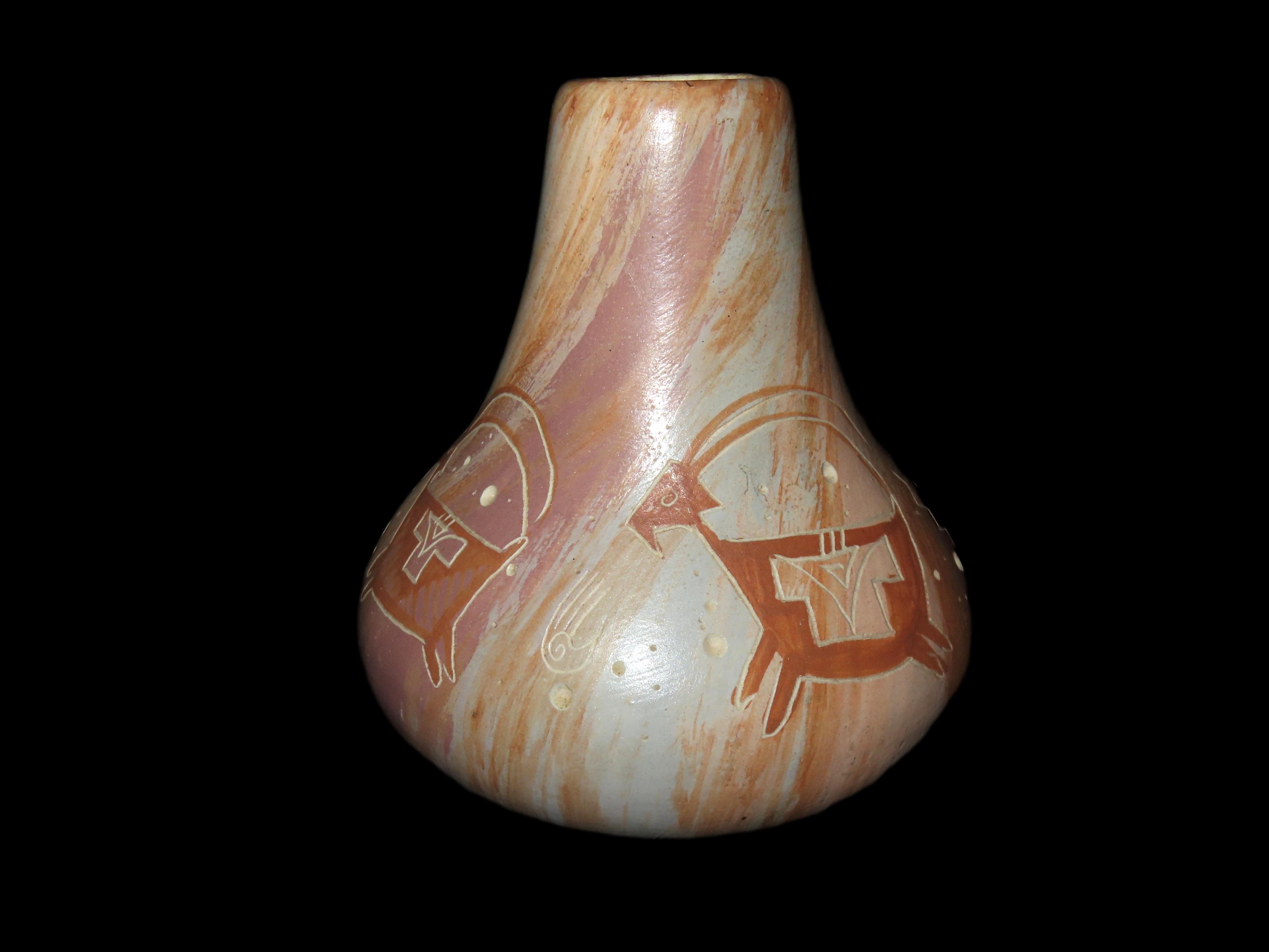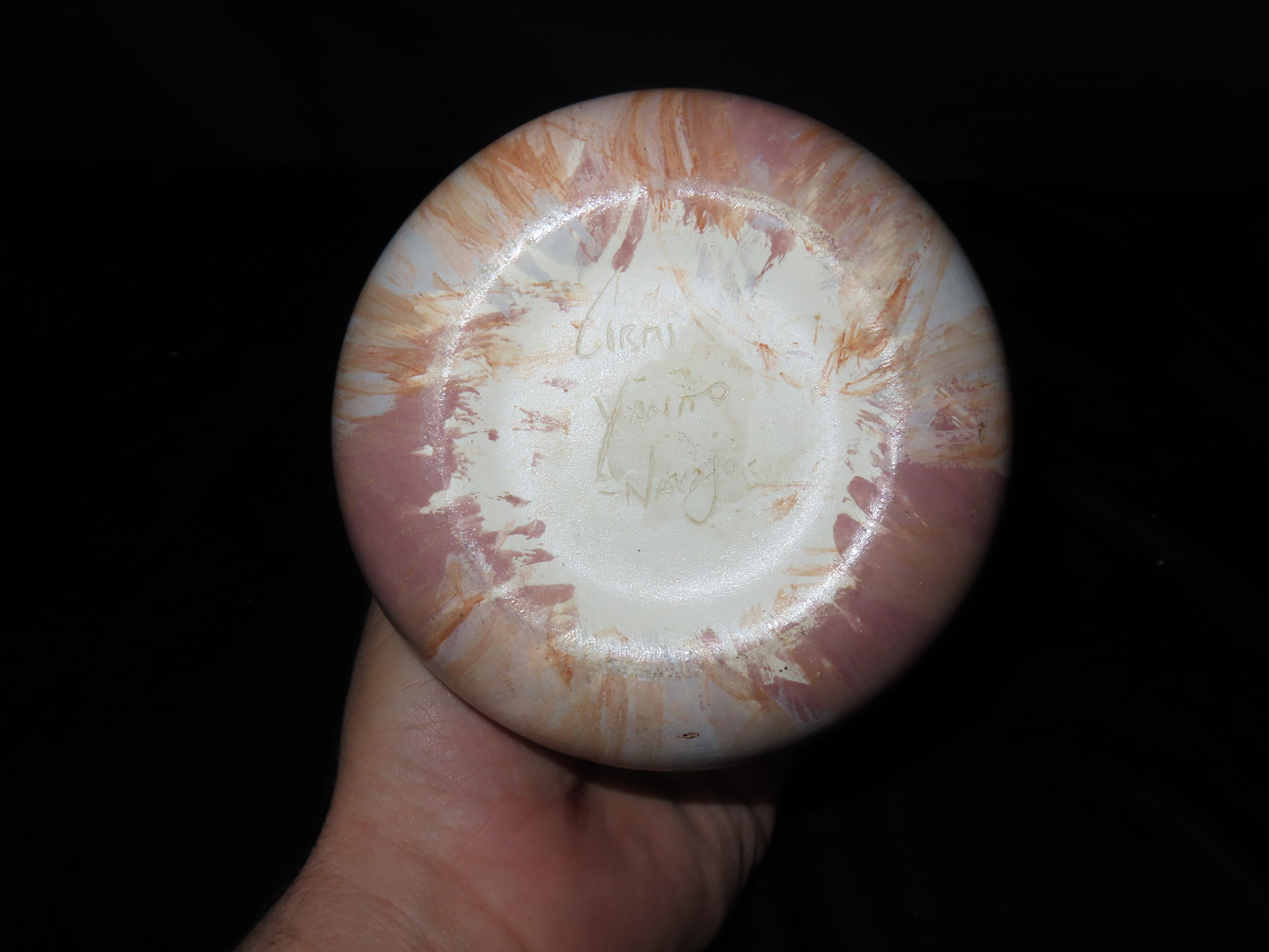 Authentic Native American Hand-crafted Pottery from the American Southwest, signed C? Yanito Navajo; see photos for artist signature(if available) and approx. sizes. Key words: Native American, Indian, Signed, Navajo, Southwest, Pottery, Kokopelli, Fetish, Animal, Effigy, Anthropomorphic, Horse Hair, Terra Cotta, Hand-crafted, Fired, Glazed, Painted, Vintage, Santa Clara, Redware, Hopi, Acoma, Wedding Vase, Bowl, Vessel, Signed, Clay, Bear, Turtle, Canoe, Totem Pole, Totem, Anasazi, Cliff Dwelling, Vase, Urn, Dish, Red Clay, Black-on-black ware, Mud Hut, Incense, Lidded Box, Lidded bowl, University, Art, Project, Souvenir, Trade, Tourist, Tourism, Reservation, Hand made, New Mexico, Arizona, Red, Green, Blue, Yellow, Orange, Purple,Black