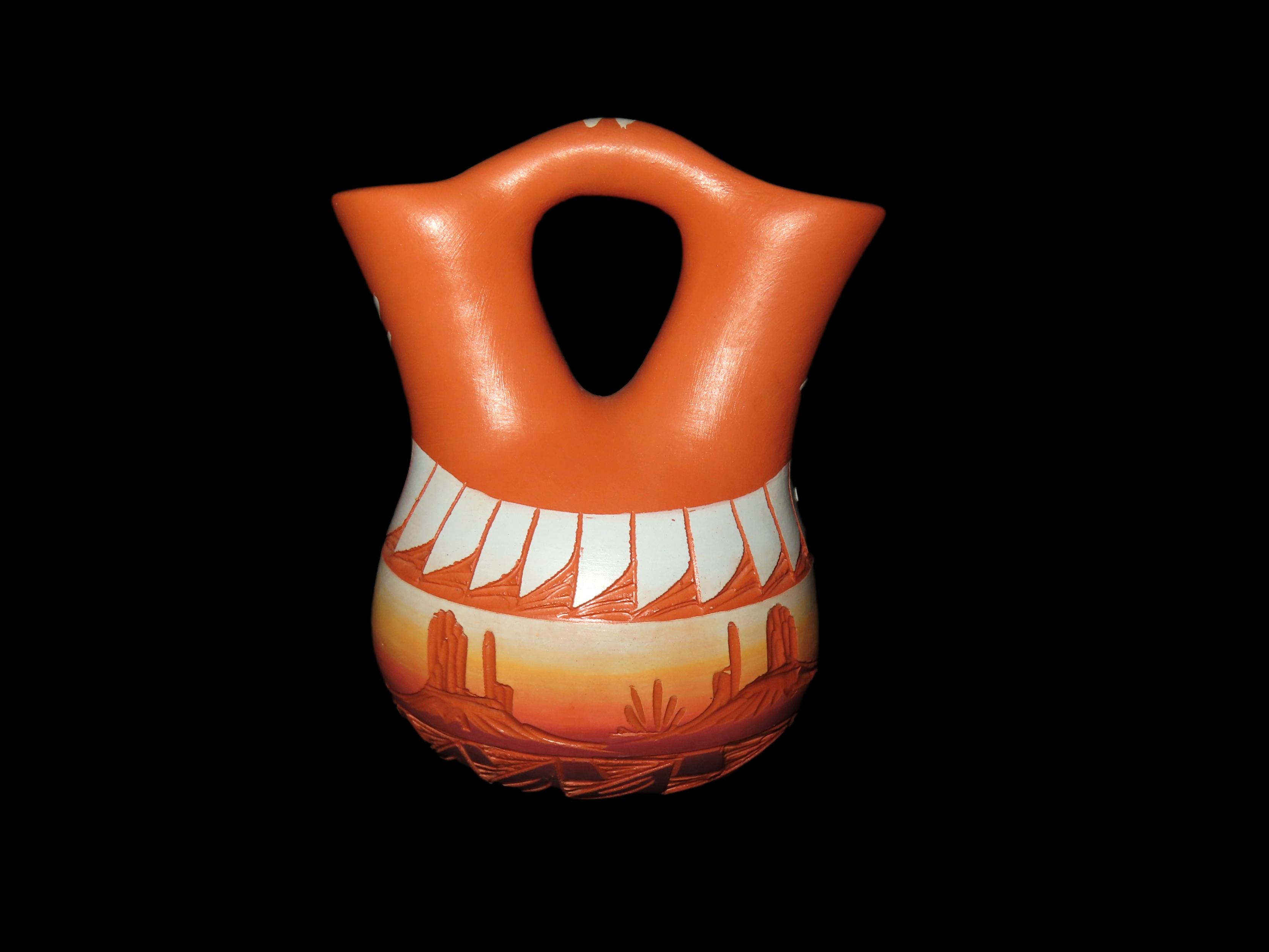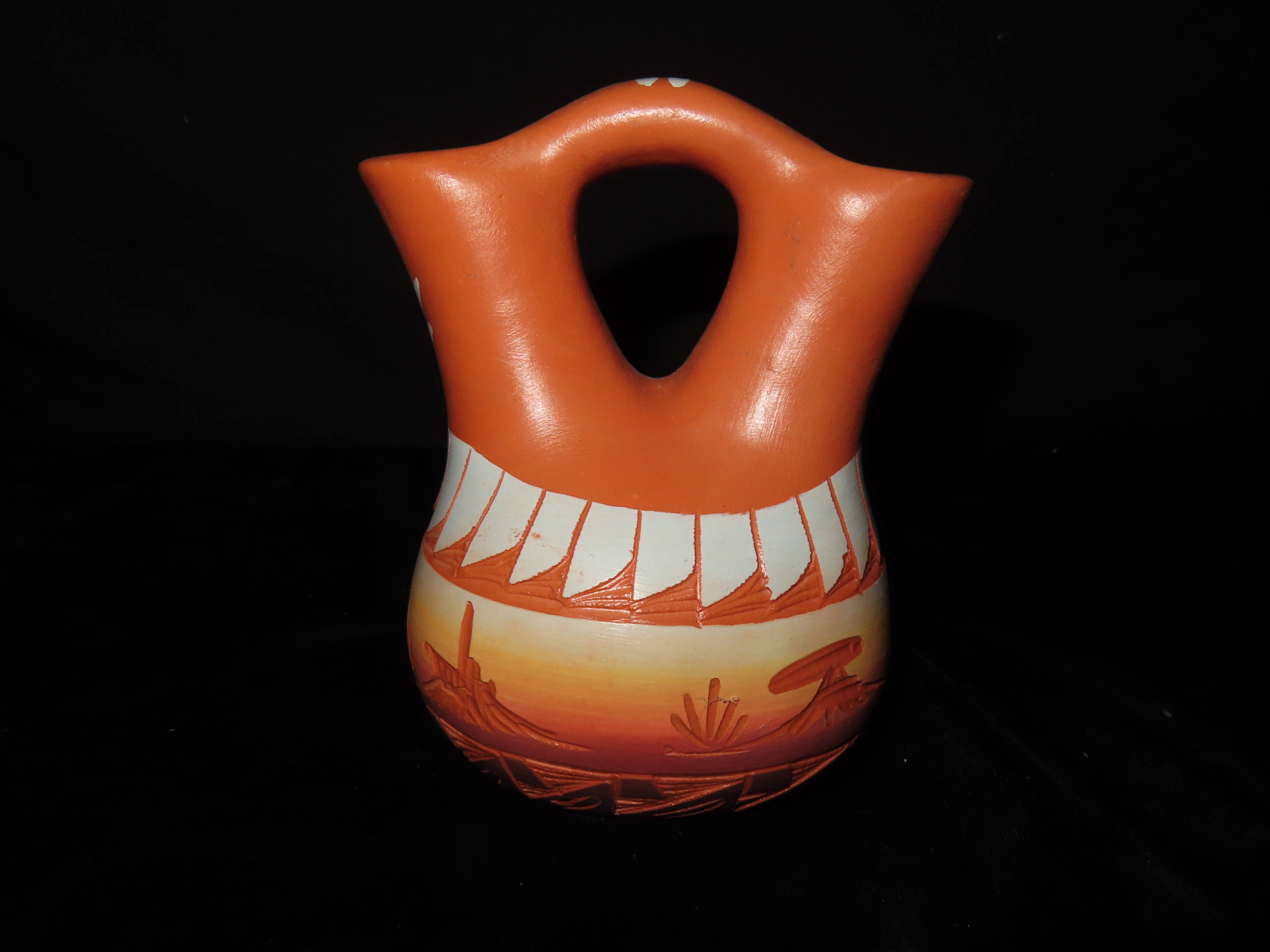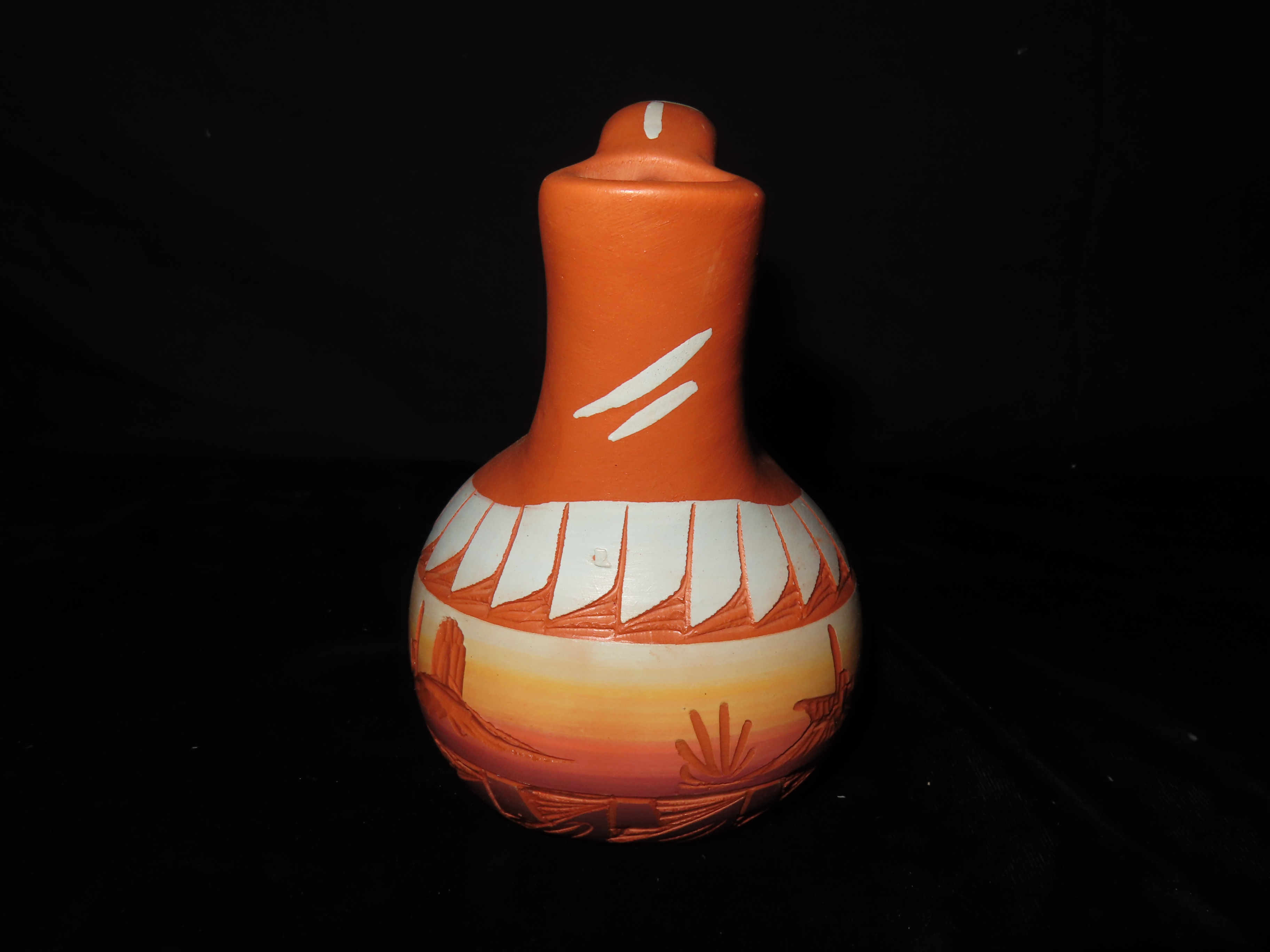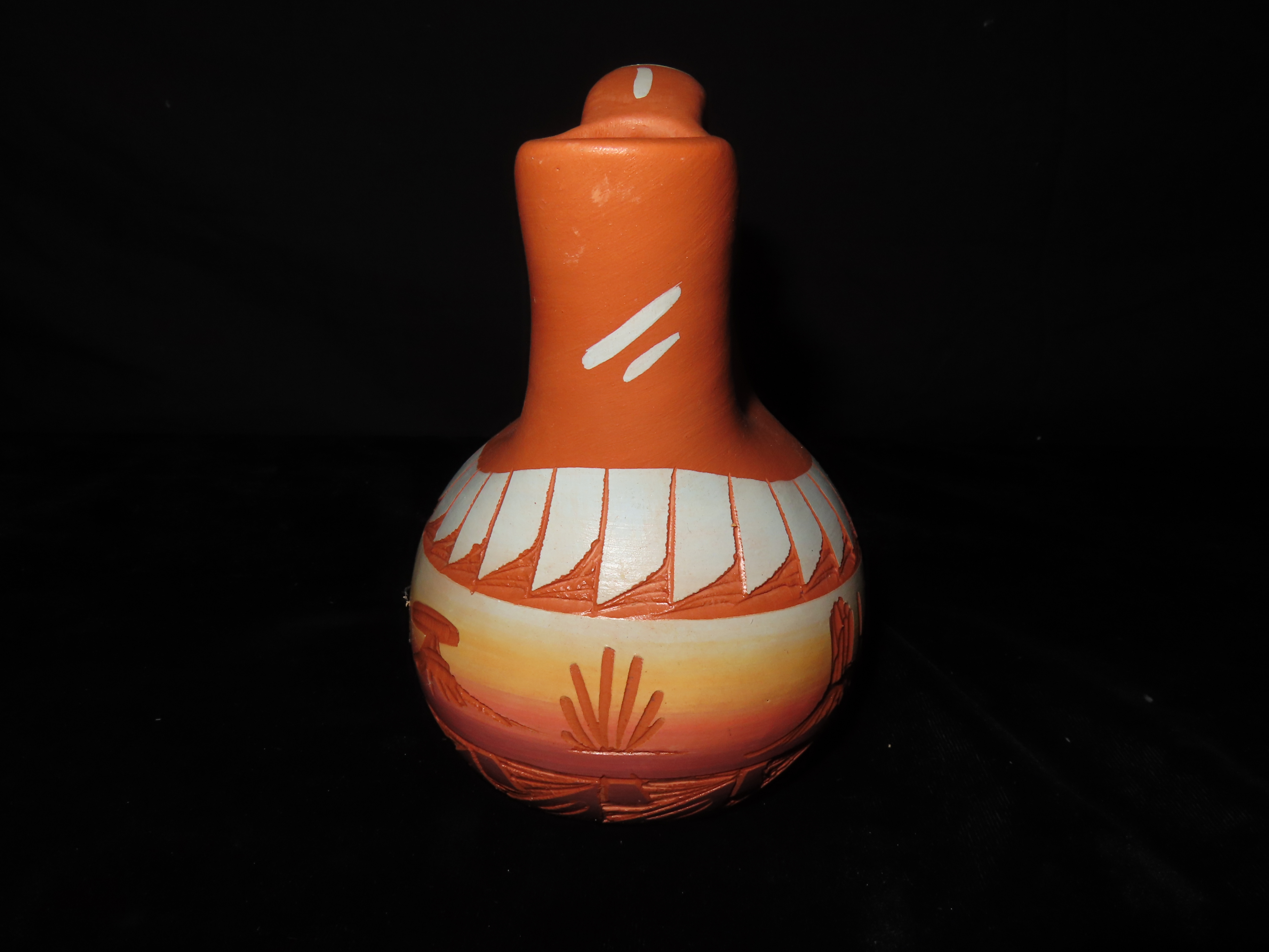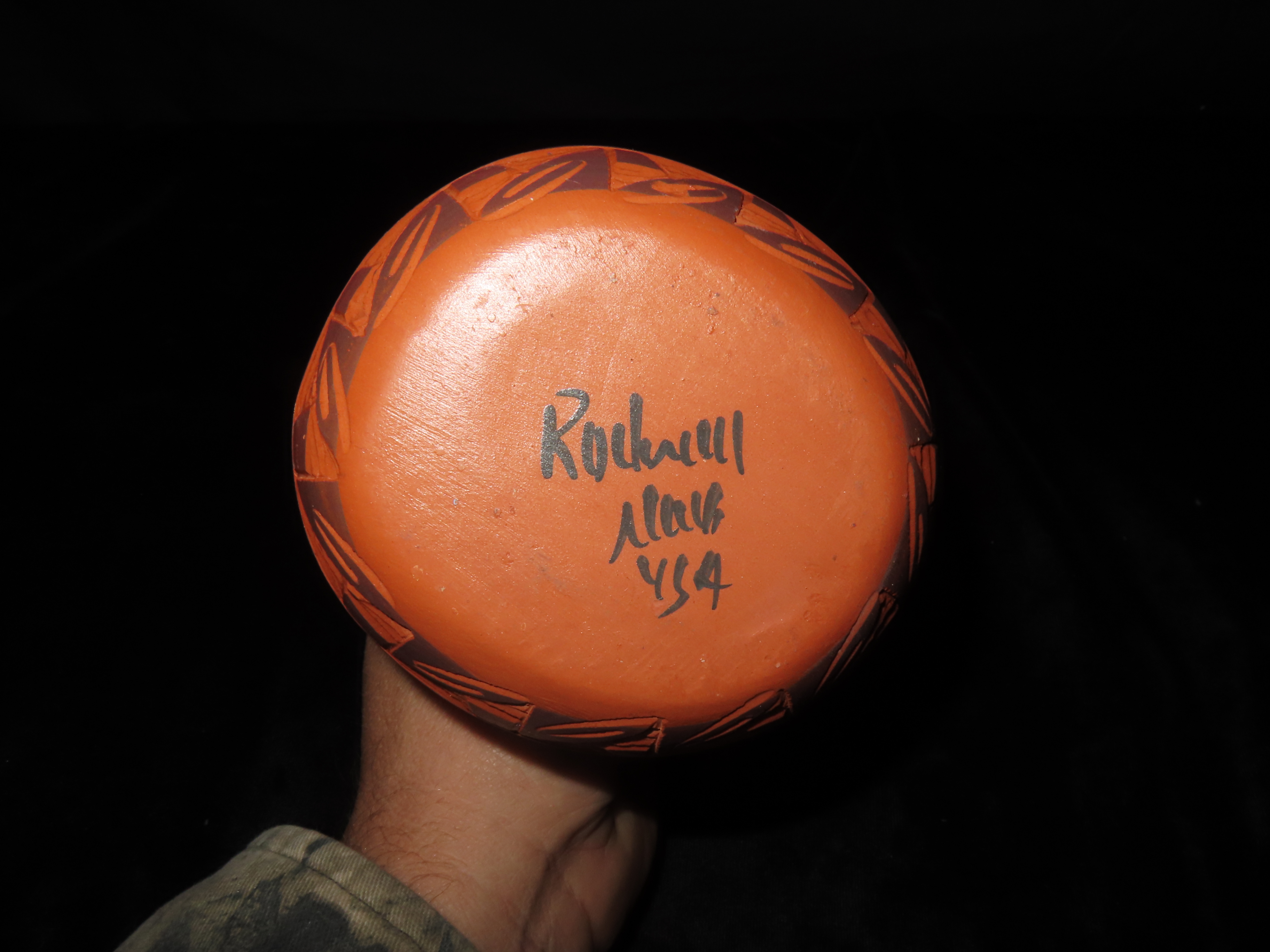 Authentic Native American Hand-crafted Pottery from the American Southwest, signed Rockwell Nav USA; see photos for artist signature(if available) and approx. sizes. Key words: Native American, Indian, Signed, Navajo, Southwest, Pottery, Kokopelli, Fetish, Animal, Effigy, Anthropomorphic, Horse Hair, Terra Cotta, Hand-crafted, Fired, Glazed, Painted, Vintage, Santa Clara, Redware, Hopi, Acoma, Wedding Vase, Bowl, Vessel, Signed, Clay, Bear, Turtle, Canoe, Totem Pole, Totem, Anasazi, Cliff Dwelling, Vase, Urn, Dish, Red Clay, Black-on-black ware, Mud Hut, Incense, Lidded Box, Lidded bowl, University, Art, Project, Souvenir, Trade, Tourist, Tourism, Reservation, Hand made, New Mexico, Arizona, Red, Green, Blue, Yellow, Orange, Purple,Black