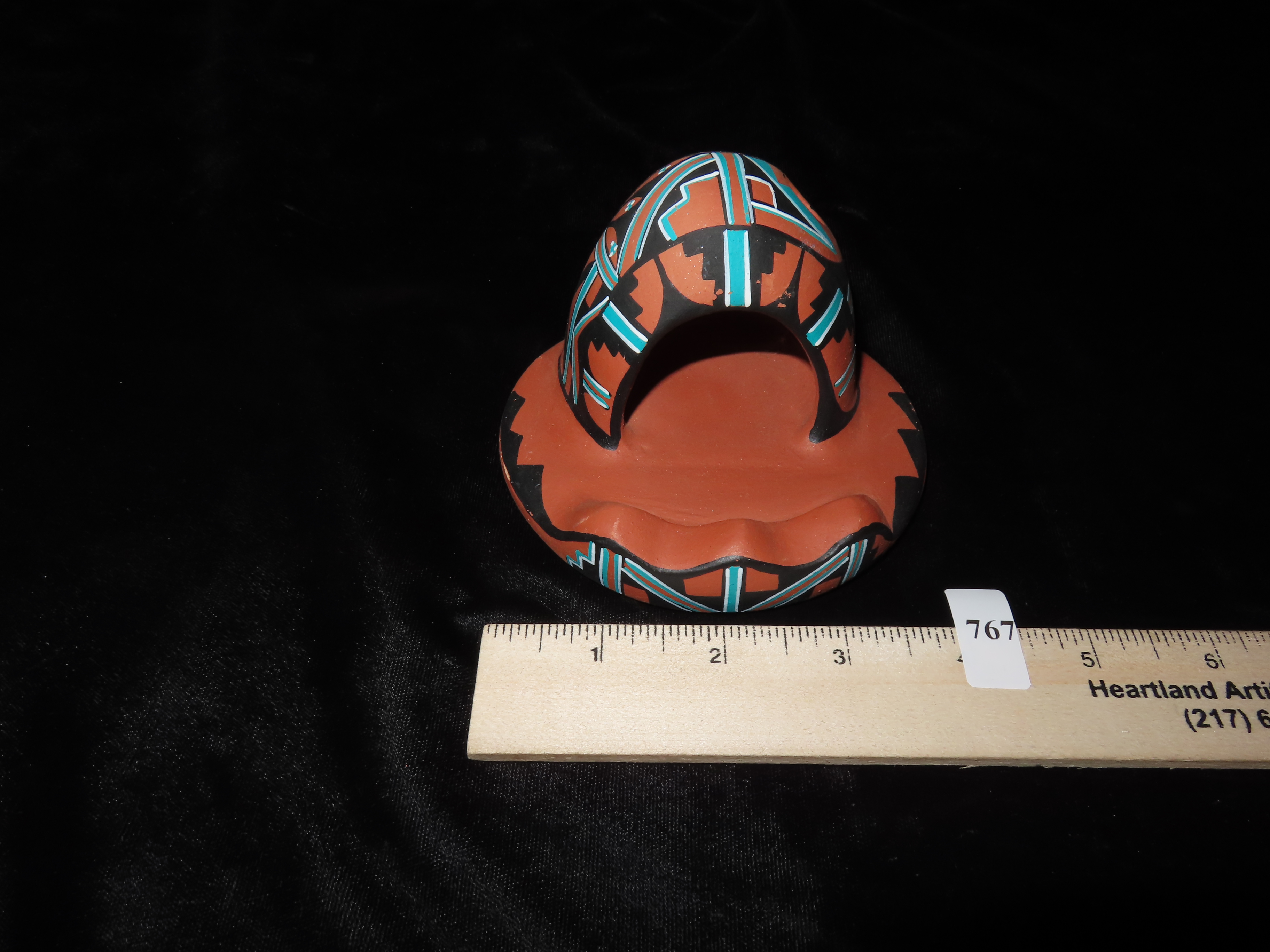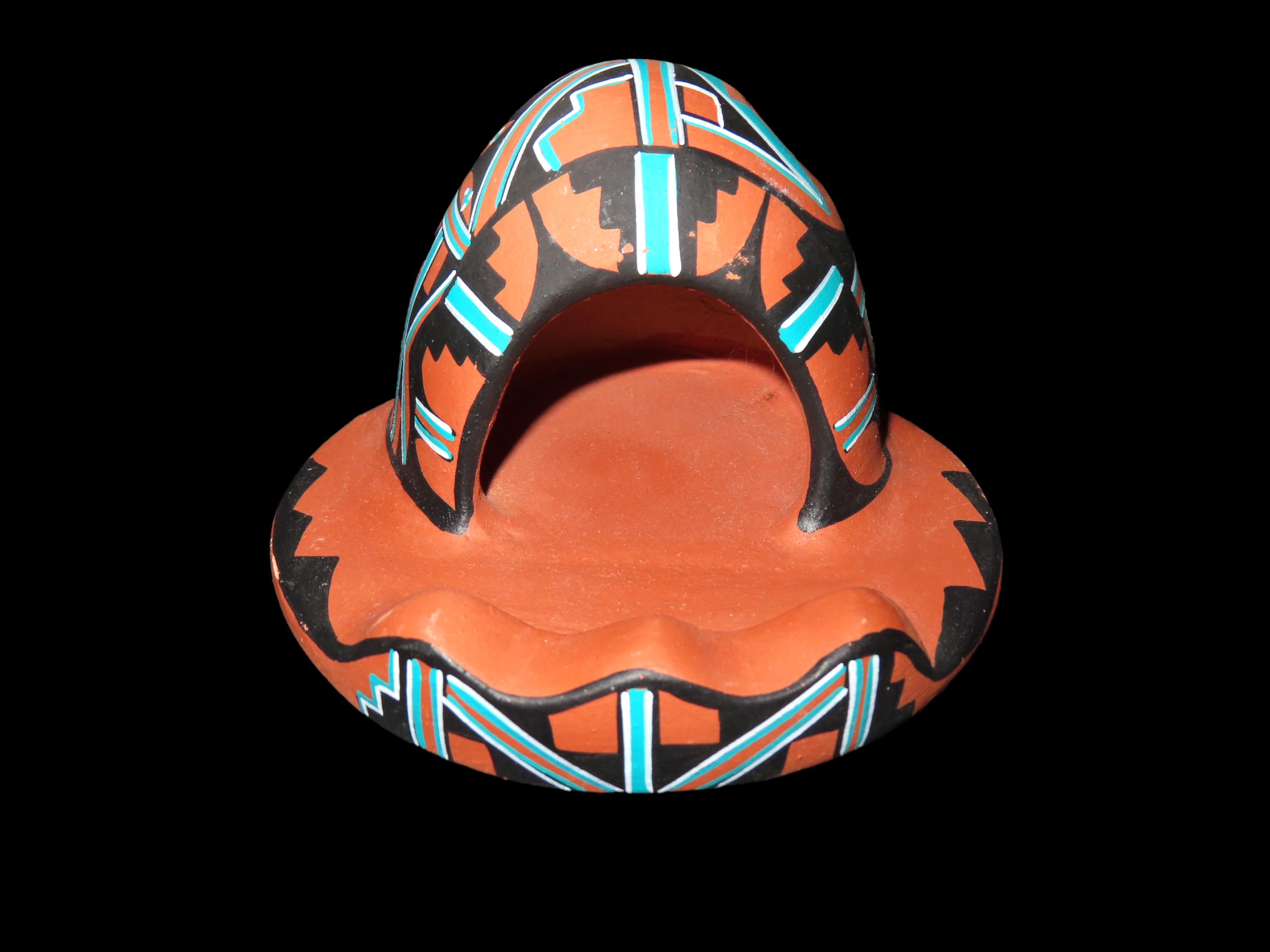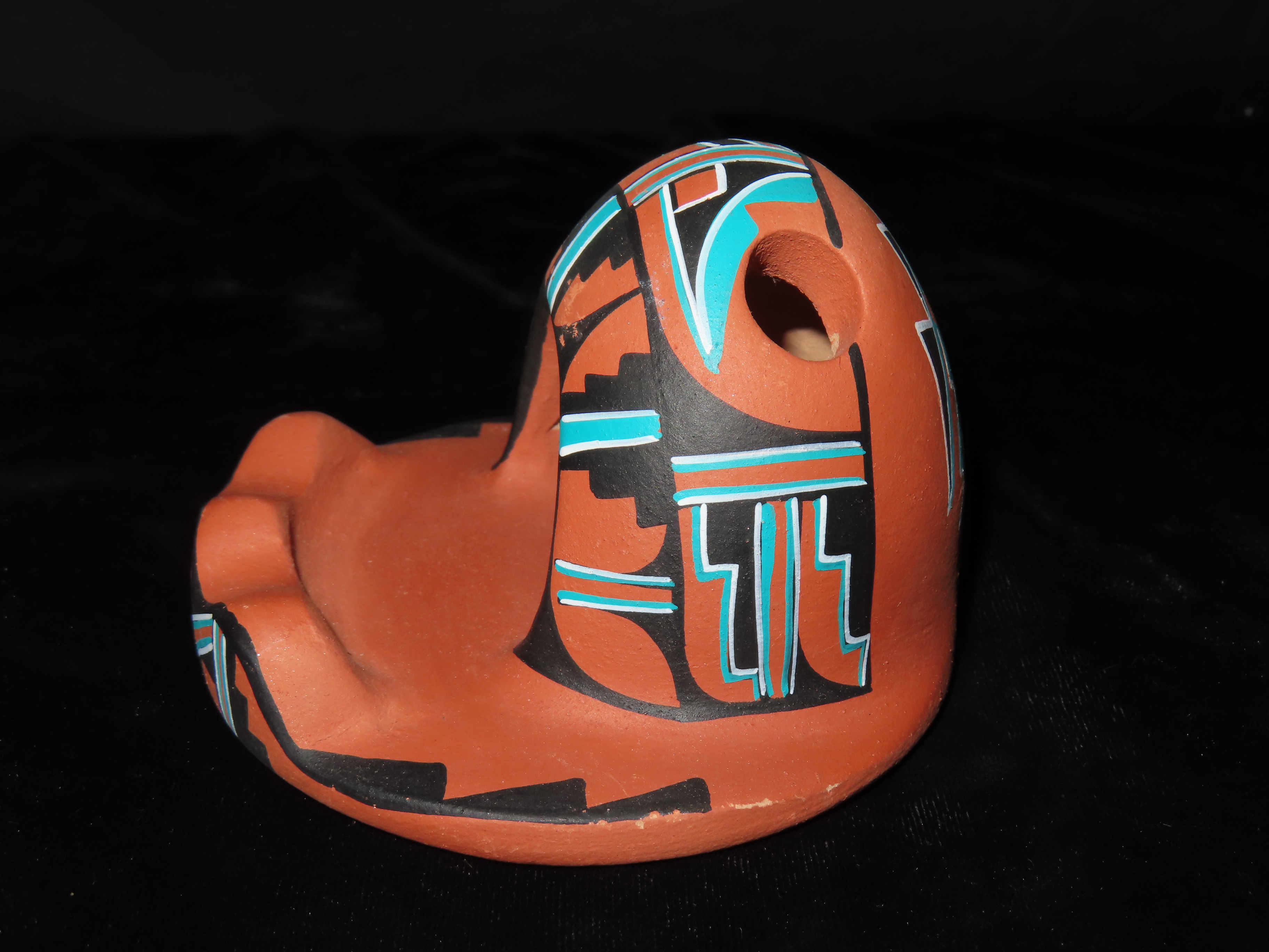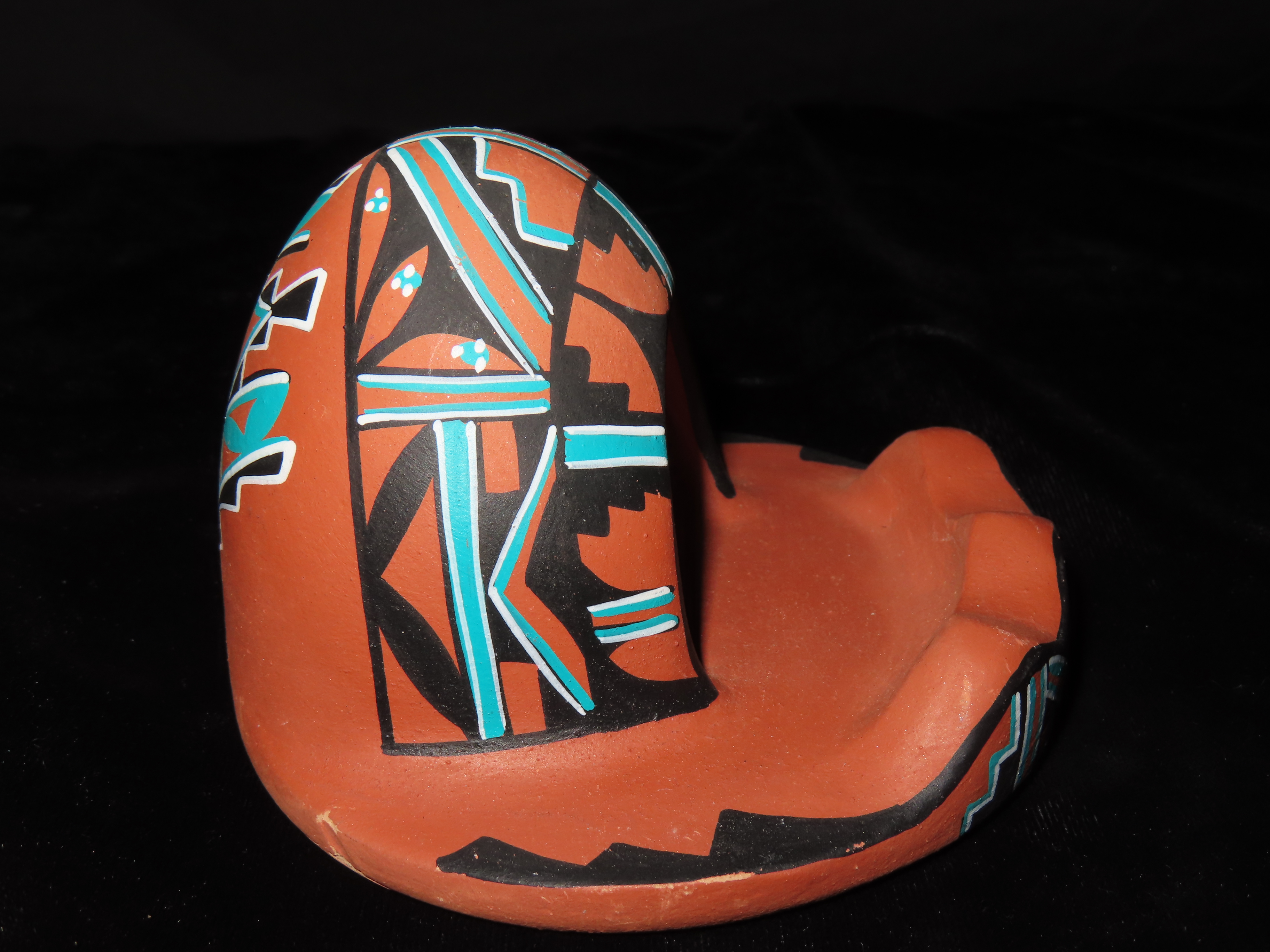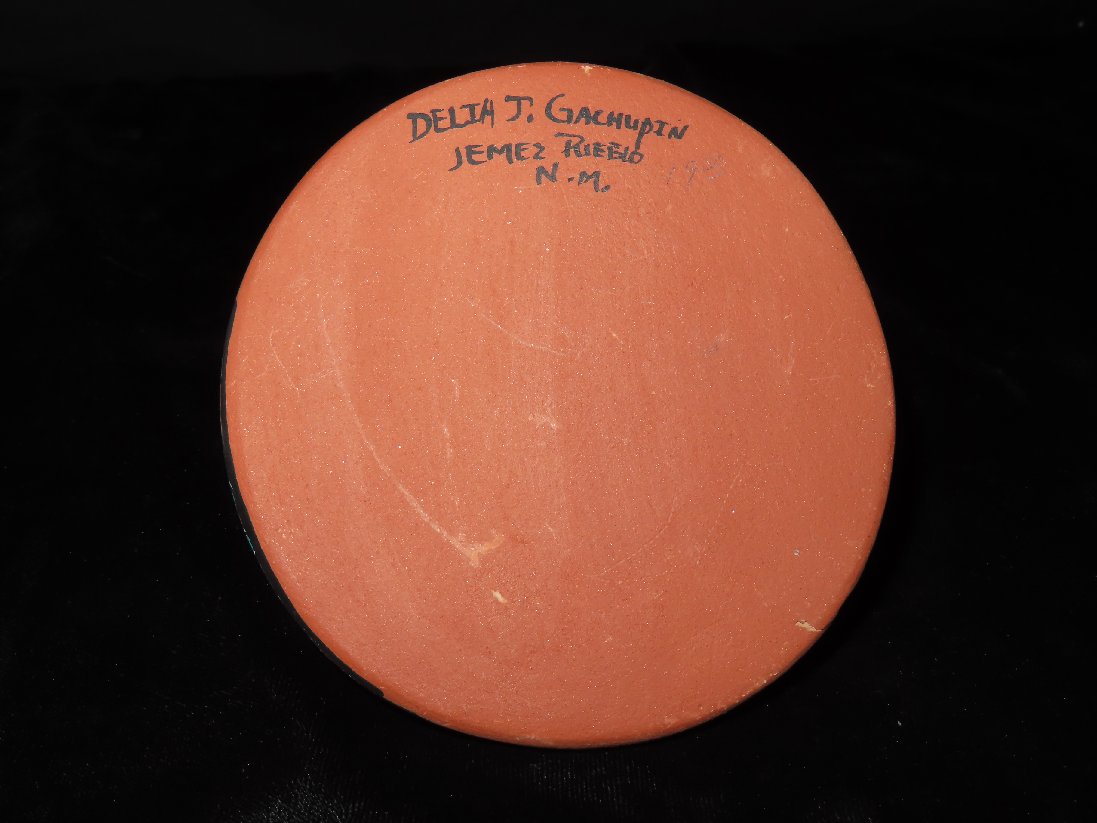 Authentic Native American Hand-crafted Pottery from the American Southwest, signed Delia J. Gachupin Jemez Pueblo NM; see photos for artist signature(if available) and approx. sizes. Key words: Native American, Indian, Signed, Navajo, Southwest, Pottery, Kokopelli, Fetish, Animal, Effigy, Anthropomorphic, Horse Hair, Terra Cotta, Hand-crafted, Fired, Glazed, Painted, Vintage, Santa Clara, Redware, Hopi, Acoma, Wedding Vase, Bowl, Vessel, Signed, Clay, Bear, Turtle, Canoe, Totem Pole, Totem, Anasazi, Cliff Dwelling, Vase, Urn, Dish, Red Clay, Black-on-black ware, Mud Hut, Incense, Lidded Box, Lidded bowl, University, Art, Project, Souvenir, Trade, Tourist, Tourism, Reservation, Hand made, New Mexico, Arizona, Red, Green, Blue, Yellow, Orange, Purple,Black