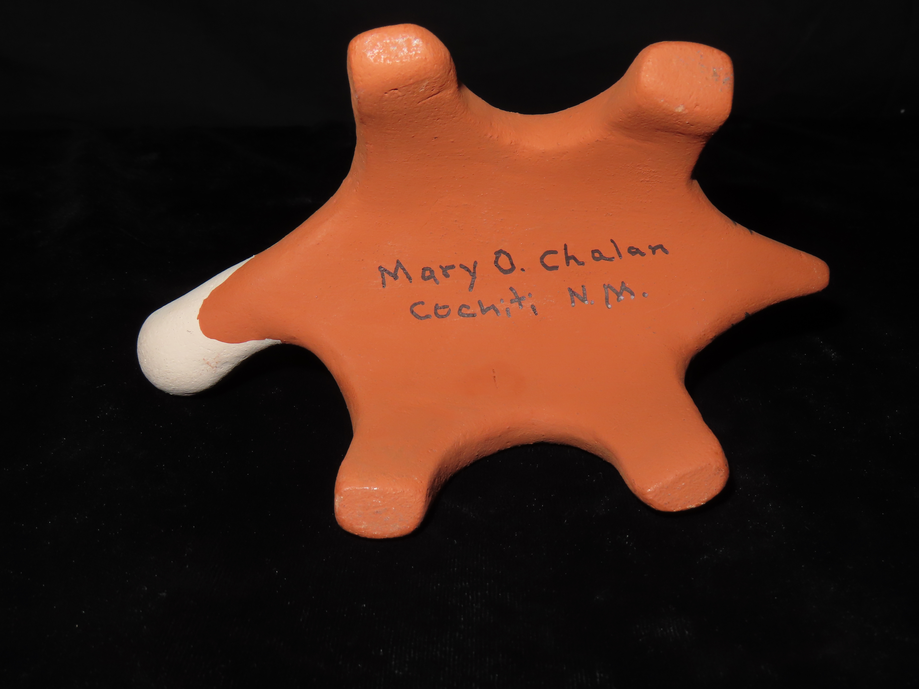 Authentic Native American Hand-crafted Pottery from the American Southwest, signed Mary O. Chalan Cochiti NM; see photos for artist signature(if available) and approx. sizes. Key words: Native American, Indian, Signed, Navajo, Southwest, Pottery, Kokopelli, Fetish, Animal, Effigy, Anthropomorphic, Horse Hair, Terra Cotta, Hand-crafted, Fired, Glazed, Painted, Vintage, Santa Clara, Redware, Hopi, Acoma, Wedding Vase, Bowl, Vessel, Signed, Clay, Bear, Turtle, Canoe, Totem Pole, Totem, Anasazi, Cliff Dwelling, Vase, Urn, Dish, Red Clay, Black-on-black ware, Mud Hut, Incense, Lidded Box, Lidded bowl, University, Art, Project, Souvenir, Trade, Tourist, Tourism, Reservation, Hand made, New Mexico, Arizona, Red, Green, Blue, Yellow, Orange, Purple,Black