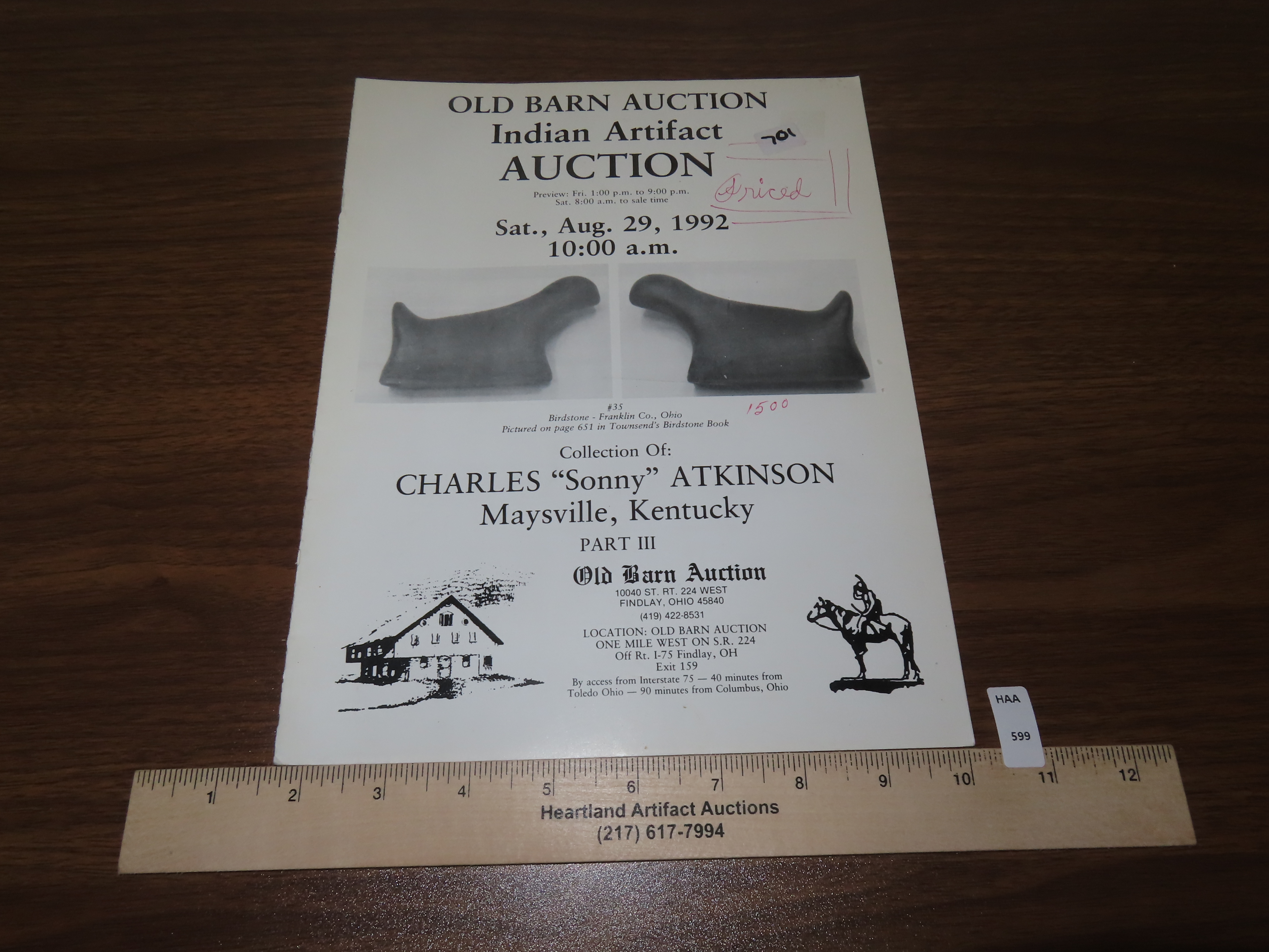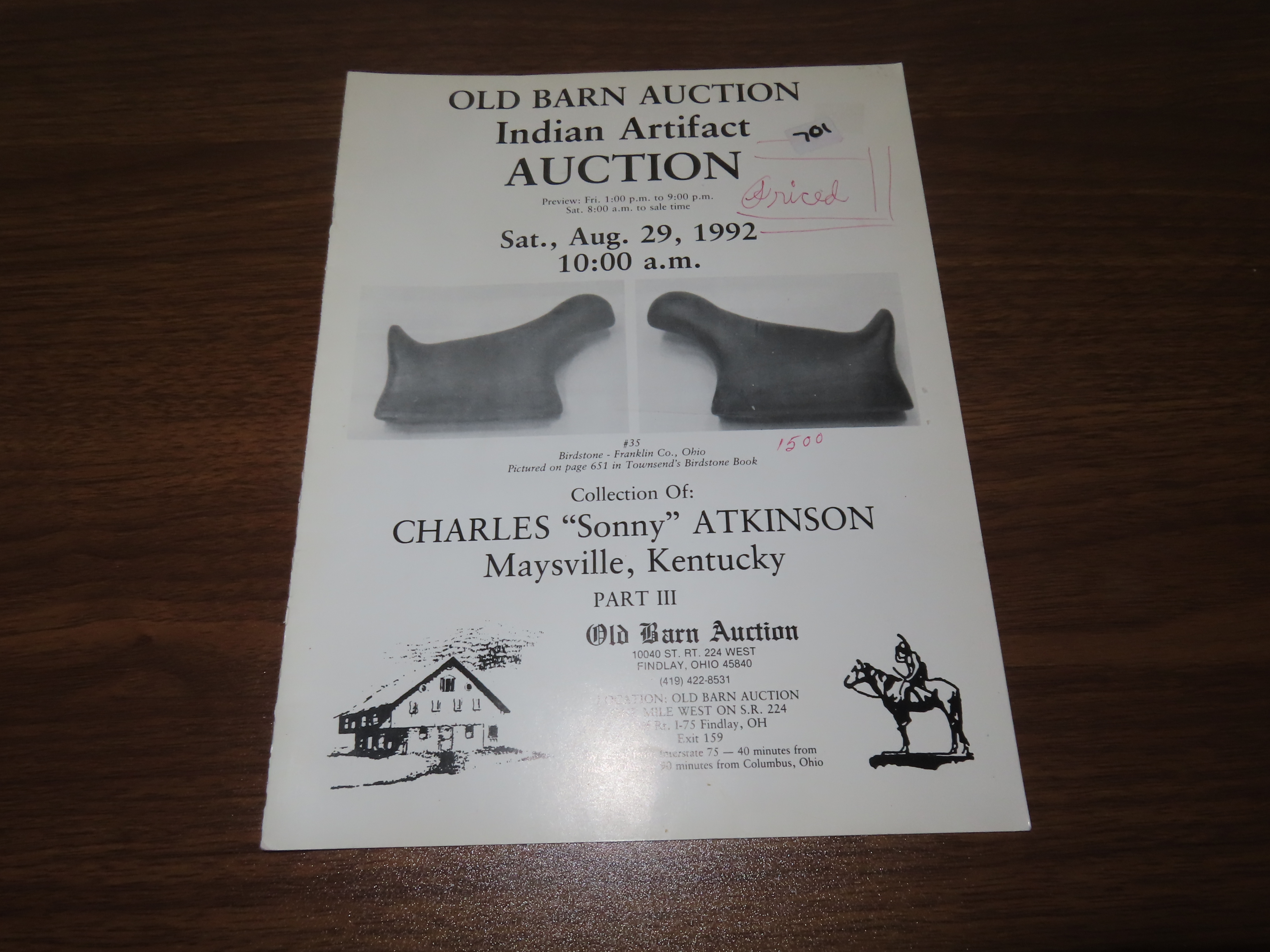 Old Barn Indian Artifact Auction Catalog 8/29/1992-Charles "Sonny" Atkinson Collection