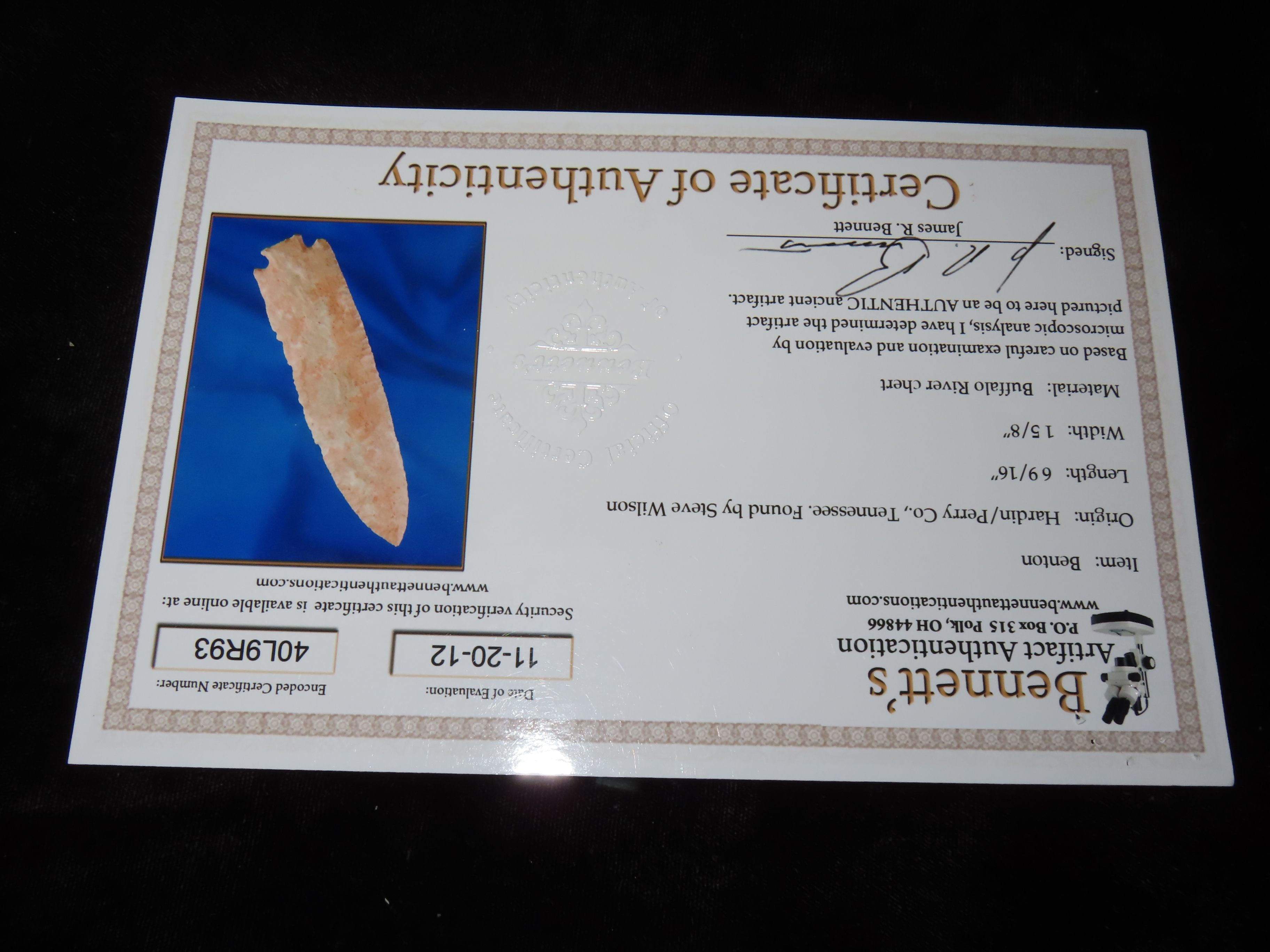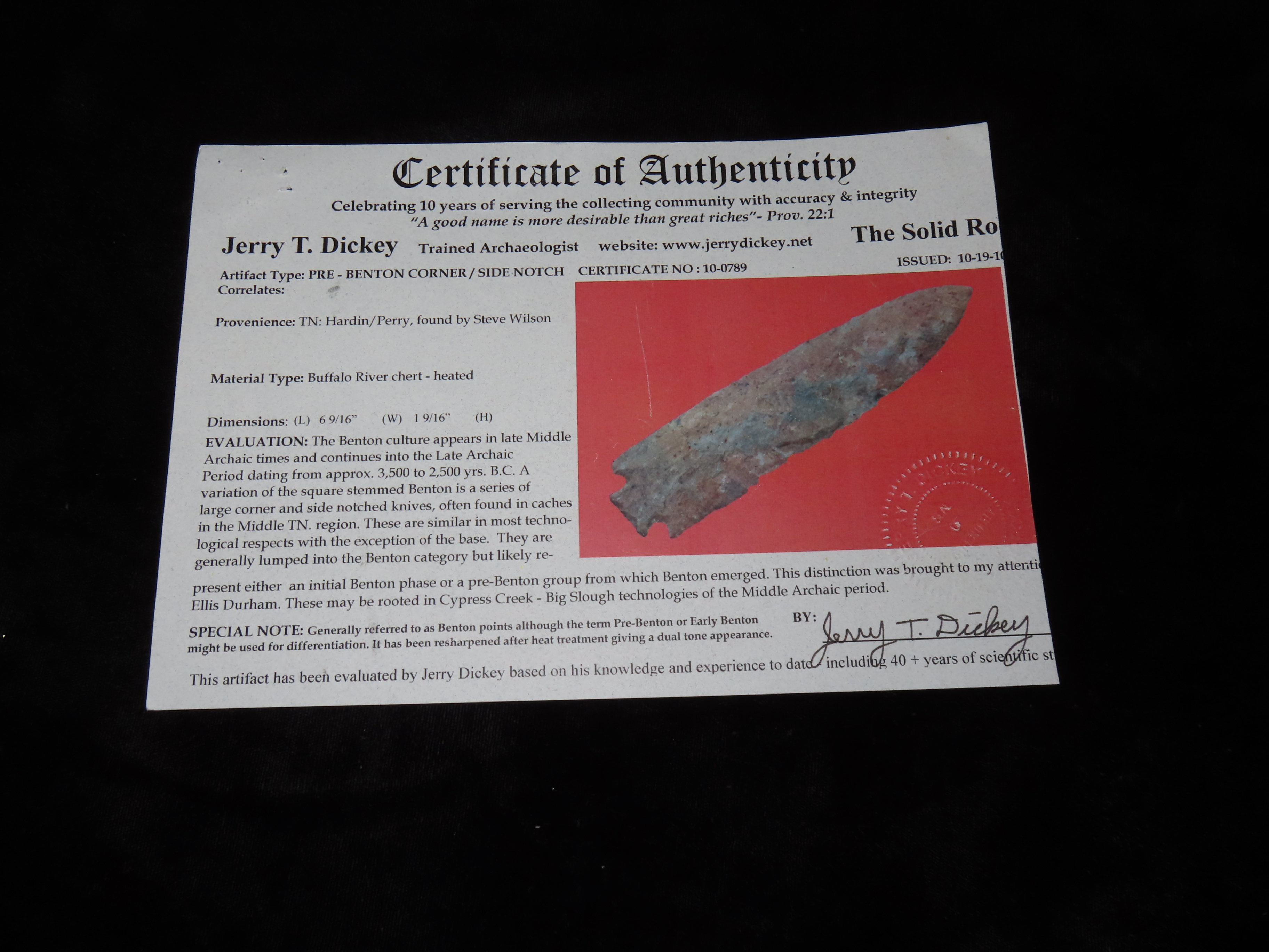 6 9/16″ Benton/Pre-Benton, 2xCOA-Dickey/Bennett, found in Hardin or Perry Co., Tennessee by Steve Wilson, Ex Duane Schneider Collection