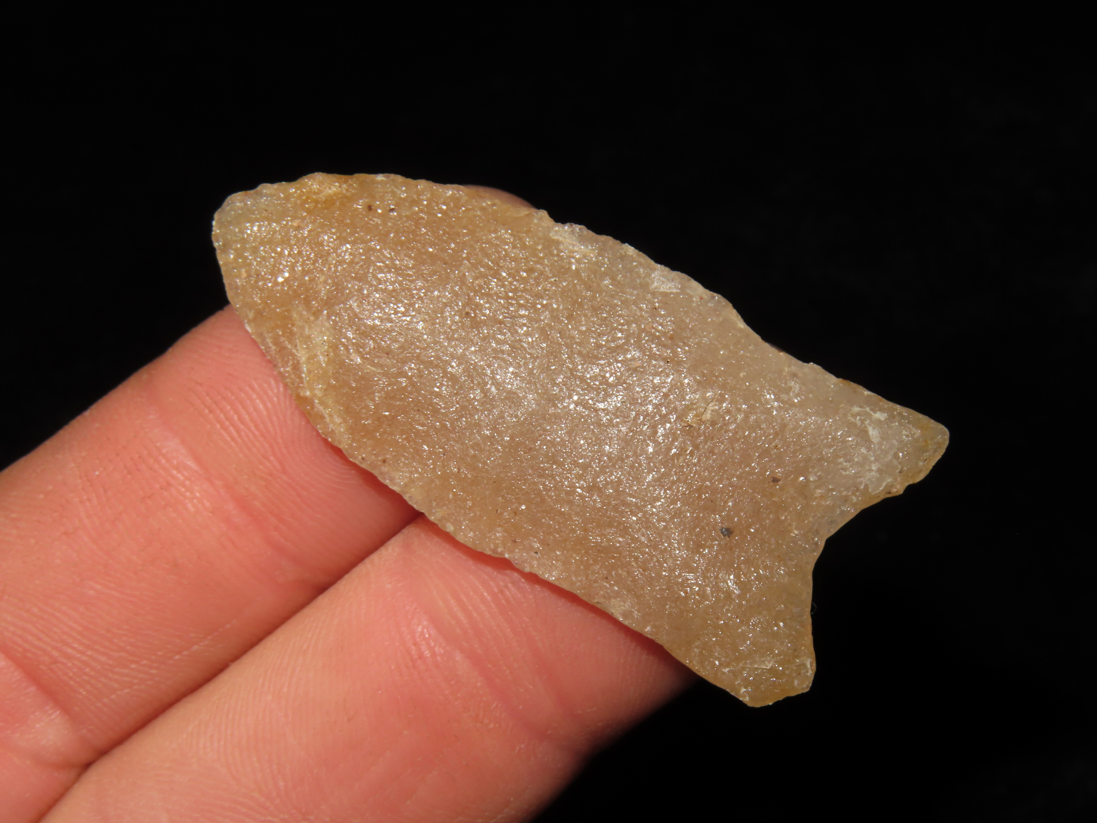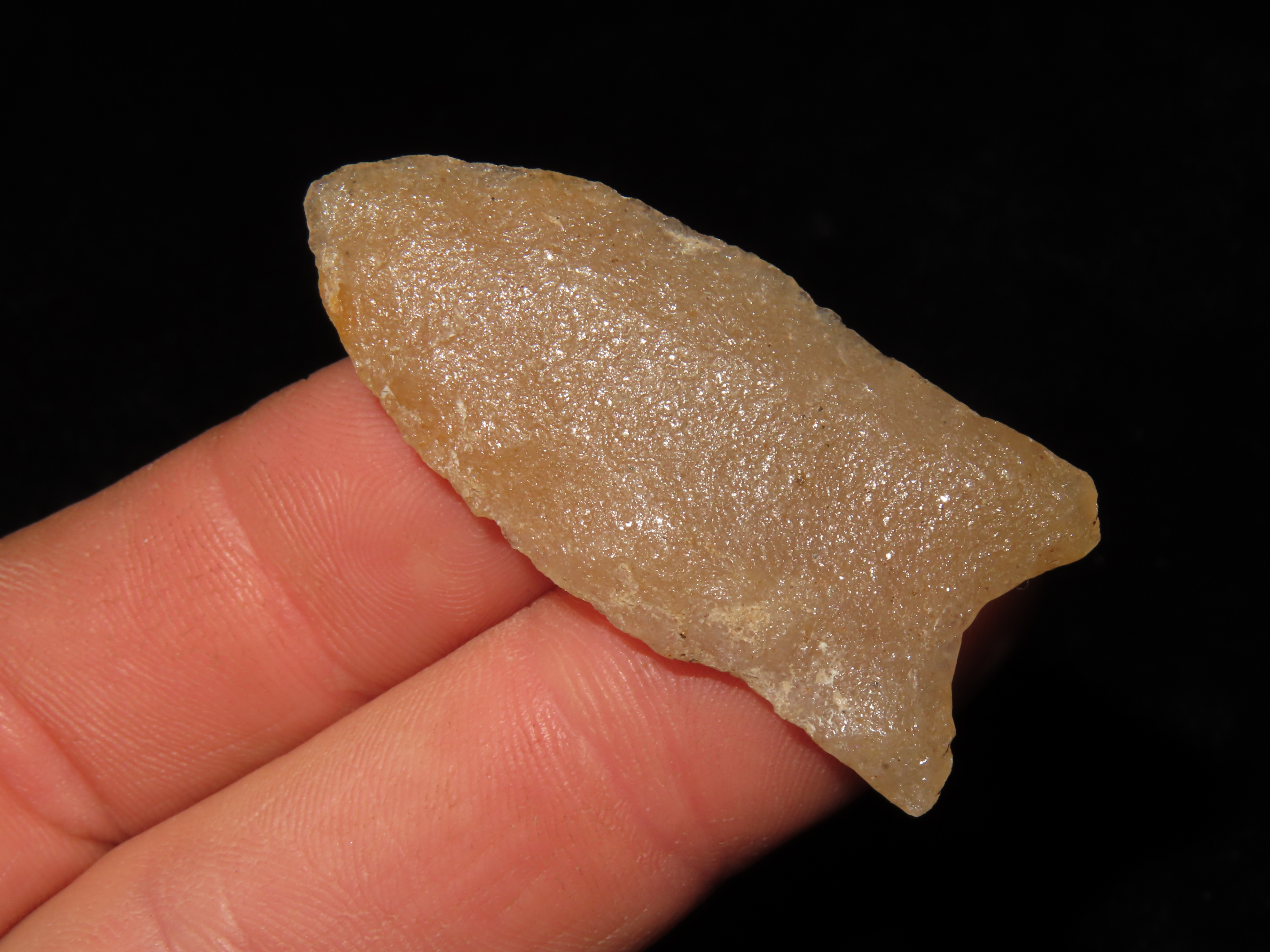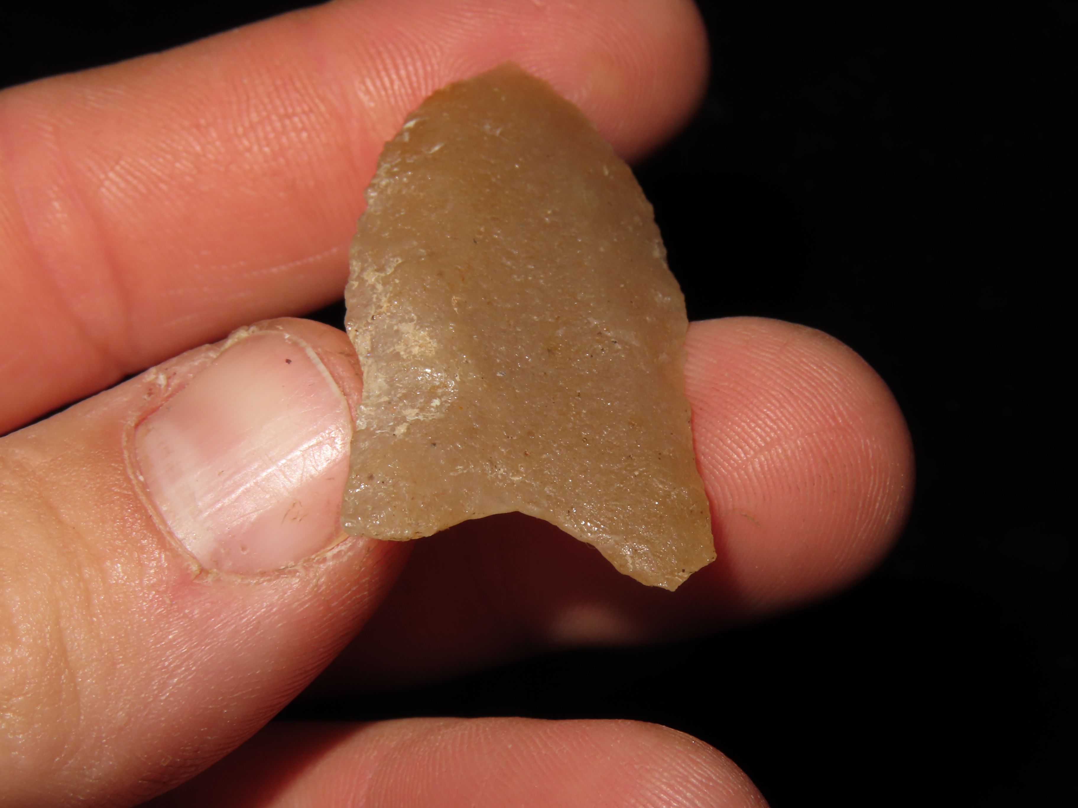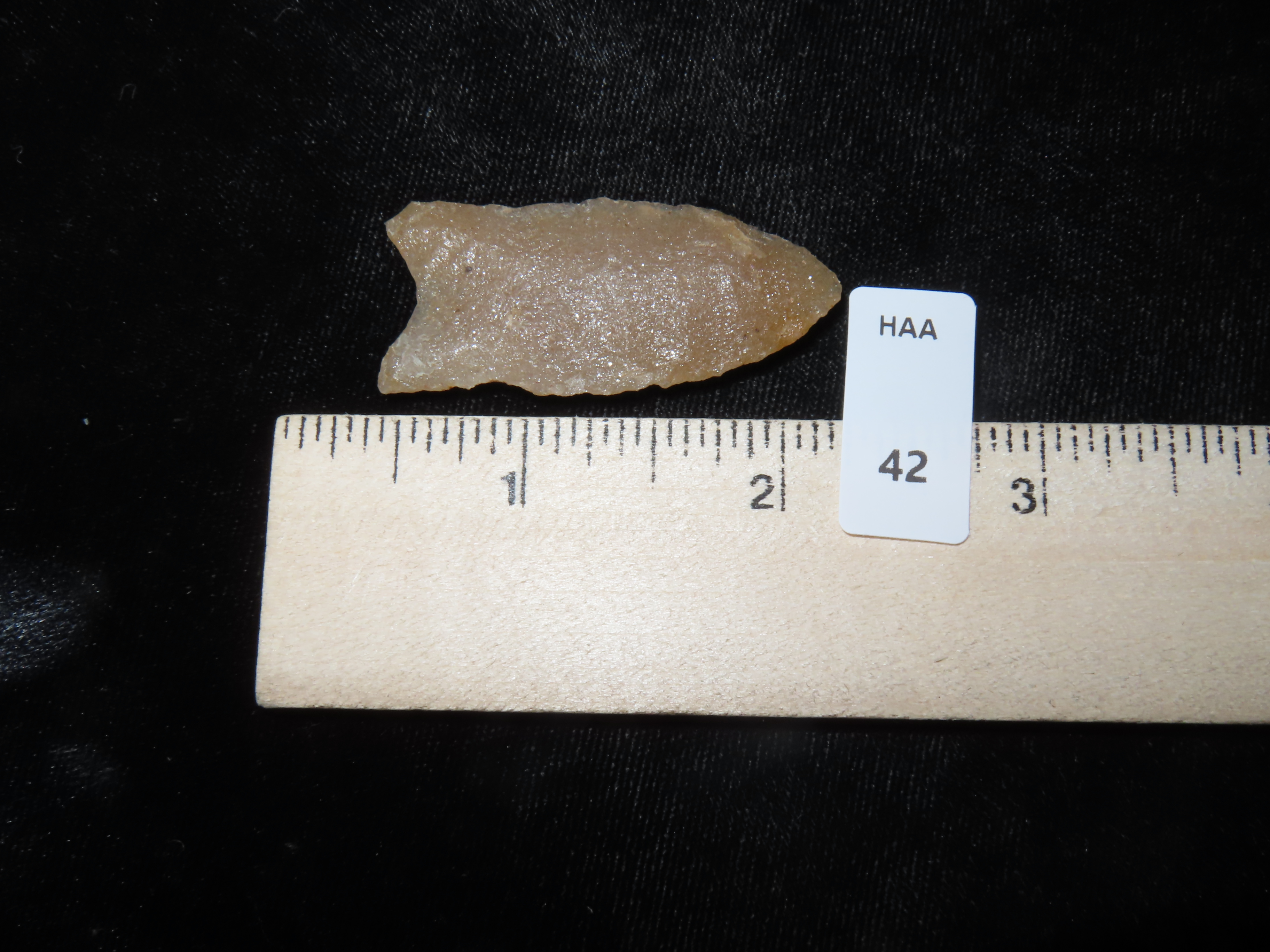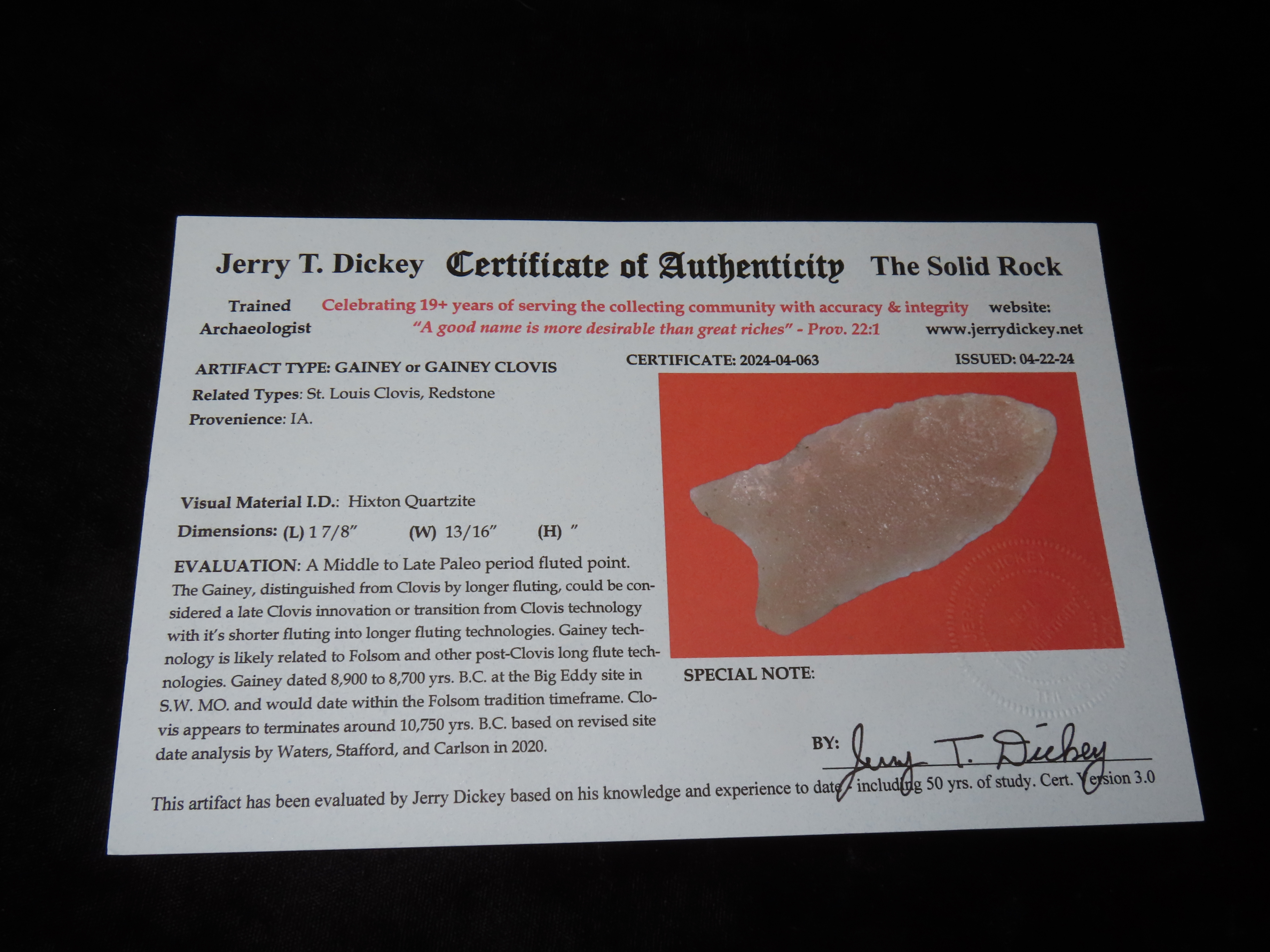 1 7/8″ Gainey Clovis, Dickey COA, found in Iowa-made of Hixton Quartz