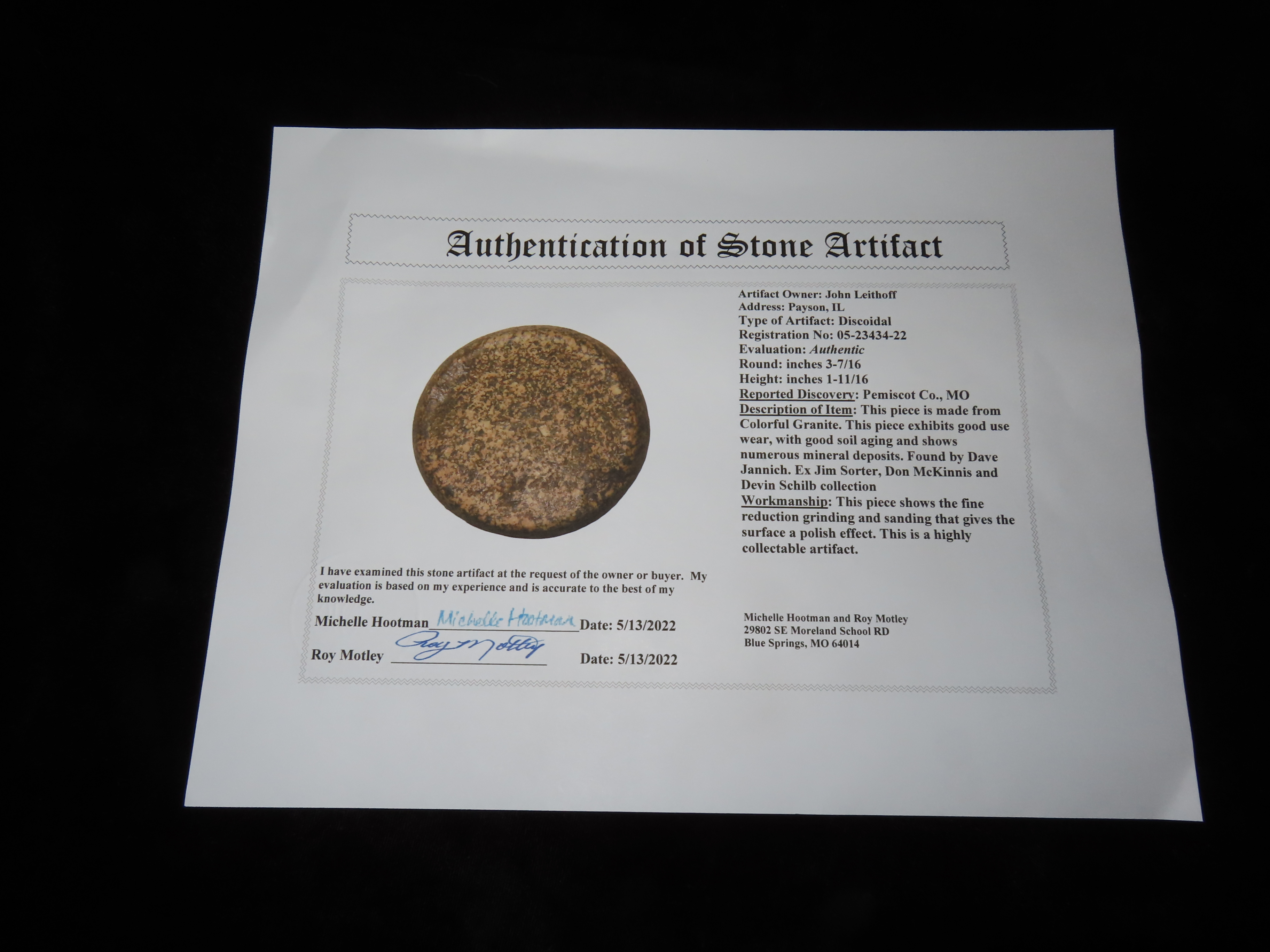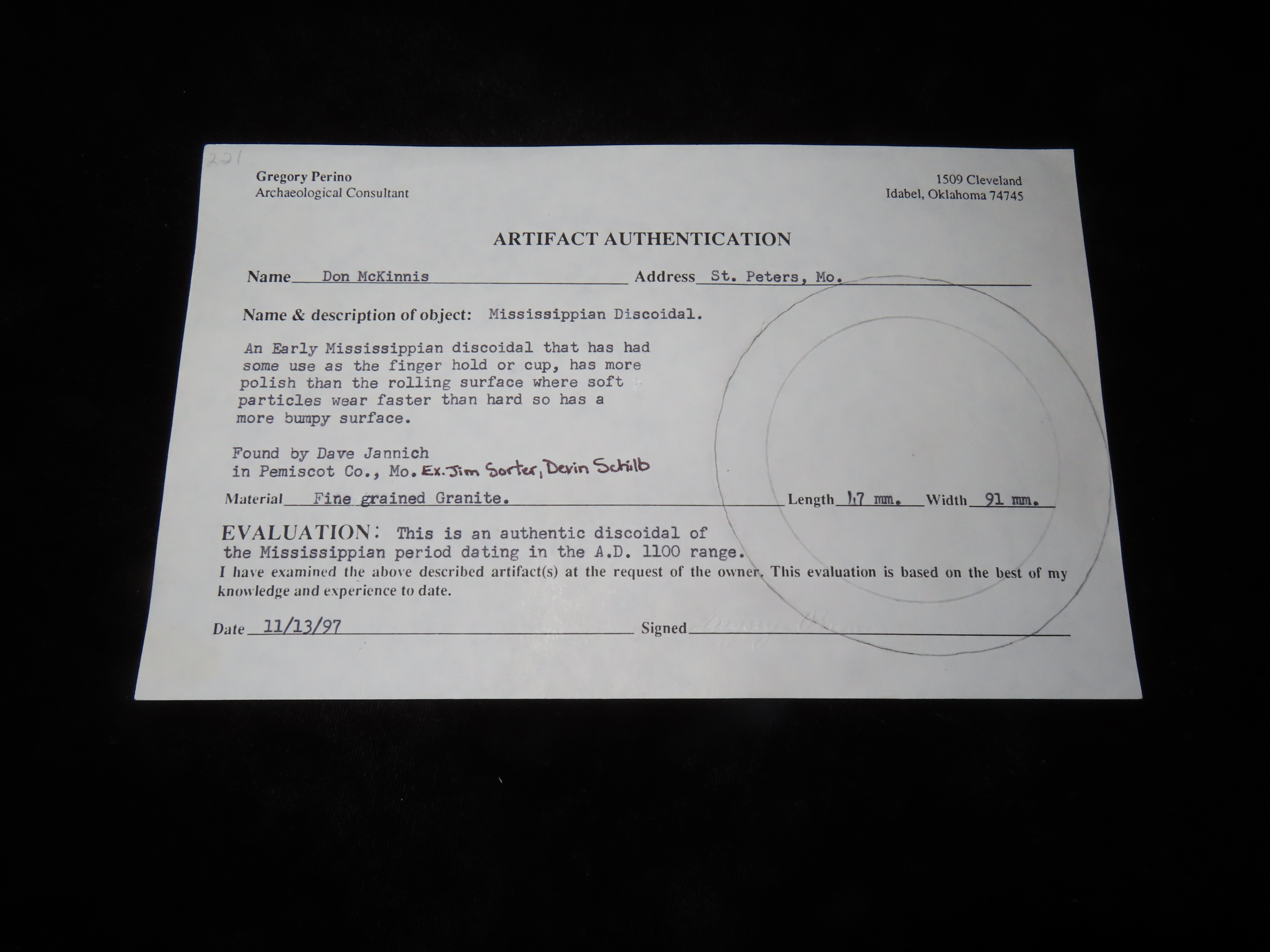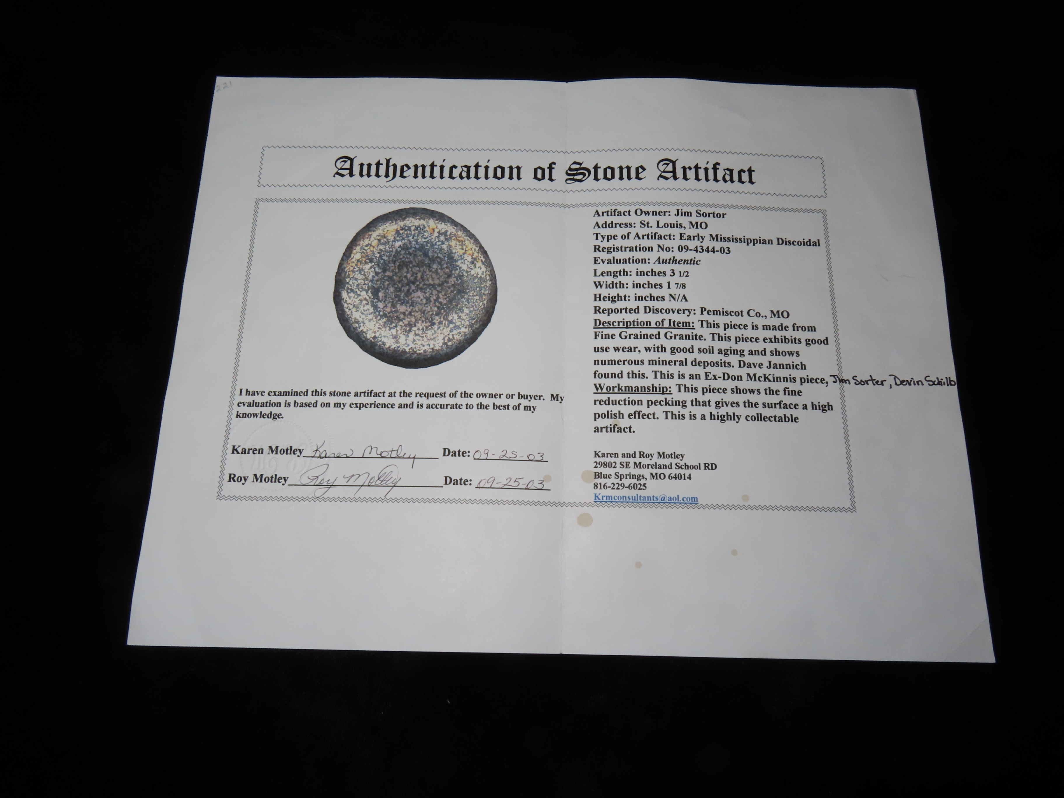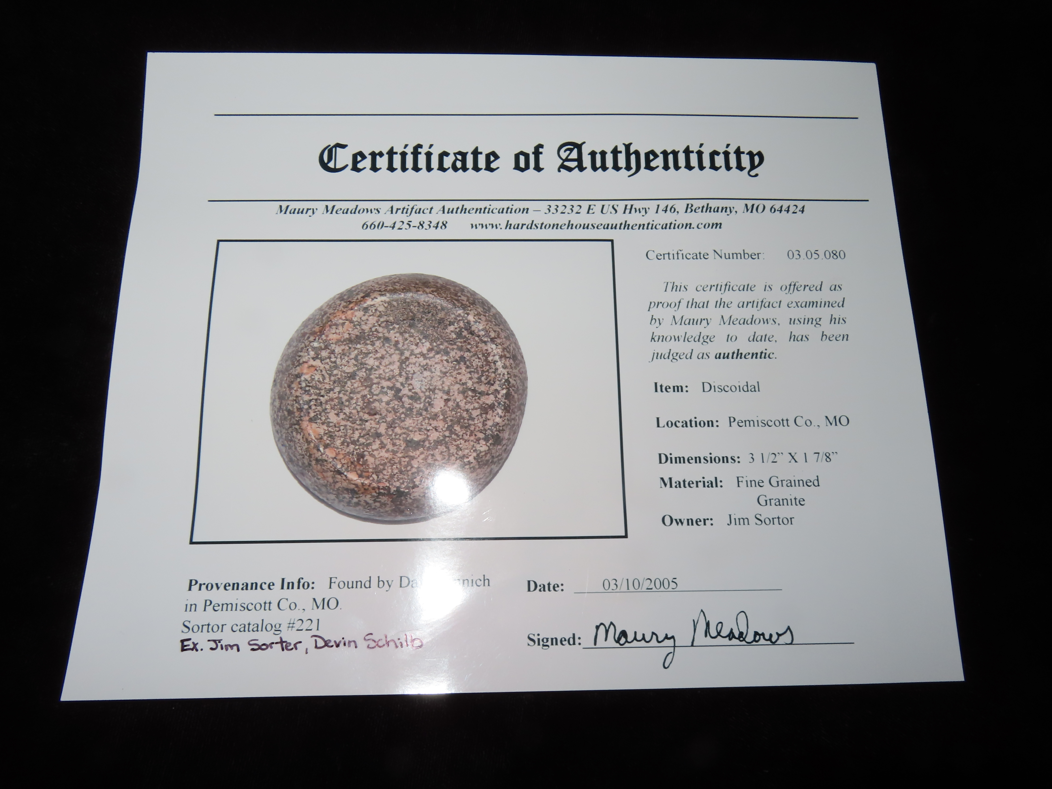 3 1/2″ x 1 7/8″ OUTSTANDING 4XCOA DISCOIDAL!-Meadows/Perino/2xMOtley- found by Dave Jamich in Pemiscot Co., Missouri, Ex Jim Sorter, Devin Schlib, Don McKinnis, and John Leithoff Collections