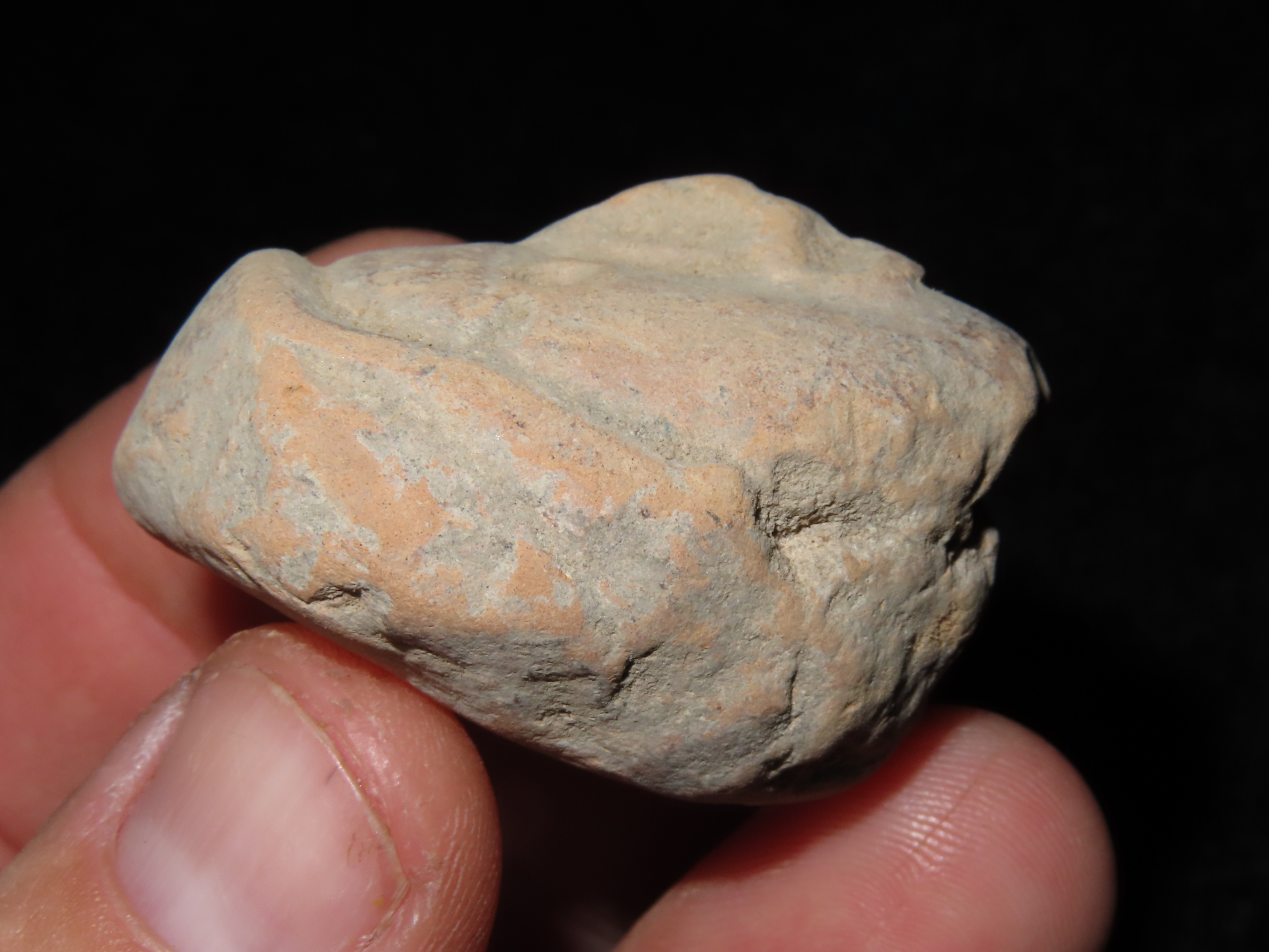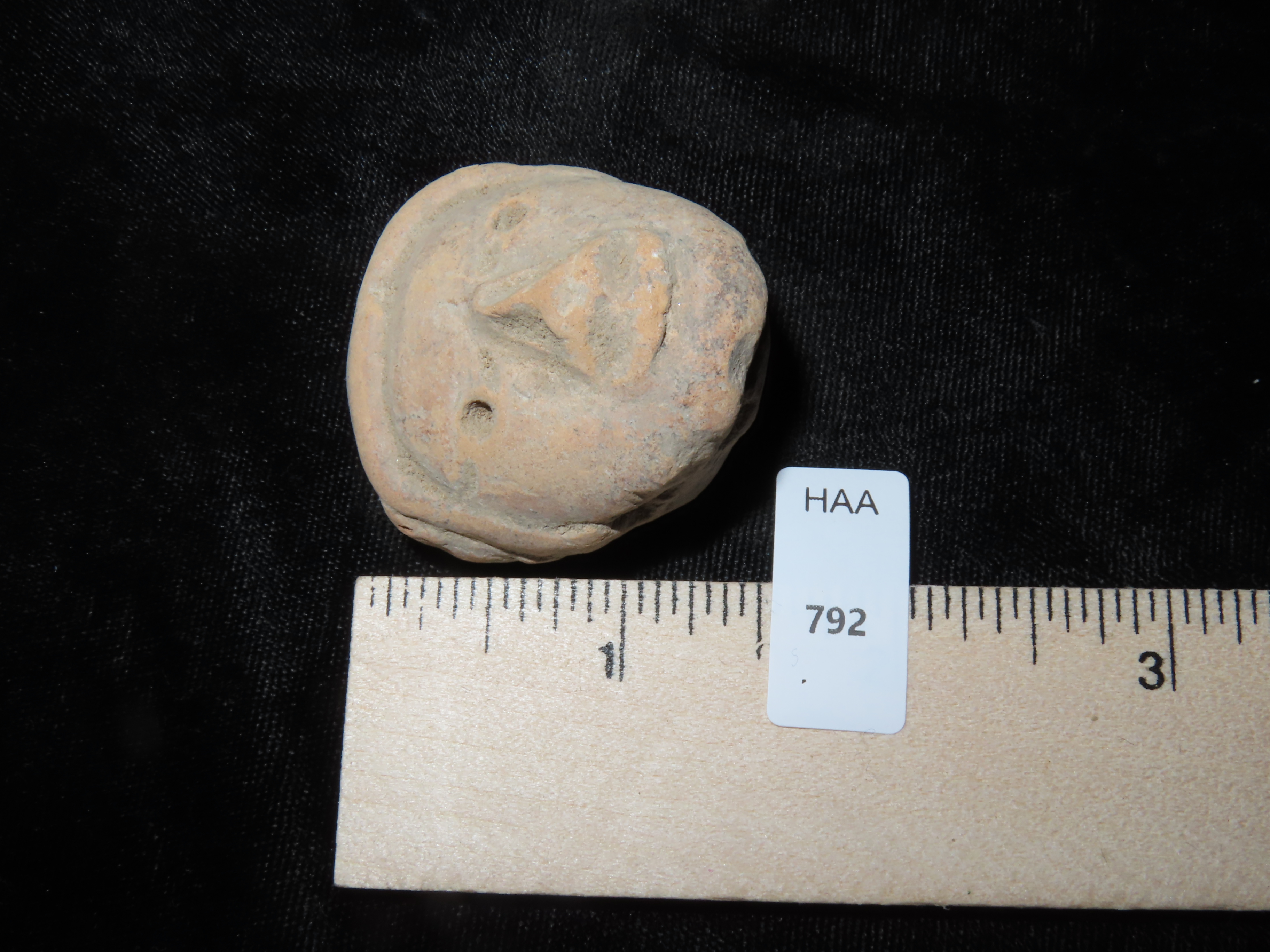 1 5/8″ Pre-Columbian Pottery Effigy Head Ornament, found in South America, Ex Johnathan Johns Collection