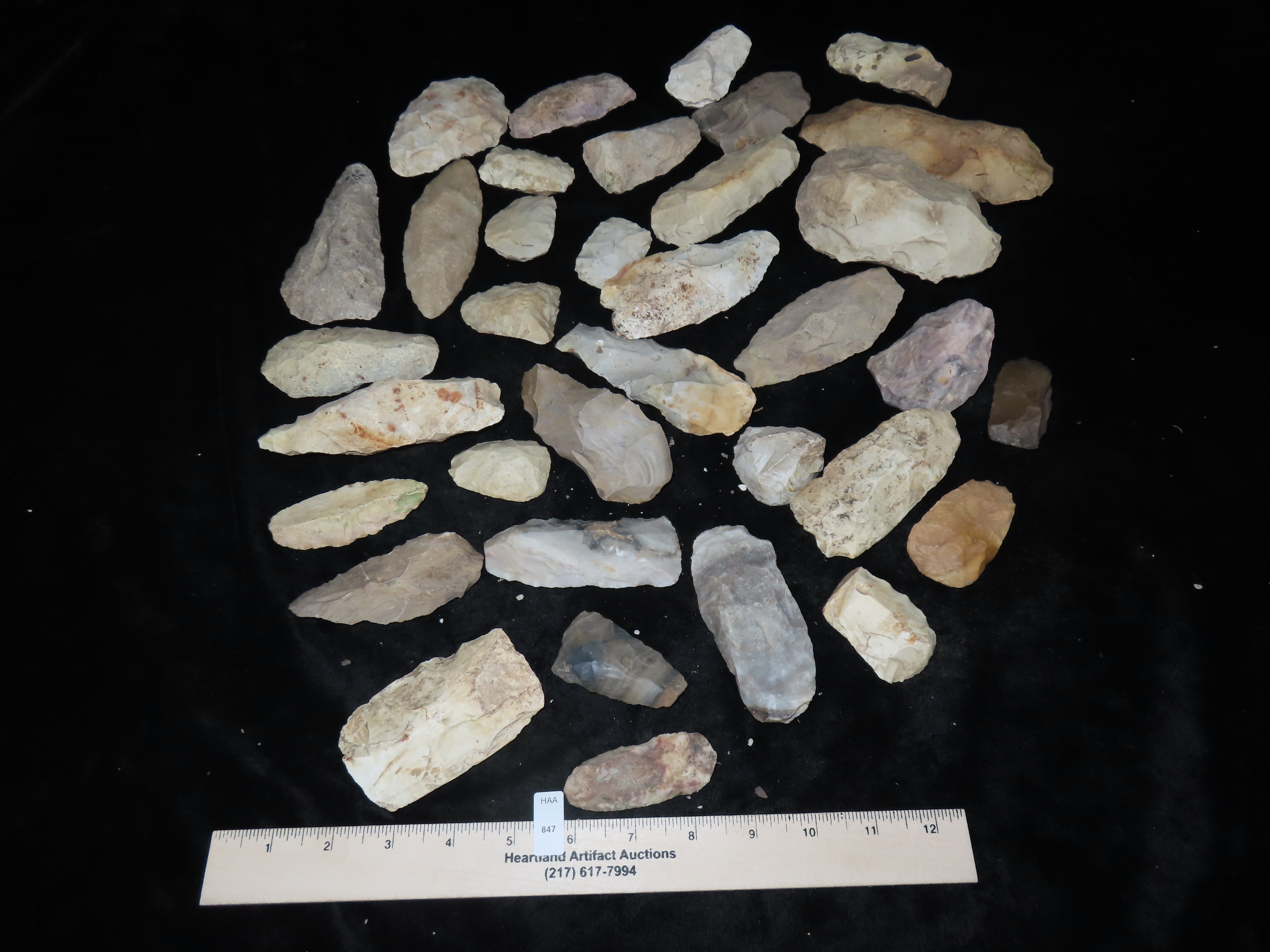 Lot of Adzes, Blades, and Flint Tools, All found in Illinois, Ex Johnathan Johns Collection