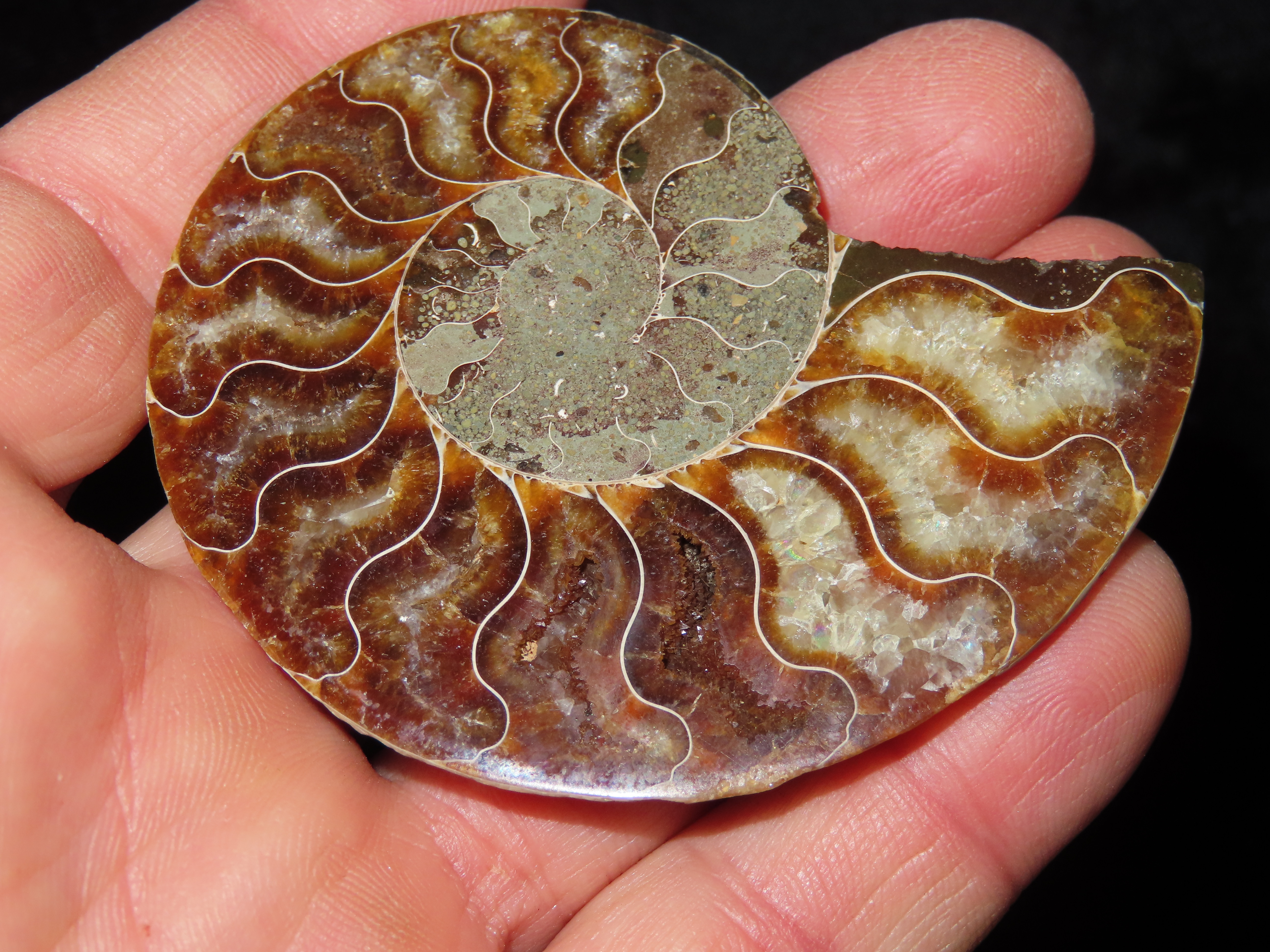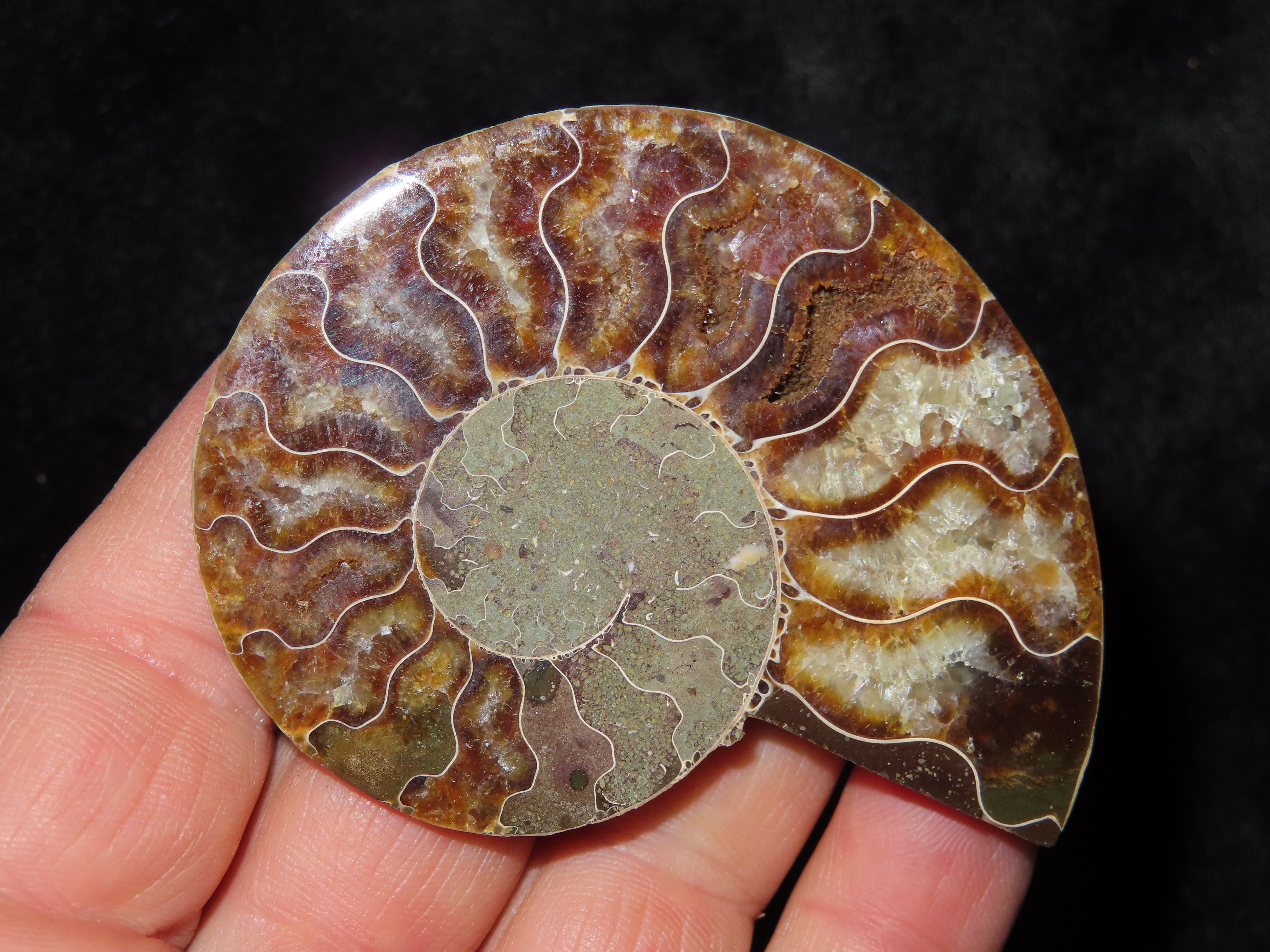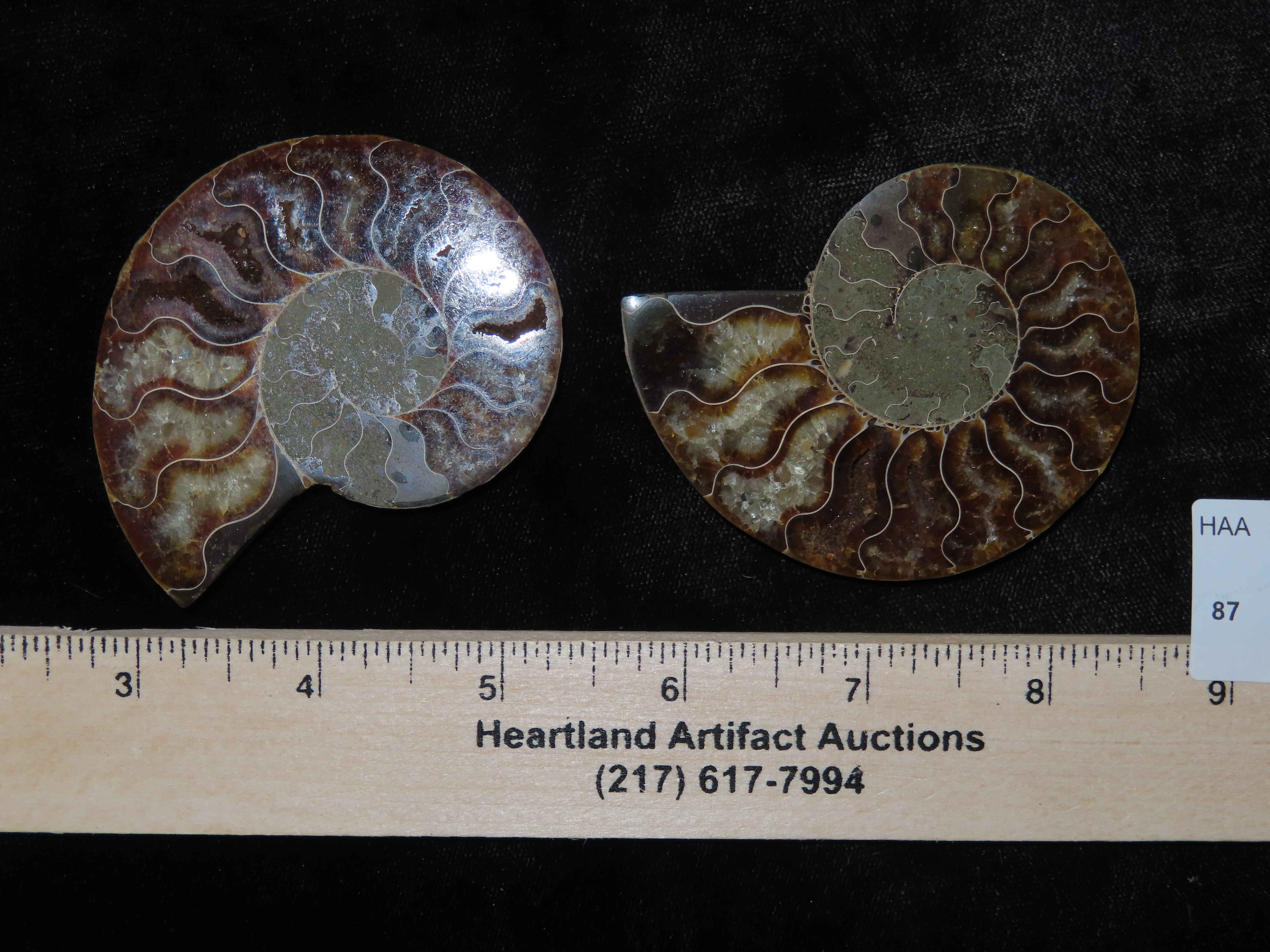 Fossil Ammonite split into two halves. Amazing Color.