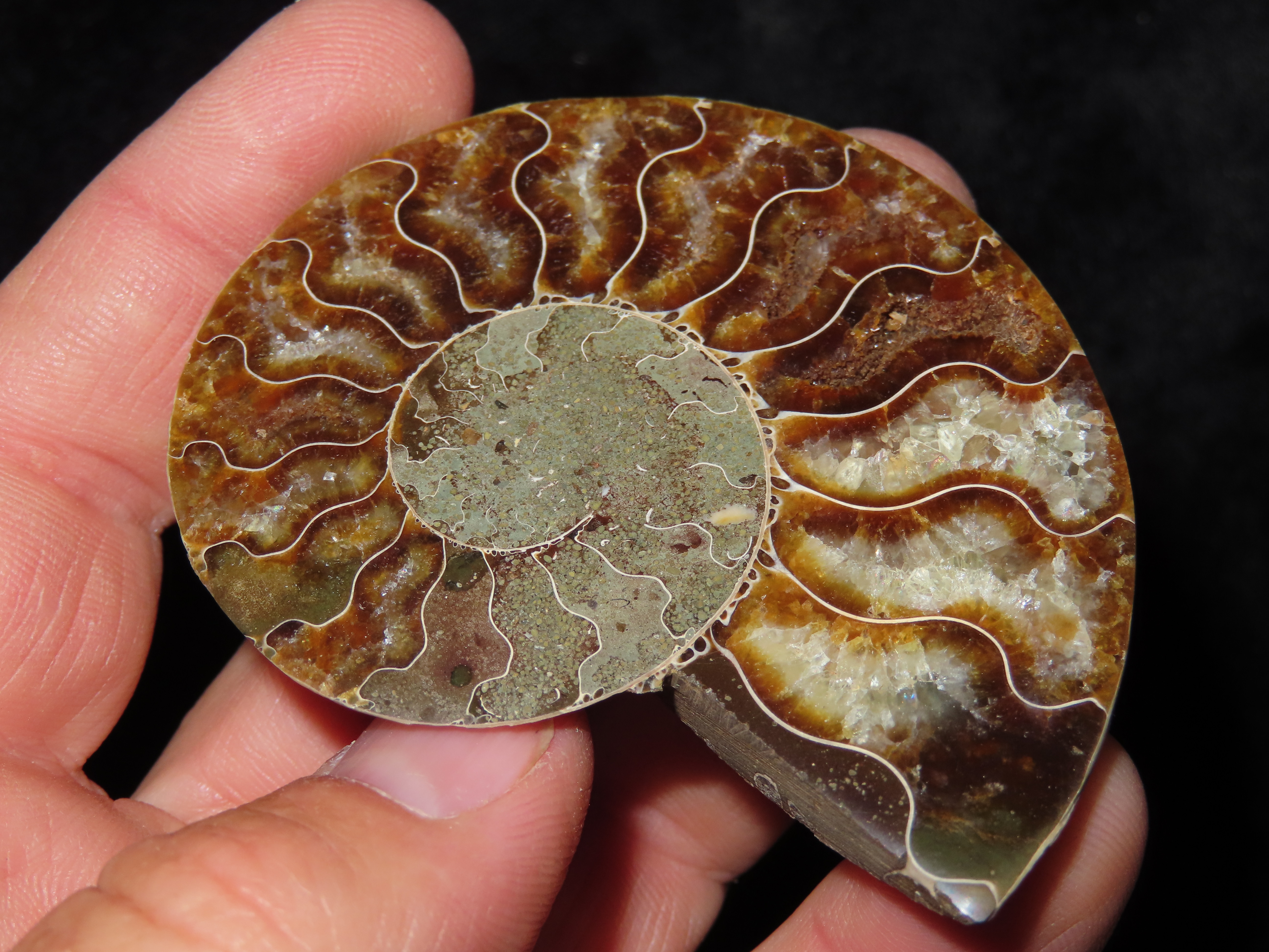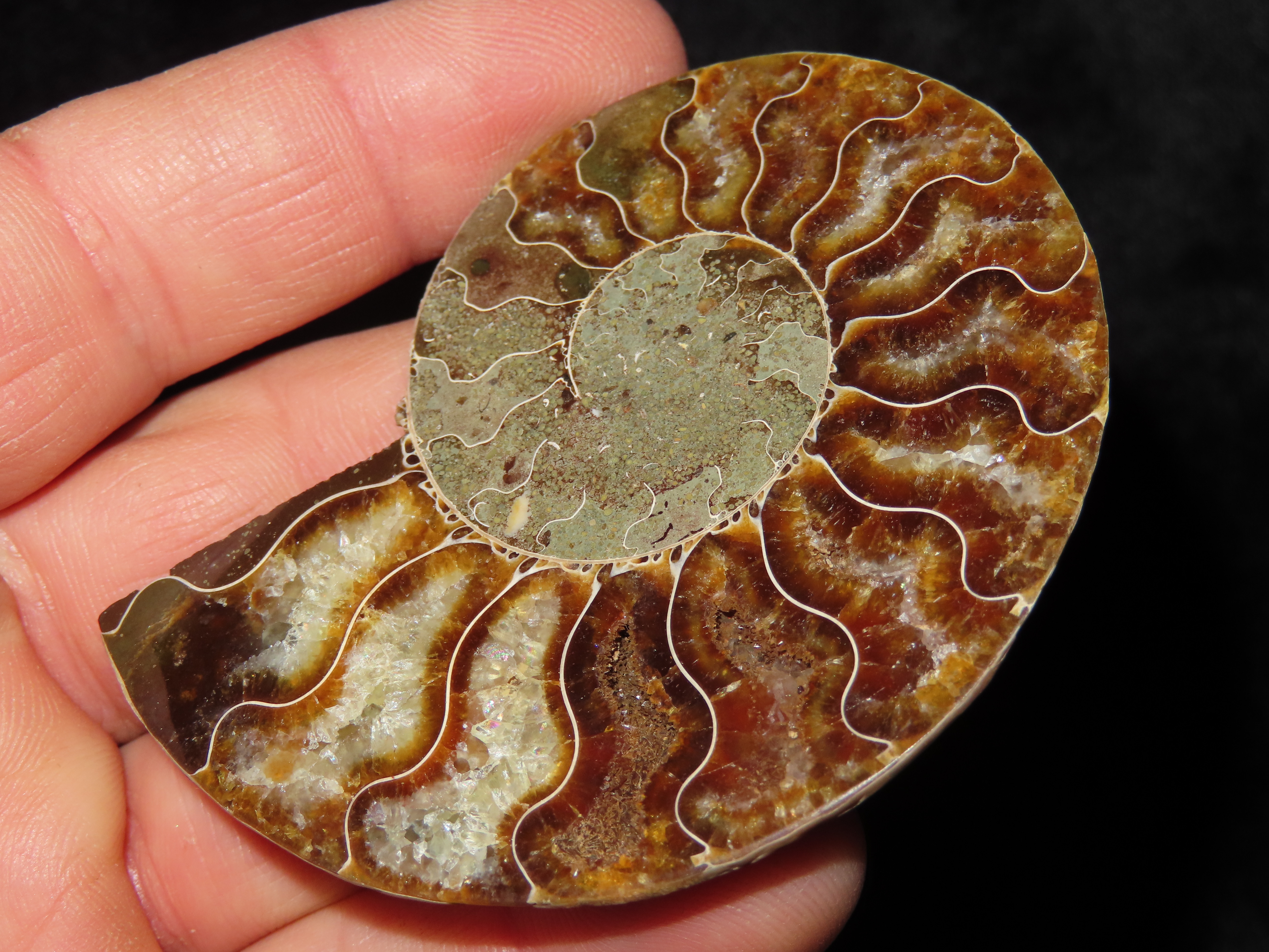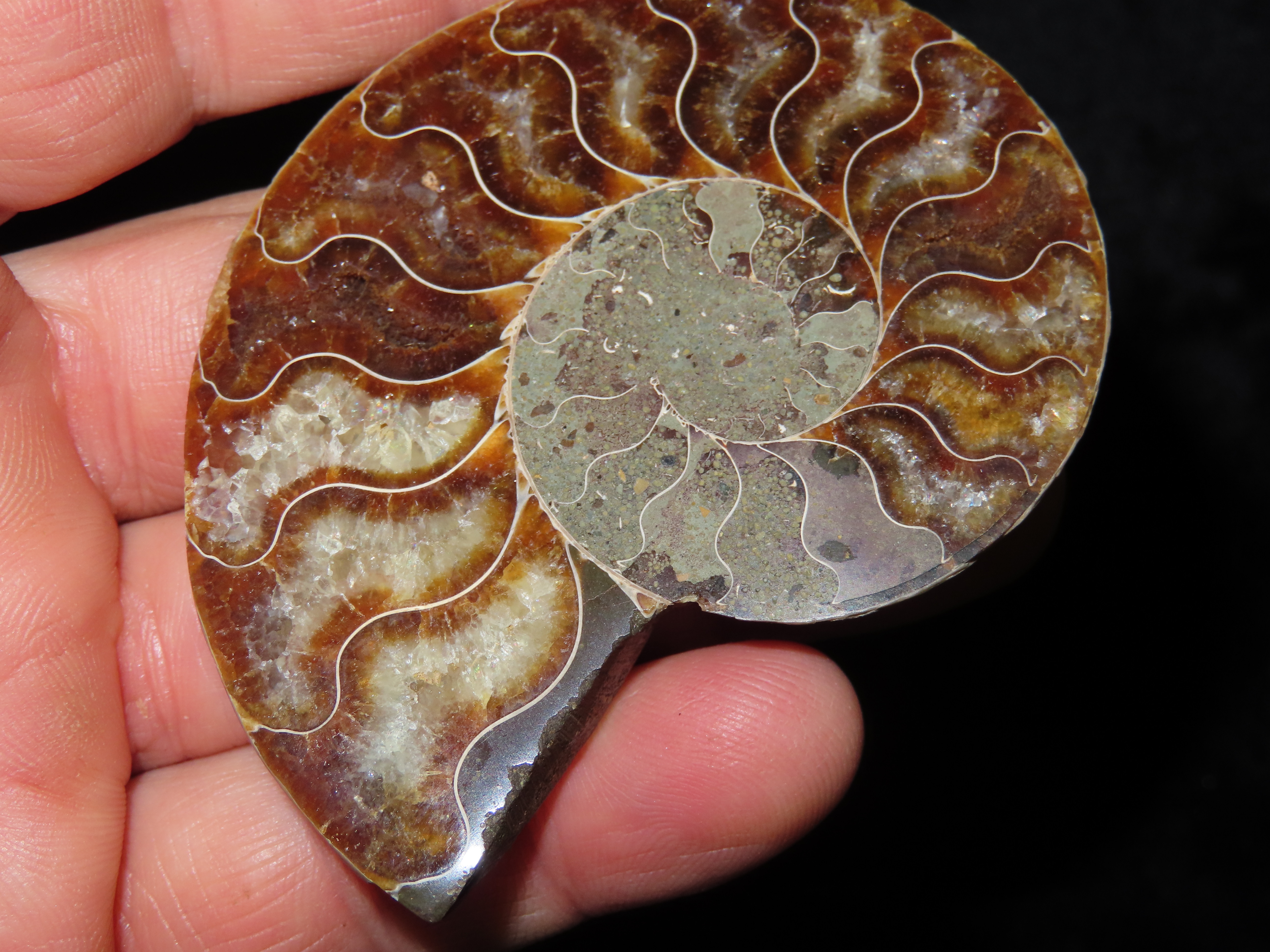 Fossil Ammonite split into two halves. Amazing Color.