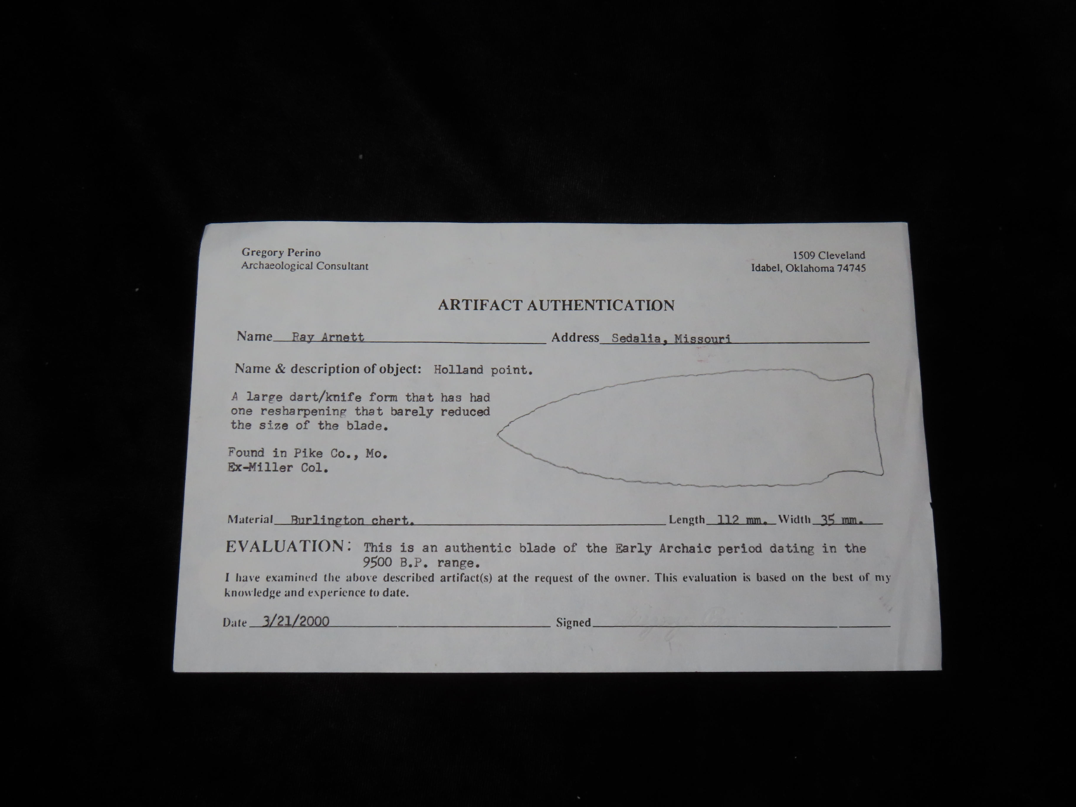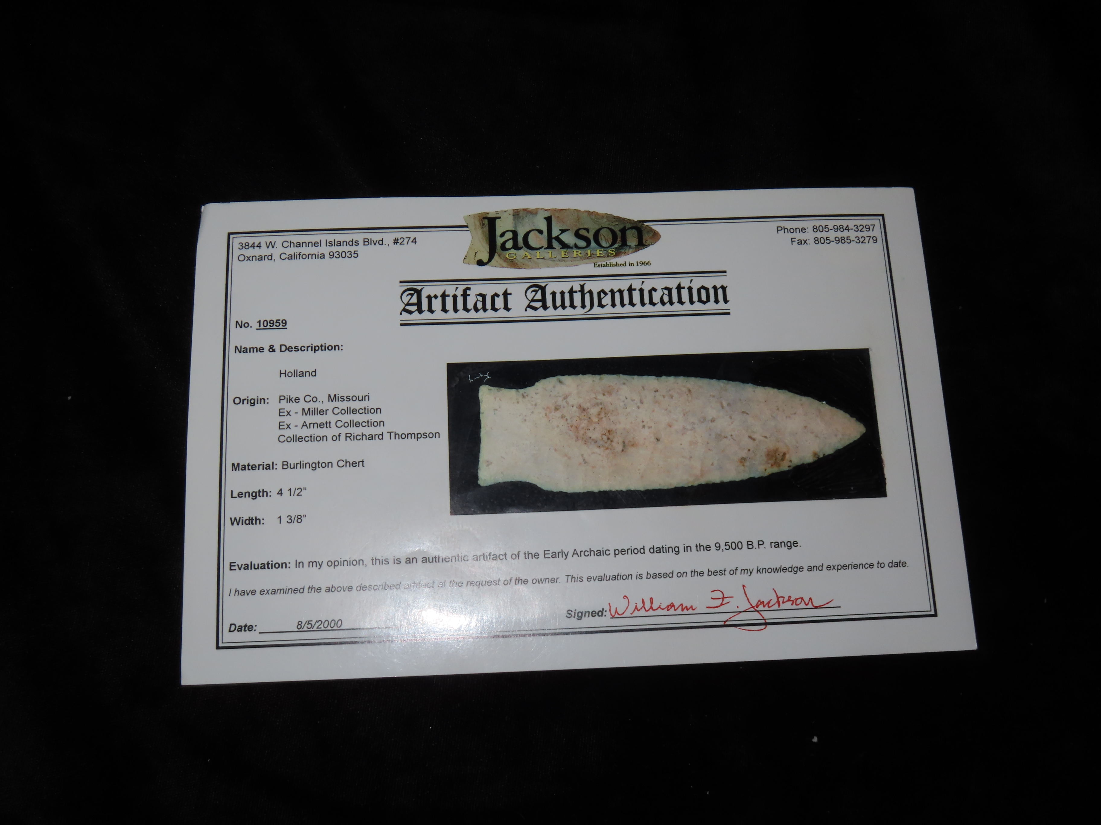 4 1/2″ Holland, 2xCOA-Perino/Jackson, found in Pike Co., Missouri, Ex Miller, Ex Arnett, Ex Richard Thompson, Ex Duane Schneider Collection