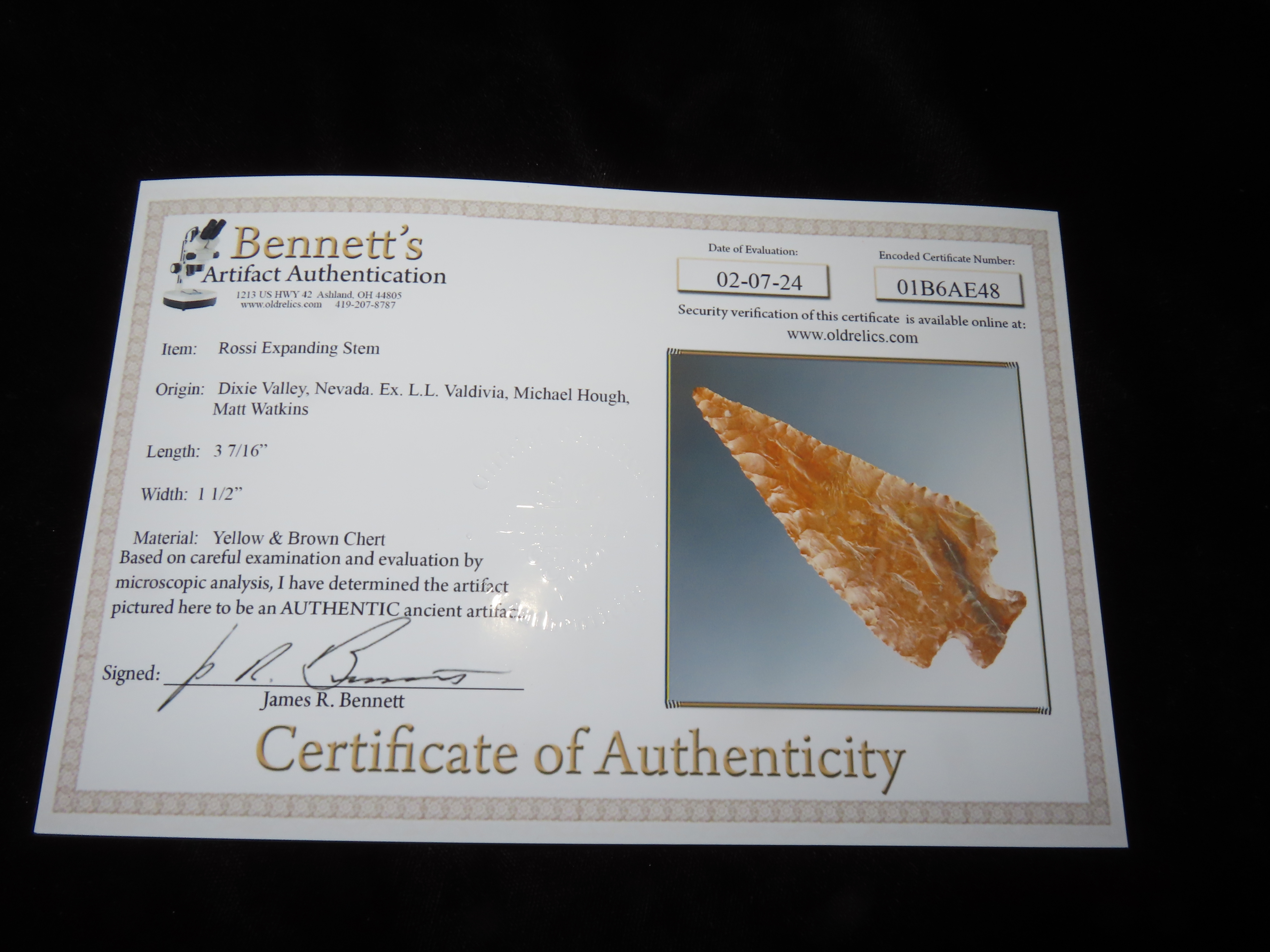 3 7/16″ Rossi Expanding Stem, 2xCOA-Stermer/Bennett, found in Dixie Valley, Nevada, Ex L.L.Valdivia, Ex Michael Hough, Ex Matt Watkins, Ex Duane Schneider Collection