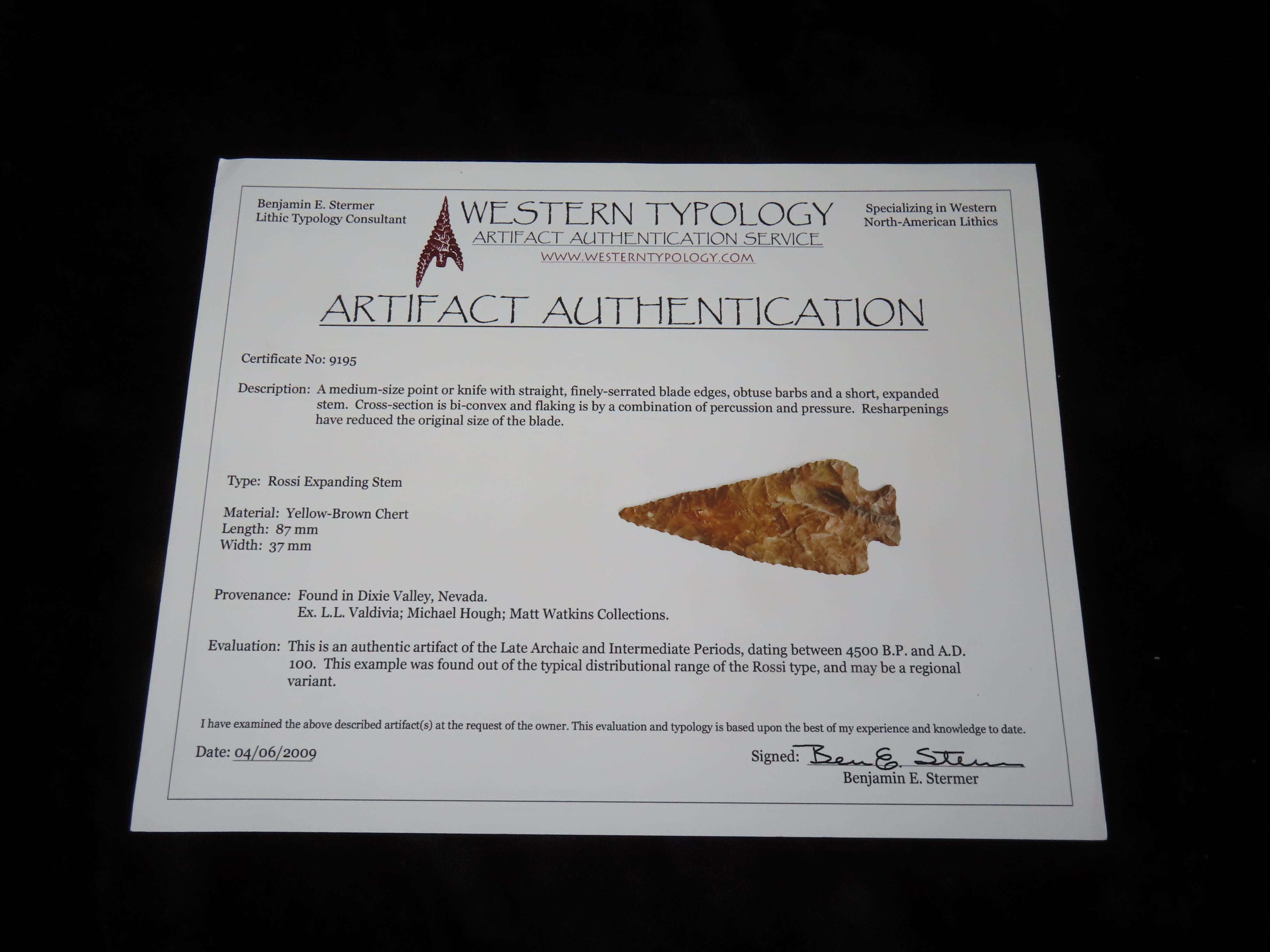 3 7/16" Rossi Expanding Stem, 2xCOA-Stermer/Bennett, found in Dixie Valley, Nevada, Ex L.L.Valdivia, Ex Michael Hough, Ex Matt Watkins, Ex Duane Schneider Collection